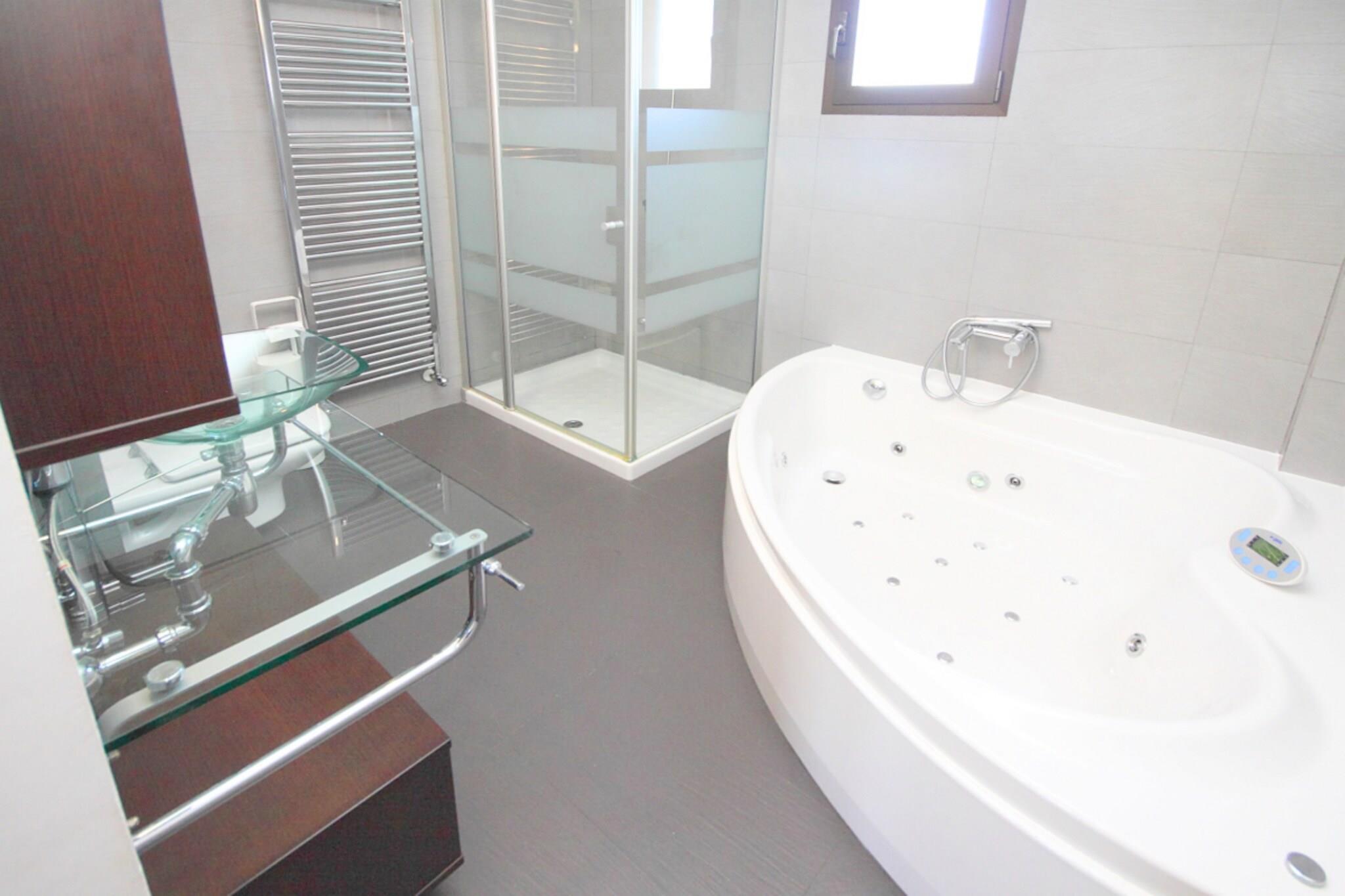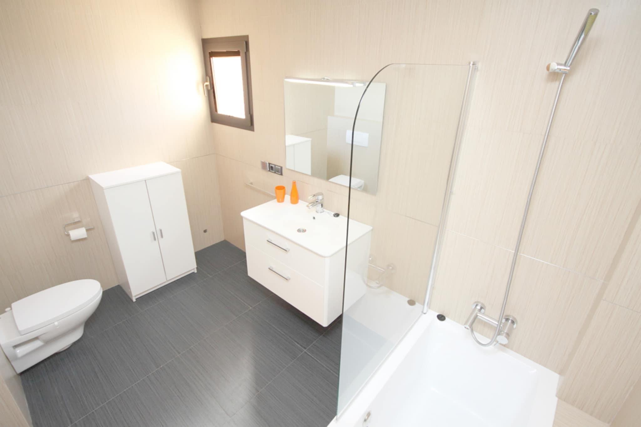 Køkken(kaffemaskine, mikrobølgeovn), soveværelse(2x enkeltseng), soveværelse(dobbeltseng), soveværelse(dobbeltseng), badeværelse, badeværelse, badeværelse, komfur, ovn, opvaskemaskine , køle-fryseskab, badekar, badekar, bruser, bruser, håndvask, håndvask, håndvask, toilet, toilet, toilet, varme, varme, varme, klimaanlæg, klimaanlæg, klimaanlæg, have, havemøbler, 6x solstole, grill, 2x parkering, 2x Parasol, swimmingpool, barneseng, barnestol