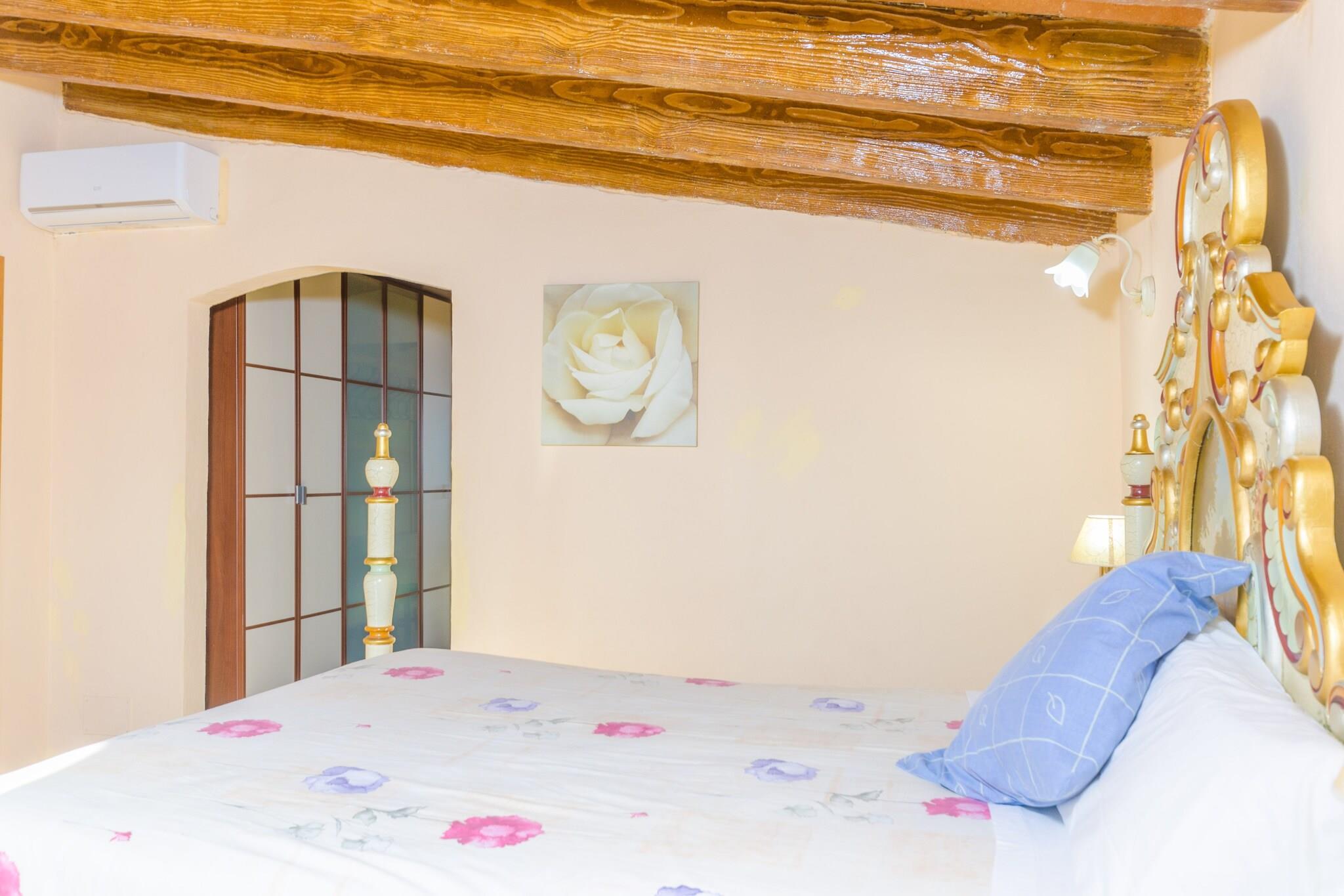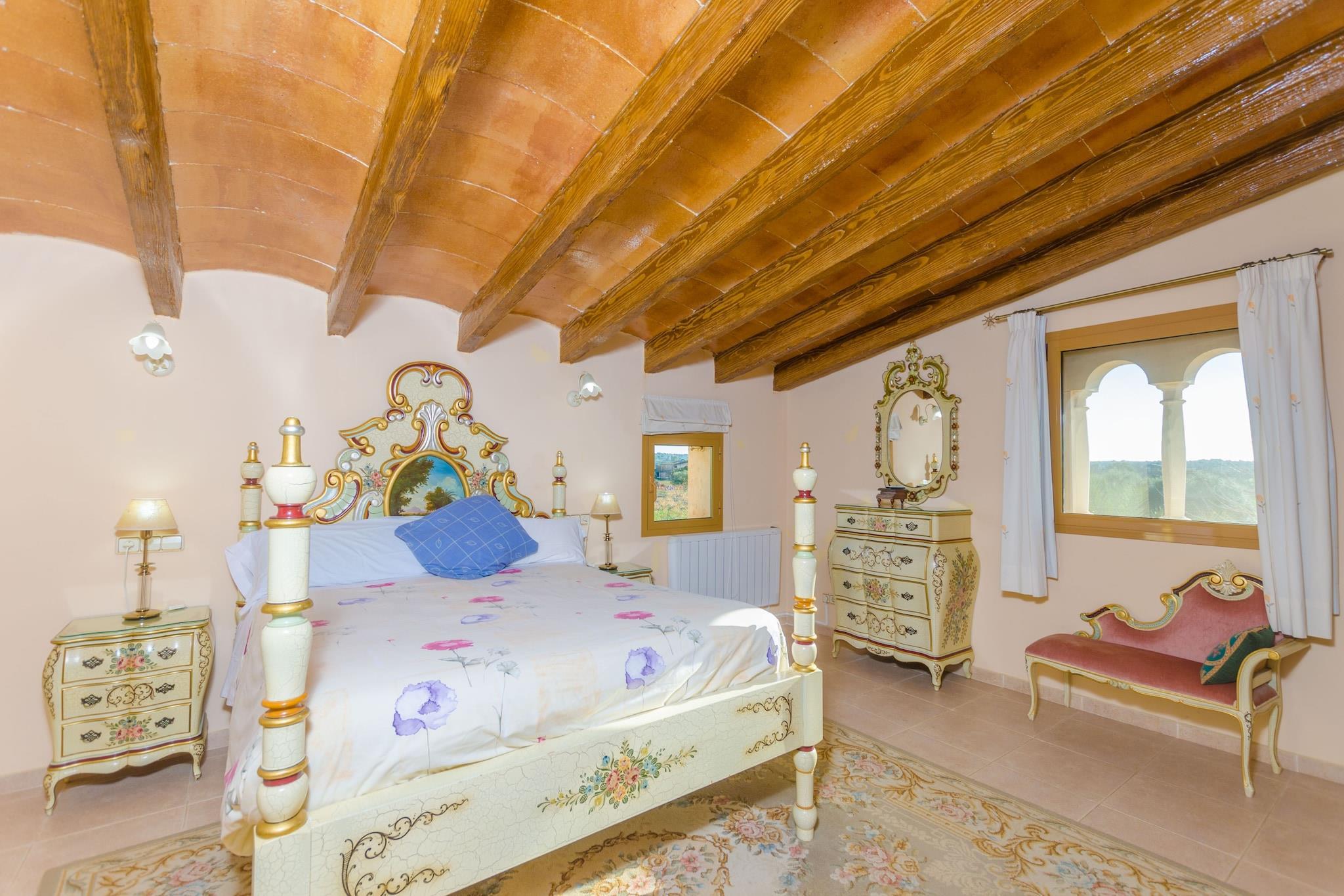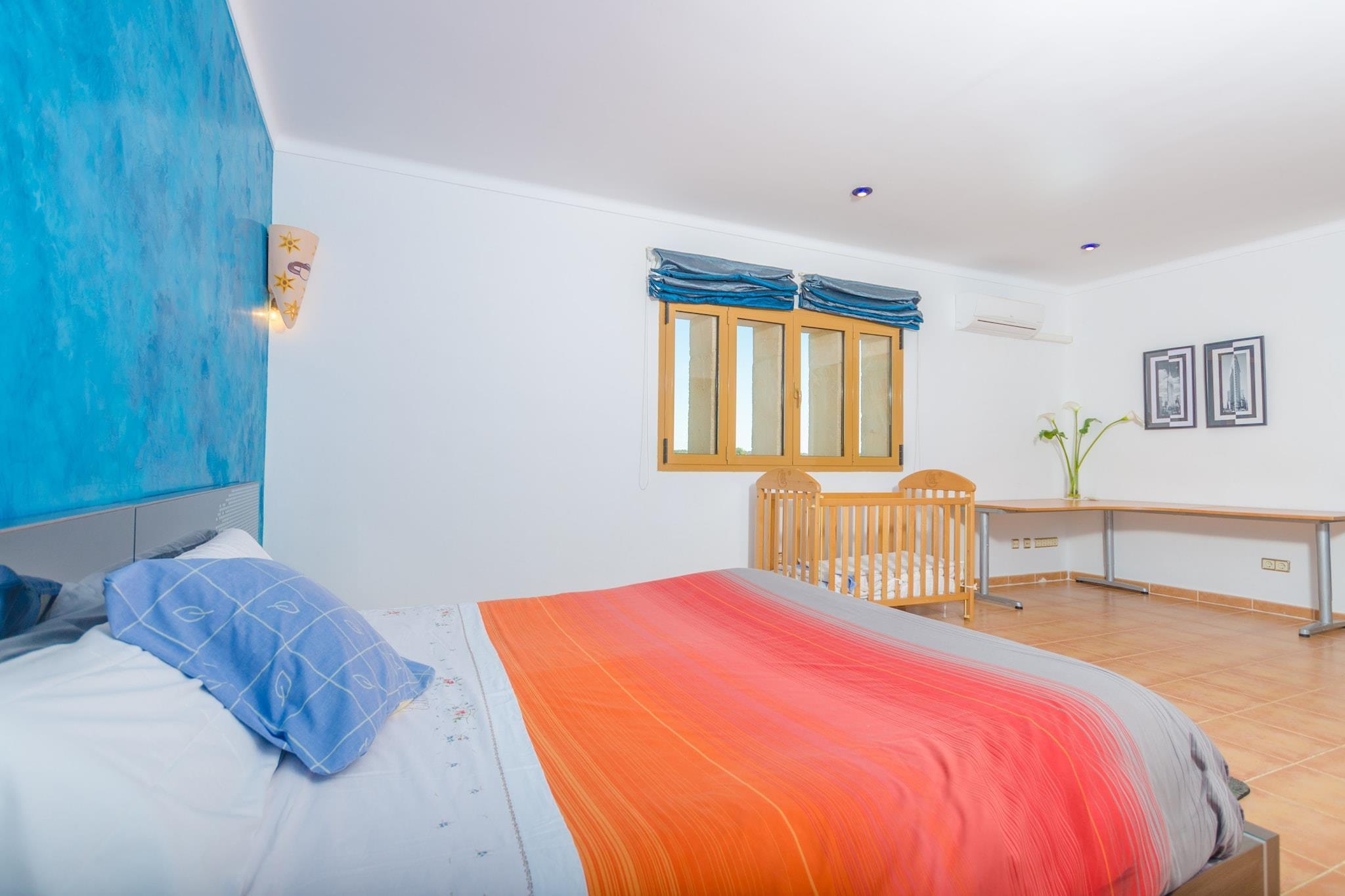 De buitenkant van deze villa is onverslaanbaar. Het privé chloorzwembad is werkelijk spectaculair door zijn afmeting van 20 x 10 m en de diepte van 0,5 tot 3 m. Daaromheen hebben ze een groot terras met 11 hangmatten om ook van de zon te genieten. De veranda is ideaal om te ontspannen na een lekker bad. Er zijn verschillende tafels en stoelen waar u iets kunt drinken of buiten kunt genieten van een heerlijke barbecue. Het perceel is omheind en de privacy is totaal. Het huis biedt drie verdiepingen. Op de begane grond hebben ze een grote woonkamer met satelliet-tv, cd- en dvd-speler. Vervolgens komt u in de eetkamer en vervolgens in de keuken, uitgerust met een keramische kookplaat. Direct ernaast heb je de uitgang naar de wasruimte, waar zich 2 wasmachines, 2 drogers, strijkijzer en strijkplank bevinden. Op dit niveau zijn er 2 slaapkamers, één met een tweepersoonsbed en de andere met twee eenpersoonsbedden, en 2 badkamers met ligbad. Een tweede woonkamer bevindt zich naast de trap die naar de eerste verdieping leidt. Hier hebben ze nog 3 andere kamers met een tweepersoonsbed en een eigen badkamer, twee met douche en één met ligbad. Op de bovenste verdieping hebben ze een fitnessruimte, een badkamer met douche en 2 slaapkamers, één met een tweepersoonsbed en twee eenpersoonsbedden, en de andere met twee eenpersoonsbedden en een onderschuifbed. Er zijn 2 kinderbedjes en 2 kinderstoelen. De woonkamer, eetkamer en 6 slaapkamers zijn voorzien van airconditioning. De boerderij ligt op slechts 4,7 km van de stad Campos waar u alle noodzakelijke voorzieningen vindt zoals supermarkten, restaurants, bars enz. Elke donderdag is er een groenten- en fruitmarkt, en op zaterdag is er een markt met allerlei producten in de straten van het centrum. Het dichtstbijzijnde strand is Es Trenc, op 13,5 km afstand, een van de beste op Mallorca vanwege het witte zand en het kristalheldere water. Voor eventuele extra kosten kunt u contact opnemen met de adverteerder. Huisdieren zijn welkom. Het vieren van evenementen is niet toegestaan. Er is buiten parkeergelegenheid voor 8 auto's. Afstanden Strand: 13,5 km - Es Trenc Luchthaven: 38 km - Son Sant Joan Golfbaan: 25,2 km - Vall d'Or Stad: 4,7 km - Velden Treinstation: 45 km - Manacor Bushalte: 4 km - Avinguda Nicolau Oliver Fullana Veerboot: 44,8 km - Palma Ziekenhuis: 30,1 km - Manacor Toeristenvergunning: VT/1567Bij de ingang dient u de Ecotasa (toeristenbelasting van de Balearen) contant te betalen. Het bedrag varieert tussen EURO 0,55 / per nacht per persoon in het laagseizoen en EURO 2,2 / per nacht per persoon in het hoogseizoen. Vanaf de negende dag wordt het met de helft verminderd. Personen onder de 16 jaar uitgesloten. Bij de ingang dient u de borg rechtstreeks aan de eigenaar te betalen. Elektriciteit (januari - december): 0,40 EUR/Kw (verplicht)