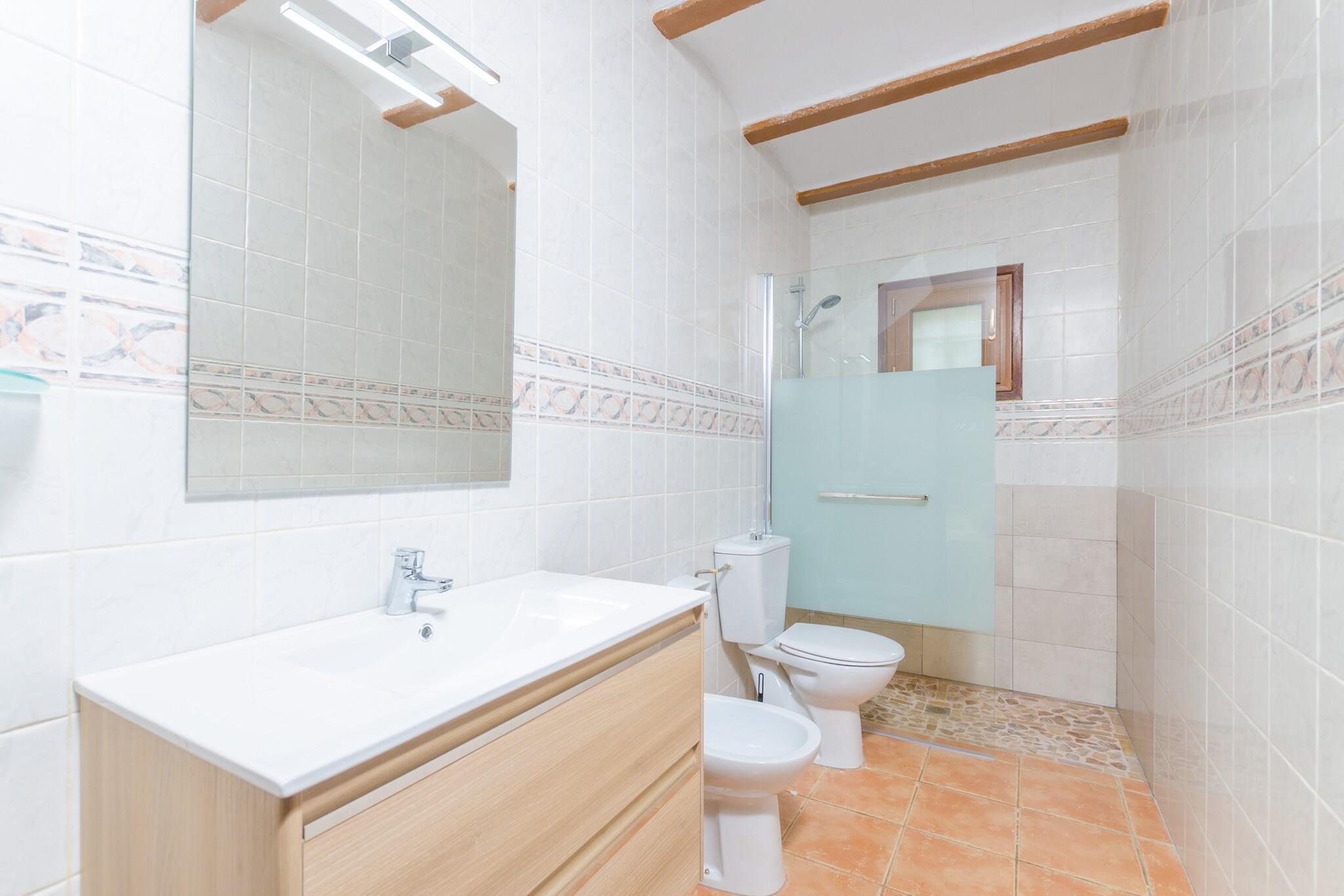 Omgeven door een terras en een prachtige tuin ligt het privé chloorzwembad met een afmeting van 6 x 10 meter en een diepte tussen de 0,8 en 2,1 meter. Zonaanbidders kunnen uitrusten op één van de 8 ligstoelen, zowel in de volle zon als onder de parasol. Voor en na het zwemmen kunt u gebruik maken van de buitendouche. Onder de kleine veranda staat een tafel met stoelen om iets te drinken en te schuilen voor de zon. Tegelijkertijd staat daar een vaste barbecue. Op de tafeltennistafel kun je vrienden en familie uitdagen en spannende toernooien organiseren. Het perceel van dit boerenhuis is omheind en er zijn buren naast de deur. Binnen heeft het huis met twee verdiepingen een eenvoudige maar comfortabele inrichting en uitrusting. De woonkamer met airconditioning, houtkachel, satelliettelevisie en dvd-speler is ideaal voor een ontspannen middag. De keuken beschikt over wat keukengerei voor het bereiden van eenvoudige gerechten, waaronder een inductiekookplaat, magnetron en oven. Rond de eettafel, in open verbinding met de keuken, kunnen 8 personen zitten. De wasruimte is voorzien van een wasmachine, strijkijzer en strijkplank. Op de begane grond bevinden zich twee slaapkamers, één met een tweepersoonsbed en de andere met twee bedden, evenals twee badkamers (één met ligbad en de andere met douche). Boven zijn er nog twee slaapkamers, één met twee eenpersoonsbedden en de andere met een tweepersoonsbed. De badkamer op de eerste verdieping is voorzien van een ligbad en bidet. Op verzoek kunnen wij een kinderbedje en een kinderstoel klaarmaken. Alle slaapkamers zijn voorzien van airconditioning, maar slechts twee hebben een kast. De boerderij ligt een beetje verborgen, omringd door bos. De landelijke omgeving is ideaal voor natuurliefhebbers en diverse paden nodigen uit om de omgeving per fiets te verkennen. De stad Santanyí ligt op ongeveer 7 km afstand. Daar vindt u winkels, goede restaurants en alles wat u nodig heeft voor een onafhankelijke vakantie. De stad is zeer pittoresk en is vooral bekend door een aangename wandeling door de geplaveide straatjes. Een auto is nodig om over het eiland te kunnen reizen en de oostelijke stranden te leren kennen, waaronder Cala SantanyÃ, Cala S'Almonia of Cala Llombards. De kustplaats Portopetro of, verder naar het zuiden, Colonia de Sant Jordi, nodigt u uit om verse zeevruchten en vis te proberen in een van de restaurants. De houtoven kan niet gebruikt worden (alleen de vaste barbecue is bruikbaar). Voor eventuele extra kosten kunt u contact opnemen met de adverteerder. Huisdieren zijn welkom. Het vieren van evenementen is niet toegestaan. Er is buiten parkeergelegenheid voor 6 auto's. Afstanden Strand: 11,3 km - Cala Santanyà Luchthaven: 41,9 km - Son Sant Joan Golfbaan: 13,4 km - Vall d'Or Stad: 8,8 km - Santanyà Treinstation: 28 km - Manacor Bushalte: 12,3 km - Carrer de na Ravandella, Santanyà Veerboot: 50 km - Palma de Mallorca Ziekenhuis: 29 km - Manacor Toeristenvergunning: VT/455Bij de ingang dient u de Ecotasa (toeristenbelasting van de Balearen) contant te betalen. Het bedrag varieert tussen EURO 0,55 / per nacht per persoon in het laagseizoen en EURO 2,2 / per nacht per persoon in het hoogseizoen. Vanaf de negende dag wordt het met de helft verminderd. Personen onder de 16 jaar uitgesloten.