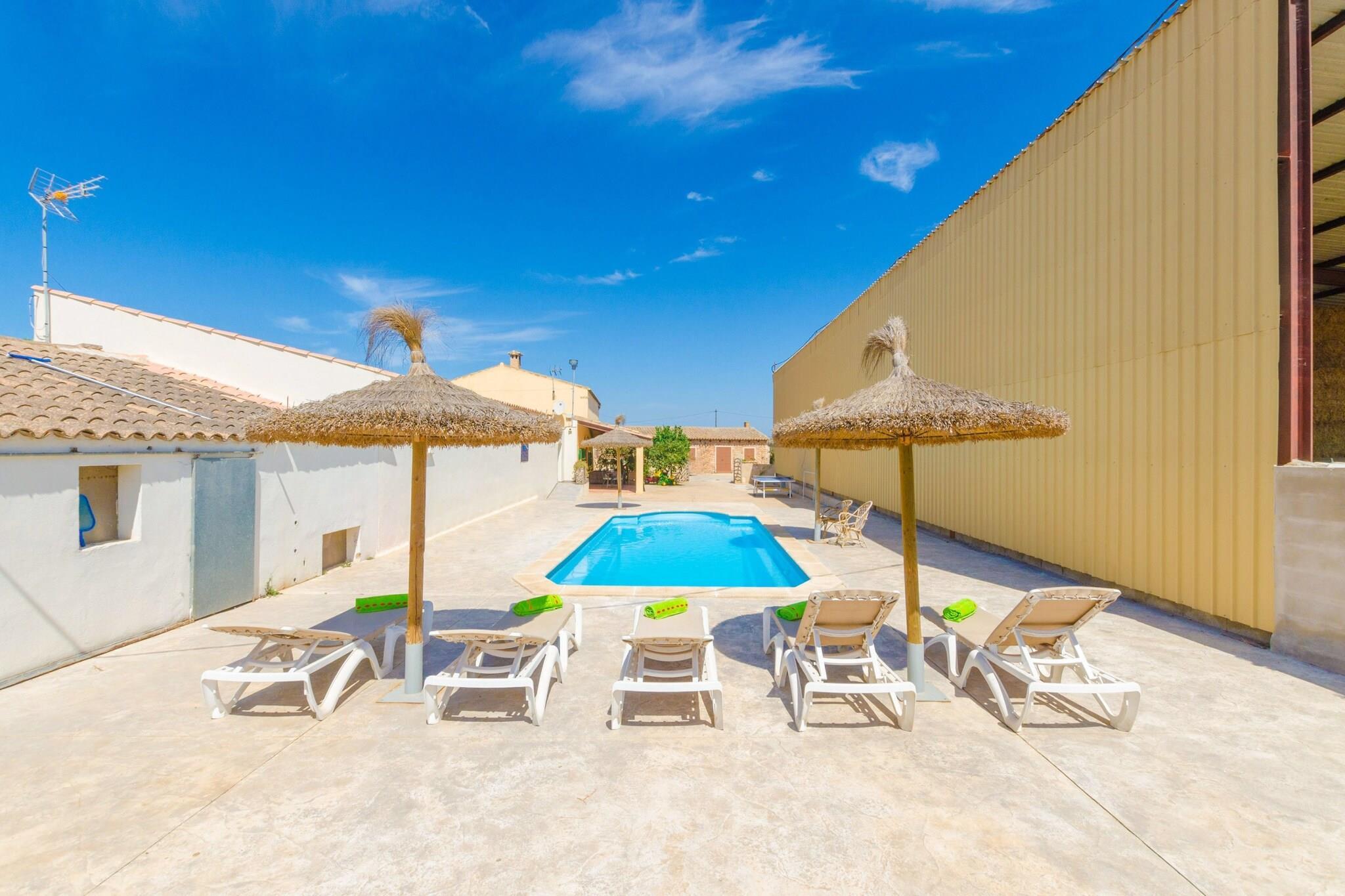 In dit charmante huis heeft u toegang tot een gemeenschappelijk chloorzwembad van 3 x 8 meter en een diepte van 1,1 tot 1,9 meter en zes hangmatten om van de Mallorcaanse zon te genieten. De veranda is privé en nodigt uit om buiten te dineren. Het huis ligt op een boerderij met koeien en is een zeer authentieke plek. Binnen verrast het huis met één verdieping met een rustieke inrichting en een warme sfeer. De woon-eetkamer, met satelliettelevisie en airconditioning op de zolder, staat in open verbinding met de keuken, volledig uitgerust en voorzien van een inductiekookplaat. Het huis beschikt over een wasruimte met wasmachine, strijkijzer en strijkplank. Beide slaapkamers hebben een tweepersoonsbed en een kledingkast. Een badkamer met ligbad bedient het huis. Het huis ligt op enkele kilometers van de stad Ses Salinas, waar u alles kunt vinden wat u nodig heeft tijdens uw vakantie. Binnen 10 minuten rijden bereikt u het witte zandstrand van Es Trenc, een natuurlijk juweel van de Balearen. In de omgeving vindt u nog veel meer stranden en baaien met kristalhelder water, waaronder Ses Covetes, Playa des Carbo en Colonia de Sant Jordi. De hoofdstad van het eiland, Palma de Mallorca, ligt op 30 minuten rijden, waar u de kathedraal La Seu, het kasteel Bellver, het Baluard Museum kunt bezoeken of kunt gaan winkelen. In de buurt van Palma zijn diverse waterparken zoals Westernpark en Aqualand en ook kunt u een bezoek brengen aan het Aquarium. De open haard kan niet worden gebruikt. Er zijn koeien in de omgeving omdat er een kaasfabriek is. De woning ligt naast een weg; en het is mogelijk dat u de straat kunt horen. Voor eventuele extra kosten kunt u contact opnemen met de adverteerder. Wij accepteren geen huisdieren. Het vieren van evenementen is niet toegestaan. Er is buiten parkeergelegenheid voor 6 auto's. Afstanden Strand: 5 km - Es Trenc, Campos Luchthaven: 40,6 km - Son Sant Joan Golfbaan: 28,7 km - Son Antem, Llucmajor Stad: 4,5 km - Ses Salines Treinstation: 34 km - Manacor Bushalte: 4,5 km - Carrer Batle Andreu Burguera, Ses Salines Veerboot: 48,5 km - Haven van Palma Ziekenhuis: 35 km - Manacor-ziekenhuis Toeristenvergunning: AG/272Bij de ingang dient u de Ecotasa (toeristenbelasting van de Balearen) contant te betalen. Het bedrag varieert tussen EURO 0,55 / per nacht per persoon in het laagseizoen en EURO 2,2 / per nacht per persoon in het hoogseizoen. Vanaf de negende dag wordt het met de helft verminderd. Personen onder de 16 jaar uitgesloten. Bij de ingang dient u de borg rechtstreeks aan de eigenaar te betalen.