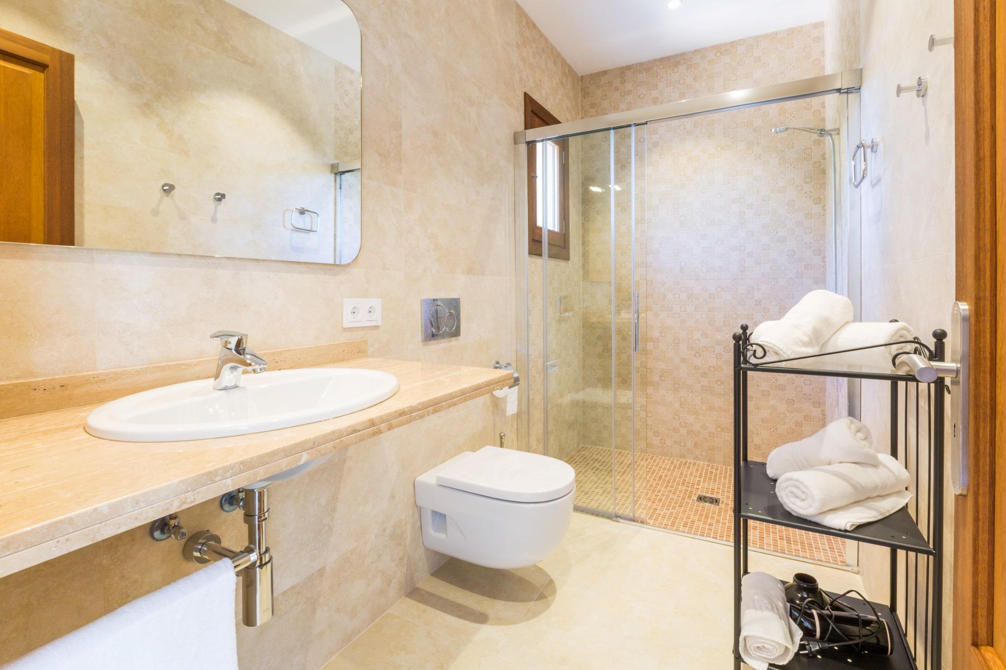 De buitenkant is erg mooi, het heeft grote terrassen en bomen, een gemeubileerd terras op de 1e verdieping, een chloorzwembad van 10 x 5 m met een diepte variërend van 0,4 tot 1,85 m, tien ligstoelen, een volledig uitgeruste veranda en een barbecue voor kookliefhebbers. Het huis heeft een oppervlakte van 420 m2, verdeeld over 2 verdiepingen, en beschikt over vijf slaapkamers gelegen op de 1e verdieping, allen met twee eenpersoonsbedden, een en-suite badkamer met douche en airconditioning. Er is beschikbaarheid voor twee wiegjes en twee kinderstoelen. Naast de en-suite badkamers beschikt de woning over twee toiletten, één op de begane grond en één op de 1e verdieping. De woonkamer is erg gezellig en heeft een grote bank, twee fauteuils, een kleine tafel, TV-Sat en airconditioning. De keuken, onafhankelijk en met vitro, beschikt over alle benodigde keukengerei om zonder enig probleem te koken; Er staat ook een tafel met stoelen. Er is een wasmachine, een strijkijzer en een strijkplank. Het huis ligt op slechts 6 km van Campos, waar u alles kunt vinden wat u nodig heeft tijdens uw vakantie: supermarkten, medisch centrum, apotheek, bars, restaurants, winkels, enz. Binnen 15 minuten met de auto bereikt u het witte zandstrand van Es Trenc, een natuurlijk juweel van de Balearen. En in de omgeving vindt u nog veel meer stranden en baaien met kristalhelder water. De stad Palma ligt op 30 minuten rijden, waar u rondleidingen kunt maken, culturele wandelingen kunt maken of kunt gaan winkelen. In Palma zijn er verschillende waterparken zoals WesternPark, Aqualand etc. Ook kunt u een bezoek brengen aan La Catedral of het Palma Aquarium. Vloerverwarming door het hele huis. In oktober en april betaal je apart, van november t/m maart is het bij de prijs inbegrepen. Aangepast voor mensen met beperkte mobiliteit. Snelle internetverbinding via 600Mb symmetrische glasvezel (FTTH). Daarnaast wordt er een computer- en communicatieondersteuningsdienst aangeboden, evenals de verhuur van een projector, multifunctionele printer, pc of laptop, connectiviteit ook via netwerkkabel, enz. tegen een meerprijs. Voor eventuele extra kosten kunt u contact opnemen met de adverteerder. Wij accepteren geen huisdieren. Het vieren van evenementen is niet toegestaan. Er is buiten parkeergelegenheid voor 5 auto's. Afstanden Strand: 17 km - Es Trenc Luchthaven: 38,1 km - Son Sant Joan Golfbaan: 26,4 km - Son Antem Stad: 6 km - Velden Treinstation: 32 km - Manacor Bushalte: 6 km - Carrer Nicolau Oliver Fullana, Campos Veerboot: 48,6 km - Haven van Palma Ziekenhuis: 33,1 km - Manacor-ziekenhuis Toeristenvergunning: ETV/4775 Bij de ingang moet u de Ecotasa (toeristenbelasting van de Balearen) contant betalen. Het bedrag varieert tussen EURO 0,55 / per nacht per persoon in het laagseizoen en EURO 2,2 / per nacht per persoon in het hoogseizoen. Vanaf de negende dag wordt het met de helft verminderd. Personen onder de 16 jaar uitgesloten. Bij de ingang dient u de borg rechtstreeks aan de eigenaar te betalen. Vloerverwarming (oktober - april): 15 EUR/nacht (optioneel)