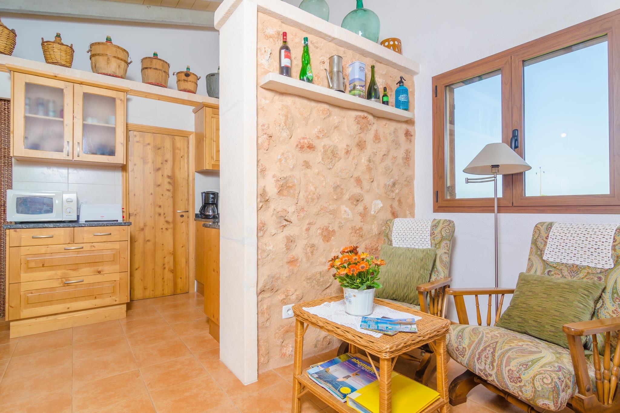 Oplev absolut fred og privatliv i dette charmerende landsted, der består af to separate hyggelige bygninger omgivet af frodige haver, indfødte træer og åbent landskab. Den møblerede veranda og terrasse er ideelle til at slappe af eller nyde grillretter udendørs. Efter frokost kan du slentre gennem grunden, slappe af på en af ??de 4 liggestole eller svaje på havens gynge, mens du lytter til fuglesang. Hver bygning har sin egen funktion, der adskiller opholdsrum fra soveværelserne for ekstra komfort. I det første hus finder du et lyst køkken og spiseplads i åbent plan, perfekt til familiemåltider eller til at se satellit-tv fra lænestolene. Denne bygning indeholder også et badeværelse med bruser og bidet samt et vaskerum med vaskemaskine, strygejern og strygebræt. Det andet hus har to soveværelser med aircondition og garderobeskabe - det ene med en dobbeltseng, det andet med to enkeltsenge. En barneseng og høj stol er tilgængelige på anmodning. Beliggende kun 8,6 km fra den spektakulære strand i Es Trenc og inden for rækkevidde af Cala Santanyí, Cala Llombards og Campos by (3 km), tilbyder fincaen en fredelig base for at udforske Mallorca. Palma ligger kun 30 minutter væk. Bemærk: Kæledyr og arrangementer er ikke tilladt. Udvendig parkering til 1 bil. Ecotasa gælder.