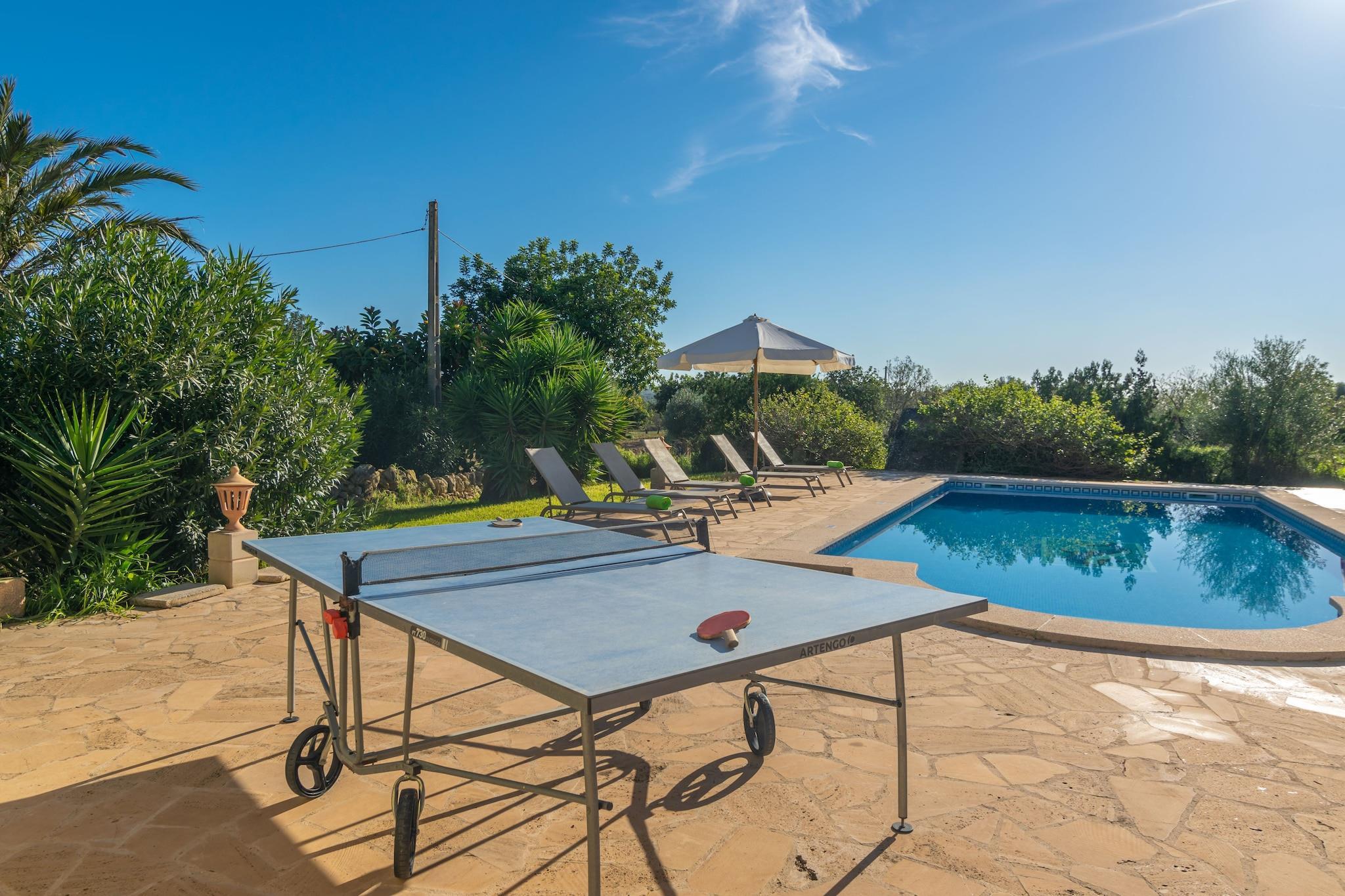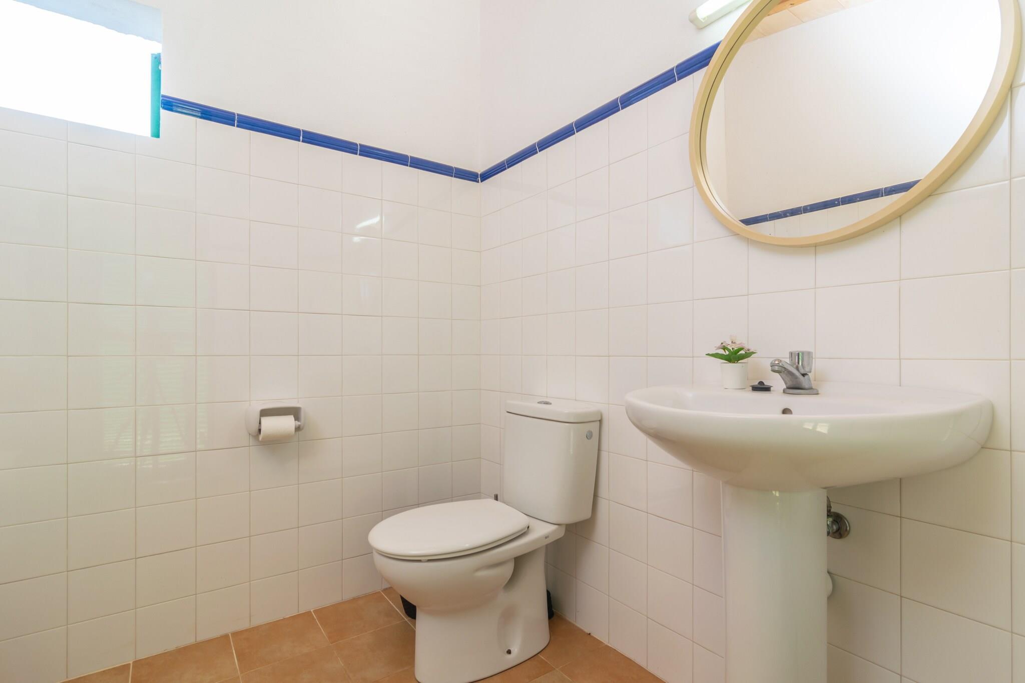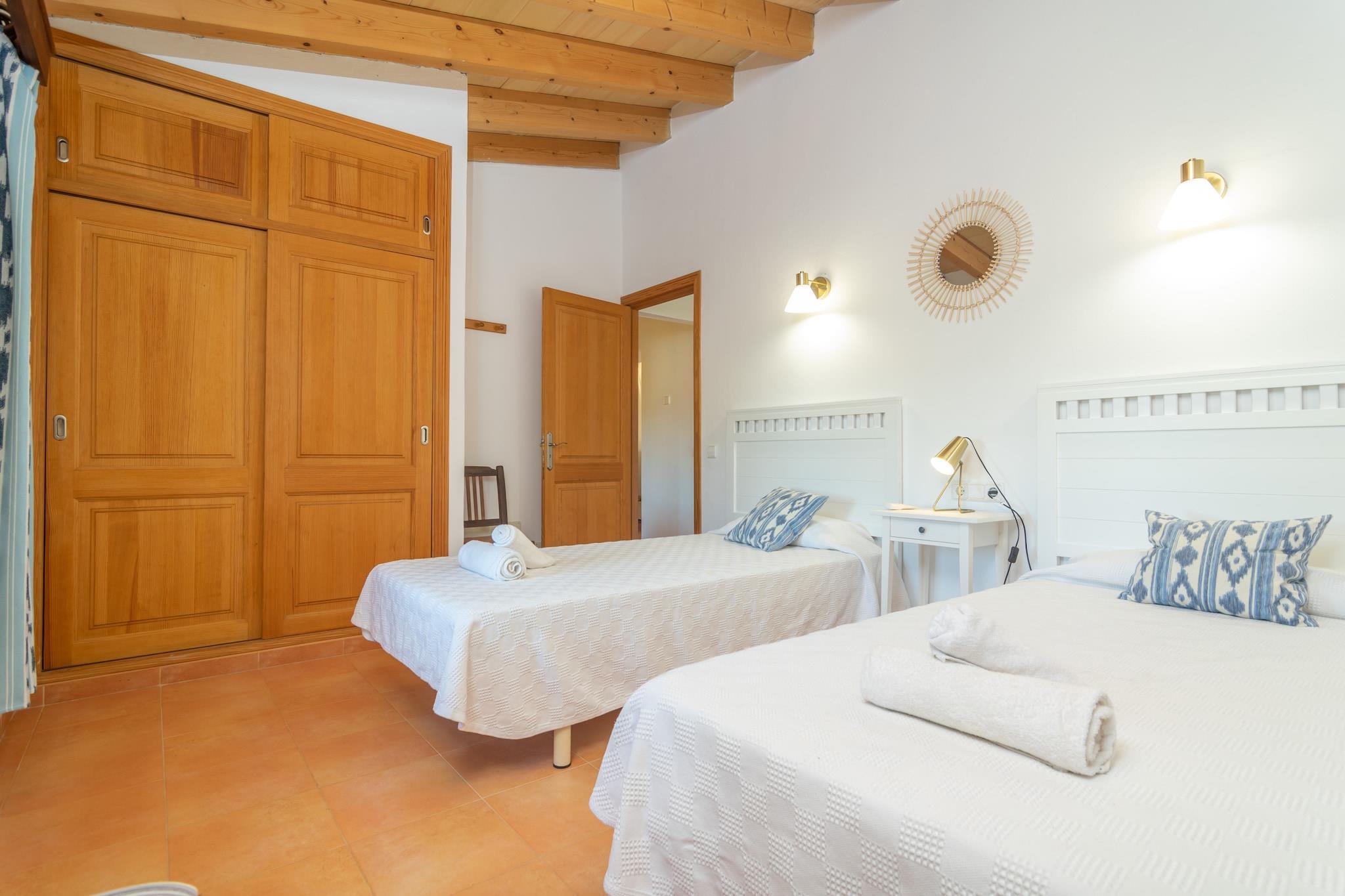 Denne rummelige ejendom tilbyder fuldstændig privatliv og et fantastisk udendørs område centreret omkring en 9x5 m klorpool (dybde 1-1,8 m), lukket for børns sikkerhed. Gæsterne kan slappe af på liggestole, nyde en grill eller spise udendørs på verandaen. Den indhegnede ejendom sikrer fred og afsondrethed, hvilket gør den ideel for familier eller grupper, der søger afslapning. Det to-etagers hjem blander traditionel mallorcansk charme med moderne bekvemmeligheder. Stueetagen har en stue med satellit-tv, en spiseplads til ti med AC og et separat køkken med en keramisk kogeplade. Der er også et soveværelse med 2 enkeltsenge med en-suite bruser. Ovenpå finder du en anden stue og fire soveværelser, hver med en-suite badeværelser, AC og olie centralvarme. To værelser har dobbeltsenge, og to har to enkeltsenge. En barneseng og høj stol er til rådighed for babyer. Ejendommen ligger mellem Campos og Santanyí, tæt på strande som Es Trenc og Cala Santanyí og tæt på Mondragó Naturpark. Santanyí tilbyder tjenester i nærheden. Kæledyr og arrangementer er ikke tilladt. Udvendig parkering til fem biler er tilgængelig. Ecotasa turistskat gælder for gæster over 16, der spænder fra EURO0,55 til EURO2,20 per nat, med rabat fra den niende dag. Turistlicens: ETV/675.