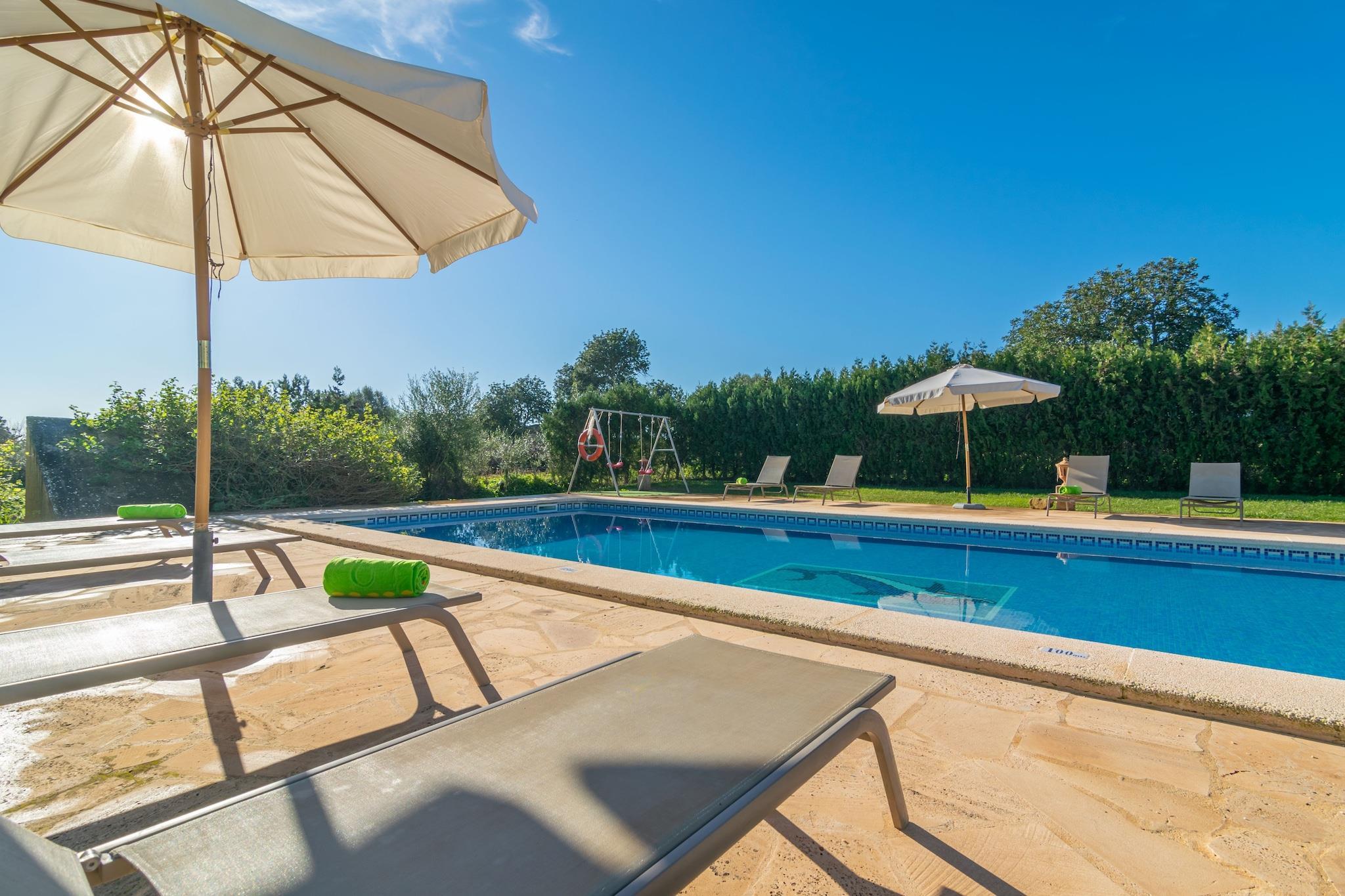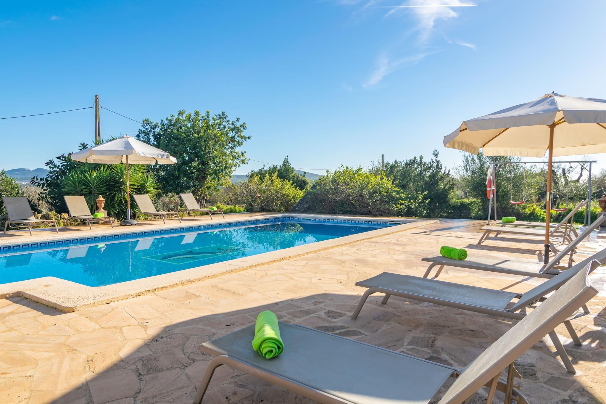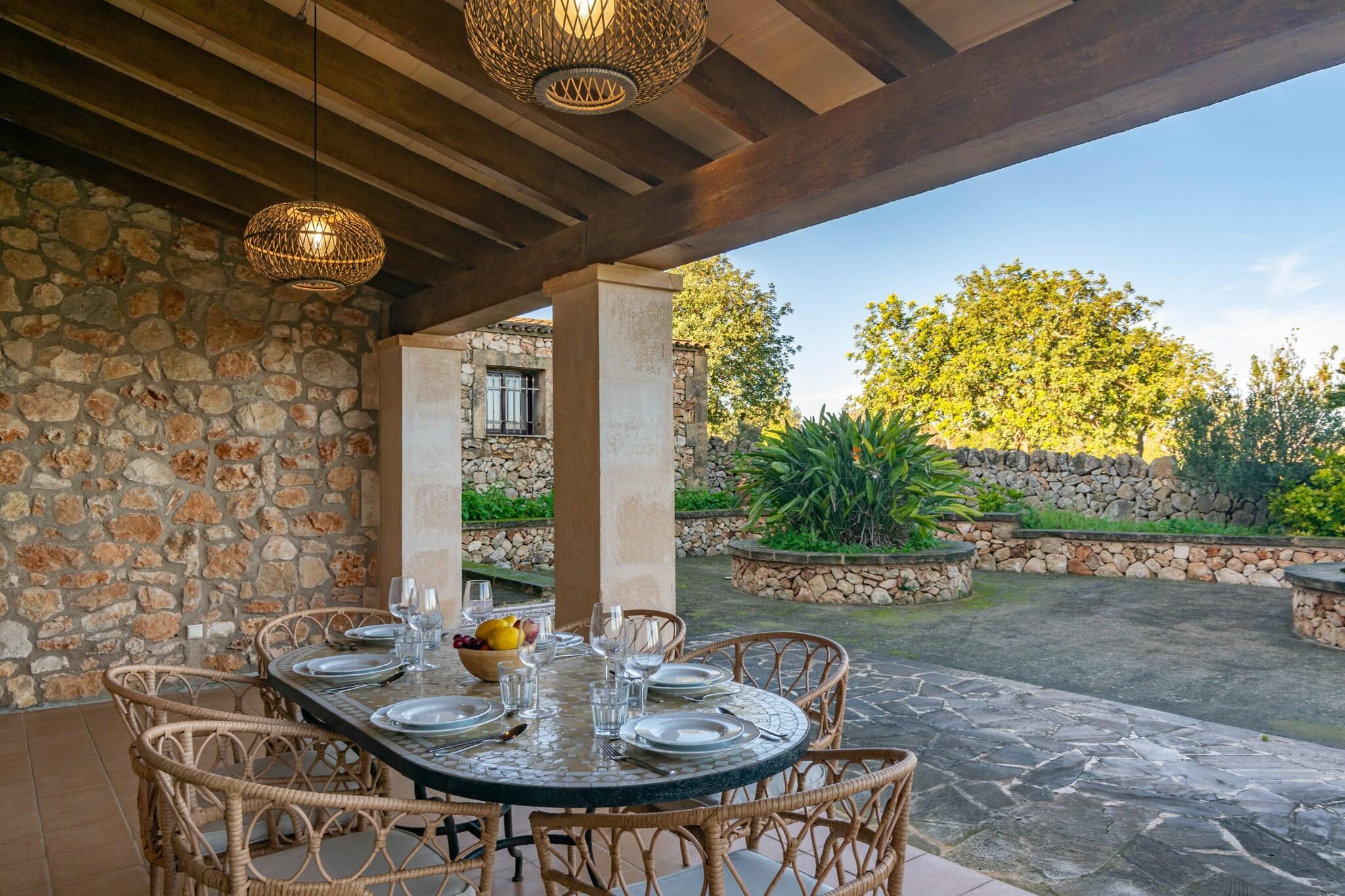 Denne rummelige ejendom tilbyder fuldstændig privatliv og et fantastisk udendørs område centreret omkring en 9x5 m klorpool (dybde 1-1,8 m), lukket for børns sikkerhed. Gæsterne kan slappe af på liggestole, nyde en grill eller spise udendørs på verandaen. Den indhegnede ejendom sikrer fred og afsondrethed, hvilket gør den ideel for familier eller grupper, der søger afslapning. Det to-etagers hjem blander traditionel mallorcansk charme med moderne bekvemmeligheder. Stueetagen har en stue med satellit-tv, en spiseplads til ti med AC og et separat køkken med en keramisk kogeplade. Der er også et soveværelse med 2 enkeltsenge med en-suite bruser. Ovenpå finder du en anden stue og fire soveværelser, hver med en-suite badeværelser, AC og olie centralvarme. To værelser har dobbeltsenge, og to har to enkeltsenge. En barneseng og høj stol er til rådighed for babyer. Ejendommen ligger mellem Campos og Santanyí, tæt på strande som Es Trenc og Cala Santanyí og tæt på Mondragó Naturpark. Santanyí tilbyder tjenester i nærheden. Kæledyr og arrangementer er ikke tilladt. Udvendig parkering til fem biler er tilgængelig. Ecotasa turistskat gælder for gæster over 16, der spænder fra EURO0,55 til EURO2,20 per nat, med rabat fra den niende dag. Turistlicens: ETV/675.