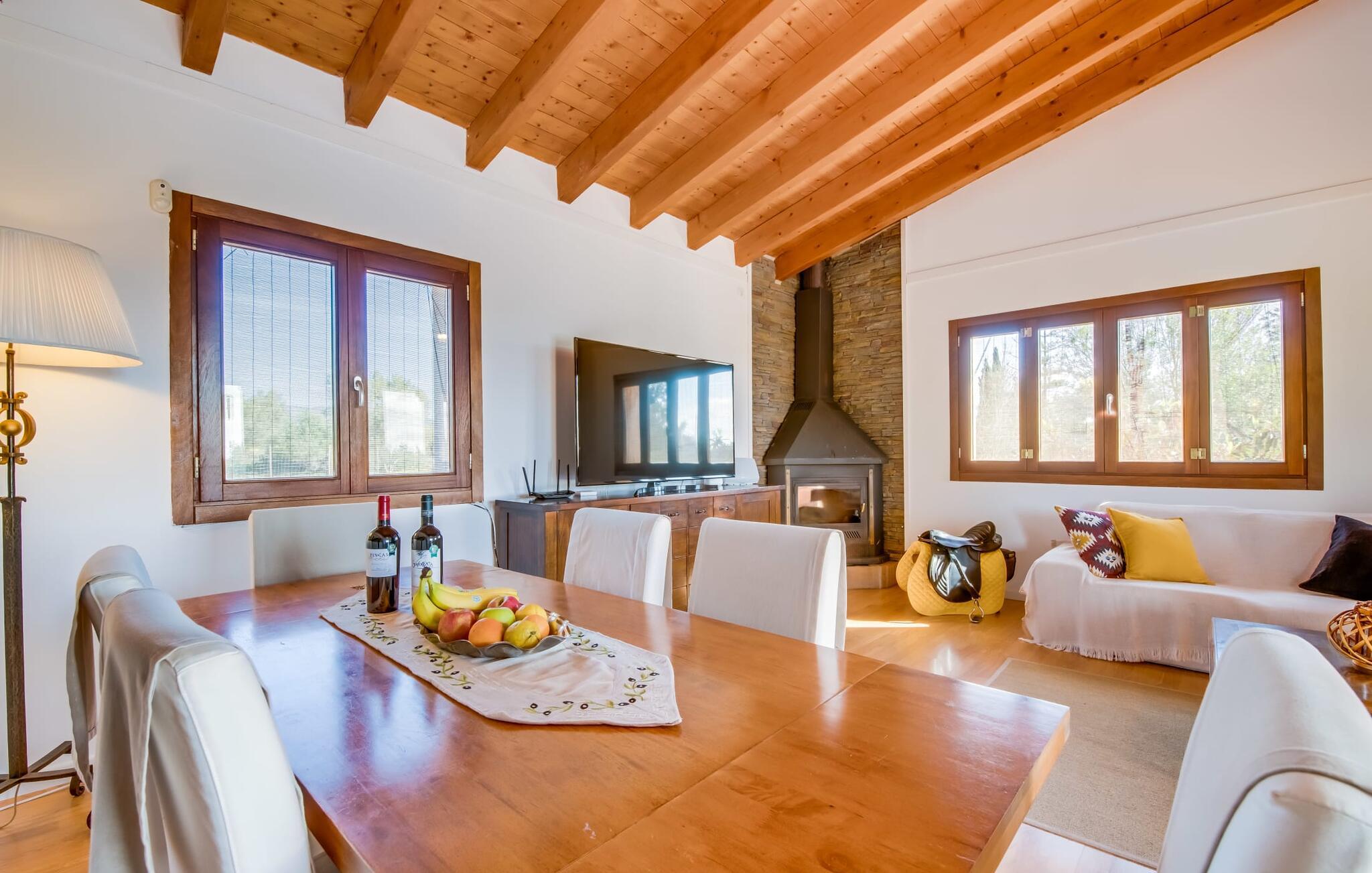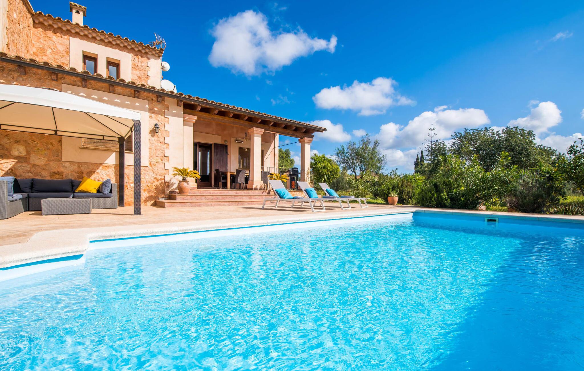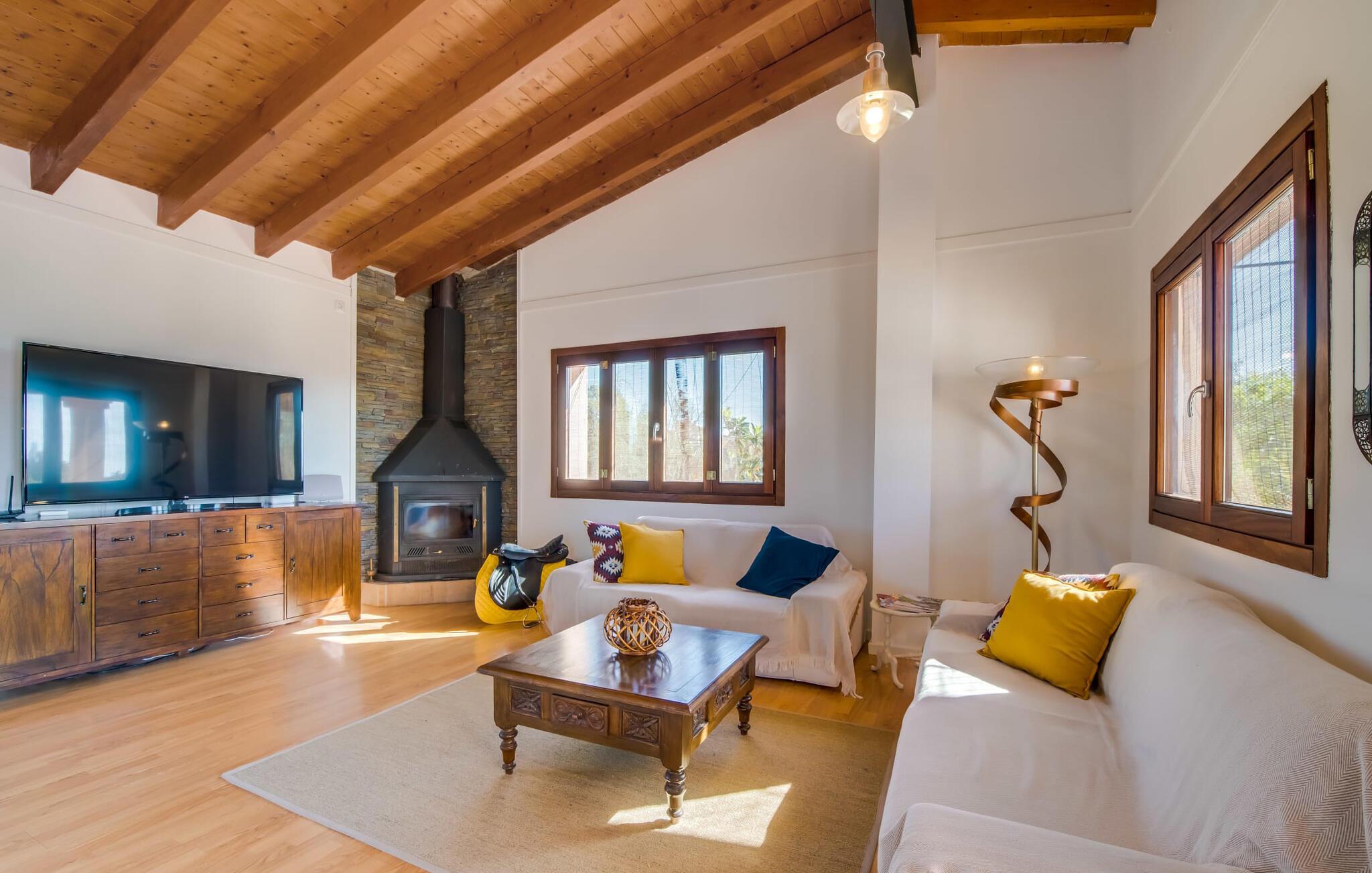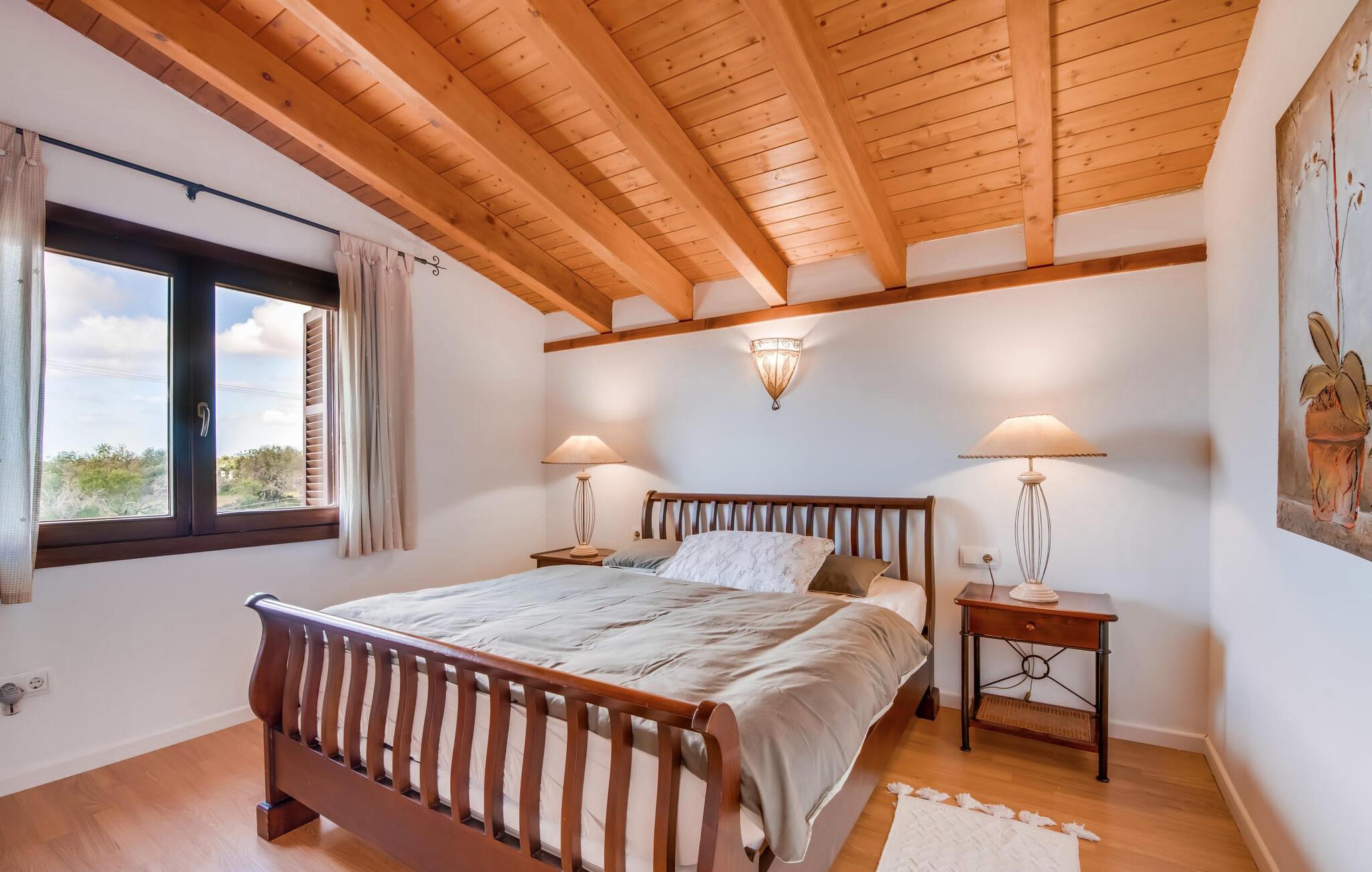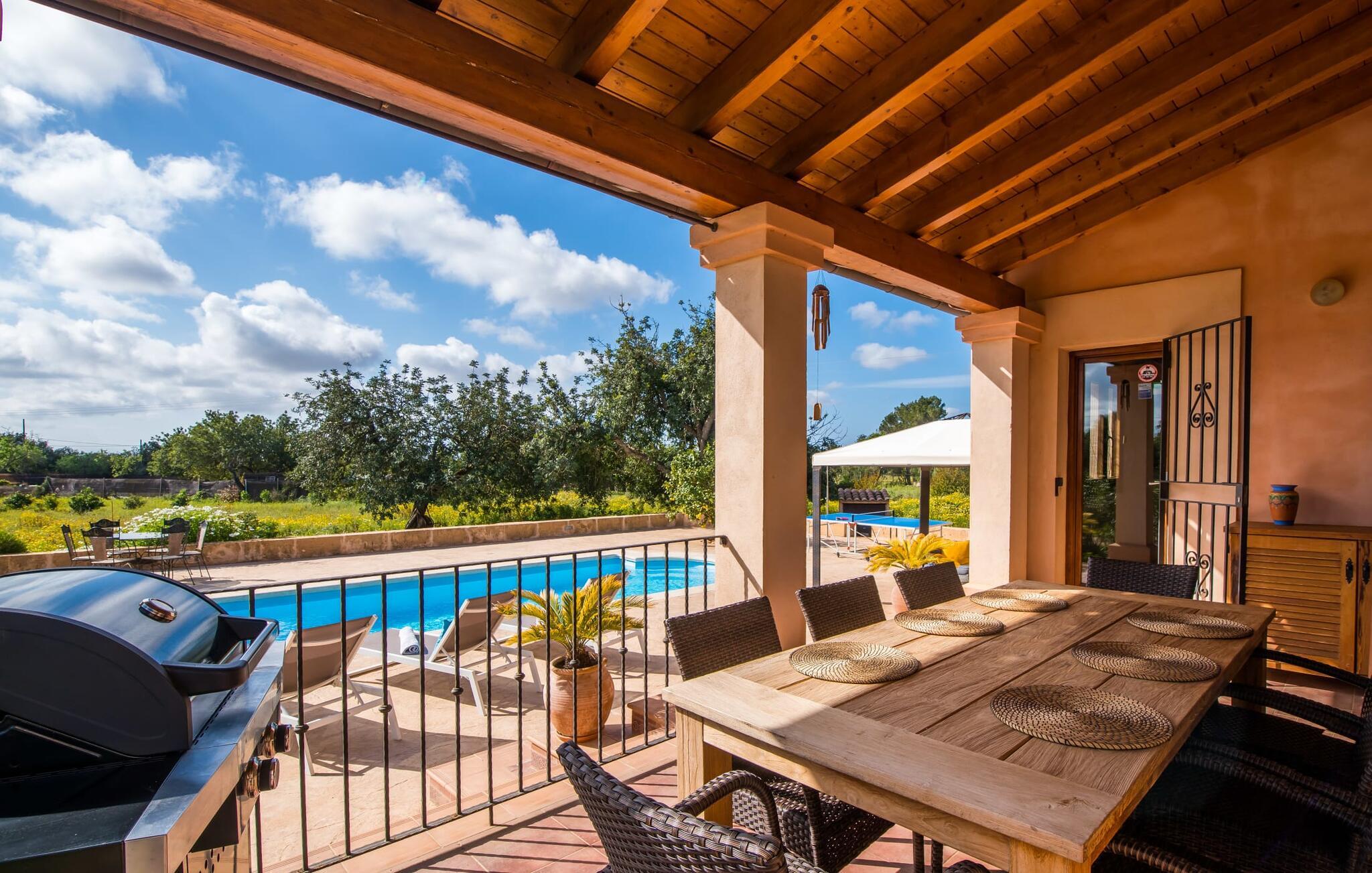 Masser af plads, fred og ro, natur, masser af muligheder for aktive familier og meget mere: Det er, hvad fincaen "Can Alba de Llucmajor" byder på for op til seks personer, et smukt feriehus på det sydlige Mallorca. Fincaen med pool er beliggende på en stor, grøn ejendom i en rolig beliggenhed uden direkte naboer. jeres finca har et meget velholdt, rummeligt og delvist overdækket terrasseområde: Her kan I enten nyde frisk grillet mad sammen ved spisebordet, sætte jer i den behagelige udendørs sofa med en god bog, nyde det lange og rigelige solskin på sol liggestole ved poolen takket være den sydvendte orientering eller spil et spil bordtennis ved husets bord. Fincaen byder velkommen i en klassisk middelhavsstil med et moderne islæt, venligt og lyst Mange vinduer, trælofter og en smagfuld indretning præger den meget velholdte, hyggelige atmosfære. Indretningen lader heller ikke tilbage at ønske: I stueetagen er der ikke kun en rummelig, åben stue og spisestue med pejs, som skaber en hyggelig atmosfære, men også et stort køkken med endnu et spisebord, hvor I kan sidde hyggeligt sammen. og få en vidunderlig morgenmad. De tre dobbeltværelser i huset lover afslappende nætter, et i stueetagen og to på øverste etage. Et moderne badeværelse nedenunder og ovenpå afrunder boligkomforten på jeres drømmefinca på Mallorca. Mallorcas landliv parret med masser af komfort inde og ude: Dette er fincaen "Can Alba de Llucmajor" i den solrige sydlige del af øen. På trods af den rolige beliggenhed på en kæmpe ejendom, ligger jeres feriehus kun 4 km fra Llucmajor. Den charmerende landsby med mange butikker, restauranter og caféer kan nemt nås via landevejen, som kan høres akustisk afhængig af vindretningen. Strande som S'Arenal eller Racó de S'Arena ligger henholdsvis kun 16 og 18 km væk. Bemærk venligst, at denne ejendom ikke accepterer ungdomsgrupper eller polterabender. En ungdomsgruppe på denne ejendom består af personer på 28 år eller derunder. Book ikke denne ejendom, hvis I er en ungdomsgruppe eller en polterabendgruppe, da jeres reservation vil blive afvist, når den er booket, hvilket også kan være tilfældet ved ankomst til ejendommen eller under jeres ophold, og I vil ikke modtage en refusion.