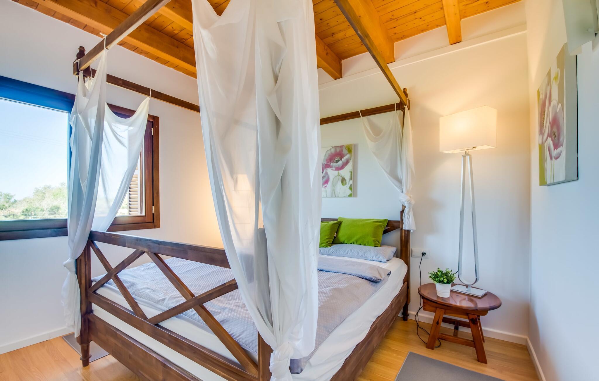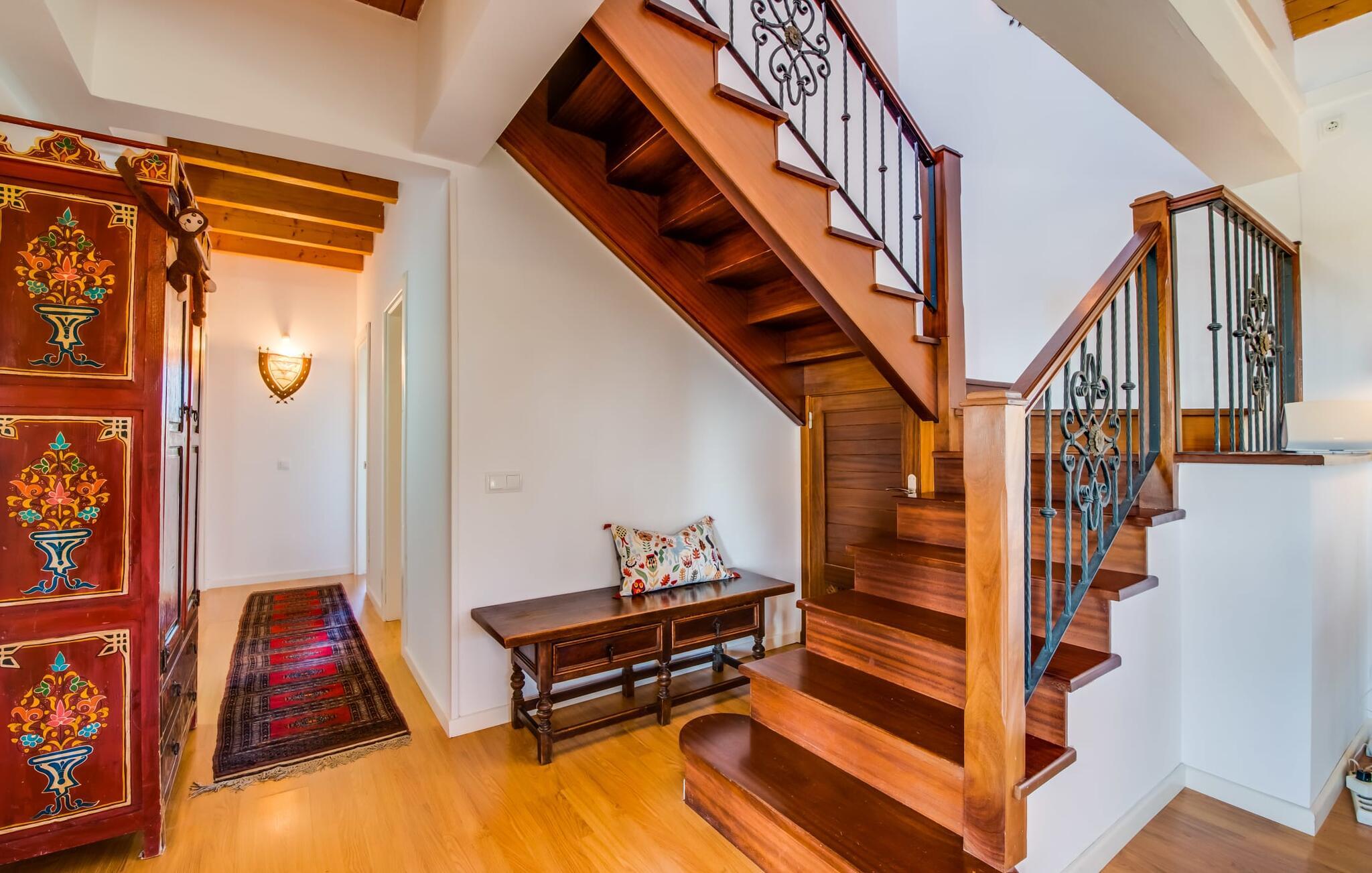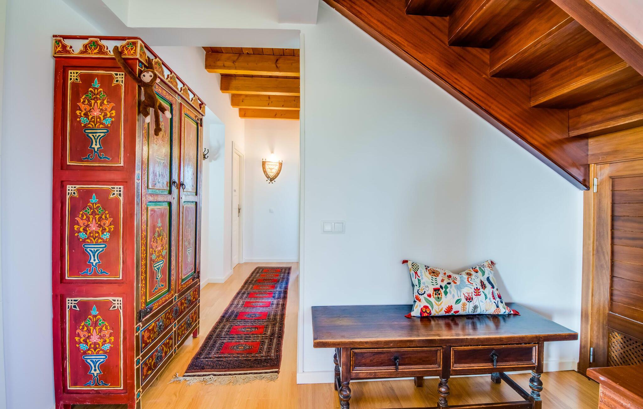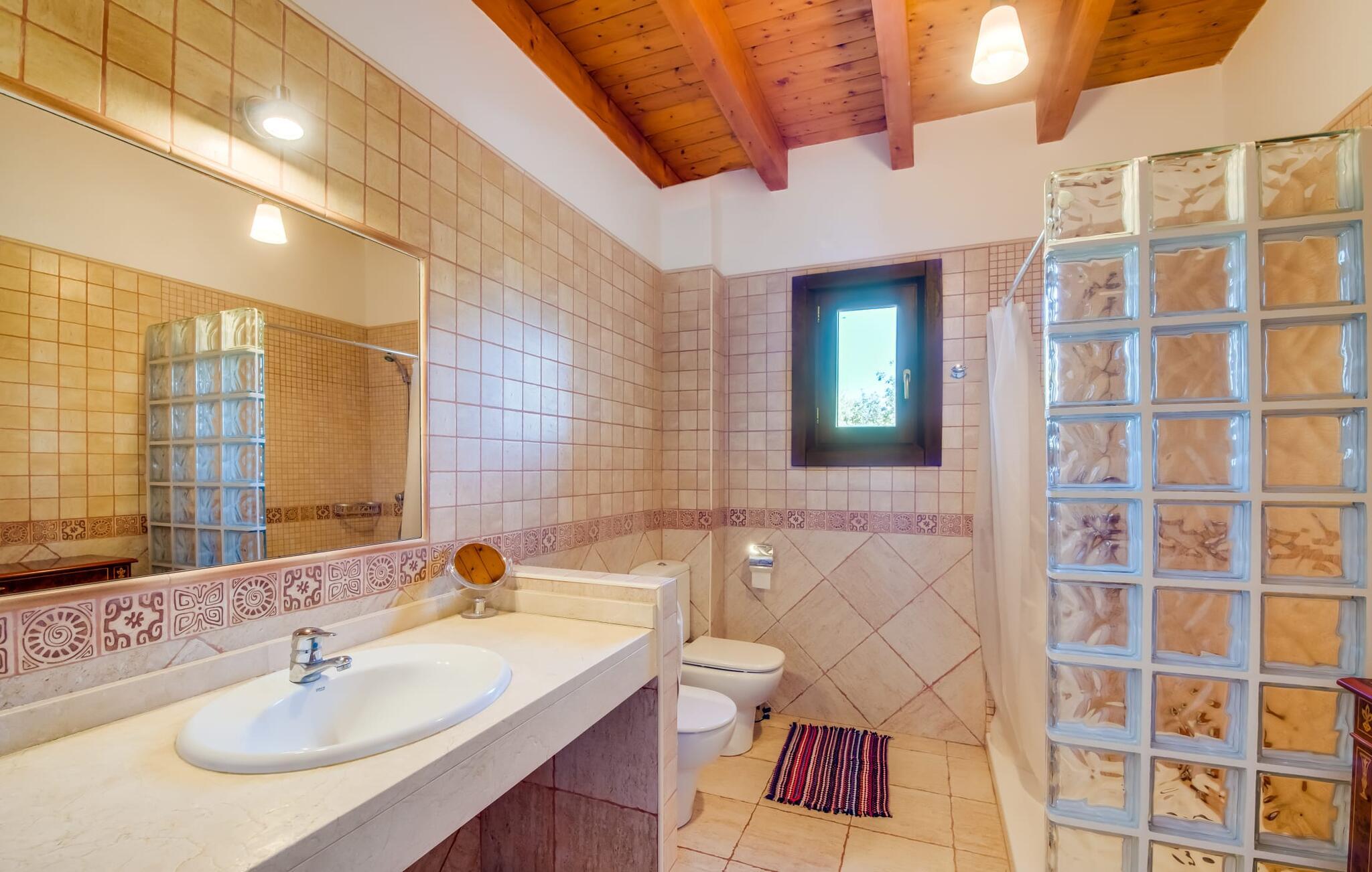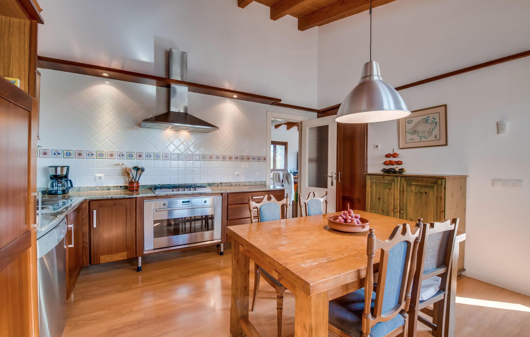 Masser af plads, fred og ro, natur, masser af muligheder for aktive familier og meget mere: Det er, hvad fincaen "Can Alba de Llucmajor" byder på for op til seks personer, et smukt feriehus på det sydlige Mallorca. Fincaen med pool er beliggende på en stor, grøn ejendom i en rolig beliggenhed uden direkte naboer. jeres finca har et meget velholdt, rummeligt og delvist overdækket terrasseområde: Her kan I enten nyde frisk grillet mad sammen ved spisebordet, sætte jer i den behagelige udendørs sofa med en god bog, nyde det lange og rigelige solskin på sol liggestole ved poolen takket være den sydvendte orientering eller spil et spil bordtennis ved husets bord. Fincaen byder velkommen i en klassisk middelhavsstil med et moderne islæt, venligt og lyst Mange vinduer, trælofter og en smagfuld indretning præger den meget velholdte, hyggelige atmosfære. Indretningen lader heller ikke tilbage at ønske: I stueetagen er der ikke kun en rummelig, åben stue og spisestue med pejs, som skaber en hyggelig atmosfære, men også et stort køkken med endnu et spisebord, hvor I kan sidde hyggeligt sammen. og få en vidunderlig morgenmad. De tre dobbeltværelser i huset lover afslappende nætter, et i stueetagen og to på øverste etage. Et moderne badeværelse nedenunder og ovenpå afrunder boligkomforten på jeres drømmefinca på Mallorca. Mallorcas landliv parret med masser af komfort inde og ude: Dette er fincaen "Can Alba de Llucmajor" i den solrige sydlige del af øen. På trods af den rolige beliggenhed på en kæmpe ejendom, ligger jeres feriehus kun 4 km fra Llucmajor. Den charmerende landsby med mange butikker, restauranter og caféer kan nemt nås via landevejen, som kan høres akustisk afhængig af vindretningen. Strande som S'Arenal eller Racó de S'Arena ligger henholdsvis kun 16 og 18 km væk. Bemærk venligst, at denne ejendom ikke accepterer ungdomsgrupper eller polterabender. En ungdomsgruppe på denne ejendom består af personer på 28 år eller derunder. Book ikke denne ejendom, hvis I er en ungdomsgruppe eller en polterabendgruppe, da jeres reservation vil blive afvist, når den er booket, hvilket også kan være tilfældet ved ankomst til ejendommen eller under jeres ophold, og I vil ikke modtage en refusion.