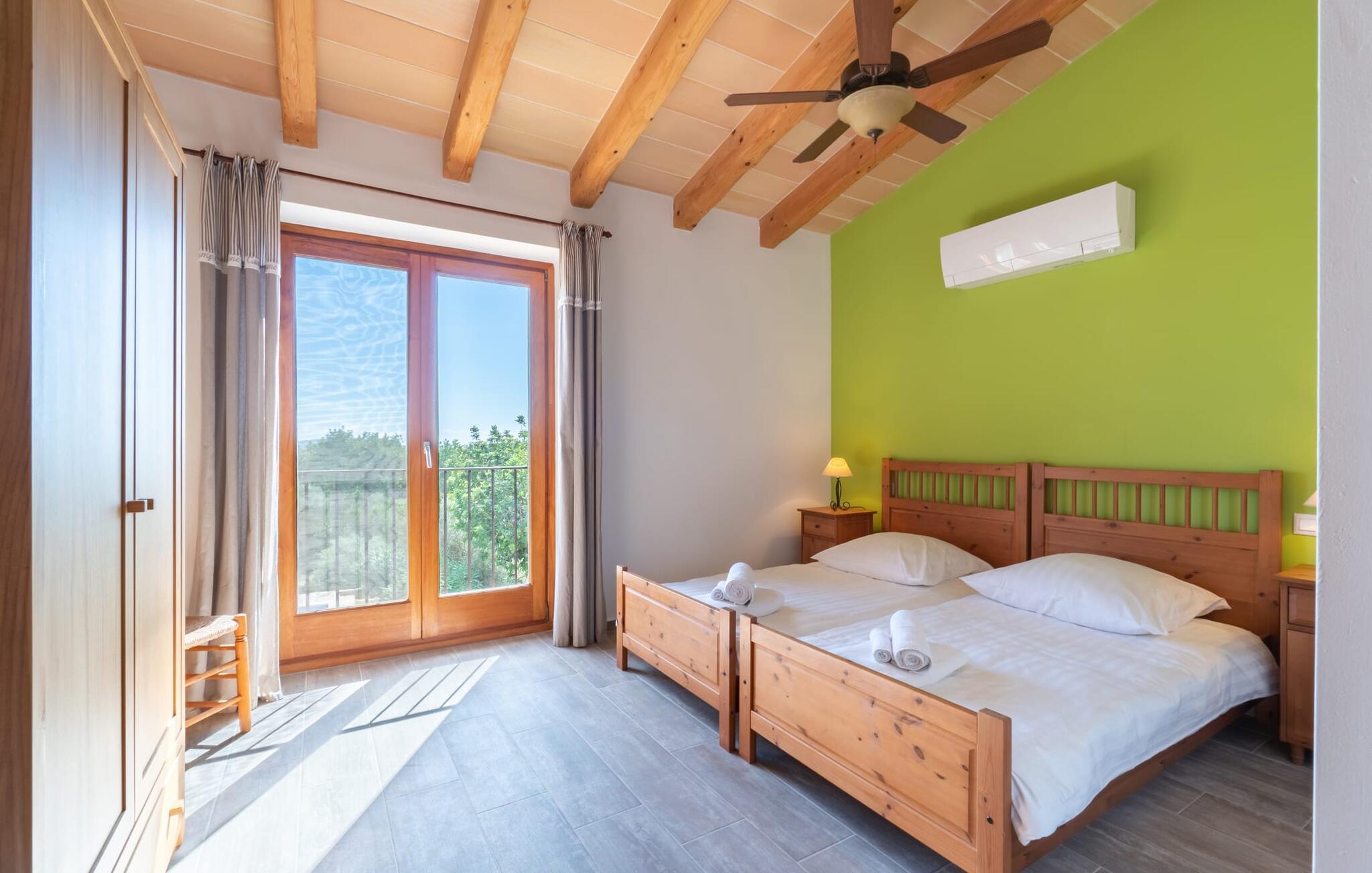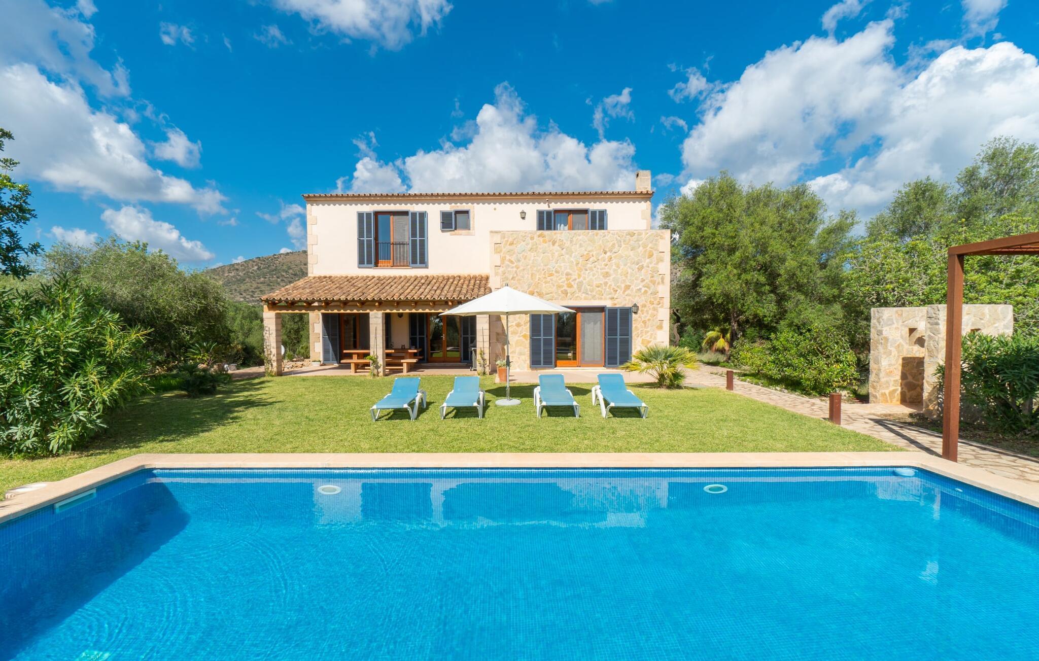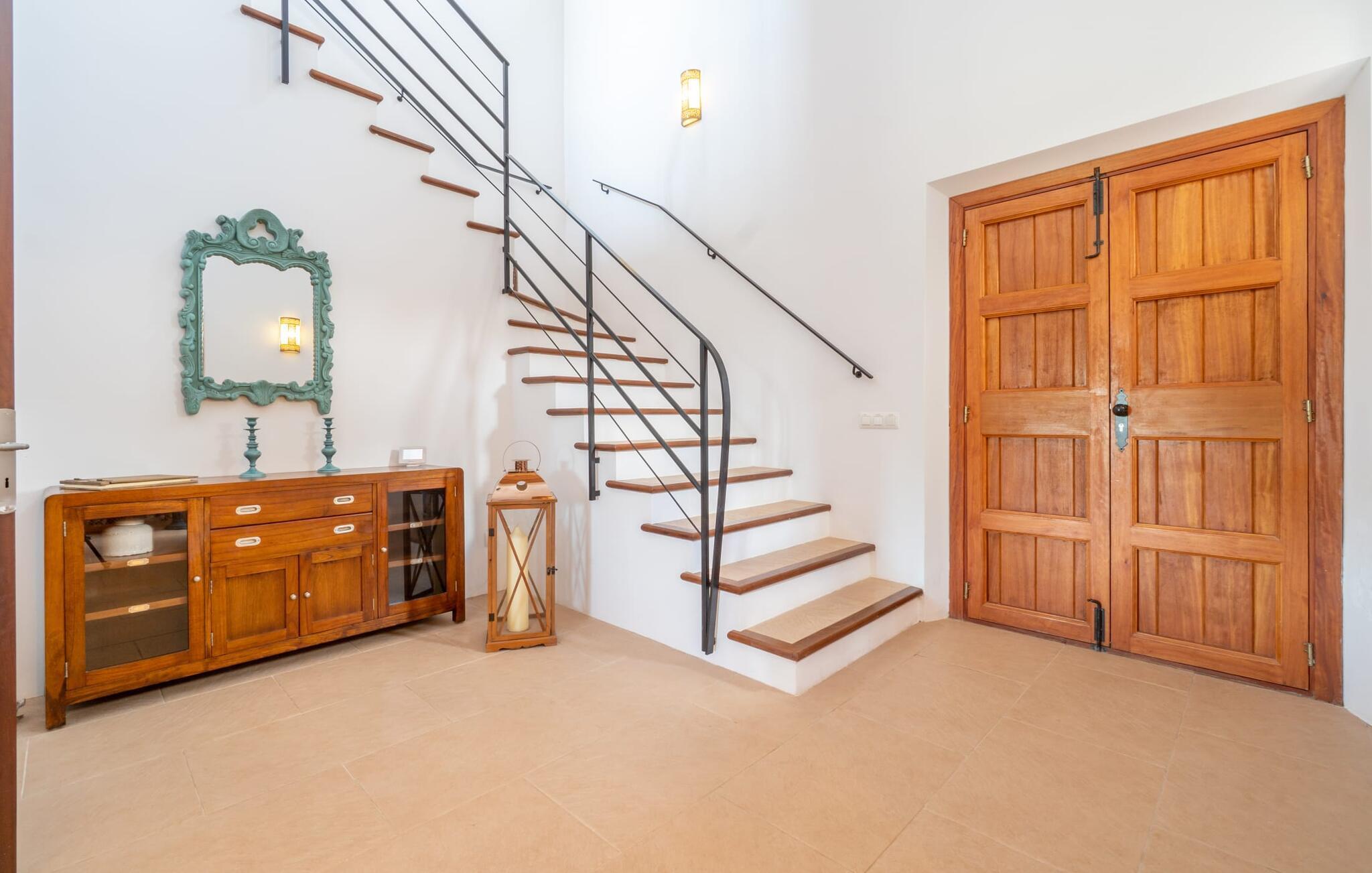Fincaen "Can Alba" er et betagende eksempel på traditionel mallorcinsk arkitektur med naturlige stenelementer og klassiske skodder. Dette er et feriehus i Fincallorca. Det forskudte design skaber en smuk terrasse, hvor du kan slappe af og nyde den smukke udsigt over det omkringliggende landskab. Ved poolen kan du vælge, om du vil slappe af under åben himmel eller nyde parasollens skygge. Loungen ved poolen tilbyder endnu et skyggefuldt tilflugtssted, der er ideelt til afslapning. Poolen byder på en forfriskende dukkert på varme dage, og en udendørs bruser øger din komfort. Indenfor er fincaen rummelig, stilfuld og bader i naturligt lys takket være gulv-til-loft vinduer. En blanding af træ og en blanding af klassiske og moderne møbler skaber en indbydende atmosfære. Den åbne stue og spisestue med integreret køkken fungerer som husets hjerte. Et soveværelse med dobbeltseng og et gæstetoilet er i stueetagen. På øverste etage er der yderligere tre soveværelser med dobbeltsenge og to store bruserum. Et af de øverste soveværelser åbner ud til en privat terrasse med panoramaudsigt over det fantastiske landskab. Den absolut rolige finca "Can Alba" ligger i den østlige del af Mallorca i kommunen Sant Llorenç. Det er omgivet af et område beplantet med oleander-, palme-, oliven-, citrus- og figentræer. Byen med indkøbsmuligheder ligger kun 5 minutter væk, de nærmeste strande er ca. 12 til 14 km væk.