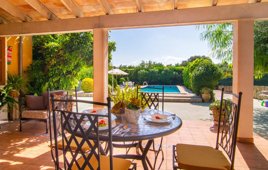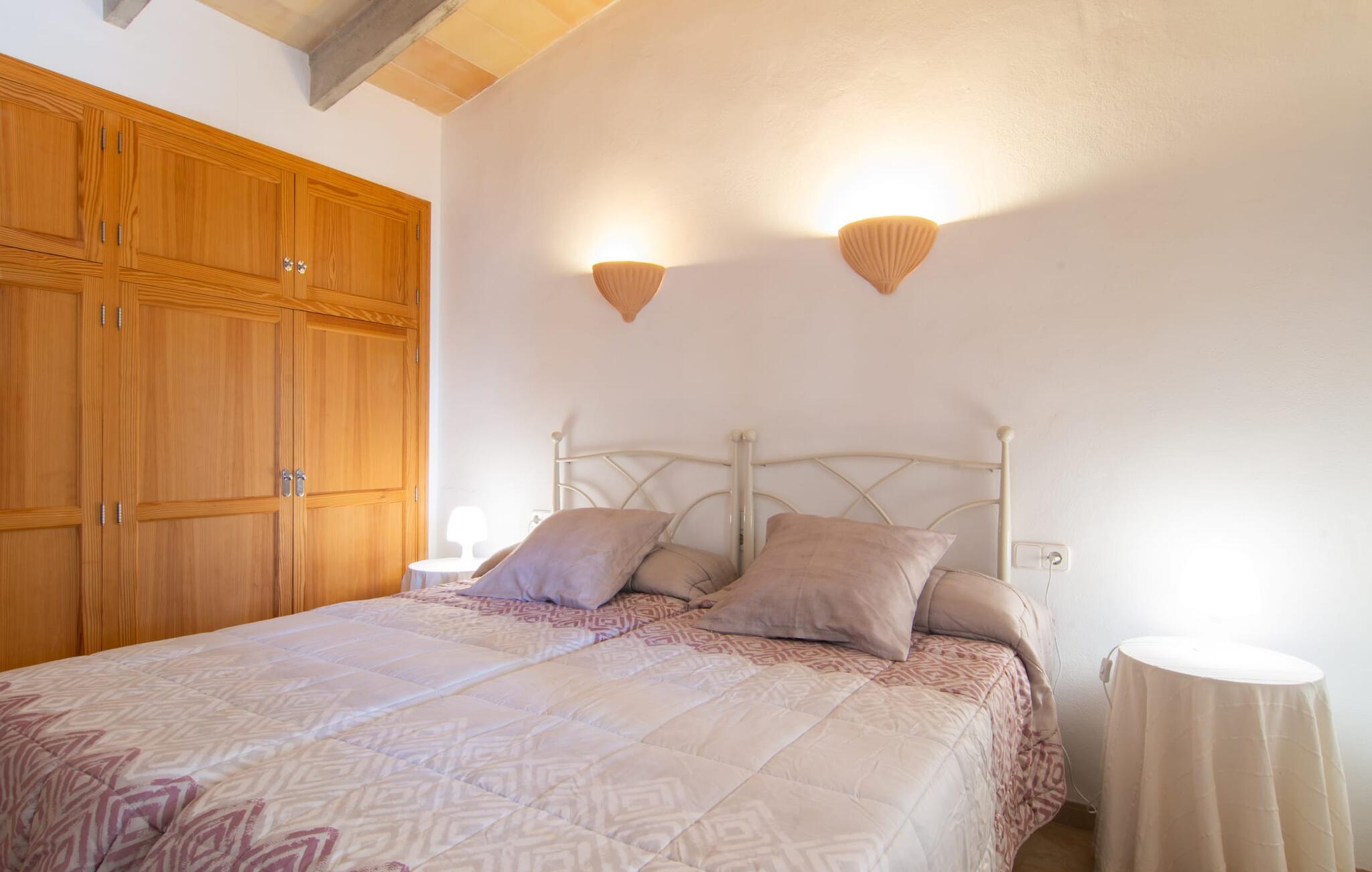 Den yderst familievenlige og prisvenlige villa "Can Aloy" er beliggende i en afsondret landlig beliggenhed. Hvis jeres familie har kæledyr, kan de også ledsage jer til villaen på ferie. Omgivet af knudrede oliventræer og typisk middelhavsvegetation finder I alt, hvad I behøver på ejendommens terrasse: en plan pool med mosaikfliser og bugtende motiver inviterer til en forfriskende svømmetur. Adgang sker via en stige eller en fire meter bred trappe i den laveste del af poolen. Poolen er indlejret i en solterrasse lavet af natursten. Udover 4 liggestole er der et enkelt siddeområde med flere stole. For at det ikke skal blive for varmt om sommeren, kan to parasoller give skygge, hvis det ønskes. Husets terrasse er tilgængelig via et brolagt område. Til venstre finder I murstensgrillen - ideel til en afslappet BBQ, hvis I kan lide at lave mad selv på ferien. På bagsiden af ejendommen har de venlige ejere af huset en køkkenhave og en frugthave. De deler gerne deres friske haveprodukter og giver jer friske, solmodne råvarer. Den anden halvdel af huset tilhører faktisk ejerne og bruges udelukkende af dem, så længe der ikke er gæster i villaen, så de kan nyde deres privatliv her. Vores favoritsted i denne villa er uden tvivl den overdækkede terrasse, hvorfra vi også har adgang til huset. Smukt møbleret med et spisebord og et komfortabelt sofasæt i marokkansk stil med sarte metalstel, kan I nyde et måltid eller en kaffepause her når som helst på dagen og slappe af. I kan læse en bog i de komfortable gyngestole og nyde stemningen med typiske mallorcanske dekorationer som smukke lanterner og et springvand, der ikke længere bruges. Adgang til huset sker via terrassen, med et centralt beliggende åbent køkken med rundt spisebord, et rigtig hyggeligt sted for familien at nyde et måltid sammen. Køkkenområdet er adskilt fra spisepladsen af en amerikansk morgenmadsbar og fire taburetter. Her finder I alt, der vil gøre jeres feriehverdag nemmere - brødrister, elkedel, kaffemaskine, mikroovn, gaskomfur, stort køleskab med fryserum og opvaskemaskine. Her er ingen fancy højglans, men alt passer sammen og er solidt, enkelt og fuldstændig funktionelt. Dette skaber en livlig blanding af stilarter i stuen med en vidunderlig hyggelig og hjemlig atmosfære. Der er også et hyggeligt opholdsområde i stuen foran fjernsynet og 2 afslappede træstole med ternede hynder foran den engang så åbne pejs, hvor en brændeovn nu giver ekstra komfort. De to dobbeltværelser er placeret på denne etage - begge udstyret med matchende nostalgiske sengerammer i hvidt metal. Der er to enkle hvide badeværelser, det ene med badekar med bruser og det andet med bruser. En noget stejl trappe fører os ind under det særligt hyggelige skråtag, hvor der er et hyggeligt 3-sengs værelse. Ideel til jeres børn, der kan lide at have gulvet for sig selv. På grund af tagets højde er dette værelse ikke egnet til små børn, ældre eller bevægelseshæmmede. For børn i skolealderen er det et absolut paradis. Med sin indtagende individualitet og hygge passer denne villa perfekt ind i de autentiske omgivelser i Búger. Selve distriktet bruges delvist af de lokale mallorcanere som køkkenhave og som små gårde med får eller andre husdyr. I er garanteret at nyde jeres ferie her, ved porten til den lille by Búger væk fra masseturismen. Búger ligger kun få minutter væk i bil. I kan nå landsbyen på cykel eller endda til fods. Búger er den mindste by på Mallorca og tilbyder jer stadig alt, hvad I har brug for. Denne søvnige, dejlige landsby har ikke hørt om masseturisme, men dens autenticitet passer ind i den autentiske mallorcanske tradition. Der er en smuk vandresti omkring Búger med grønne dale, stejle kyster og solide klippesider. Villaen "Can Aloy" passer perfekt til denne atmosfære. Det er tæt på hovedvejen - som I kan høre - der strækker sig fra hovedstaden Palma, cirka 40 km væk i den sydvestlige del af øen, til den nordøstlige by Alcúdia og bugten af samme navn. På kun en kort køretur kan I nå mange steder, der er værd at se, samt Alcúdia-bugten med sine fine sandbugter. Vi hos Fincallorca ønsker jer et behageligt og varieret ophold med god tid til at slappe af og nyde den hjemlige atmosfære i den lille fine villa "Can Aloy". Den delikate villa "Can Aloy" ligger i smukke landlige omgivelser, ca. 1 km fra porten til Búger. Her kan I gøre jeres daglige indkøb eller besøge en af barerne eller restauranterne. Det ugentlige marked finder sted i San Pobla om søndagen. De smukke strande i nord, især dem ved Alcúdia-bugten, er nemme og hurtige at nå med lejebil.
