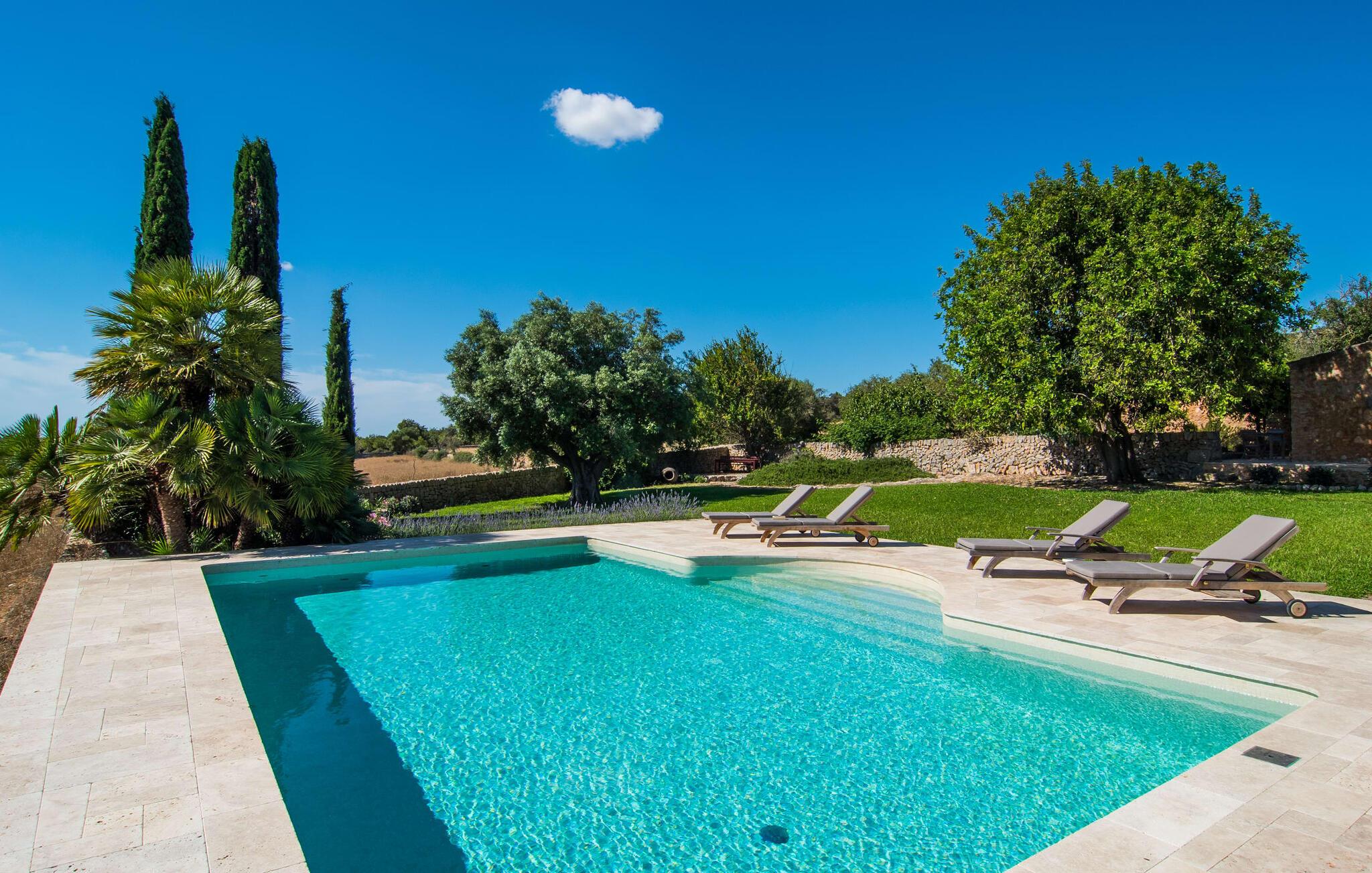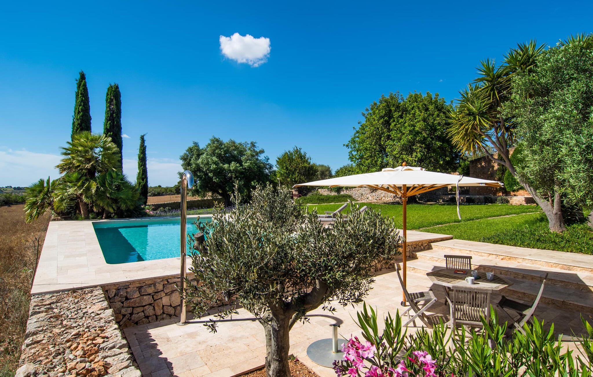 Feriehuset "Can Coca" ligger på en velholdt havegrund på den østlige del af Mallorca. Takket være dens lette beliggenhed på bjergsiden byder den på en vidunderlig udsigt over de bølgende bakker øst for Manacor. Ejendommen består af et hovedhus, en separat staldbygning og et gammelt redskabsskur. Bygningerne er fra 1900 og er omhyggeligt renoveret. Mens hovedhuset ikke er udlejet, kan I tilbringe en afslappende ferie i den tidligere staldbygning. Med et boligareal på 70 m² blev det omdannet til en hyggelig, smagfuldt indrettet oase. Poolen kan oplyses og har modstrømsanlæg. Der er i alt ca. 300 m² åbne og overdækkede terrasser. På hver af dem kan I spise jeres måltider, slappe af og solbade beskyttet mod vinden. Der er også en muret grill og en gammel brødovn til jeres rådighed. Alt efter årstiden kan I forkæle jer selv med appelsiner, citroner, figner og krydderurter i den lille romantiske frugthave. Boligarealet i sommerhuset til 4 personer er bygget i stueetagen. I bydes velkommen af en åben, hyggelig stue med pejs og spiseplads. Tilstødende er der et moderne, veludstyret landkøkken. De to hyggelige dobbeltværelser har hver deres udgang til den lille terrasse ved siden af frugtplantagen. Derudover er der et bryggers og et flot badeværelse. Da hele huset har gulvvarme, er denne skønne ejendom ikke kun et meget familievenligt feriehus, men også det ideelle sted for vandrere, der ønsker at kombinere deres vandreture med afslappet afslapning i den milde middelhavs vintersæson. Feriehuset ligger ca. 7 km øst for Manacor. Her finder I gode indkøbsmuligheder. Inden for 20 minutter i bil kan I nå flere smukke bugter på Mallorcas østkyst, herunder Sa Coma og Porto Cristo. Lige så tæt på ligger det familievenlige feriested Cala Millor med et godt udvalg af barer og restauranter.