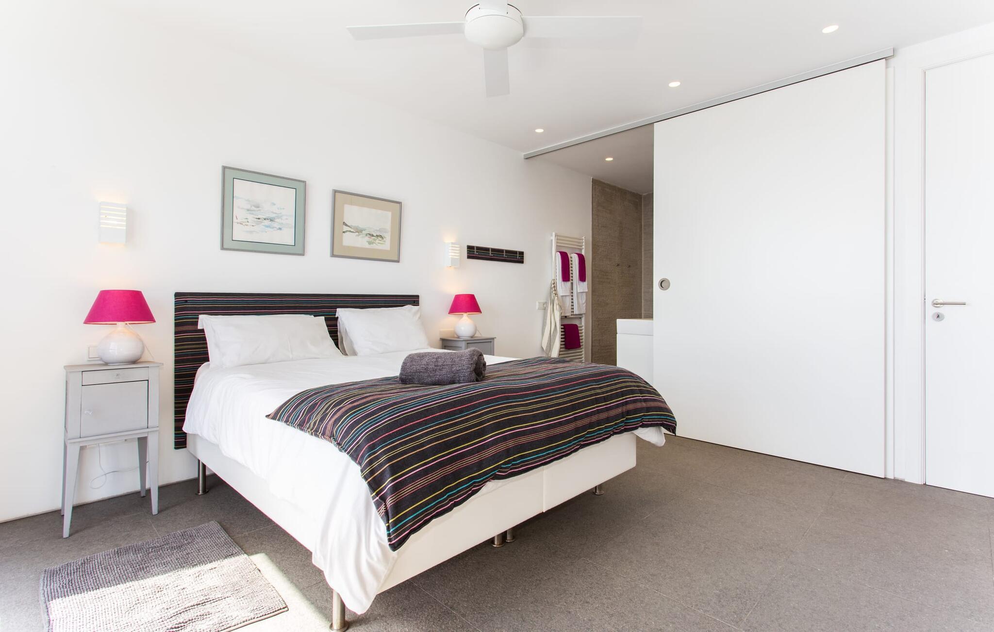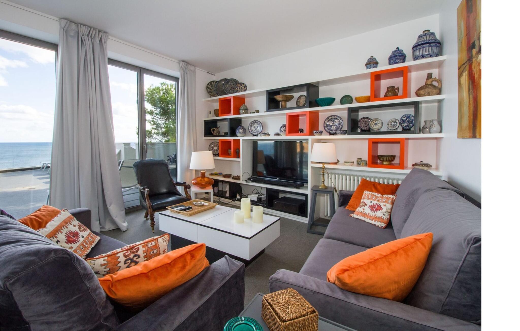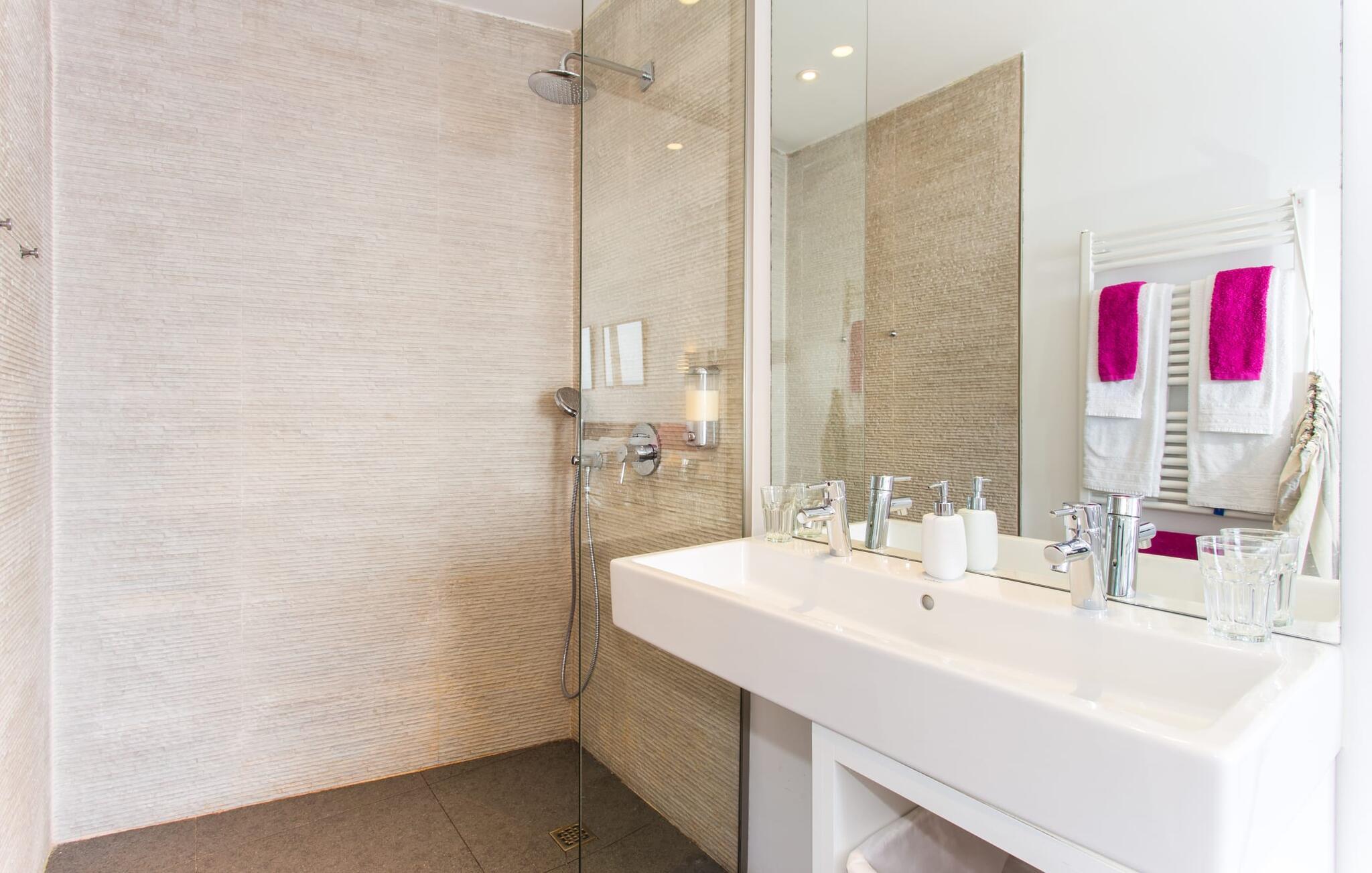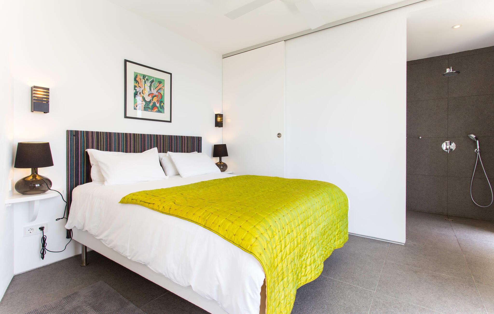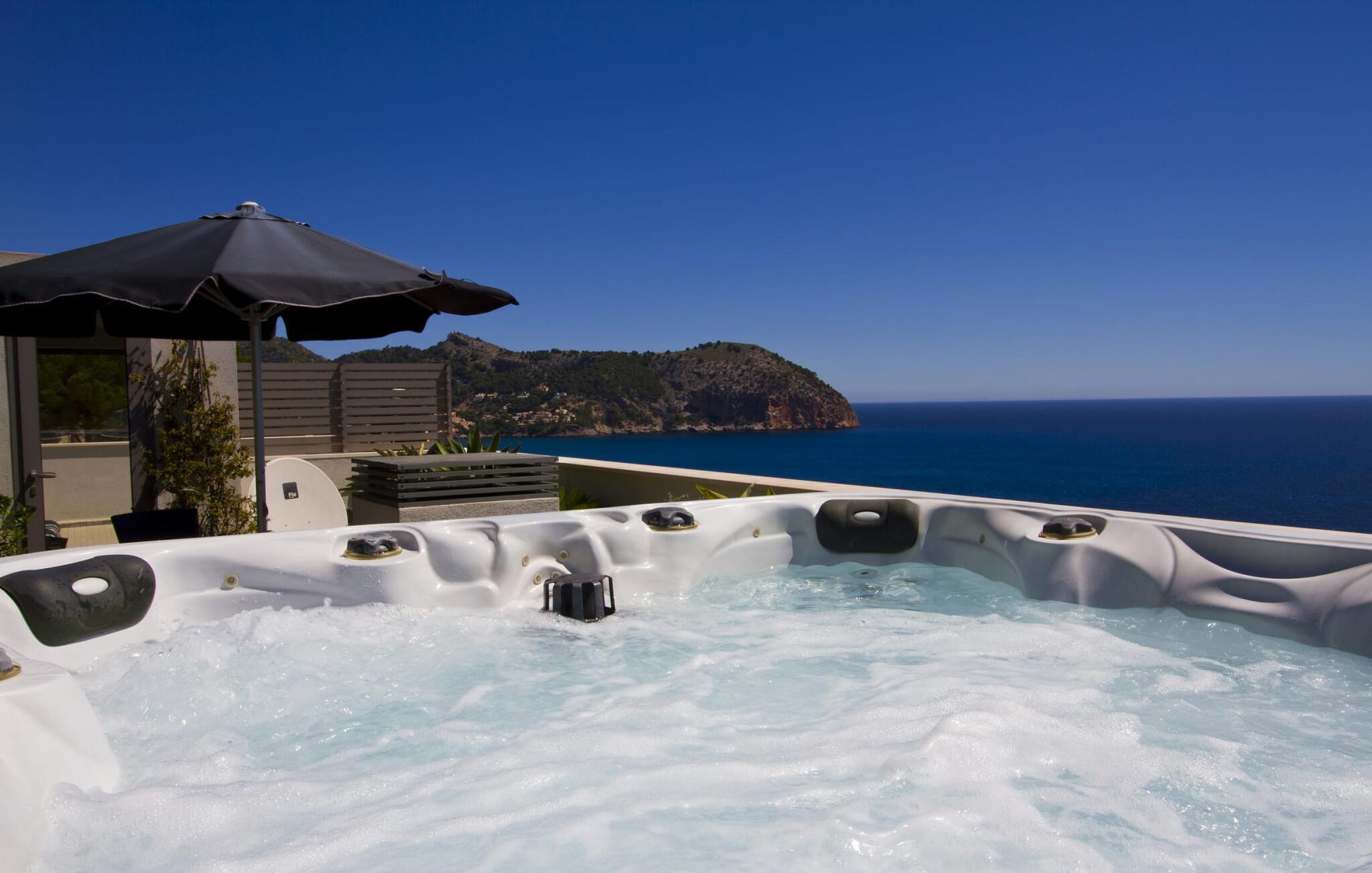 Villa "Can Ema" er en betagende luksusejendom på et klippefyldt plateau på Mallorcas østkyst. Denne arkitektonisk betagende villa vender mod sydøst og sikrer smukt solopgangslys og rigeligt solskin hele dagen. Den ekspansive terrasse med havudsigt har en infinity-pool, udendørs spiseplads og gasgrill, alt sammen bekvemt ved siden af det primære opholdsrum. Et skyggefuldt loungeområde er det perfekte sted at slappe af. Et andet højdepunkt er tagterrassen med liggestole, betagende havudsigt og spabad. Adgang til villaen er fra oven via en elevator, der transporterer gæster fra parkeringspladsen til den primære åben planløsning. Køkkenet er problemfrit integreret i spise- og opholdsområderne og byder på udsigt og nem adgang til poolterrassen gennem store glasskydedøre. Villaen har to dobbeltværelser med en-suite badeværelser og små terrasser med havudsigt, samt ekstra opholdsrum i kælderen med panoramavinduer og yderligere to soveværelser med dobbeltsenge. Alle soveområder har aircondition, og villaen er udstyret med varme, hvilket sikrer komfort hele året rundt for et behageligt ophold i Villa "Can Ema". Den absolut luksuriøse villa “Can Ema” ligger i udkanten af den rolige kystby Canyamel i en førsteklasses beliggenhed direkte ved havet og byder på en betagende 180 graders udsigt. Canyamel tilbyder flere meget gode restauranter og barer samt supermarkeder til daglige indkøb. Desuden kan I på få minutters kørsel nå middelalderbyen Artà og den travle havn Cala Ratjada.