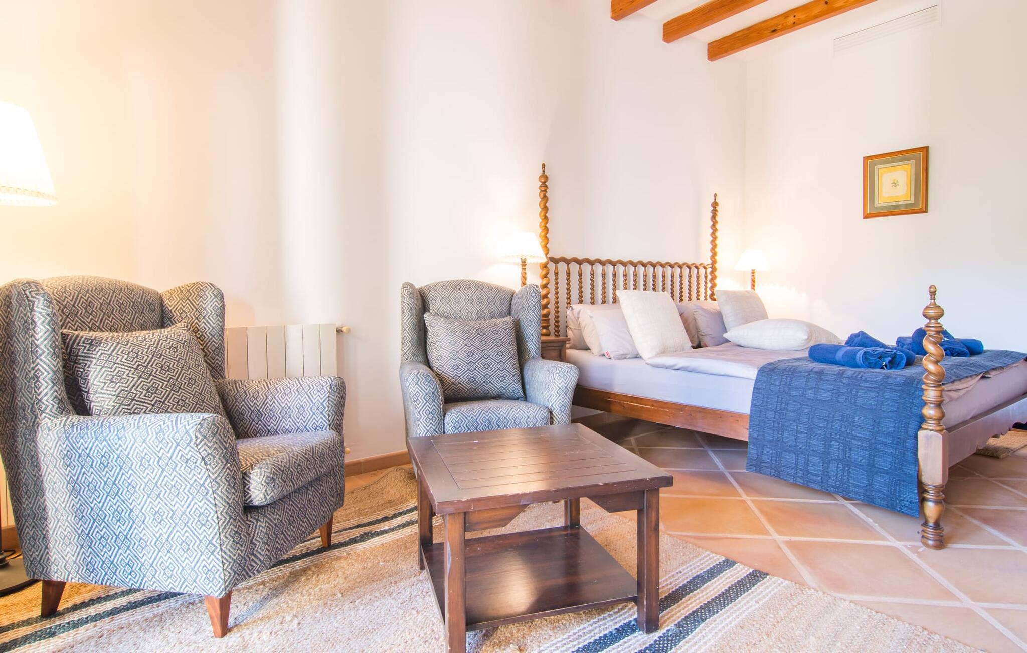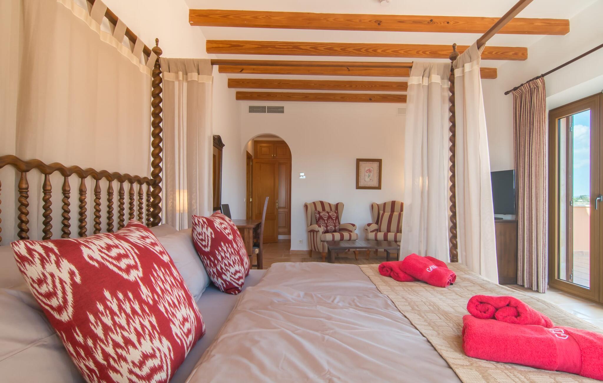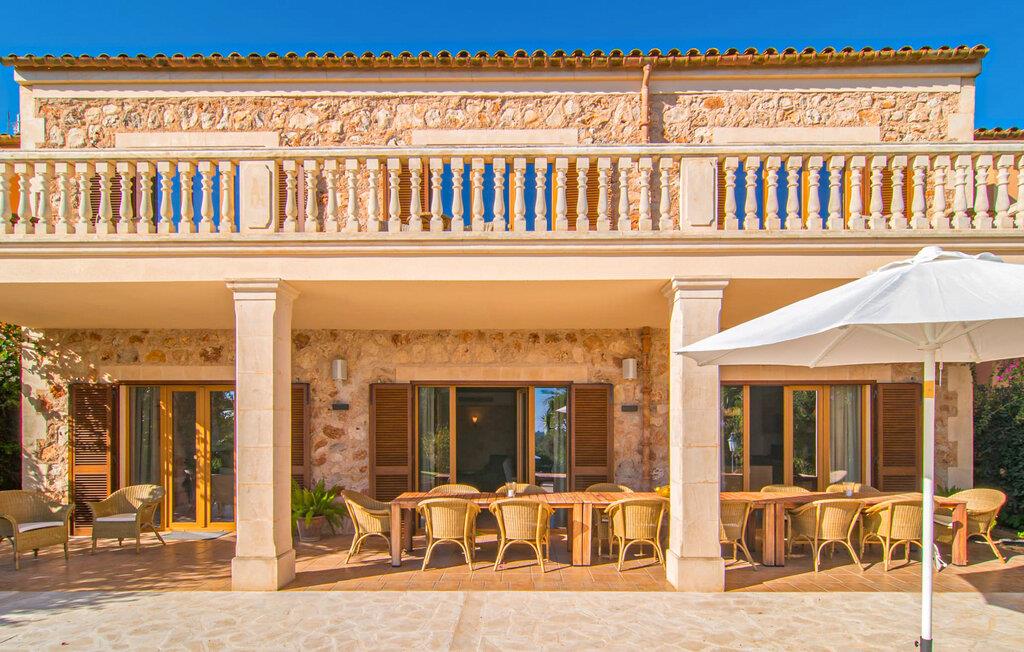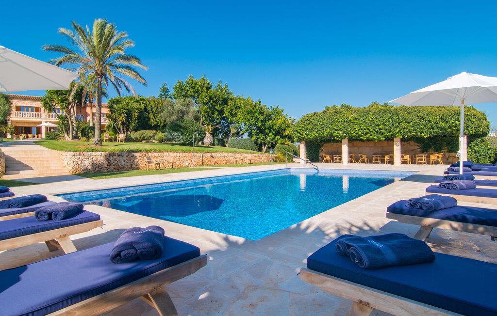 Den imponerende villaejendom "Can Ferragut de Porto Cristo" byder os velkommen med ynde og charme samt en betydelig ejendomsstørrelse på omkring 26.000 m². Haven, der indrammer huset, kan med rette kaldes en park, fordi den systematisk er anlagt med frodige græsplæner, enorme palmer, cypresser, frugttræer og utallige planter, der understreger middelhavskarakteren. Det er derfor næppe overraskende, at der er utallige steder at have det godt på ejendommen - til et øjebliks stilhed, meditation, en morgenyoga-session. Golfspillere eller sportsinteresserede kan nyde et ideelt træningsområde på de velholdte putting greens og træne til udfordringerne på de mallorcanske golfbaner. En smal sti fører fra det elegante feriehus til det attraktive poolområde. På den omkringliggende solterrasse kan I nyde det behagelige klima på komfortable liggestole og finde grønne, skyggefulde pletter. Yderligere overdækkede, jordnære terrasser og solbeskinnede altaner fuldender husets sofistikerede arkitektur. Særligt attraktivt er, at hvert af de velholdte dobbeltværelser har udgang til egen eller fælles terrasse - de seks stille værelser bliver selvstændige enheder med lejlighedspræg. Det en-suite badeværelse er naturligvis et absolut must og placerer denne fabelagtige villa i det øvre premium segment. Husets pragt er indlysende, men dets sofistikering ligger i detaljerne. Udover ovennævnte suiter finder I på 900 m² boligareal en rummelig opholdsstue med hyggelig salonstemning. Den består af et sofaområde foran en pejs og satellit-tv (du kan også nyde et væghængt tv i hvert af de smarte dobbeltværelser), en åben spiseplads, et praktisk opholdsområde og et hyggeligt læsehjørne. Vinduerne åbner ud til verandaen, hvorfor de rummelige værelser er badet i behageligt lysindfald med terracotta-fliser og fritlagte træbjælker. Køkkenet er naturligvis fuldt udstyret og har køleskabe nok til, at I altid har en kølig drink lige ved hånden. I interiøret danner en klassisk mallorcansk stil med et strejf af landlig hygge en særlig attraktiv symbiose med moderne dekorative elementer, der skaber en unik blanding af stilarter. Her kan I ikke kun tilbringe en perfekt ferie, men også holde en større fest i en afslappet atmosfære. Den imponerende villa "Can Ferragut de Porto Cristo" er omgivet af en lige så imponerende stor park med golf putting greens. Den storslåede ejendom er beliggende nær den tidligere fiskerby Porto Cristo på Mallorcas østkyst. I kan gøre jeres indkøb her i supermarkedet eller på det ugentlige marked. Den nærliggende Manacor er ideel til omfattende shoppingture. Smukke strande med fint sand som Cala Anguila eller Cala Mendia er kun en kort køretur væk.