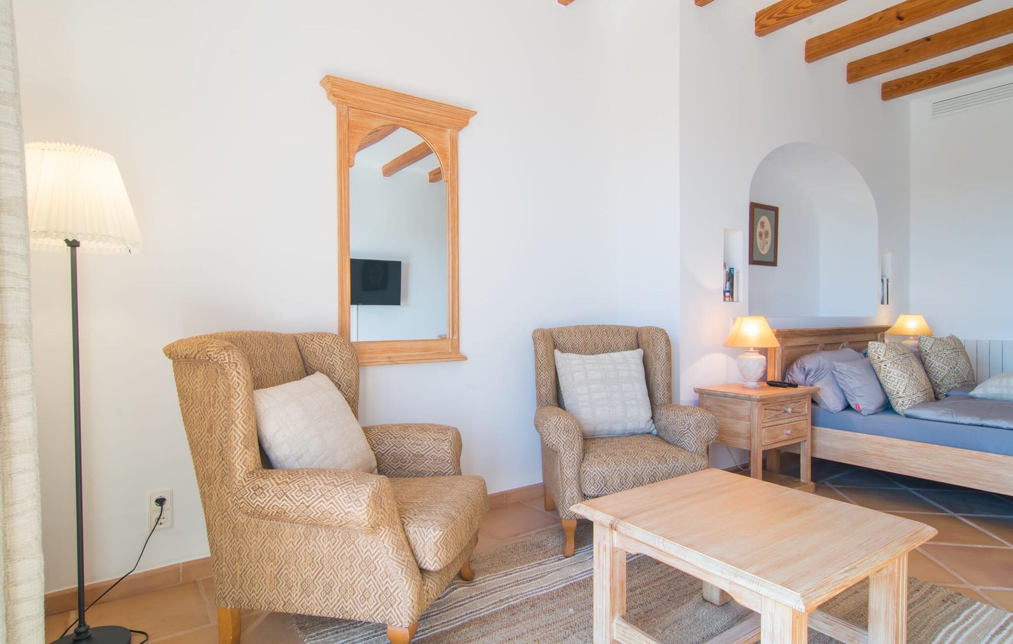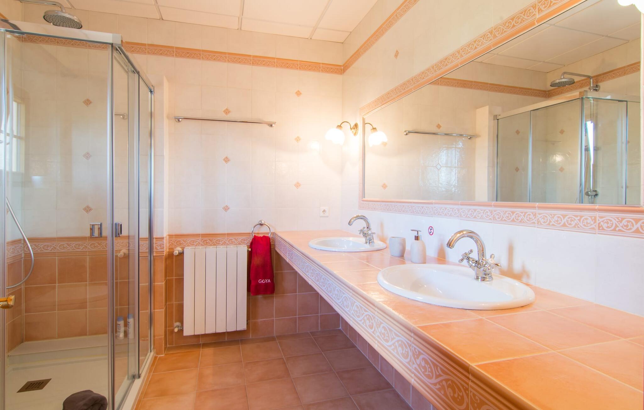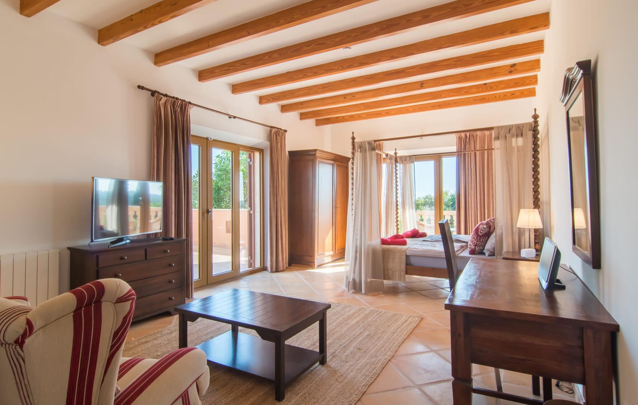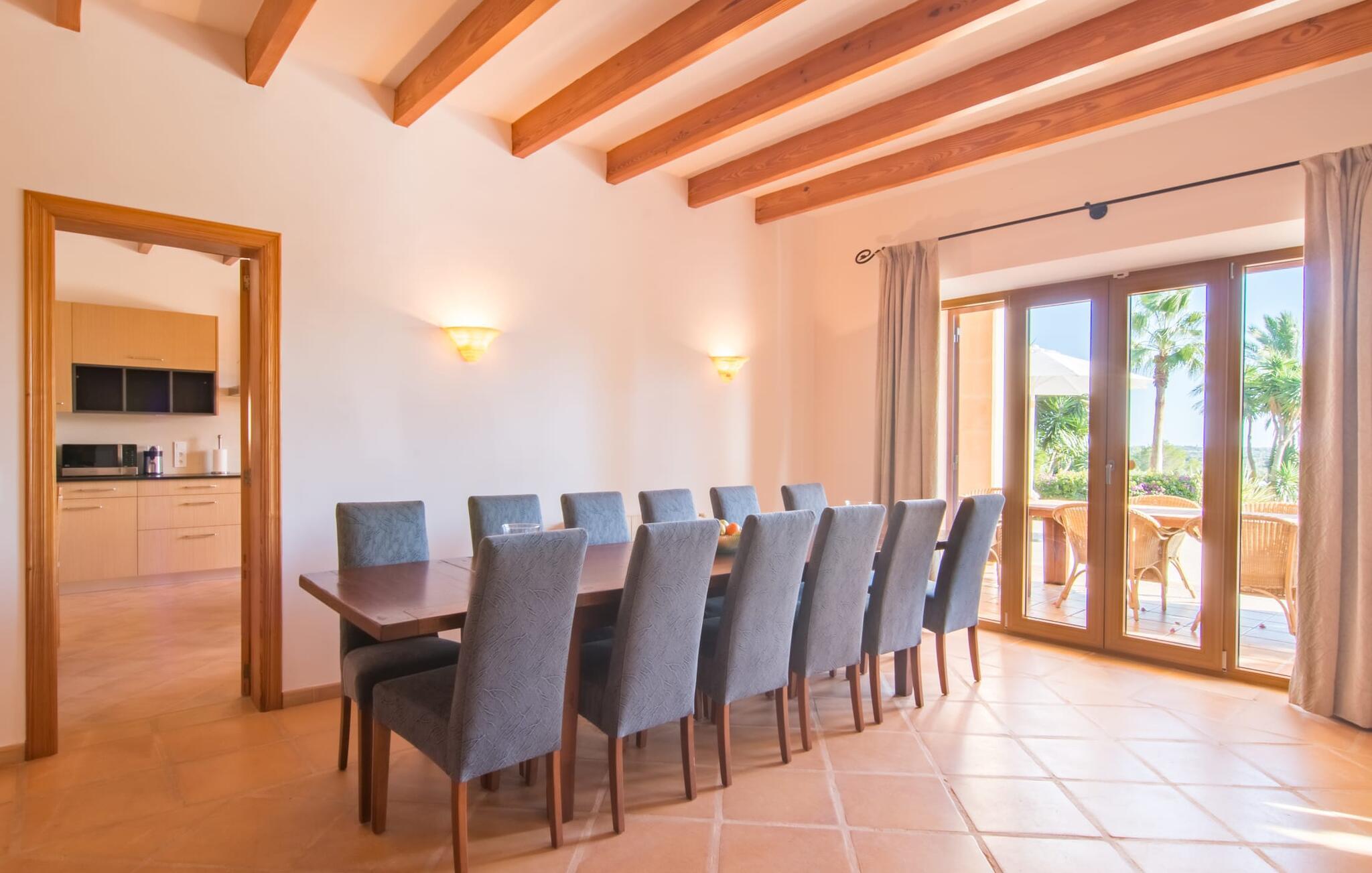 Den imponerende villaejendom "Can Ferragut de Porto Cristo" byder os velkommen med ynde og charme samt en betydelig ejendomsstørrelse på omkring 26.000 m². Haven, der indrammer huset, kan med rette kaldes en park, fordi den systematisk er anlagt med frodige græsplæner, enorme palmer, cypresser, frugttræer og utallige planter, der understreger middelhavskarakteren. Det er derfor næppe overraskende, at der er utallige steder at have det godt på ejendommen - til et øjebliks stilhed, meditation, en morgenyoga-session. Golfspillere eller sportsinteresserede kan nyde et ideelt træningsområde på de velholdte putting greens og træne til udfordringerne på de mallorcanske golfbaner. En smal sti fører fra det elegante feriehus til det attraktive poolområde. På den omkringliggende solterrasse kan I nyde det behagelige klima på komfortable liggestole og finde grønne, skyggefulde pletter. Yderligere overdækkede, jordnære terrasser og solbeskinnede altaner fuldender husets sofistikerede arkitektur. Særligt attraktivt er, at hvert af de velholdte dobbeltværelser har udgang til egen eller fælles terrasse - de seks stille værelser bliver selvstændige enheder med lejlighedspræg. Det en-suite badeværelse er naturligvis et absolut must og placerer denne fabelagtige villa i det øvre premium segment. Husets pragt er indlysende, men dets sofistikering ligger i detaljerne. Udover ovennævnte suiter finder I på 900 m² boligareal en rummelig opholdsstue med hyggelig salonstemning. Den består af et sofaområde foran en pejs og satellit-tv (du kan også nyde et væghængt tv i hvert af de smarte dobbeltværelser), en åben spiseplads, et praktisk opholdsområde og et hyggeligt læsehjørne. Vinduerne åbner ud til verandaen, hvorfor de rummelige værelser er badet i behageligt lysindfald med terracotta-fliser og fritlagte træbjælker. Køkkenet er naturligvis fuldt udstyret og har køleskabe nok til, at I altid har en kølig drink lige ved hånden. I interiøret danner en klassisk mallorcansk stil med et strejf af landlig hygge en særlig attraktiv symbiose med moderne dekorative elementer, der skaber en unik blanding af stilarter. Her kan I ikke kun tilbringe en perfekt ferie, men også holde en større fest i en afslappet atmosfære. Den imponerende villa "Can Ferragut de Porto Cristo" er omgivet af en lige så imponerende stor park med golf putting greens. Den storslåede ejendom er beliggende nær den tidligere fiskerby Porto Cristo på Mallorcas østkyst. I kan gøre jeres indkøb her i supermarkedet eller på det ugentlige marked. Den nærliggende Manacor er ideel til omfattende shoppingture. Smukke strande med fint sand som Cala Anguila eller Cala Mendia er kun en kort køretur væk.