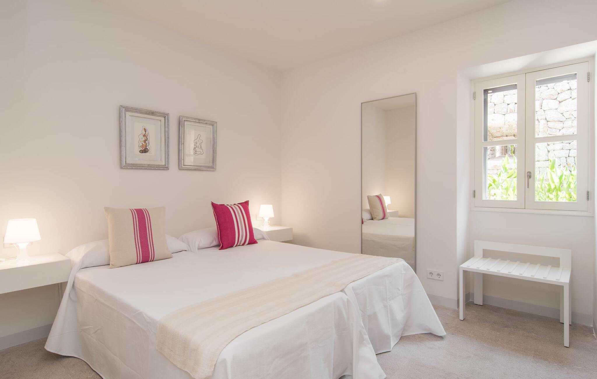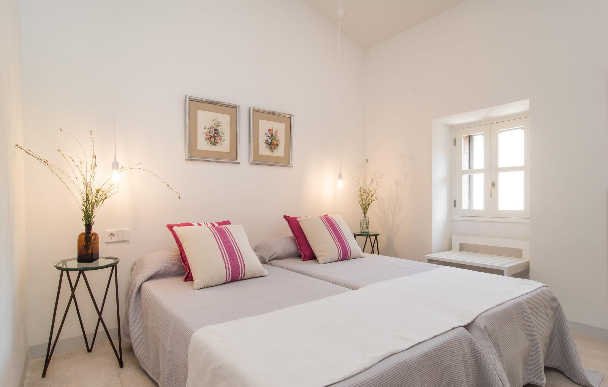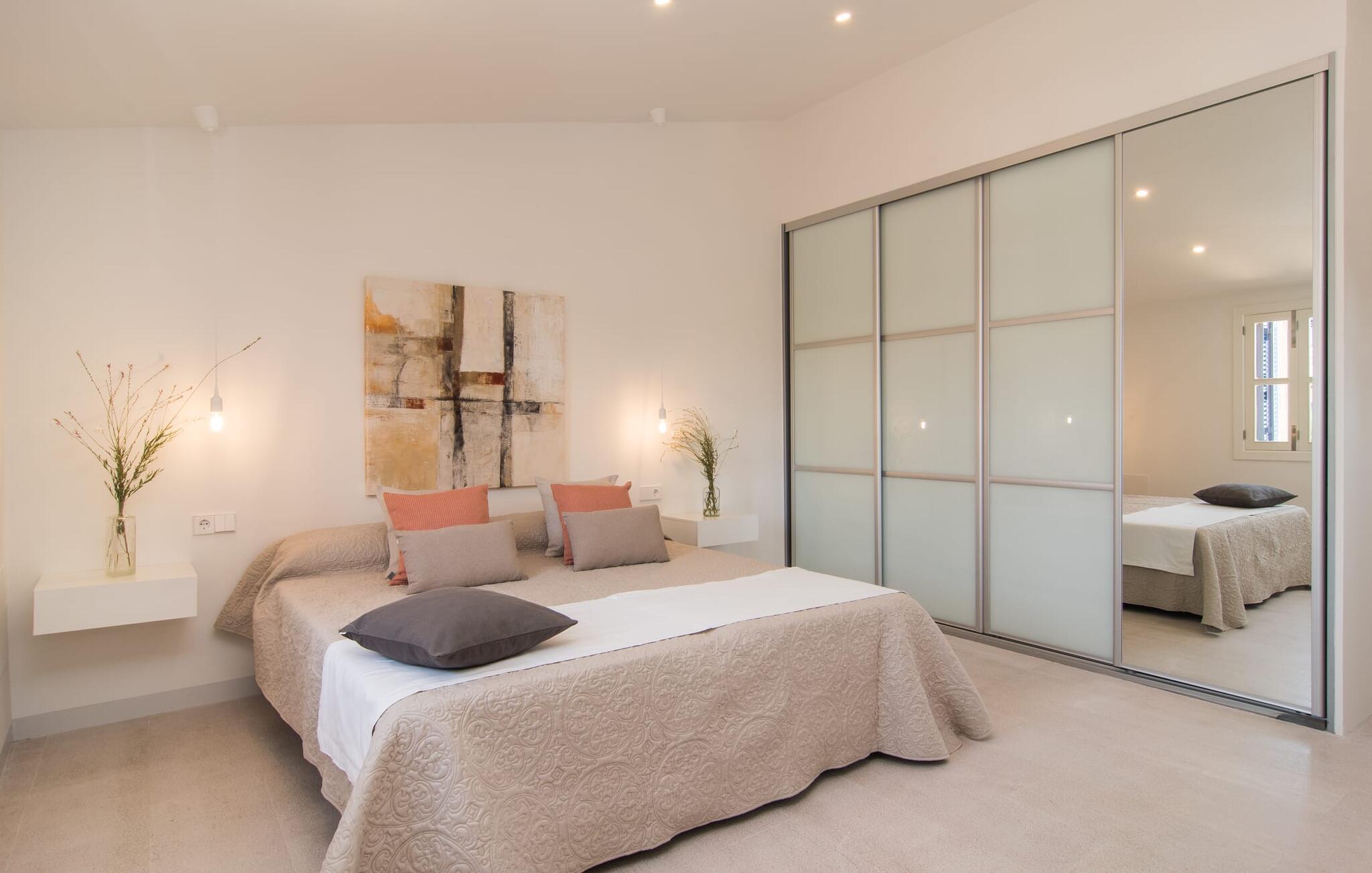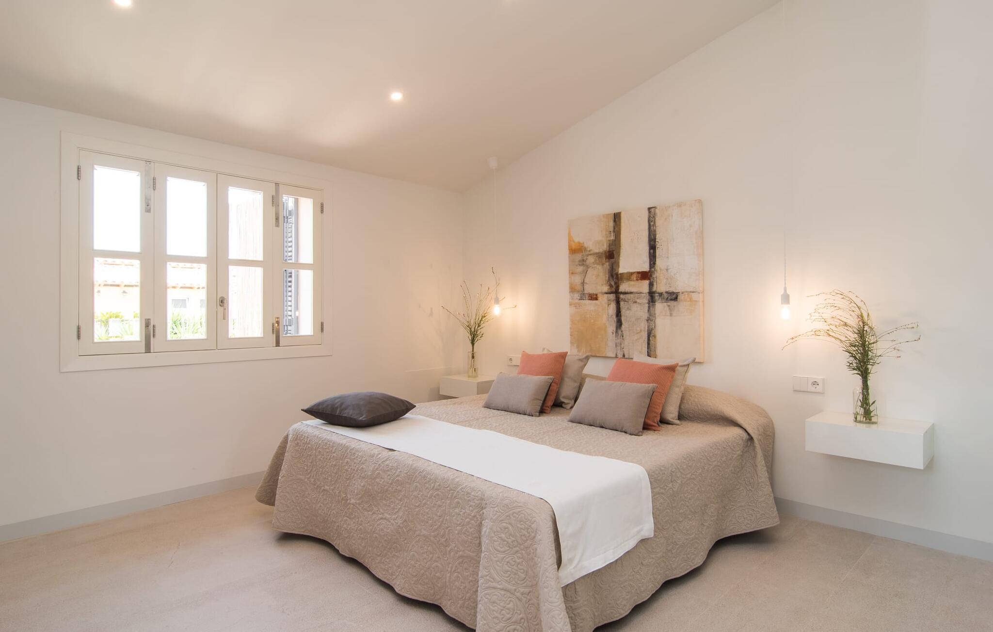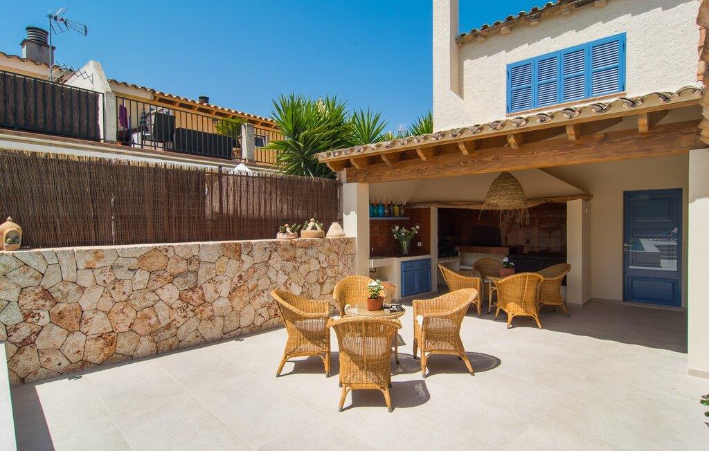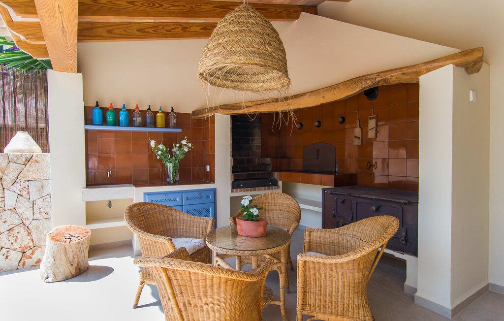 At bo i en typisk mallorcansk landsby, være i stand til at gøre hverdagens ferieærinder inden for gåafstand og stadig nyde et meget privat, ekstremt hyggeligt rum - rækkehuset "Can Font de Costitx" opfylder disse og andre ønsker med lethed. På udendørsområdet scorer den for eksempel point med en særligt smagfuldt indrettet have, som byder på en fantastisk, meget indbydende alsidighed i en overskuelig størrelse. Den pool, der umiddelbart fanger øjet, er selvfølgelig nem at nå via en bred trappe og lover en fornøjelig forfriskning på varme ø-dage. Lige ved siden af det rustikke, knudrede oliventræ venter komfortable liggestole på at blive brugt flittigt - glem ikke jeres yndlingsdrink! I kan sidde i det overdækkede udekøkken eller åbent under middelhavshimlen i siddeområderne omkring huset og nyde en solid grill her og der om aftenen for at afslutte dagen. Her er også en pizzaovn! Fælles måltider kan fejres ved et langbord lige om hjørnet – her sidder man omgivet af natursten, gulv til loft vinduer og selvfølgelig frit udsyn til haven. Det absolut bedste sted for socialt samvær på ethvert tidspunkt af dagen! Men indersiden af huset har også nogle af de smukkeste steder. Den traditionelle bygning blev omhyggeligt renoveret og med stor sans for æstetik blev vægge i natursten delvist bevaret og kombineret med moderne, elegante møbler og subtile farver. Store vinduespartier slipper masser af lys ind og giver yderligere og meget værdifuldt lys til murværket. Alle former for kunst og unikke dekorative stykker tilføjer stilfulde accenter, der effektivt understreger den smagfulde stemning. Den ultramoderne indgangsdør er også et rigtigt blikfang, hvorigennem man kan se det rustikke murværk udenfor. En stor stue/spisestue, åben til det fuldt udstyrede køkken, byder på komfortable sofaer og et bord til indendørs spisning. Det usædvanlige er, at der er en separat tv-stue med en kæmpe sofa - så afslappede filmaftener kan planlægges på forhånd. Denne stue i stueetagen har også et soveværelse med dobbeltseng og et badeværelse. De fire ekstra soveværelser og et andet badeværelse er placeret ovenpå. Et varmt-koldt klimaanlæg gør det attraktivt og komfortabelt at bo i denne lejlighedsferiebolig på Mallorca året rundt. Det meget kærligt og æstetisk renoverede rækkehus "Can Font de Costitx" er beliggende i centrum af landsbyen Costitx, med fremragende infrastrukturelle forbindelser: I landsbyen finder I et supermarked, barer, restauranter og et bageri - alt i gåafstand pga. til sin placering på den lille gade, der kan nås på kortest mulig tid. Ejendommens centrale beliggenhed på øen gør den til det ideelle udgangspunkt for dagsture eller cykelture.