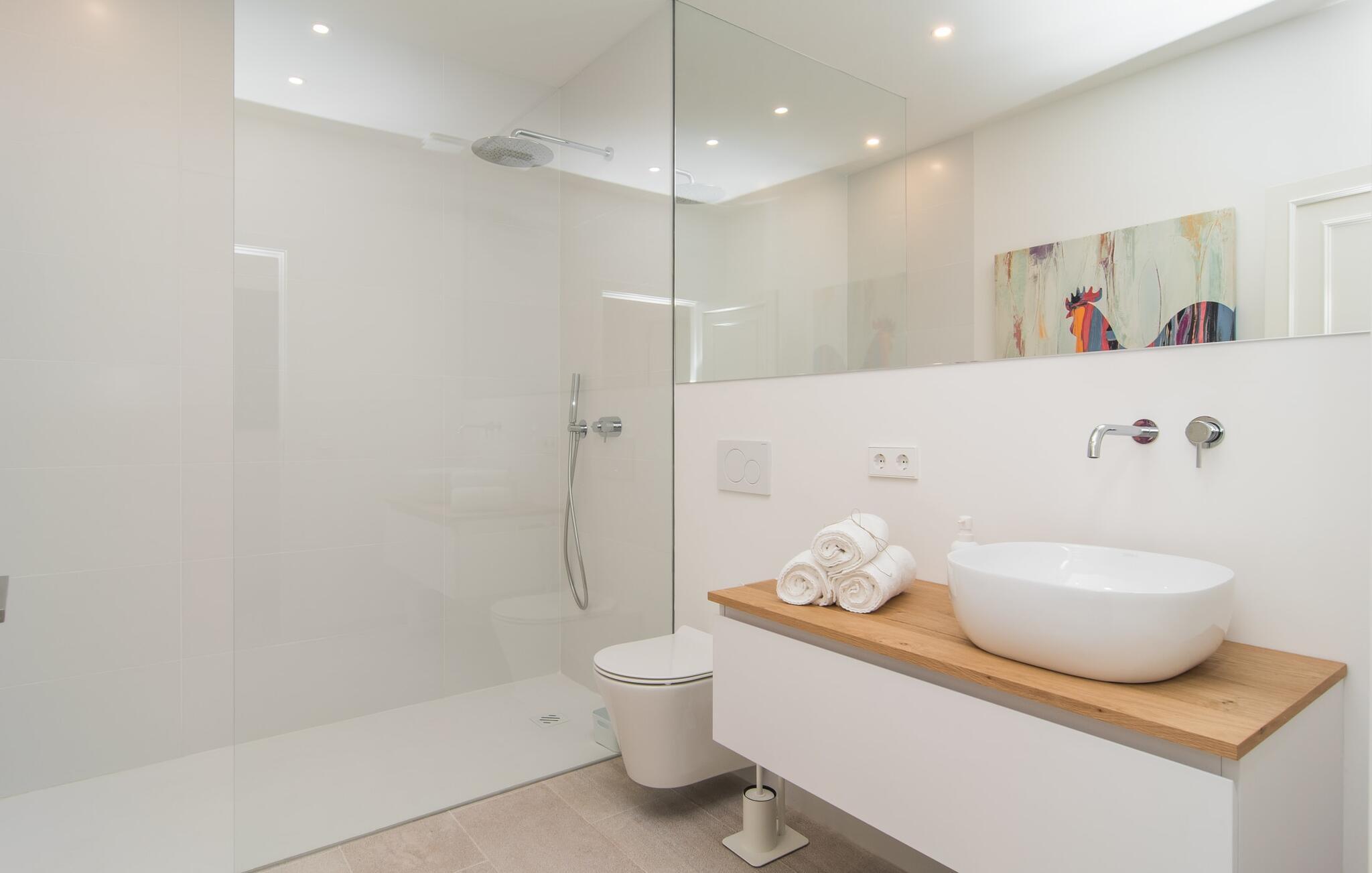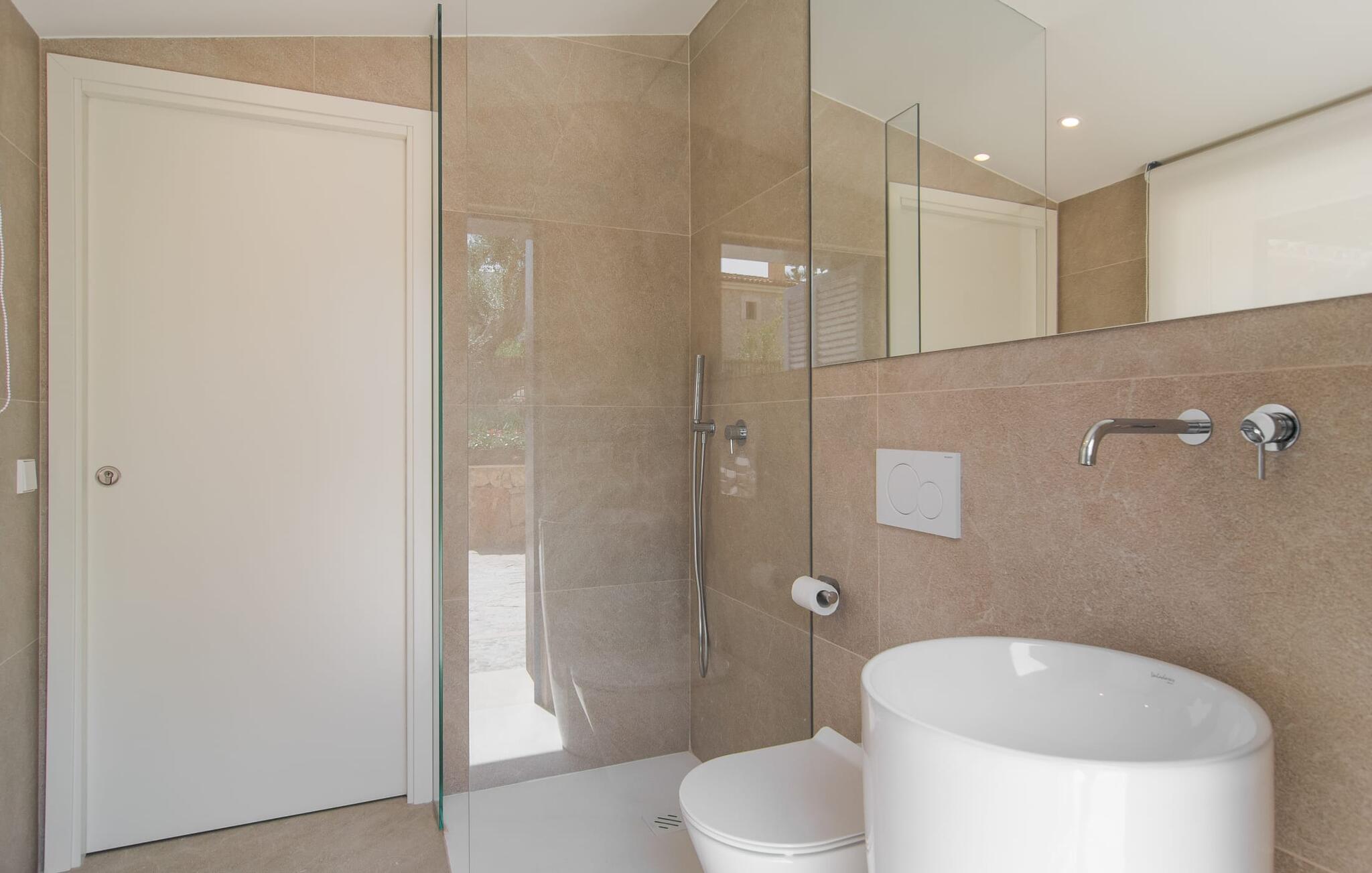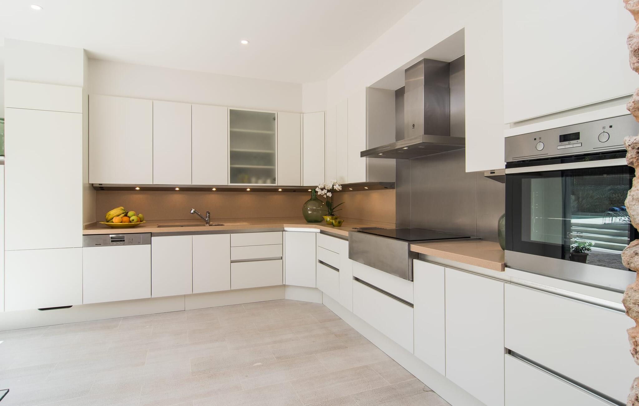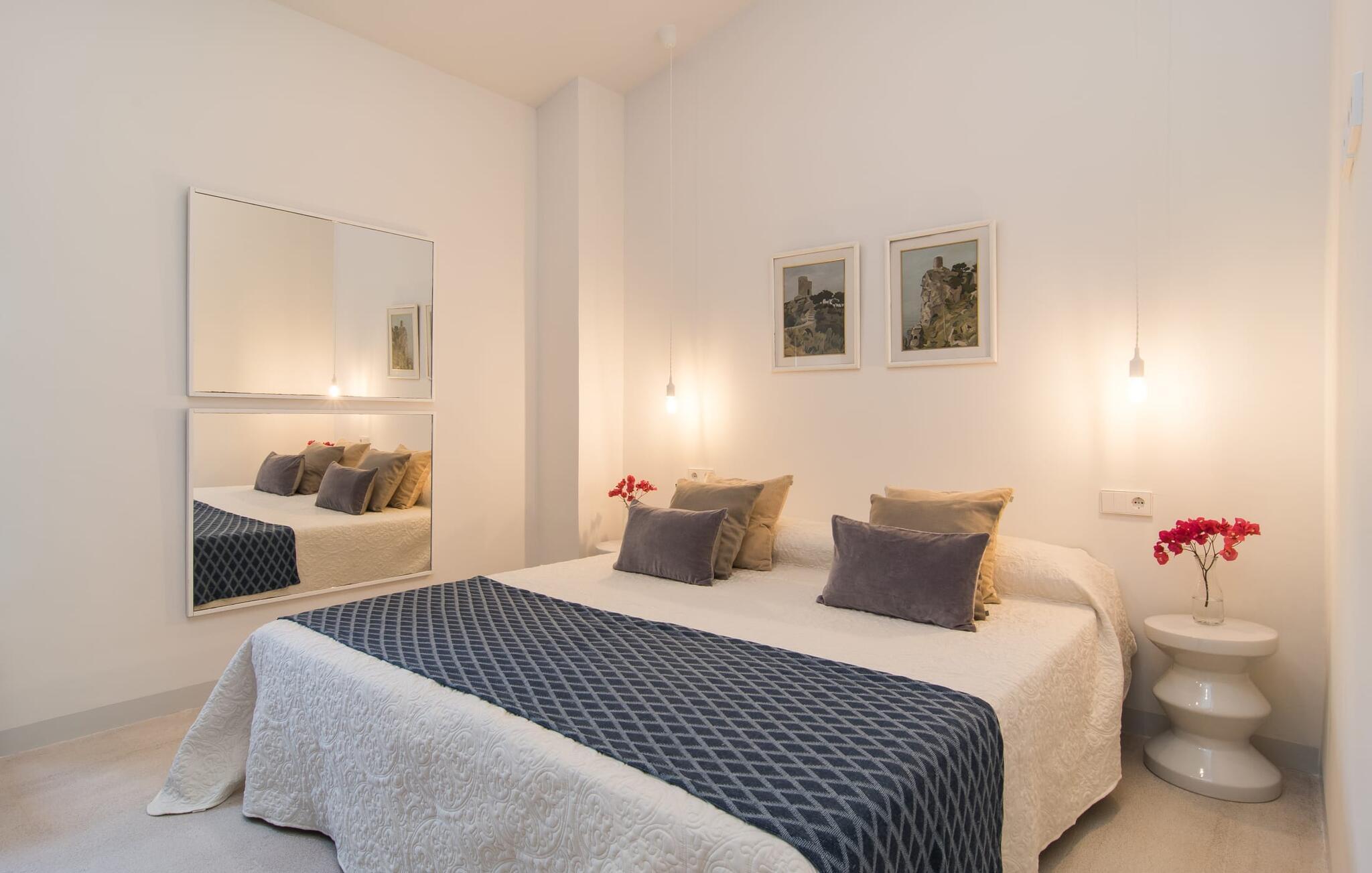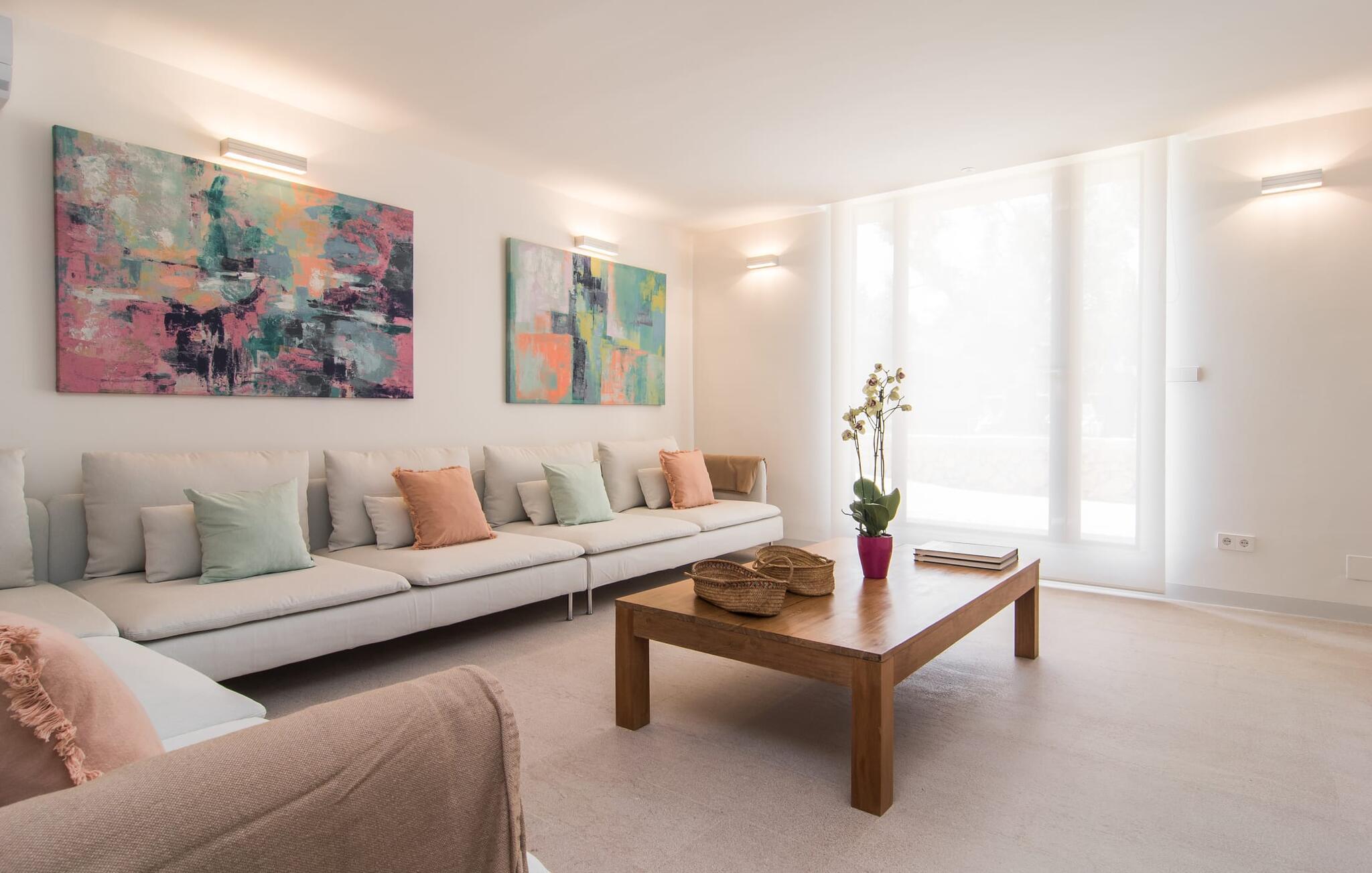 At bo i en typisk mallorcansk landsby, være i stand til at gøre hverdagens ferieærinder inden for gåafstand og stadig nyde et meget privat, ekstremt hyggeligt rum - rækkehuset "Can Font de Costitx" opfylder disse og andre ønsker med lethed. På udendørsområdet scorer den for eksempel point med en særligt smagfuldt indrettet have, som byder på en fantastisk, meget indbydende alsidighed i en overskuelig størrelse. Den pool, der umiddelbart fanger øjet, er selvfølgelig nem at nå via en bred trappe og lover en fornøjelig forfriskning på varme ø-dage. Lige ved siden af det rustikke, knudrede oliventræ venter komfortable liggestole på at blive brugt flittigt - glem ikke jeres yndlingsdrink! I kan sidde i det overdækkede udekøkken eller åbent under middelhavshimlen i siddeområderne omkring huset og nyde en solid grill her og der om aftenen for at afslutte dagen. Her er også en pizzaovn! Fælles måltider kan fejres ved et langbord lige om hjørnet – her sidder man omgivet af natursten, gulv til loft vinduer og selvfølgelig frit udsyn til haven. Det absolut bedste sted for socialt samvær på ethvert tidspunkt af dagen! Men indersiden af huset har også nogle af de smukkeste steder. Den traditionelle bygning blev omhyggeligt renoveret og med stor sans for æstetik blev vægge i natursten delvist bevaret og kombineret med moderne, elegante møbler og subtile farver. Store vinduespartier slipper masser af lys ind og giver yderligere og meget værdifuldt lys til murværket. Alle former for kunst og unikke dekorative stykker tilføjer stilfulde accenter, der effektivt understreger den smagfulde stemning. Den ultramoderne indgangsdør er også et rigtigt blikfang, hvorigennem man kan se det rustikke murværk udenfor. En stor stue/spisestue, åben til det fuldt udstyrede køkken, byder på komfortable sofaer og et bord til indendørs spisning. Det usædvanlige er, at der er en separat tv-stue med en kæmpe sofa - så afslappede filmaftener kan planlægges på forhånd. Denne stue i stueetagen har også et soveværelse med dobbeltseng og et badeværelse. De fire ekstra soveværelser og et andet badeværelse er placeret ovenpå. Et varmt-koldt klimaanlæg gør det attraktivt og komfortabelt at bo i denne lejlighedsferiebolig på Mallorca året rundt. Det meget kærligt og æstetisk renoverede rækkehus "Can Font de Costitx" er beliggende i centrum af landsbyen Costitx, med fremragende infrastrukturelle forbindelser: I landsbyen finder I et supermarked, barer, restauranter og et bageri - alt i gåafstand pga. til sin placering på den lille gade, der kan nås på kortest mulig tid. Ejendommens centrale beliggenhed på øen gør den til det ideelle udgangspunkt for dagsture eller cykelture.