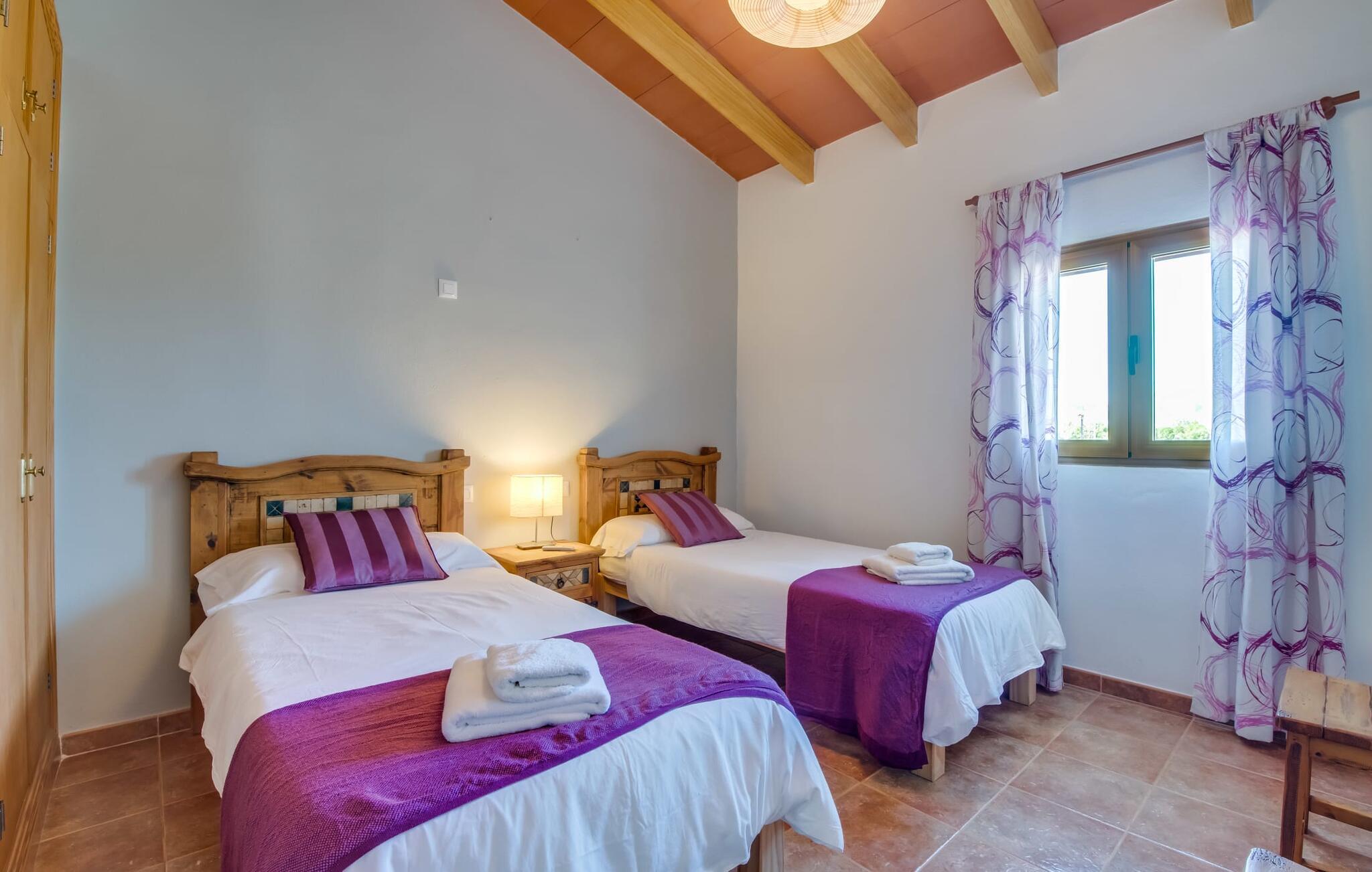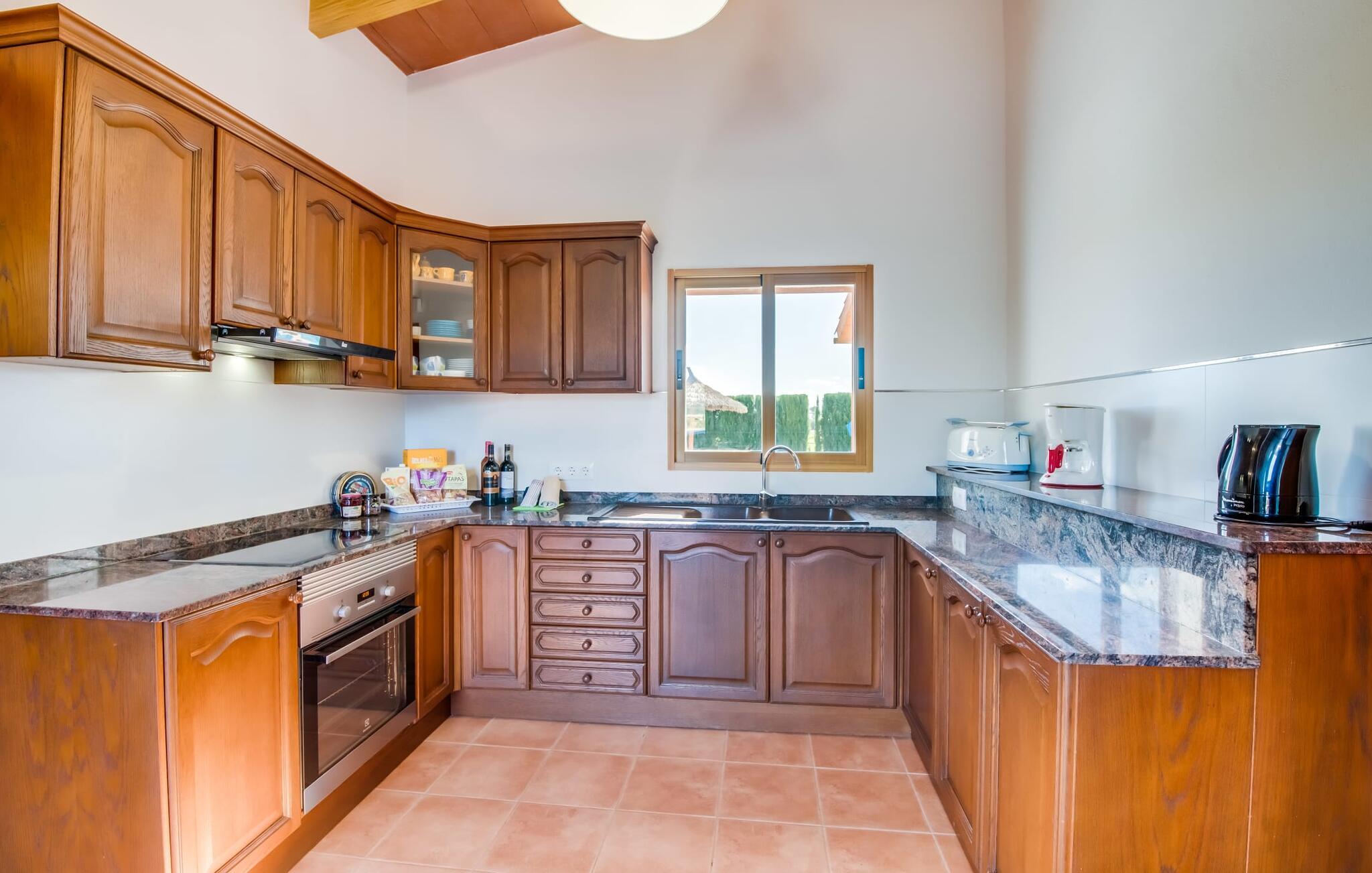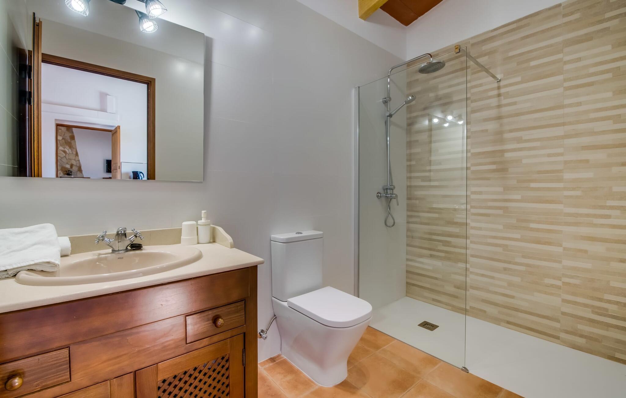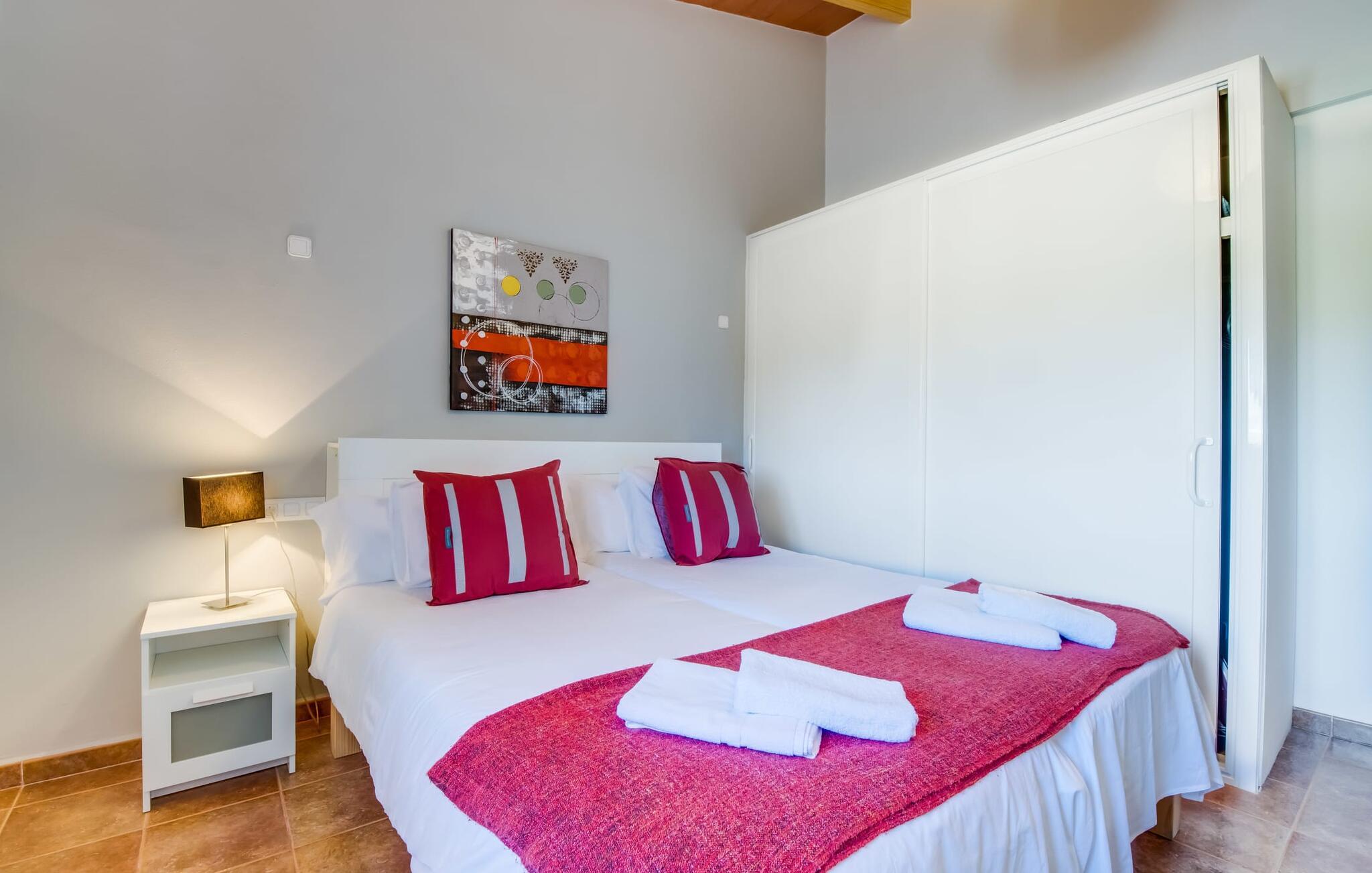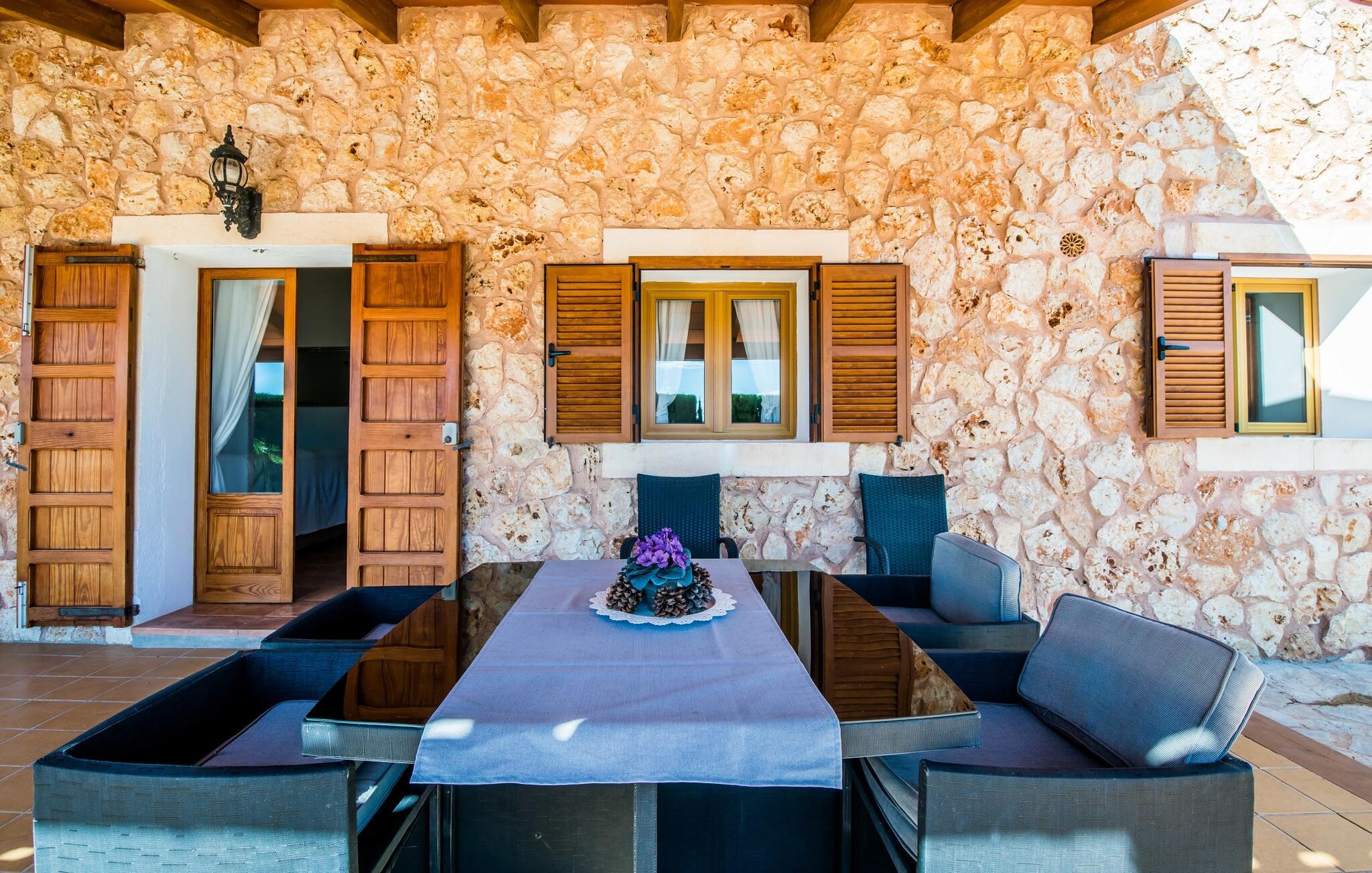En fortryllende oase midt i naturen og i umiddelbar nærhed af landsbyen Sencelles - sådan præsenterer det indbydende naturstensferiehus sig. Det er også tæt på en anden af vores udbudte ejendomme, Villa "Can Grau". Et smukt, lukket område byder gæsterne velkommen på en venlig måde og giver straks udsigt til haven, som er præget af græsplæner og terrasser, og som i sin kerne rummer det udendørs områdes højdepunkt: swimmingpoolen. Den 8 x 4 m store pool er omgivet af en attraktiv loungeterrasse og er let tilgængelig via trapper. Der er også en praktisk udendørs bruser. På de fire tilgængelige liggestole kan I slappe af i middelhavslyset til jeres hjertes lyst og måske bare nyde fornøjelsen af at lave ingenting. De afkølede møbler på den smagfuldt designede terrasse inviterer jer til at slappe af, ideelt set med en lækker drink. Dette attraktive sted er ideelt til at fejre en kulinarisk grillfest om aftenen og nyde regionale delikatesser, som måske er friskkøbt samme dag. Selve huset er udstyret med to soveværelser med dobbeltsenge, et badeværelse, et fuldt udstyret køkken og en hyggelig stue/spisestue. Dette rum, der er åbent og centralt på samme tid, tilbyder forskellige måder at tilbringe tid her. På den ene side er der en behagelig sofa, som er et vidunderligt sted at hvile på ethvert tidspunkt af dagen. Hvis I ønsker det, kan I også blive underholdt med en film, da fladskærms-tv med satellitforbindelse er installeret på den modsatte væg. På kølige aftener fremkalder den dekorative pejs behagelig varme og en særlig hyggelig atmosfære, hvis det er nødvendigt. Det massive spisebord lige ved siden af er ideelt til indendørs spisning. Køkkenet, som også er placeret her og er løst adskilt af en disk, er udstyret med alt hvad I har brug for hver dag og er rummeligt og praktisk. En kedel og en filterkaffemaskine er kun inkluderet. To individuelt og æstetisk indrettede soveværelser danner grundlaget for en afslappende søvn. Der er to senge, der måler 0,90 x 2,00 m og en, der måler 1,50 x 2,00 m. Badeværelset er malet i lyse farver og har et moderne design med gode faciliteter. Et strygejern og en hårtørrer er til rådighed i huset, så I ikke behøver at bekymre jer om, at de optager bagageplads. Hvis I har lyst til at udforske byen og shoppe, kan I nå større byer som Inca på ingen tid. Dette er et godt sted at købe sko, da denne by har en lang tradition for læder og sko. For en afslappende dag på stranden, prøv den smukke bugt Alcúdia eller Playa del Muro, for blot at nævne to af mange eksempler. Den venlige naturstensvilla "Can Grau Petit" ligger mellem Inca og Sencelles midt på Mallorca. Herfra har I en vidunderlig udsigt over det brede omkringliggende landskab. I Sencelles og Inca kan I nemt gøre jeres daglige indkøb. Ejendommens bekvemme beliggenhed tillader ture til mange af øens strande (som Es Trenc, Son Serra de Marina og Arenal).