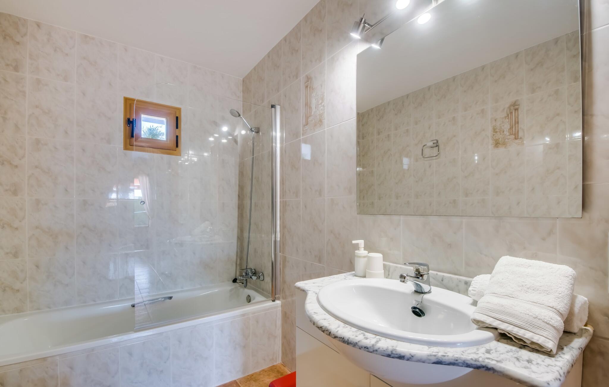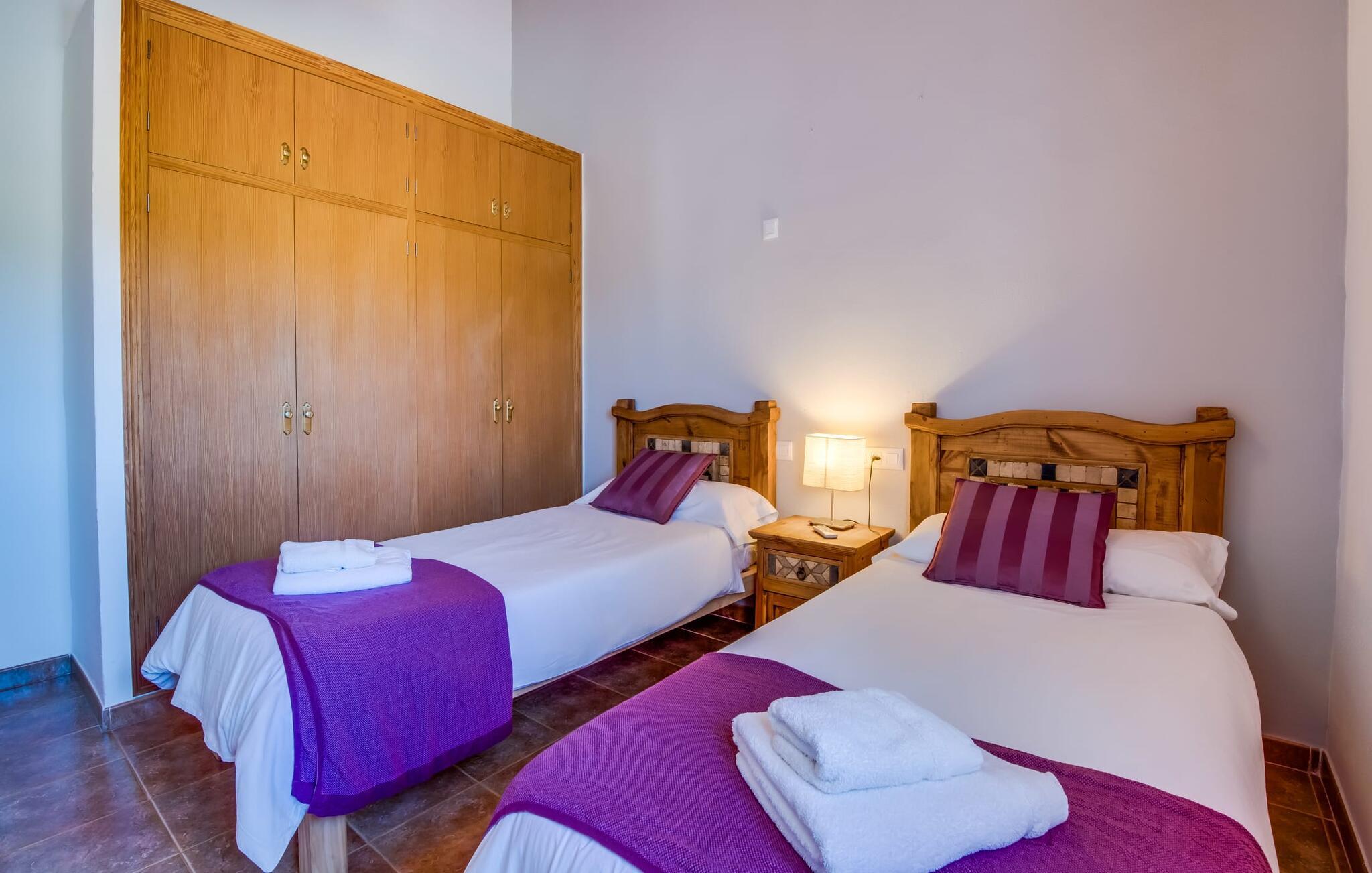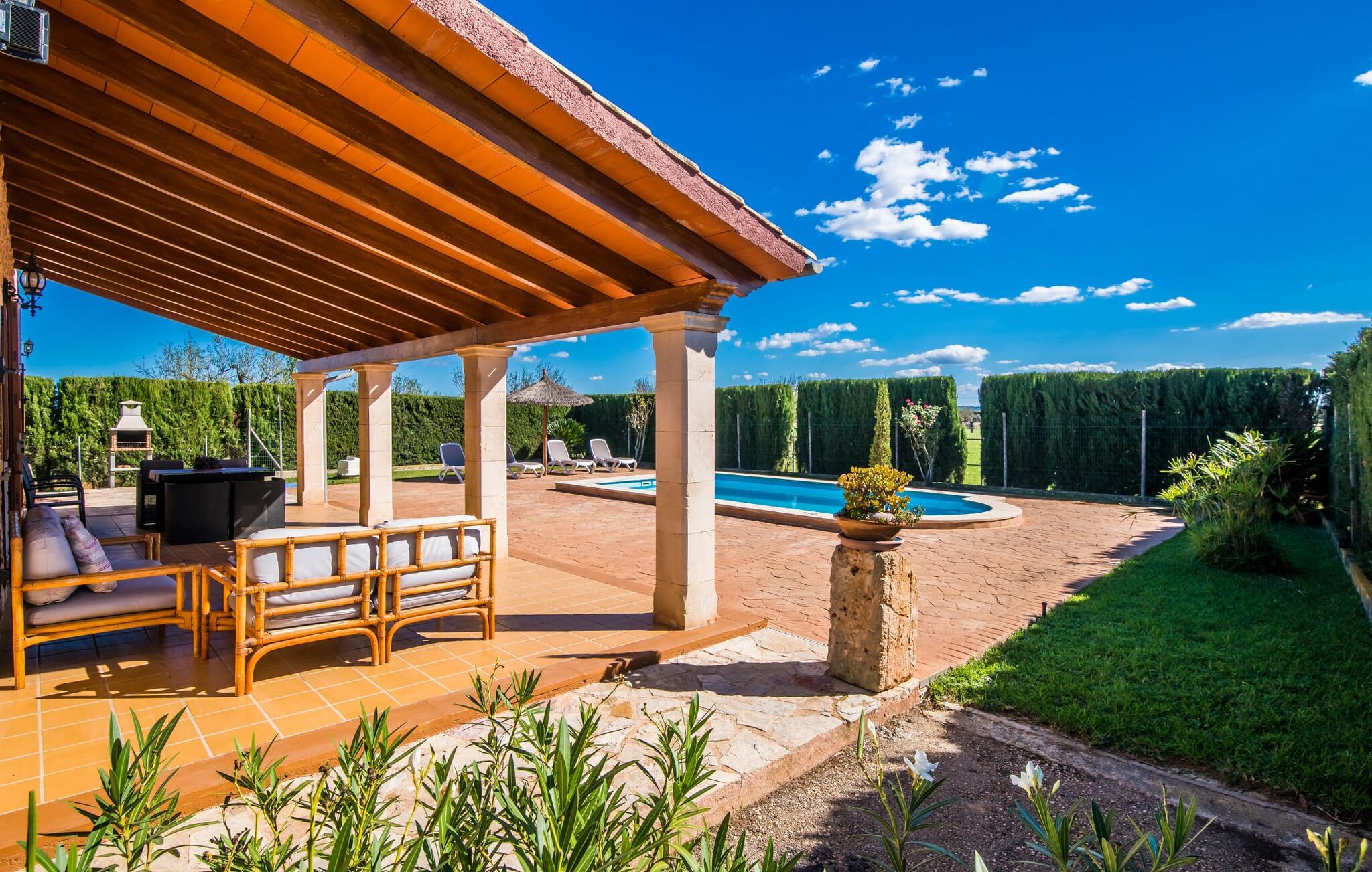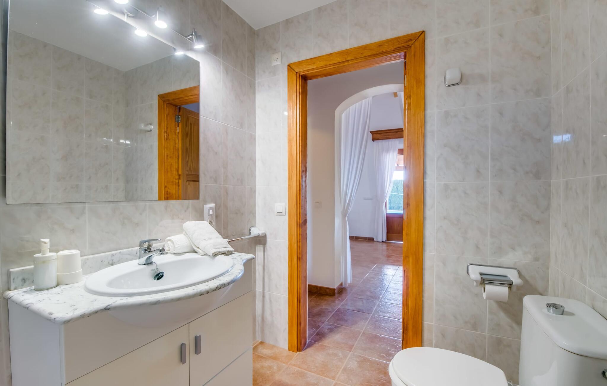 En fortryllende oase midt i naturen og i umiddelbar nærhed af landsbyen Sencelles - sådan præsenterer det indbydende naturstensferiehus sig. Det er også tæt på en anden af vores udbudte ejendomme, Villa "Can Grau". Et smukt, lukket område byder gæsterne velkommen på en venlig måde og giver straks udsigt til haven, som er præget af græsplæner og terrasser, og som i sin kerne rummer det udendørs områdes højdepunkt: swimmingpoolen. Den 8 x 4 m store pool er omgivet af en attraktiv loungeterrasse og er let tilgængelig via trapper. Der er også en praktisk udendørs bruser. På de fire tilgængelige liggestole kan I slappe af i middelhavslyset til jeres hjertes lyst og måske bare nyde fornøjelsen af at lave ingenting. De afkølede møbler på den smagfuldt designede terrasse inviterer jer til at slappe af, ideelt set med en lækker drink. Dette attraktive sted er ideelt til at fejre en kulinarisk grillfest om aftenen og nyde regionale delikatesser, som måske er friskkøbt samme dag. Selve huset er udstyret med to soveværelser med dobbeltsenge, et badeværelse, et fuldt udstyret køkken og en hyggelig stue/spisestue. Dette rum, der er åbent og centralt på samme tid, tilbyder forskellige måder at tilbringe tid her. På den ene side er der en behagelig sofa, som er et vidunderligt sted at hvile på ethvert tidspunkt af dagen. Hvis I ønsker det, kan I også blive underholdt med en film, da fladskærms-tv med satellitforbindelse er installeret på den modsatte væg. På kølige aftener fremkalder den dekorative pejs behagelig varme og en særlig hyggelig atmosfære, hvis det er nødvendigt. Det massive spisebord lige ved siden af er ideelt til indendørs spisning. Køkkenet, som også er placeret her og er løst adskilt af en disk, er udstyret med alt hvad I har brug for hver dag og er rummeligt og praktisk. En kedel og en filterkaffemaskine er kun inkluderet. To individuelt og æstetisk indrettede soveværelser danner grundlaget for en afslappende søvn. Der er to senge, der måler 0,90 x 2,00 m og en, der måler 1,50 x 2,00 m. Badeværelset er malet i lyse farver og har et moderne design med gode faciliteter. Et strygejern og en hårtørrer er til rådighed i huset, så I ikke behøver at bekymre jer om, at de optager bagageplads. Hvis I har lyst til at udforske byen og shoppe, kan I nå større byer som Inca på ingen tid. Dette er et godt sted at købe sko, da denne by har en lang tradition for læder og sko. For en afslappende dag på stranden, prøv den smukke bugt Alcúdia eller Playa del Muro, for blot at nævne to af mange eksempler. Den venlige naturstensvilla "Can Grau Petit" ligger mellem Inca og Sencelles midt på Mallorca. Herfra har I en vidunderlig udsigt over det brede omkringliggende landskab. I Sencelles og Inca kan I nemt gøre jeres daglige indkøb. Ejendommens bekvemme beliggenhed tillader ture til mange af øens strande (som Es Trenc, Son Serra de Marina og Arenal).