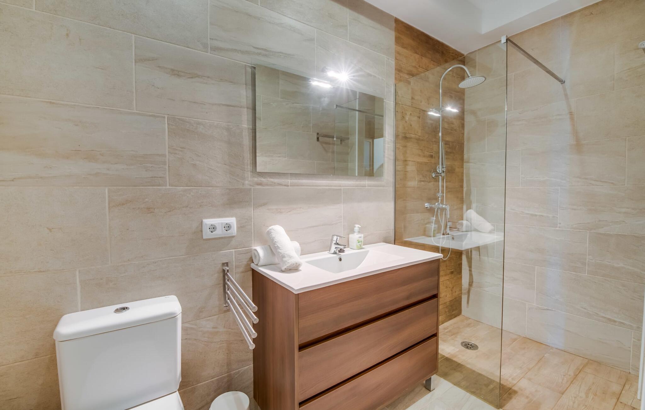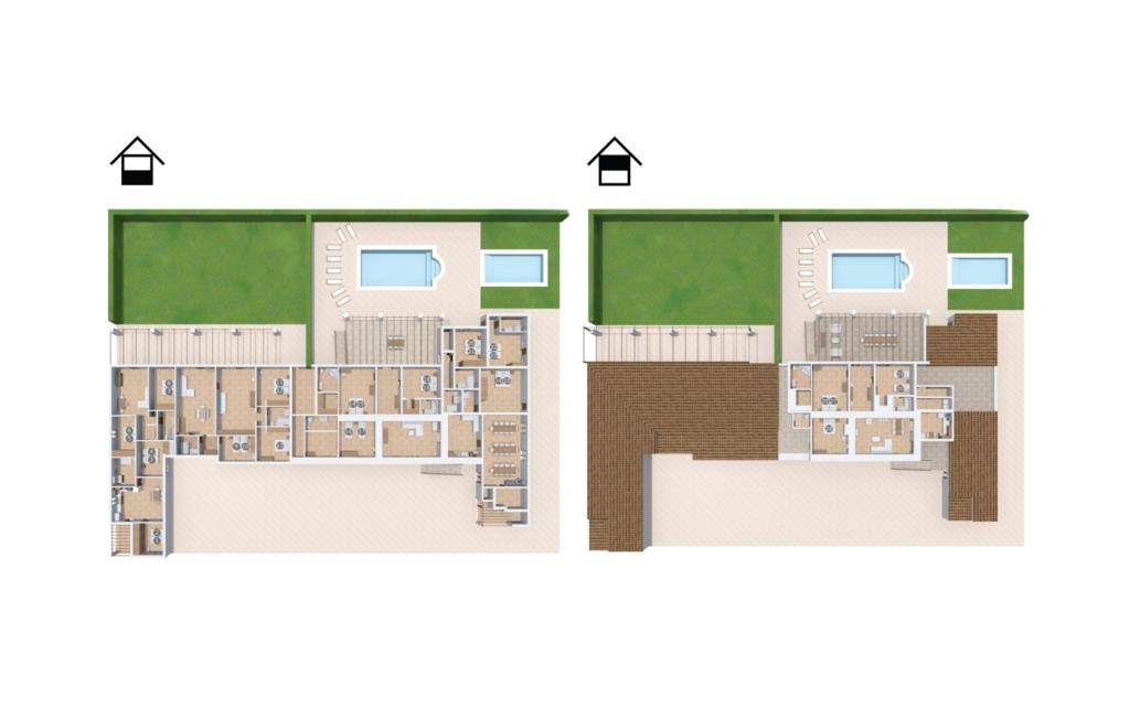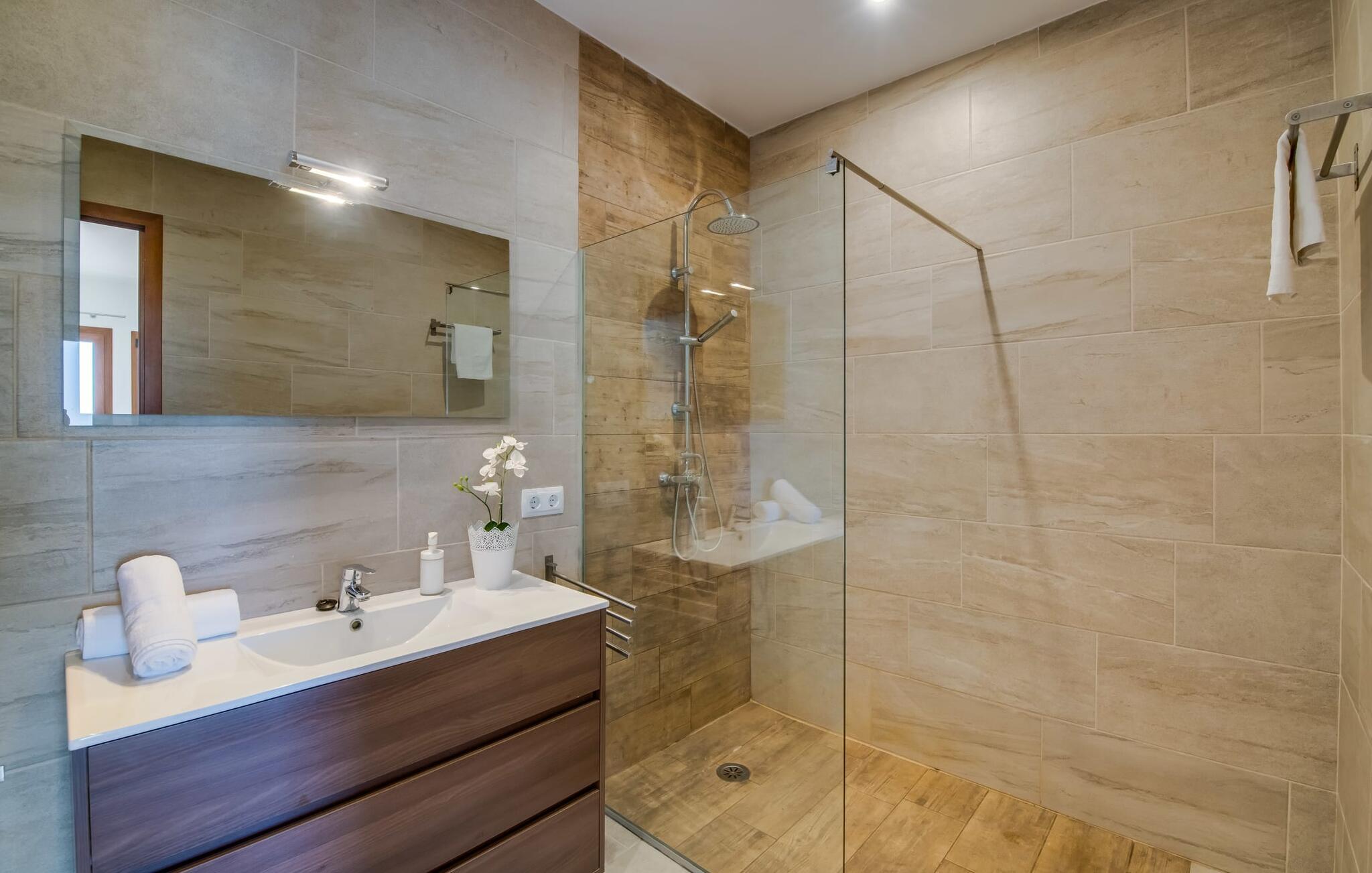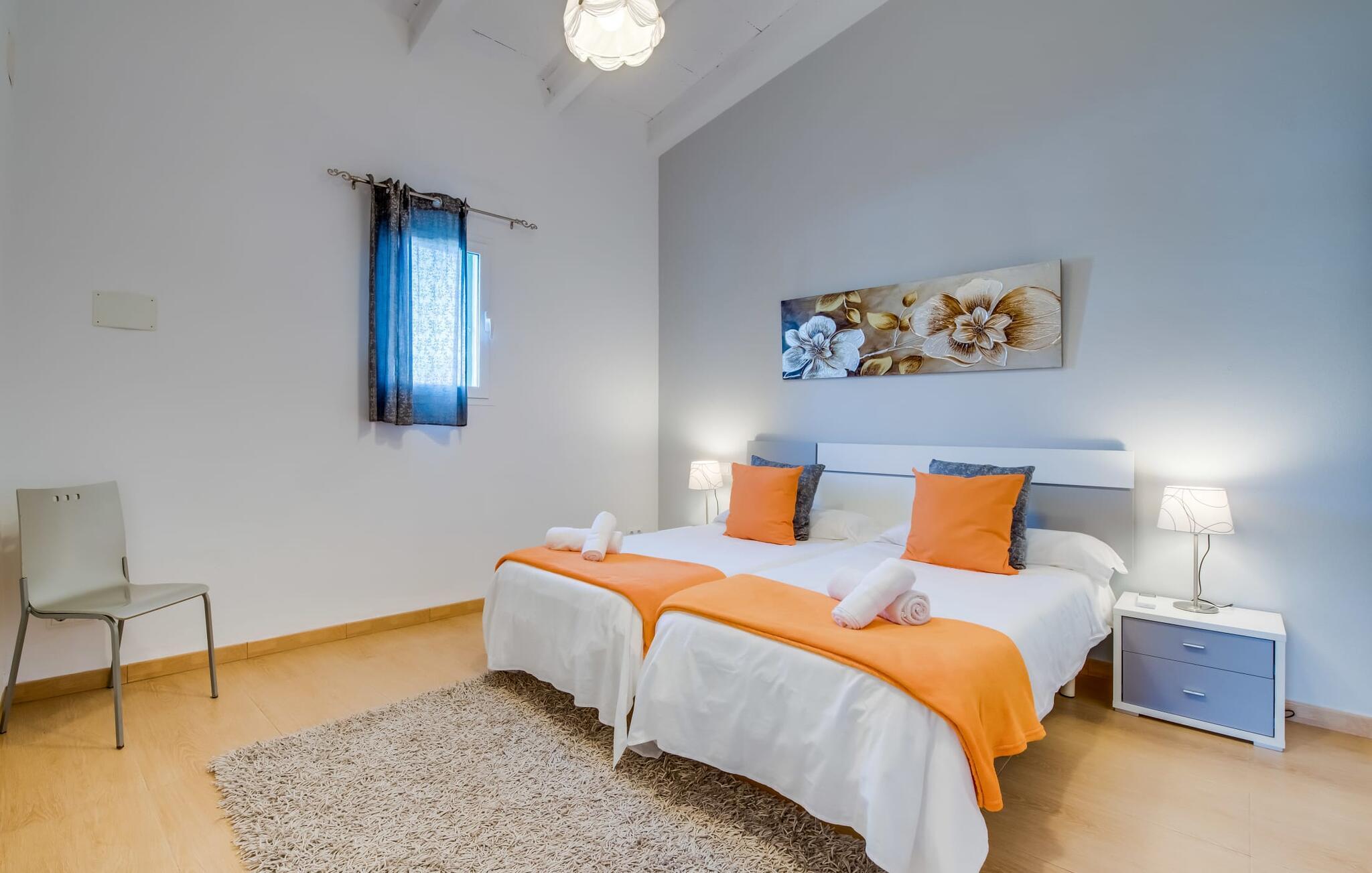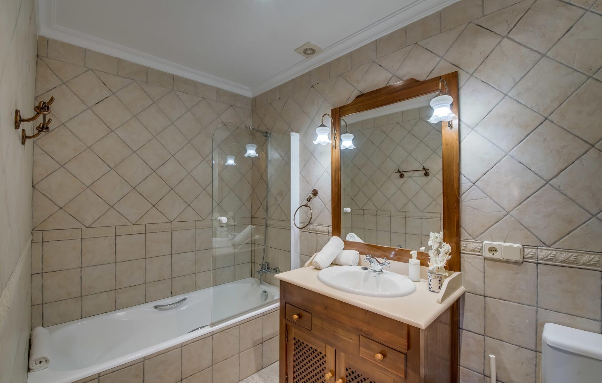 Villaen "Can Grau" er med sine 600 kvadratmeter boligareal en af de største og mest imponerende ejendomme i vores tilbud. På grund af sin størrelse og indretning med 16 dobbeltværelser og 15 badeværelser er villaen ideel til en stor familie eller store rejsegrupper. På grund af faciliteterne på anlægget kan enhver medrejsende altid nyde deres private rum fuldt ud. Når I booker for 24 personer (eller færre), får I en rabat. Rummelige terrasser, balkon og gårdhaver omgiver villaen "Can Grau", så I kan nyde den mallorcanske sol på ethvert tidspunkt af dagen og på en række yndlingssteder. I centrum af udendørsområdet ligger den skønne pool med nem trinadgang og en tilstødende skøn solterrasse. Lige ved siden af er der en særlig børnepool for små vandelskere. I denne del af ejendommen giver en kant af tætte planter følelsen af fuldstændig privatliv og afsondrethed. I kan slappe af af hjertens lyst på de komfortable liggestole og nyde udsigten til den dybblå himmel. I tilfælde af at solen skinner for kraftigt, er der i alt ti parasoller til jeres rådighed. Vil I forfriske jer endnu mere, kan I bruge udendørsbruseren. Forskellige siddegrupper inviterer jer til at blive hængende i den luftige skygge på den overdækkede terrasse. Enhver, der går til den øverste altan, kan nyde en vidunderlig udsigt over det omkringliggende landskab derfra. Der er siddepladser til mindst ti personer omkring den enorme balkon med udsigt til poolområdet, som også kan nås via en udvendig trappe. Dette er et vidunderligt sted at sidde sammen i en hyggelig atmosfære og måske nyde et middelhavsmåltid sammen eller fejre afslutningen på en vidunderlig feriedag i en festlig atmosfære. Hvis I har lyst til at være vært for et kulinarisk grillarrangement, kan I bruge den indbyggede grill, der er installeret nær den nederste terrasse. Når man træder ind i villaens indre, som også har ikke kun smukke, men også meget originale naturstensfacader, støder man på den nederste stue med en ekstremt stor komfortabel sofa og et rustikt spisebord til seks personer. Fjernsynet og pejsen er bekvemt installeret i dette rum. Det klassisk indrettede køkken er nemt at vedligeholde og er fuldt udstyret, herunder en kedel og en kaffemaskine. Et meget lignende layout kan findes på øverste etage (inklusive et andet køkken), i et praktisk og attraktivt design, med plads nok til at føle sig godt tilpas. Der er også en pejs på denne første sal, som giver jer mulighed for at hygge jer i en hjemlig atmosfære på køligere aftener. En kæmpe stue/spisestue giver alle gæster i huset mulighed for at spise sammen og nyde deres fritid indendørs. Seks af de ni individuelt designede og for det meste airconditionerede soveværelser (hvoraf det ene er et gennemgående soveværelse, der fører til et andet soveværelse) har deres eget badeværelse. Alle 11 badeværelser har et behageligt, lyst design, moderne indretning og nogle er udstyret med smukke, typiske mallorcanske grænser. En original og unik bonus er de to ekstra selvforplejningsrum i nabobygningerne, som blev nybygget i 2017. Den ene tilbyder overnatning for op til seks personer, med tre soveværelser med dobbeltsenge, to badeværelser med bruser, et køkken og en spisestue og stue. Den tredje stue har fire soveværelser med dobbeltsenge, to bruserum, et køkken, en spisestue og en stue. Det første og andet rum er til rådighed for grupper på op til 24 personer; Grupper på 32 personer eller mere kan bruge hele ejendommen. Vil I en tur ind til byen for at shoppe, kan I hurtigt nå en storby som Inca. Dette er et fantastisk sted at købe sko, da denne by har en lang tradition inden for alt hvad angår læderprodukter og sko. I vil måske besøge det ugentlige marked i Sineu, som finder sted hver onsdag. For en afslappende dag på stranden, prøv den smukke bugt Alcúdia eller Playa del Muro. Golfelskere vil få noget for pengene: Puntiro golfbane er omkring 25 minutter væk i bil. Den storslåede, kæmpe villa “Can Grau” ligger mellem Inca og Sencelles, midt på Mallorca. Herfra har I en fantastisk udsigt over det smukke omkringliggende landskab. I Sencelles og Inca kan I gøre jeres daglige indkøb perfekt. Ejendommens bekvemme beliggenhed giver mulighed for ture til mange af øens strande, herunder Es Trenc, Son Serra de Marina og Arenal.
