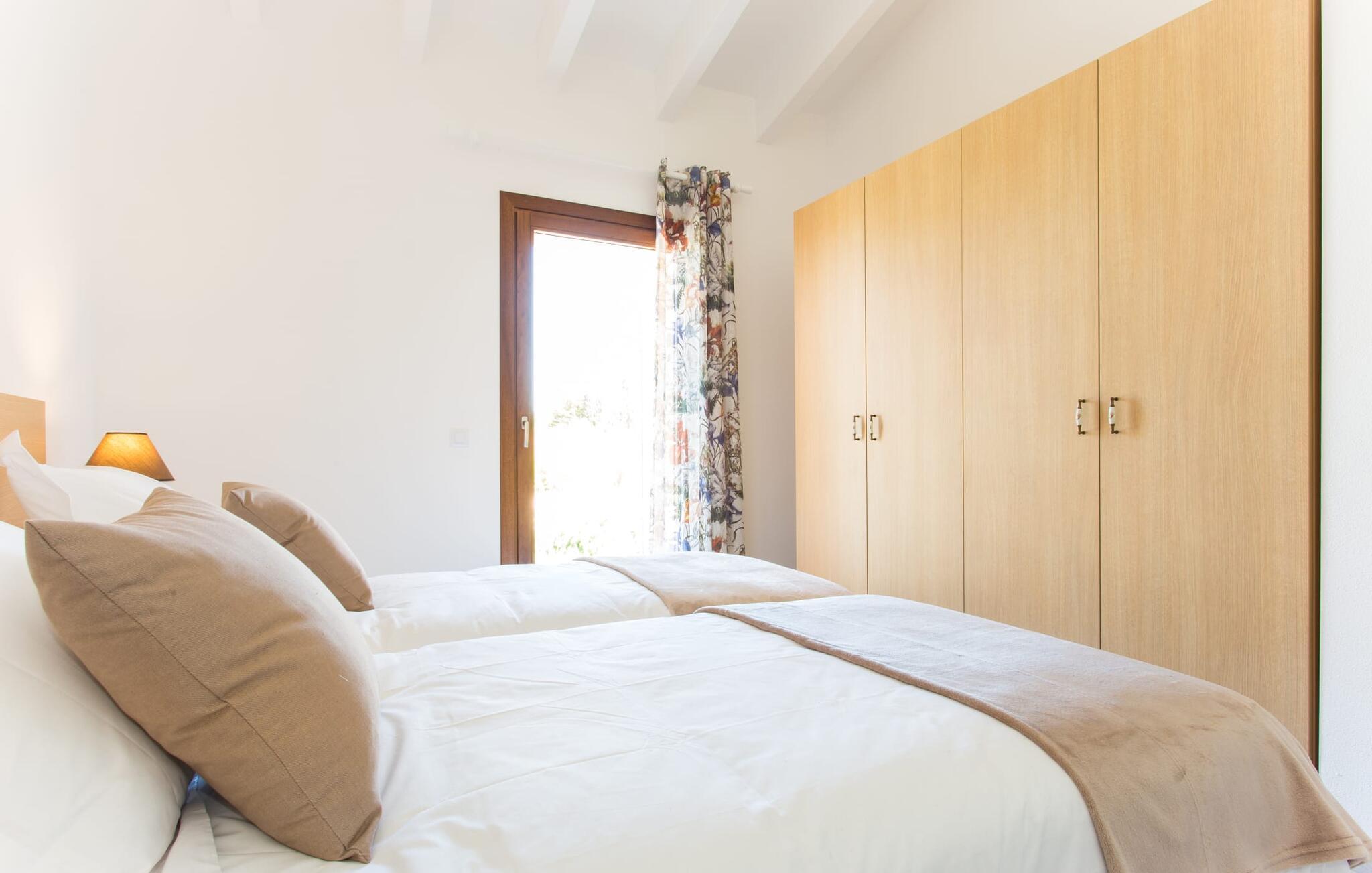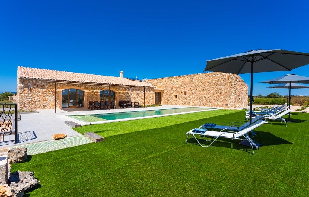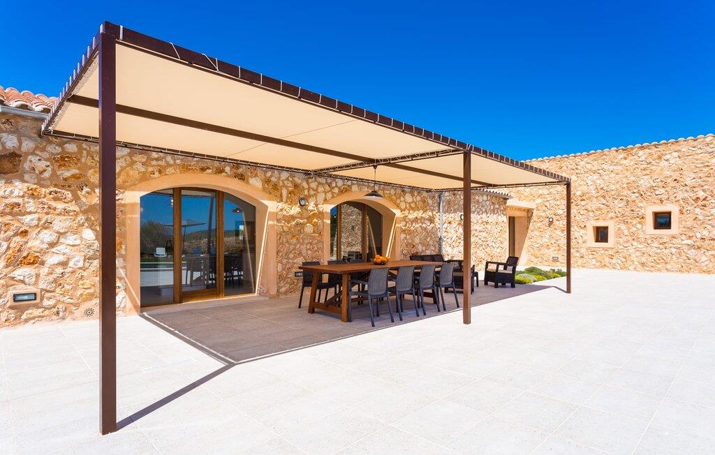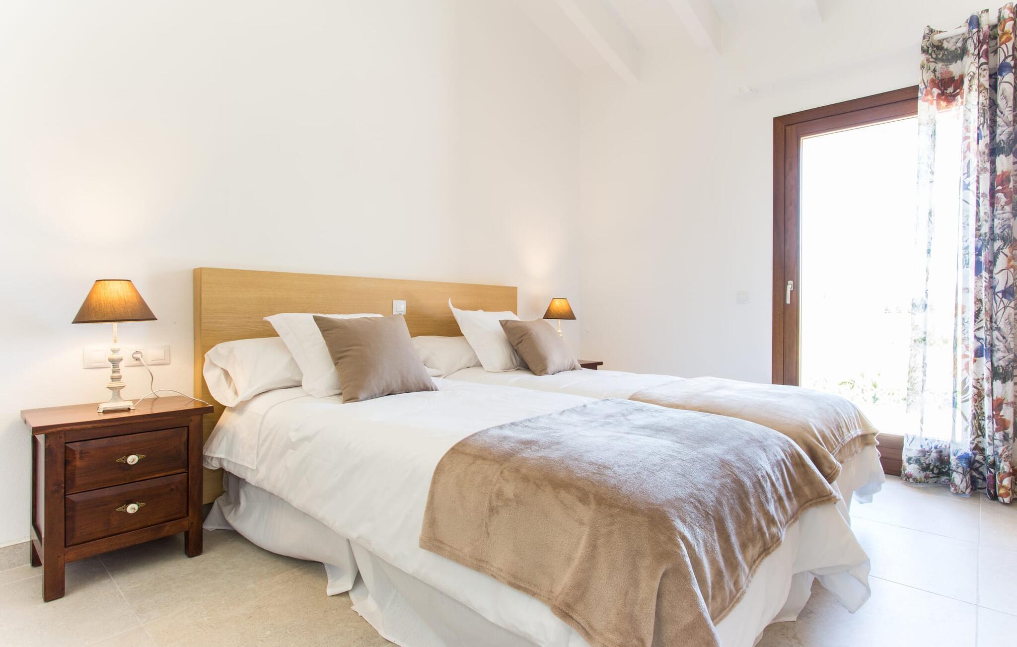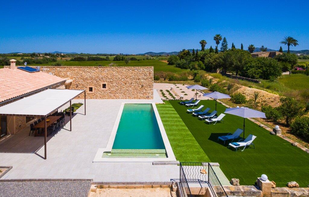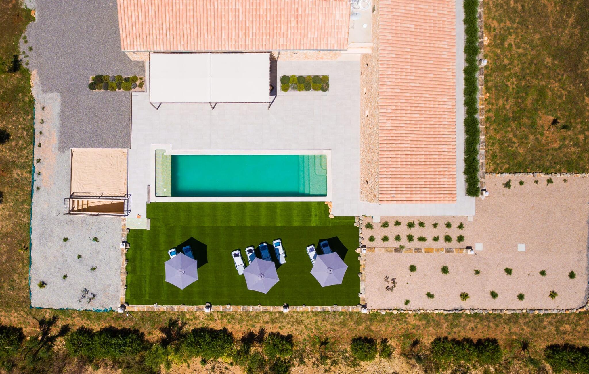 "Can Gusti" er bygget til jer. Til jeres behov, til jeres krav, til jeres afslapning. Den L-formede bygning opfylder perfekt kravene til et indbydende nyt hus og afspejler med sin stenfacade også den mallorcanske landstedstradition. Samme indtryk opstår på den rummelige ejendom med talrige træer - gamle og nyplantede - og et landligt miljø præget af landbrugsaktivitet. Hegn i nærheden af haven, pool og terrasseområder er ikke påkrævet, da der ikke er nogen naboer i syne. Afslappende liggestole venter på jer på det frodige grønne kunstgræs. Parasoller, som af og til er nødvendige for beskyttelse, når solen er for stærk, er også tilgængelige. Den turkise, mosaikbelagte pool med en let trappet indgang er ret smal, men samtidig lang nok til komfortabelt at svømme i længder. Svømmehallen er på den ene side omkranset af græsplænen og på den anden side af terrassen, der strækker sig til bygningen og er delvist overdækket af en markise. Herunder finder I ikke kun et langt træbord med smarte stole i rattanlook, men også et hyggeligt loungehjørne. Med en mobil gasgrill er der intet i vejen for en skøn grillaften. Indretningen er en fuldstændig afvigelse fra den klassiske mallorcanske stil, men det er på ingen måde skuffende. Det er indbydende lyst, ikke kun på grund af de store terrassedøre i glas, der fører ud til terrassen. Strålende vægge, hvide loftsbjælker og matte sandstensgulvfliser står kun i kontrast til det naturlige træ i de mørke vindues- og dørkarme. Den sarte farvepalet går igen i den åbne stue med et væghængt tv og er desuden udstyret med elegante antracitfarvede hyggesofaer. Det lange spisebord i lyst vintage-look skaber forbindelse til køkkenet, som kun er adskilt af en elegant disk. Bagved er et fuldt udstyret landstedskøkken med et hvidkalket look, som har alle de tekniske faciliteter, I har brug for til en afslappet ferie med selvforplejning. Alle fire soveværelser er på samme etage. Disse er også lyse, venlige og attraktive og giver plads nok til at opbevare jeres feriegarderobe. Det store soveværelse har eget badeværelse, de to andre badeværelser er frit tilgængelige fra gangen. Badeværelset har et trendy og moderne design: brusekabiner i gulvniveau med regnbruser samt eksklusive fliser i trælook, sten eller grå mosaik - hver individuelt designet. Ferie på højt niveau – denne smukke nye villa hører uden tvivl til i denne kategori. Villaen er desuden drevet af klimavenlig solenergi, hvorfor installation af poolbelysning, aircondition og andre enheder, der forbruger meget energi, ikke er mulig. Beliggenheden spiller naturligvis også en vigtig rolle for at sikre en behagelig ferie, og også på dette punkt modtager villaen "Can Gusti" vores særlige anbefaling. Som I kan se på vores luftfotos, er det vidunderligt landligt og roligt og har ingen direkte naboer. Men det ville være en skam, hvis I ikke udforskede i det mindste noget af det skønne, som Mallorca har at byde på. Dette inkluderer at besøge byer som Felanitx eller Manacor og slentre gennem markederne der. Til sightseeing kan I også besøge øens vartegn, herunder klostret Sant Salvador, der ligger på et bjerg nær Felanitx, og også de talrige strande i øst, især den næsten uberørte badebugt Cala Varques og mange, mange, flere. Sportsentusiaster bør bestemt besøge Rafa Nadal Tennis Academy, som ligger kun omkring 8 km væk. Hvis I ikke kan passe alt ind i Villa Can Gusti ved jeres første besøg, skal I bare bestille igen næste år. En storslået villa venter på jer, selvom I er der for første gang. Det attraktive poolområde og de omfattende kunstgræsarealer er et sandt højdepunkt i den nye villa "Can Gusti". Ejendommen er beliggende i en vidunderlig rolig, landlig beliggenhed lige nord for Felanitx. I kan enten tage til Felanitx for at shoppe dagligvarer og andre fornødenheder, eller endda til Manacor for mere omfattende shoppingture. Der er kun 20 km til "Calas de Mallorca", de smukke sandstrande på østkysten - en behagelig afstand til en eftermiddagstur.