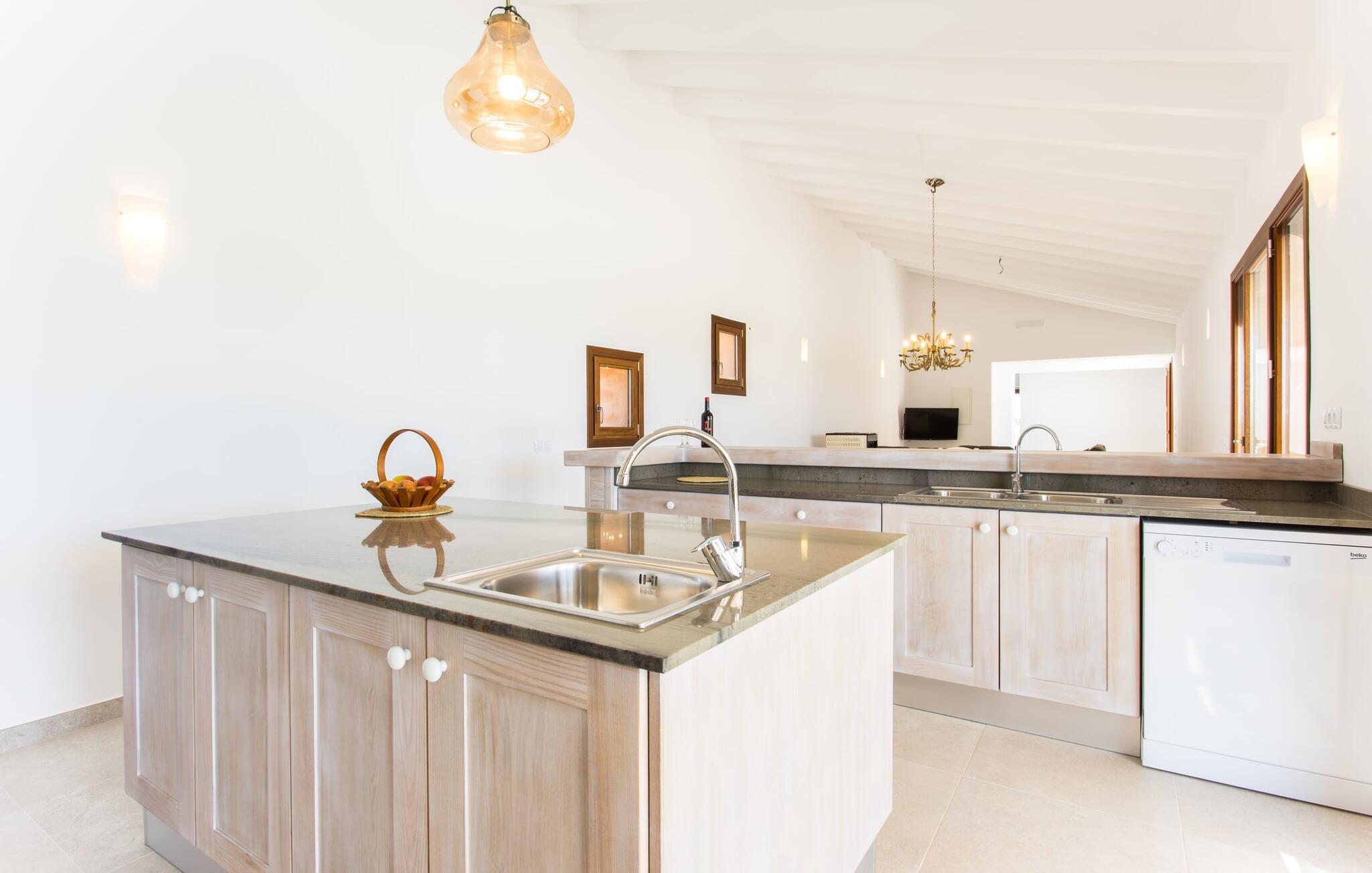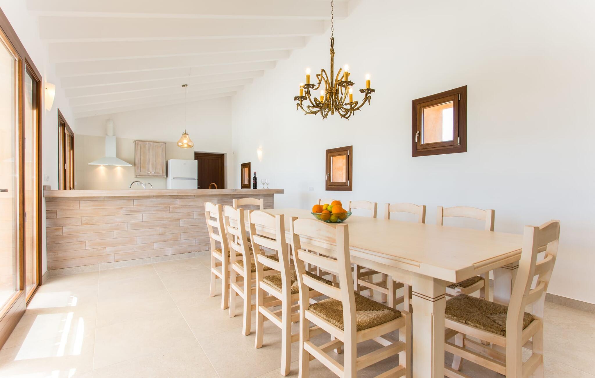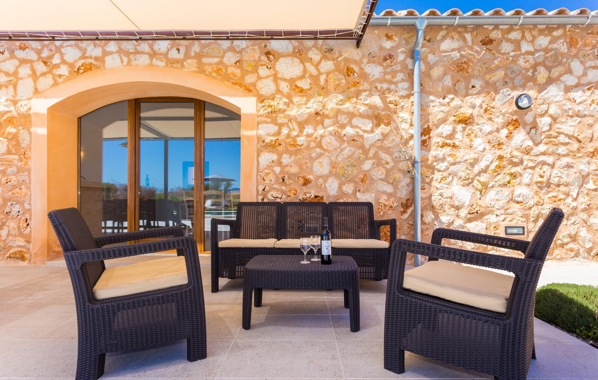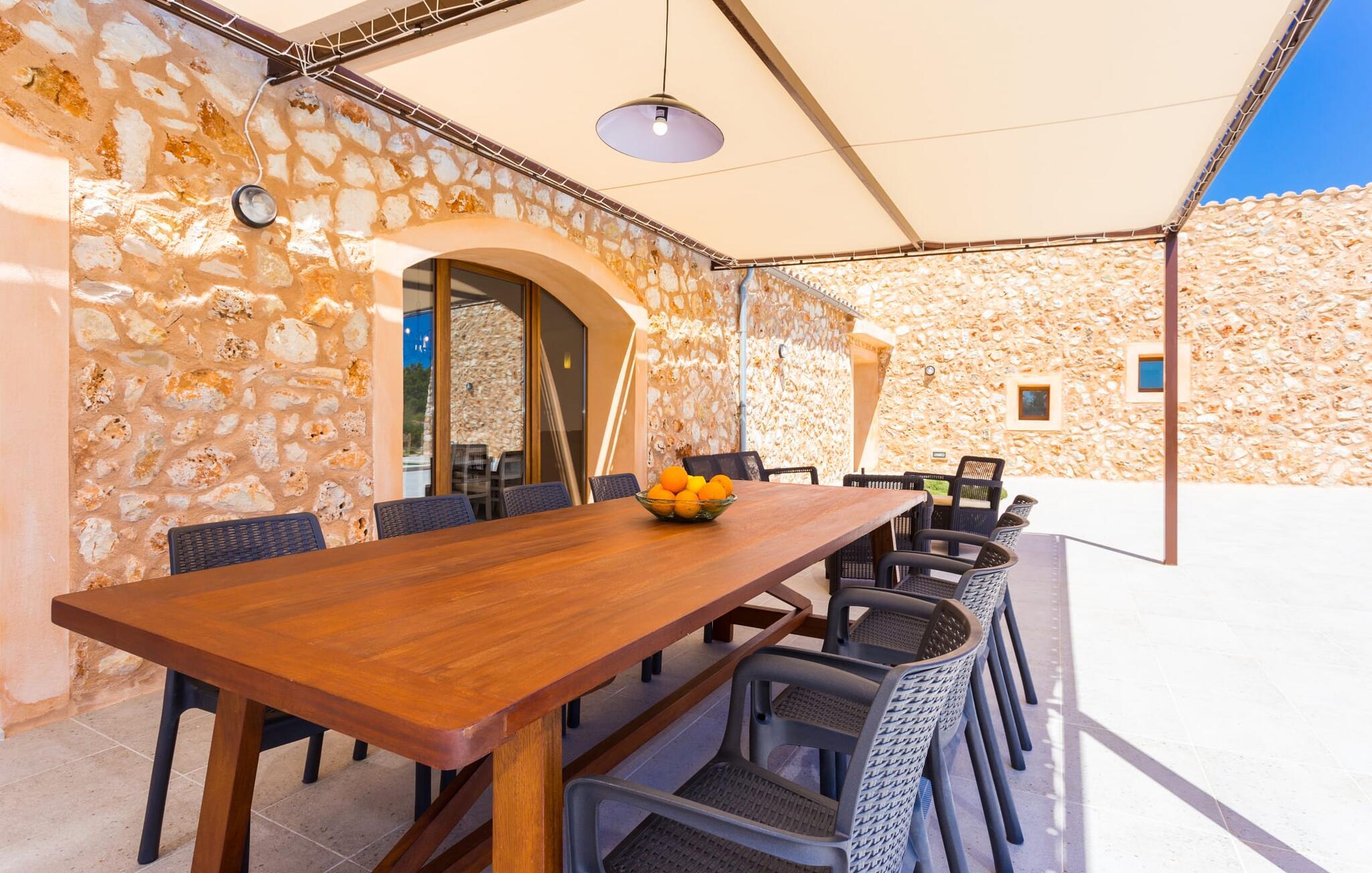 "Can Gusti" er bygget til jer. Til jeres behov, til jeres krav, til jeres afslapning. Den L-formede bygning opfylder perfekt kravene til et indbydende nyt hus og afspejler med sin stenfacade også den mallorcanske landstedstradition. Samme indtryk opstår på den rummelige ejendom med talrige træer - gamle og nyplantede - og et landligt miljø præget af landbrugsaktivitet. Hegn i nærheden af haven, pool og terrasseområder er ikke påkrævet, da der ikke er nogen naboer i syne. Afslappende liggestole venter på jer på det frodige grønne kunstgræs. Parasoller, som af og til er nødvendige for beskyttelse, når solen er for stærk, er også tilgængelige. Den turkise, mosaikbelagte pool med en let trappet indgang er ret smal, men samtidig lang nok til komfortabelt at svømme i længder. Svømmehallen er på den ene side omkranset af græsplænen og på den anden side af terrassen, der strækker sig til bygningen og er delvist overdækket af en markise. Herunder finder I ikke kun et langt træbord med smarte stole i rattanlook, men også et hyggeligt loungehjørne. Med en mobil gasgrill er der intet i vejen for en skøn grillaften. Indretningen er en fuldstændig afvigelse fra den klassiske mallorcanske stil, men det er på ingen måde skuffende. Det er indbydende lyst, ikke kun på grund af de store terrassedøre i glas, der fører ud til terrassen. Strålende vægge, hvide loftsbjælker og matte sandstensgulvfliser står kun i kontrast til det naturlige træ i de mørke vindues- og dørkarme. Den sarte farvepalet går igen i den åbne stue med et væghængt tv og er desuden udstyret med elegante antracitfarvede hyggesofaer. Det lange spisebord i lyst vintage-look skaber forbindelse til køkkenet, som kun er adskilt af en elegant disk. Bagved er et fuldt udstyret landstedskøkken med et hvidkalket look, som har alle de tekniske faciliteter, I har brug for til en afslappet ferie med selvforplejning. Alle fire soveværelser er på samme etage. Disse er også lyse, venlige og attraktive og giver plads nok til at opbevare jeres feriegarderobe. Det store soveværelse har eget badeværelse, de to andre badeværelser er frit tilgængelige fra gangen. Badeværelset har et trendy og moderne design: brusekabiner i gulvniveau med regnbruser samt eksklusive fliser i trælook, sten eller grå mosaik - hver individuelt designet. Ferie på højt niveau – denne smukke nye villa hører uden tvivl til i denne kategori. Villaen er desuden drevet af klimavenlig solenergi, hvorfor installation af poolbelysning, aircondition og andre enheder, der forbruger meget energi, ikke er mulig. Beliggenheden spiller naturligvis også en vigtig rolle for at sikre en behagelig ferie, og også på dette punkt modtager villaen "Can Gusti" vores særlige anbefaling. Som I kan se på vores luftfotos, er det vidunderligt landligt og roligt og har ingen direkte naboer. Men det ville være en skam, hvis I ikke udforskede i det mindste noget af det skønne, som Mallorca har at byde på. Dette inkluderer at besøge byer som Felanitx eller Manacor og slentre gennem markederne der. Til sightseeing kan I også besøge øens vartegn, herunder klostret Sant Salvador, der ligger på et bjerg nær Felanitx, og også de talrige strande i øst, især den næsten uberørte badebugt Cala Varques og mange, mange, flere. Sportsentusiaster bør bestemt besøge Rafa Nadal Tennis Academy, som ligger kun omkring 8 km væk. Hvis I ikke kan passe alt ind i Villa Can Gusti ved jeres første besøg, skal I bare bestille igen næste år. En storslået villa venter på jer, selvom I er der for første gang. Det attraktive poolområde og de omfattende kunstgræsarealer er et sandt højdepunkt i den nye villa "Can Gusti". Ejendommen er beliggende i en vidunderlig rolig, landlig beliggenhed lige nord for Felanitx. I kan enten tage til Felanitx for at shoppe dagligvarer og andre fornødenheder, eller endda til Manacor for mere omfattende shoppingture. Der er kun 20 km til "Calas de Mallorca", de smukke sandstrande på østkysten - en behagelig afstand til en eftermiddagstur.