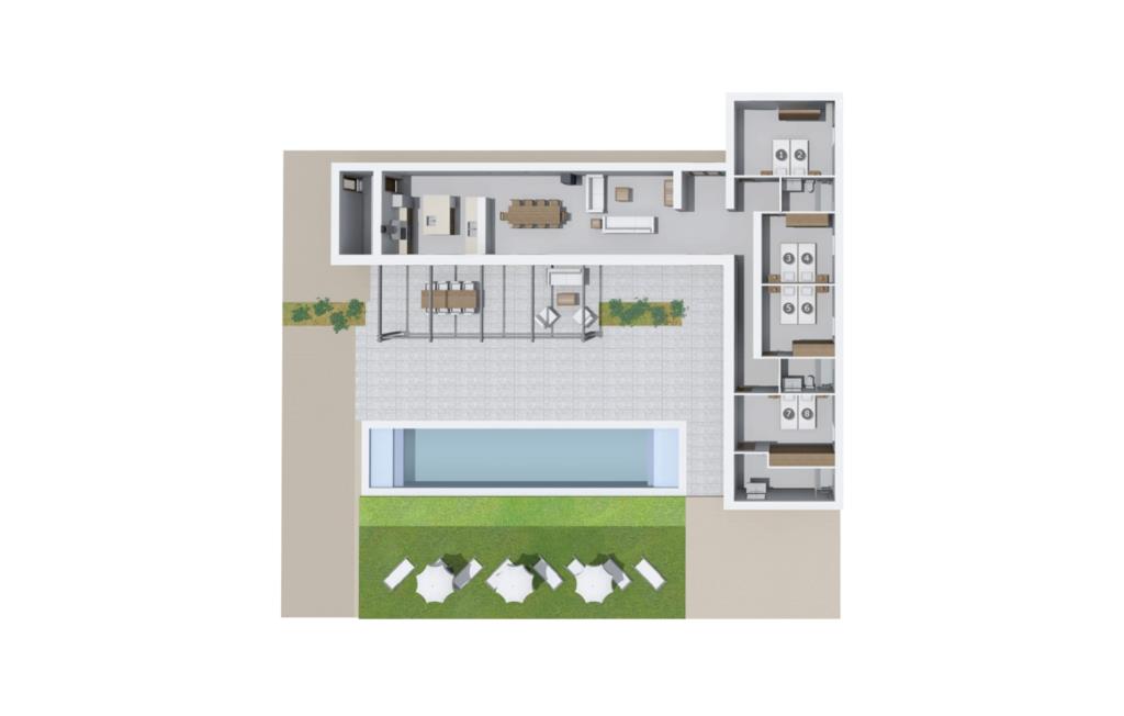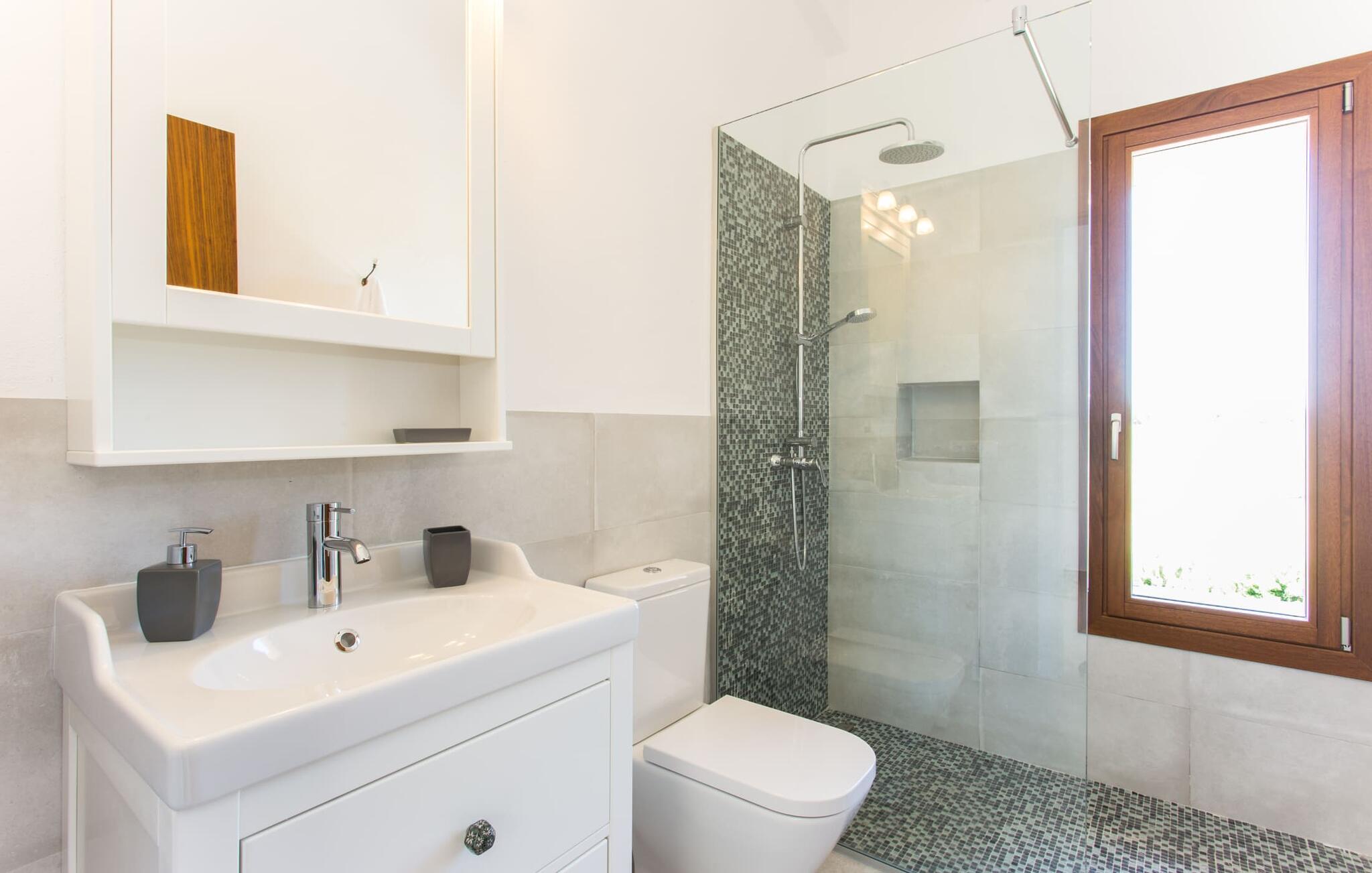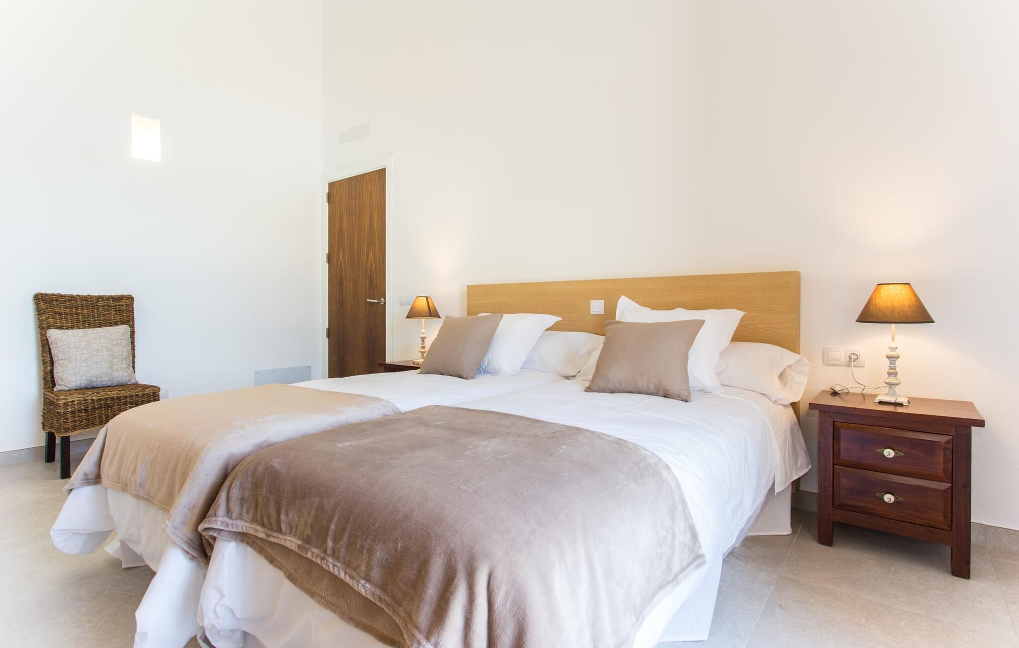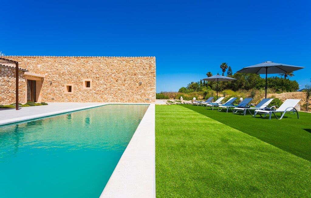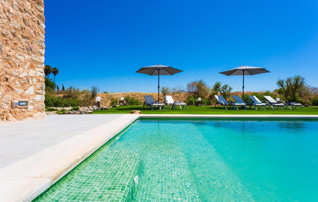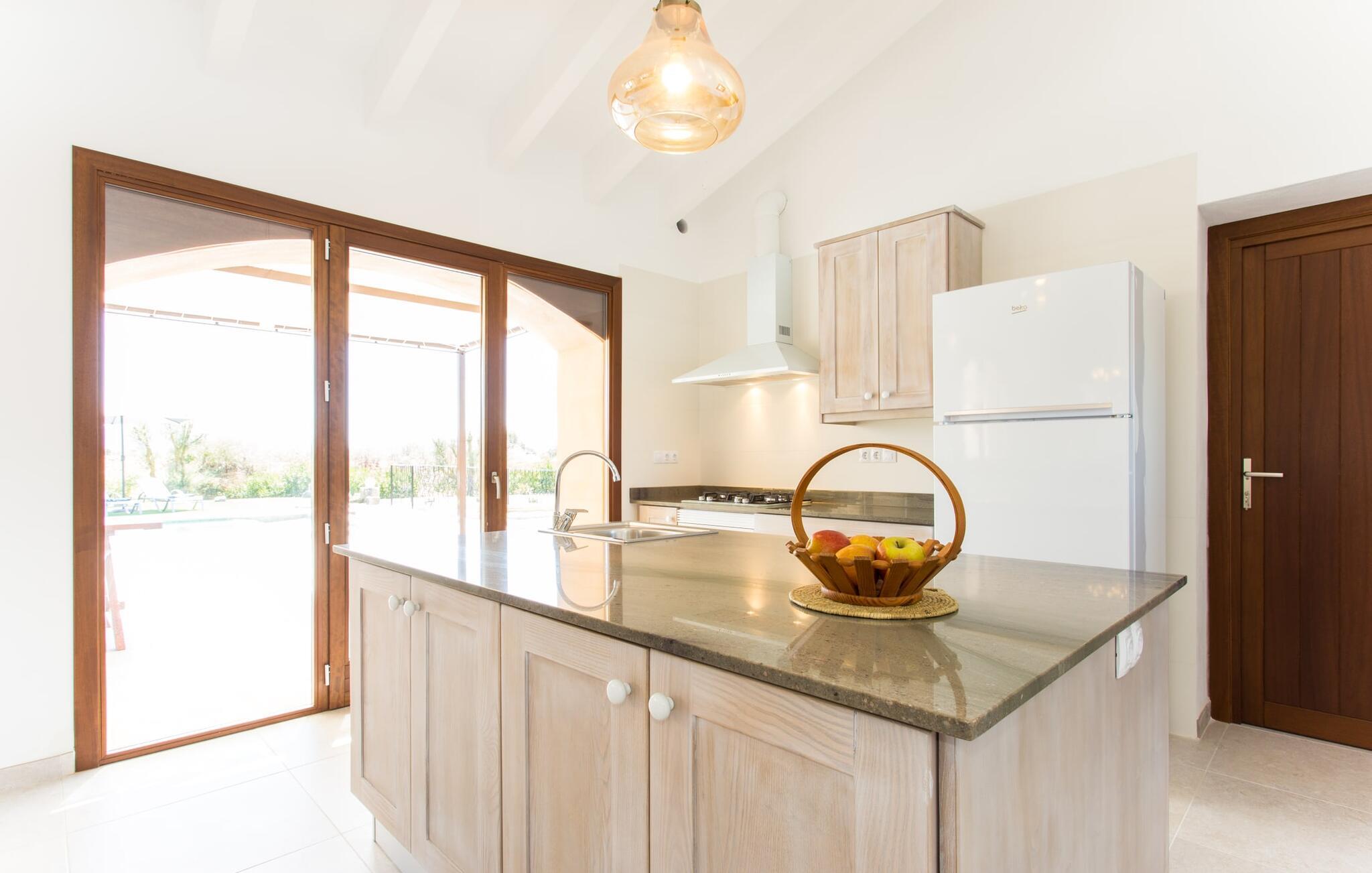 "Can Gusti" er bygget til jer. Til jeres behov, til jeres krav, til jeres afslapning. Den L-formede bygning opfylder perfekt kravene til et indbydende nyt hus og afspejler med sin stenfacade også den mallorcanske landstedstradition. Samme indtryk opstår på den rummelige ejendom med talrige træer - gamle og nyplantede - og et landligt miljø præget af landbrugsaktivitet. Hegn i nærheden af haven, pool og terrasseområder er ikke påkrævet, da der ikke er nogen naboer i syne. Afslappende liggestole venter på jer på det frodige grønne kunstgræs. Parasoller, som af og til er nødvendige for beskyttelse, når solen er for stærk, er også tilgængelige. Den turkise, mosaikbelagte pool med en let trappet indgang er ret smal, men samtidig lang nok til komfortabelt at svømme i længder. Svømmehallen er på den ene side omkranset af græsplænen og på den anden side af terrassen, der strækker sig til bygningen og er delvist overdækket af en markise. Herunder finder I ikke kun et langt træbord med smarte stole i rattanlook, men også et hyggeligt loungehjørne. Med en mobil gasgrill er der intet i vejen for en skøn grillaften. Indretningen er en fuldstændig afvigelse fra den klassiske mallorcanske stil, men det er på ingen måde skuffende. Det er indbydende lyst, ikke kun på grund af de store terrassedøre i glas, der fører ud til terrassen. Strålende vægge, hvide loftsbjælker og matte sandstensgulvfliser står kun i kontrast til det naturlige træ i de mørke vindues- og dørkarme. Den sarte farvepalet går igen i den åbne stue med et væghængt tv og er desuden udstyret med elegante antracitfarvede hyggesofaer. Det lange spisebord i lyst vintage-look skaber forbindelse til køkkenet, som kun er adskilt af en elegant disk. Bagved er et fuldt udstyret landstedskøkken med et hvidkalket look, som har alle de tekniske faciliteter, I har brug for til en afslappet ferie med selvforplejning. Alle fire soveværelser er på samme etage. Disse er også lyse, venlige og attraktive og giver plads nok til at opbevare jeres feriegarderobe. Det store soveværelse har eget badeværelse, de to andre badeværelser er frit tilgængelige fra gangen. Badeværelset har et trendy og moderne design: brusekabiner i gulvniveau med regnbruser samt eksklusive fliser i trælook, sten eller grå mosaik - hver individuelt designet. Ferie på højt niveau – denne smukke nye villa hører uden tvivl til i denne kategori. Villaen er desuden drevet af klimavenlig solenergi, hvorfor installation af poolbelysning, aircondition og andre enheder, der forbruger meget energi, ikke er mulig. Beliggenheden spiller naturligvis også en vigtig rolle for at sikre en behagelig ferie, og også på dette punkt modtager villaen "Can Gusti" vores særlige anbefaling. Som I kan se på vores luftfotos, er det vidunderligt landligt og roligt og har ingen direkte naboer. Men det ville være en skam, hvis I ikke udforskede i det mindste noget af det skønne, som Mallorca har at byde på. Dette inkluderer at besøge byer som Felanitx eller Manacor og slentre gennem markederne der. Til sightseeing kan I også besøge øens vartegn, herunder klostret Sant Salvador, der ligger på et bjerg nær Felanitx, og også de talrige strande i øst, især den næsten uberørte badebugt Cala Varques og mange, mange, flere. Sportsentusiaster bør bestemt besøge Rafa Nadal Tennis Academy, som ligger kun omkring 8 km væk. Hvis I ikke kan passe alt ind i Villa Can Gusti ved jeres første besøg, skal I bare bestille igen næste år. En storslået villa venter på jer, selvom I er der for første gang. Det attraktive poolområde og de omfattende kunstgræsarealer er et sandt højdepunkt i den nye villa "Can Gusti". Ejendommen er beliggende i en vidunderlig rolig, landlig beliggenhed lige nord for Felanitx. I kan enten tage til Felanitx for at shoppe dagligvarer og andre fornødenheder, eller endda til Manacor for mere omfattende shoppingture. Der er kun 20 km til "Calas de Mallorca", de smukke sandstrande på østkysten - en behagelig afstand til en eftermiddagstur.