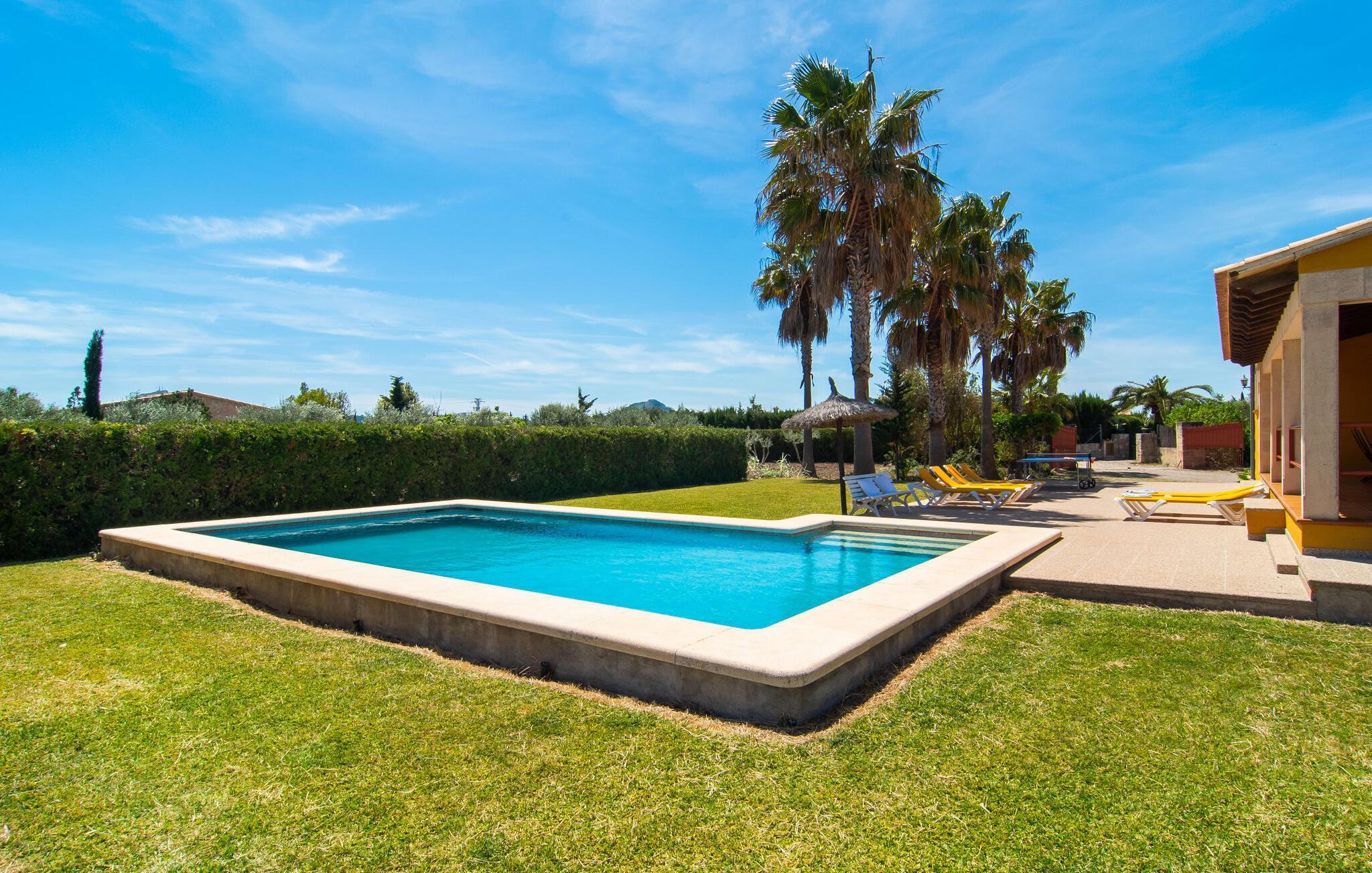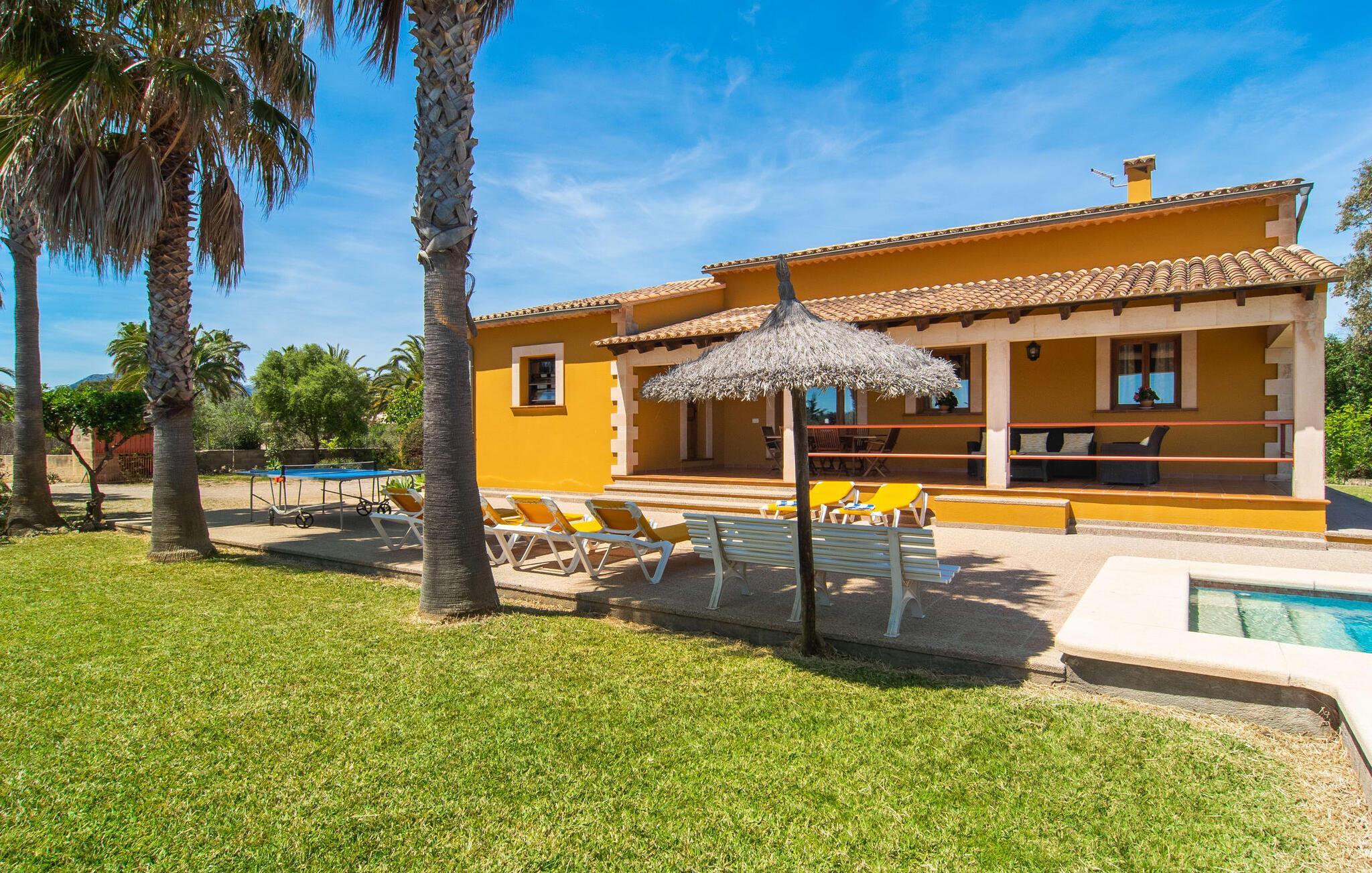 "Can Jaume Pollenca" byder på traditionel mallorcansk charme i spektakulære omgivelser, med en betagende udsigt over Tramuntana-bjergene og nem adgang til øens bedste strande. Dette er et feriehus i Fincallorca. Selvom villaen er enklere end nogle moderne modstykker, gør dens landlige charme og beliggenhed med fire parkeringspladser den til et unikt valg for at udforske regionen. Nyd poolen, spil bordtennis eller slap af i palmernes skygge. Den overdækkede terrasse og grillplads er det perfekte sted at slappe af og nyde udendørs spisning. Indenfor giver det veludstyrede køkken mulighed for nem selvforplejning, og den hyggelige opholdsstue med tv og bibliotek sikrer, at alle kan slappe af i komfort. Villaen har tre soveværelser og to badeværelser (et en-suite), udstyret med robuste træmøbler, der forstærker den rustikke charme. Dobbeltsengen er 1,8 x 2 m, mens enkeltsengene er 1,9 m lange, hvilket giver afslappende komfort for alle. Strategisk beliggende i et meget roligt og rummeligt boligområde: Den legende "Can Jaume Pollenca" byder på ideelle indkøbs- og fritidsaktiviteter på de smukkeste steder på den nordlige del af øen. Uanset om du besøger Alcúdias middelaldergader og imponerende bymure eller Port de Pollença med dens berømte promenade, børnevenlige svømning og to strande, er det kun et spørgsmål om tid, før du hopper på cyklerne, snører vandrestøvlerne eller begiver dig ud. for en tur, tag en tur langs de vidunderligt buede gader. Serra de Tramuntana, Formentor, Santuari de Lluc og Sa Calobra venter på dig! Aircondition i ejendommen er inkluderet i prisen, men dets brug er begrænset mellem kl. 21.00 og 06.00.
