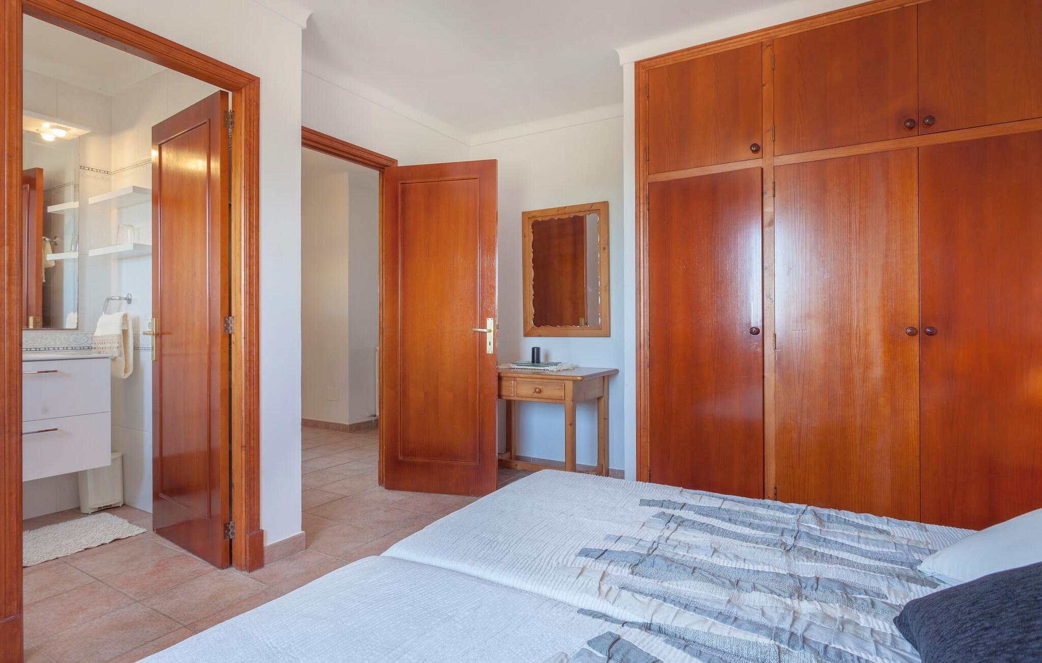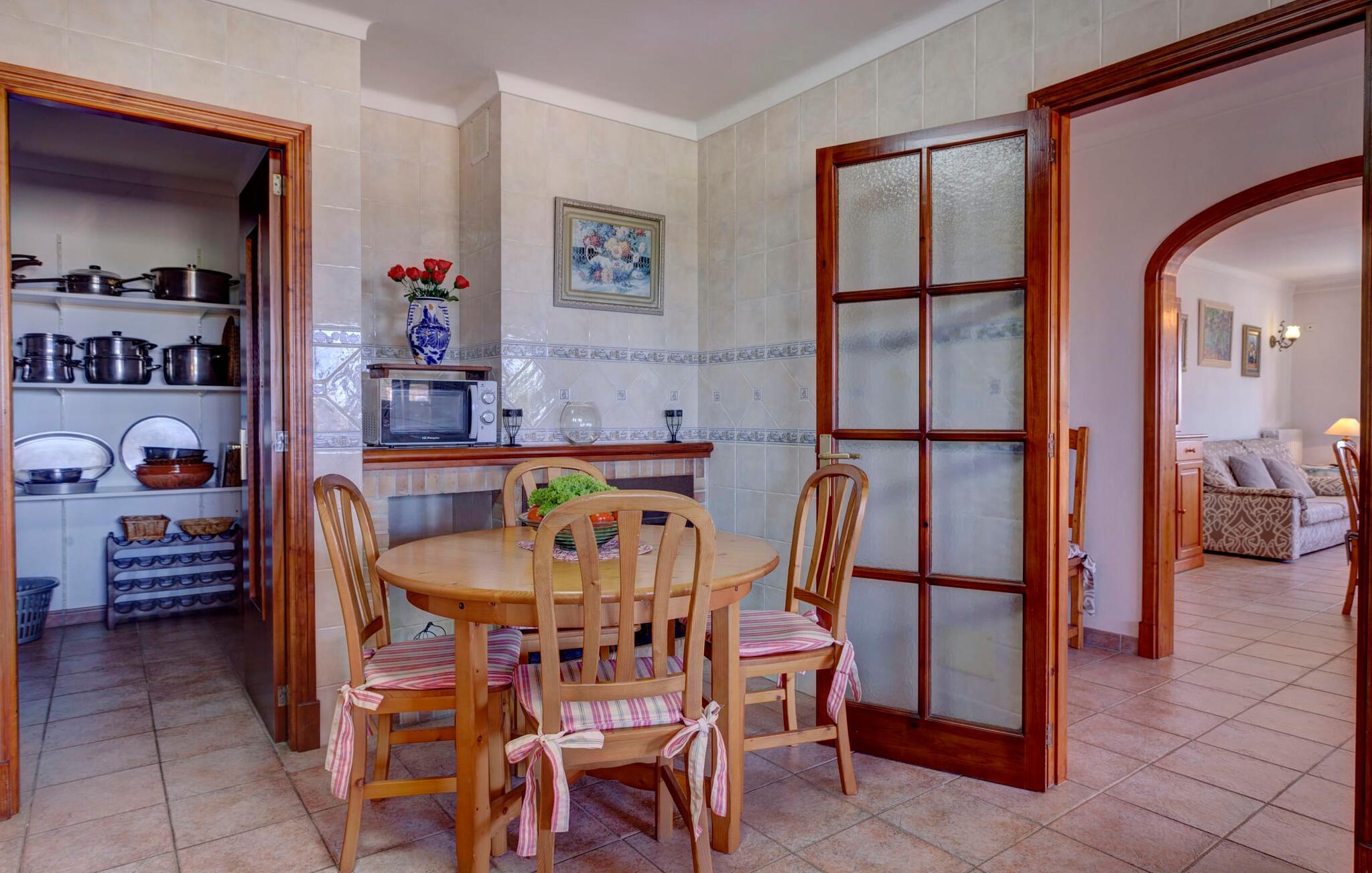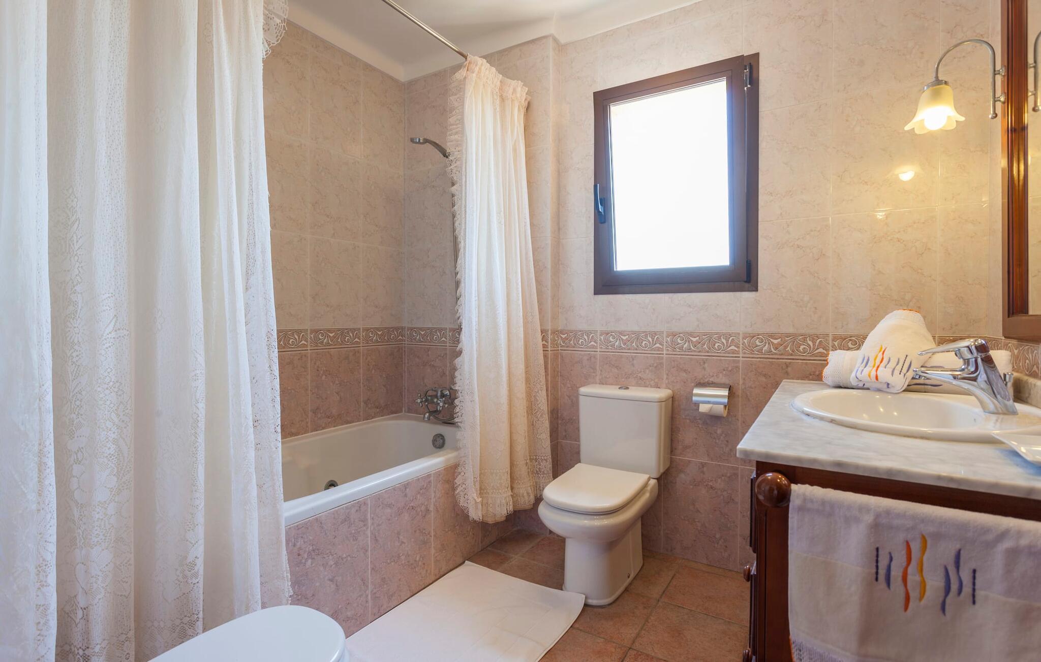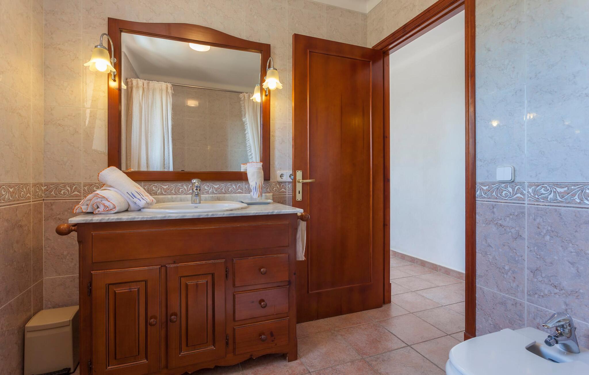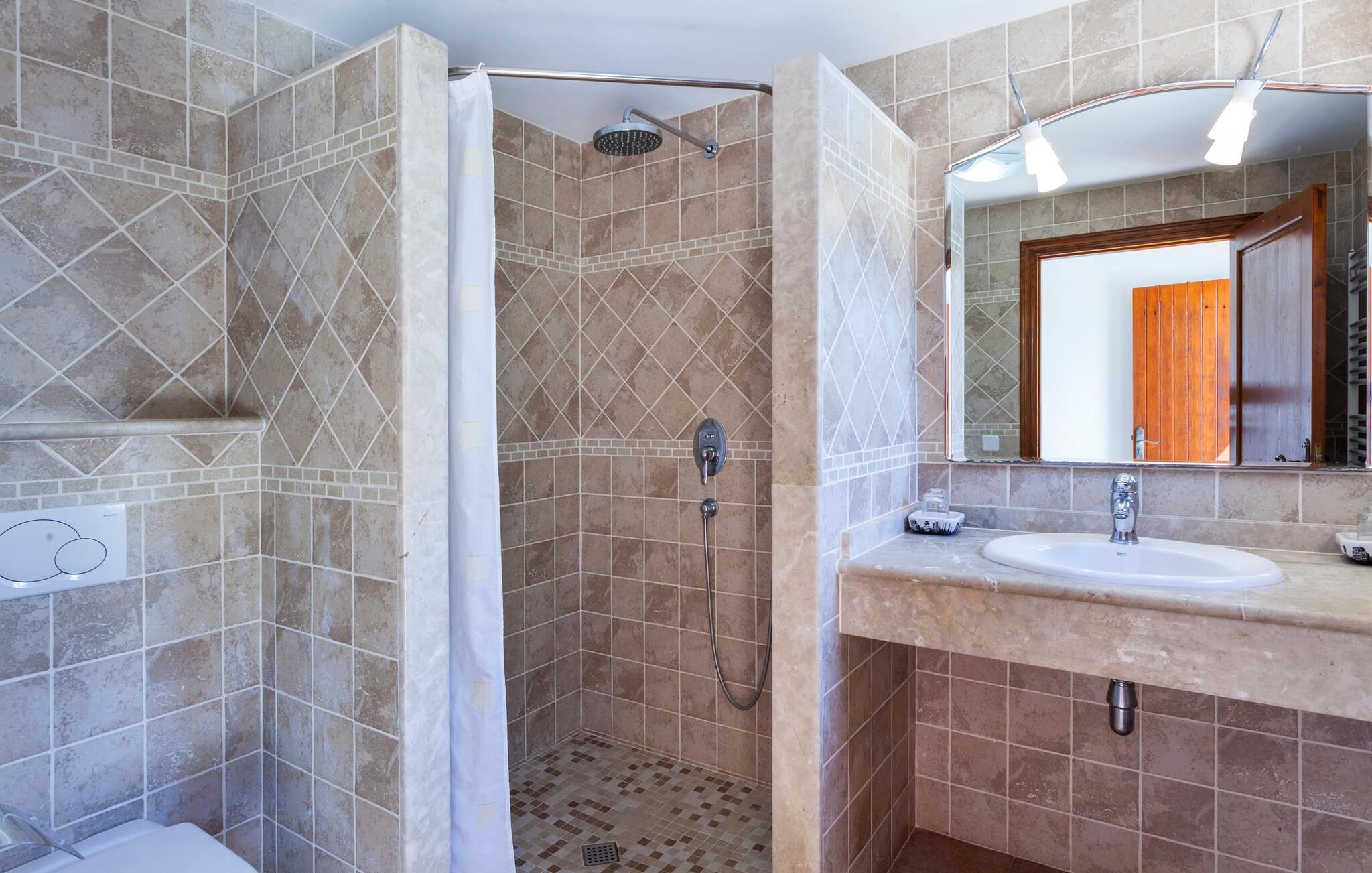 Villaen "Can Jeroni Petit" er den perfekte bolig, hvis I ønsker at tilbringe jeres ferie på Mallorca tæt på stranden, men stadig i landlige omgivelser. Efter I har forladt øens hovedstad og nået landbrugets bagland til Cala D'Or, venter en majestætisk ejendom med et behageligt vedligeholdt udendørsområde jer lidt senere. På en frodig grøn græsplæne er der middelhavspalmer samt mandel- og oliventræer, der giver skygge til det hyggelige opholdsområde. Havens rummelighed gør, at jeres tanker kan vandre i det fjerne – I kan lade hverdagens stress bag jer, når I starter dagen med et forfriskende hop i den glitrende blå pool, som er foret med en terrasse med liggestole. I kan derefter skylle af i udendørsbruseren og starte dagen fuld af energi. Havemøblerne lavet af mørklakeret træ udstråler en ædel charme - ingen tvivl om, denne have er meget imponerende og er perfekt til et aftencocktailparty. Til dette formål er der et udekøkken med indbygget grill, hvor I kan tilberede ø-delikatesser som frisk fisk. Afhængigt af hvor mange personer der er i jeres gruppe, vil I også have adgang til stueetagen ud over den komfortable overetage. I stuen kan I se en af jeres yndlingsfilm på en af de to komfortable sofaer, inden I går i seng. Huset har desuden to soveværelser - det ene med to enkeltsenge og en udtrækssovesofa, det andet med dobbeltseng - og et badeværelse. Den åbne, veranda-lignende stue en etage op er endnu mere rummelig og oversvømmet med lys, I vil ikke hurtigt glemme den imponerende udsigt over havet. Her finder I en hyggelig siddeplads til jeres eftermiddagskaffe – der er også et langbord, hvor I kan spise sammen. På denne etage er der også en stue, hvor I kan se pejsens stille knitren og et fuldt udstyret køkken med et tilstødende spisekammer, hvor vaskemaskinen også er placeret. Hvert af dobbeltværelserne på denne etage har sit eget badeværelse (hvoraf det ene endda har jacuzzi). Samlet set er rummene indrettet med stor sans for detaljen - udvalgte kunstværker på væggene bidrager til den rolige behagelig atmosfære. Begge etager er forbundet med en udvendig trappe, hvilket gør dem til to separate boligenheder. For at udforske områdets idylliske fyrreskovklædte bakker anbefaler vi at tage vandreskoene på eller hoppe på cyklen. Havet ligger kun 1,6 km væk, fjordlignende bugter som Cala Sa Nau med sin billedskønne strandbar inviterer jer til at tilbringe afslappende dage på stranden. Alternativt kan I køre til de stemningsfulde fiskerlandsbyer på det sydøstlige Mallorca. Med S'Horta, Felanitx, Santanyi, Portocolom, Calonge, Cala D'Or og Ca's Concos er I forkælet med valg, når det kommer til destinationer. Efter 8,5 km kommer I til naturparken Mondragó, hvis rige flora og fauna vil forbløffe jer. Takket være den rolige beliggenhed - afhængig af vindretningen kan I høre en vej i det fjerne - kan I også nyde en lignende landlig idyl på jeres ejendom. Der er en meget attraktiv golfbane ca. 4 km væk, hvor I kan afslutte jeres ferie med noget sport. Den familievenlige villa "Can Jeroni Petit" scorer point med sin nærhed til en fantastisk strand: en dag med svømning ved fjorden Cala Sa Nau kan rundes af med en gåtur i den maleriske havneby Portocolom, hvor I kan finde en række butikker og gastronomiske muligheder Tilbud. I kan hurtigt nå Cala D'Or og S'Horta - det perfekte udgangspunkt for at udforske sydkysten. Bemærk venligst, at denne ejendom ikke accepterer ungdomsgrupper eller polterabender. En ungdomsgruppe på denne ejendom består af personer på 28 år eller derunder. Book ikke denne ejendom, hvis I er en ungdomsgruppe eller en polterabendgruppe, da jeres reservation vil blive afvist, når den er booket, hvilket også kan være tilfældet ved ankomst til ejendommen eller under jeres ophold, og I vil ikke modtage en refusion.