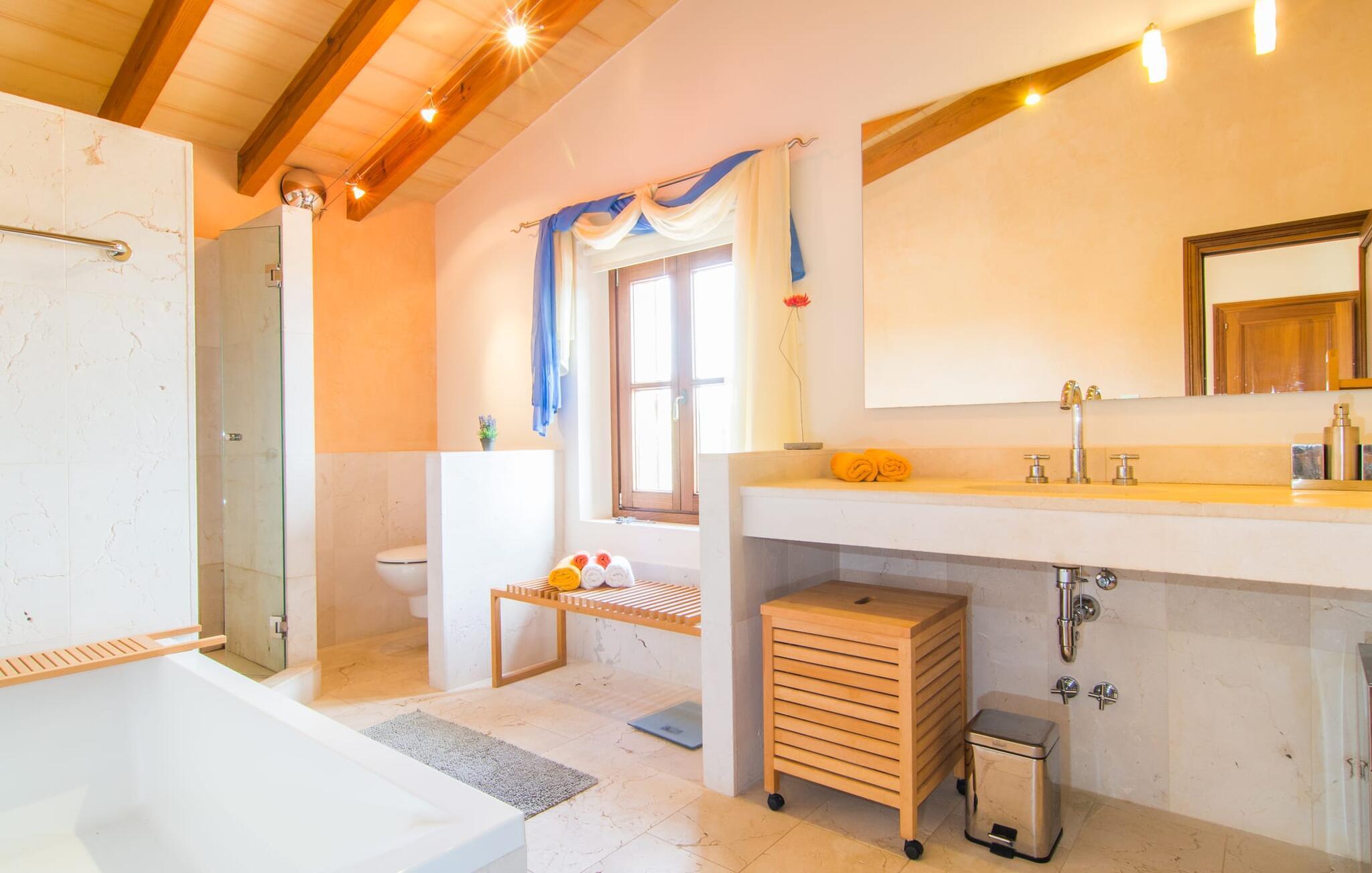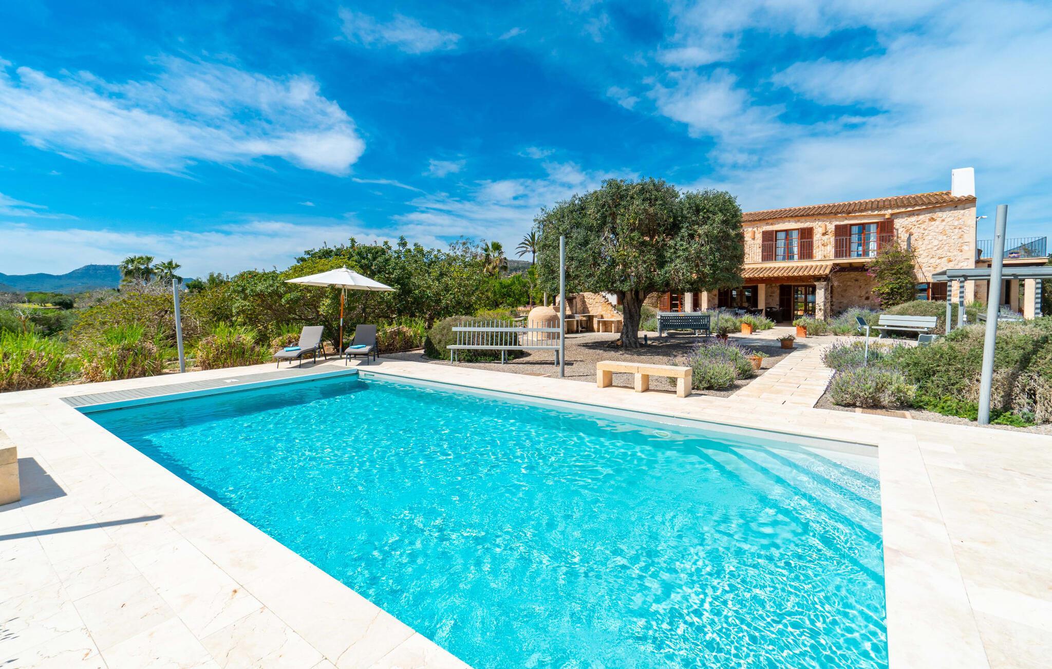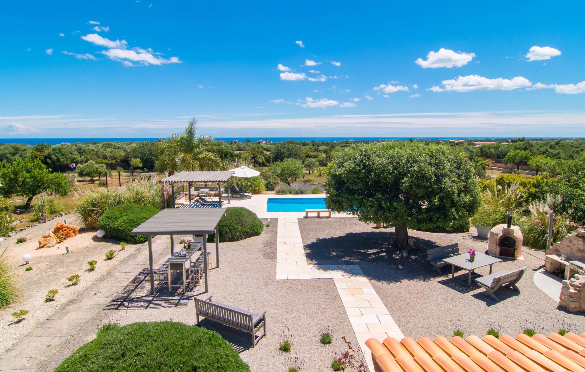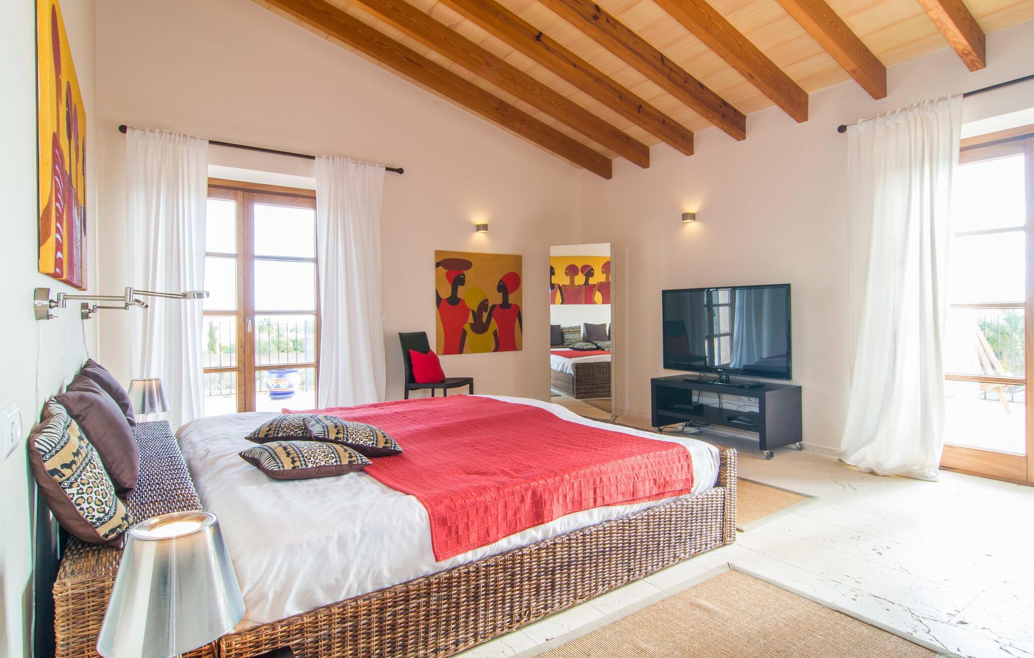 Du tager gerne imod den lidt ujævne tur over en grusvej, når sådan en juvel venter på dig – bliver de smukkeste skatte ikke nogle gange bevogtet af en drage? I “Can Joaquin” vil du føle, som om du har vundet hovedgevinsten i Fincallorca-lotteriet - du er sikret en plads på livets solside, hvad enten det er i det overdådige hovedhus, i det hyggelige gæstehjem eller i haven! Den rummelige ejendom, i typisk mallorcansk stil med to vindmøller, ligner et privat fritidsområde med korte gåture, swimmingpool, badmintonbane (hvor du endda kan spille volleyball), udendørs skakbræt, overdækket bordtennisbord og udstyret træningssti og en runde. pavillon med hængekøje til din konstante brugsaktivitet. Vi garanterer, at du ikke behøver at bekymre dig et øjeblik om, hvordan du eller dine børn vil beskæftige sig under din ferie; Denne villa sikrer en chill faktor for unge og gamle og med en kærligt designet legeplads med sand, legeredskaber og et legehus, kommer børn med garanti ikke til at kede sig. Læg hertil det luksuriøse udekøkken i den enorme gårdhave og den store murstensgrill ved siden af poolterrassen, og du har alt hvad du behøver for at fejre udelivet og naturligt forlænge dine dage ind i de lune sommernætter. Det ville dog være en skam ikke at kunne nyde ejendommens skønhed og privatliv og dens udsigt i fred; Der er et fantastisk udvalg af siddepladser, liggestole, bænke, stole, borde og terrasser bag halvkugleformede hække eller under træer og bougainvillea, enten med udsigt eller gemt væk. Brug først fitnessstien, og bliv derefter siestaens herre... Plantager som appelsiner, citroner, kiwier, æbler, vin, granatæbler, bananer, ferskner og avocadoer, som konstant tilføjes af ejerne, supplerer den frodige vegetation, gamle figentræer, som bærer den bedste frugt. Du er selvfølgelig også velkommen til at prøve alt på det rigtige tidspunkt af året. Men lad os ikke glemme indersiden af villaen! En lur i huset kan være direkte fristende, når soveværelserne har aircondition og udgang til altanterrasse (det store soveværelse har to altaner med vidunderlig udsigt!) og er så luksuriøst indrettet med tv og chill-out område, at man kun kan tænk på dig selv alt for glad for at trække dig tilbage i dit eget rum for et stykke tid. Metalseng, træseng, kurveseng – hvad foretrækker du? Hvis du kan lide cool interiør, der minder om nordlige breddegrader, vil du kunne lide den blå "dormitorio" med et integreret strandhus-stil badeværelse og skab. Med andre ord: Mallorca møder Afrika! Varme, lyse farver, luftigt fletværk, højkvalitetssten og smagfuldt tilbehør forvandler to solbeskinnede folkeslags kulturer til en indretning, der stadig giver plads til moderne elementer. Designerpejsen og fladskærms-tv'et sidder næsten side om side som tvillinger i lodgens luksuriøse stue, og i det halvcirkelformede, fuldt udstyrede køkken i træ og rustfrit stål er det lige så nemt at tilberede en brændende tanzanisk fiskeret som en spansk paella. Tilbered en kreativ crossover-ret, og alle dine ledsagere vil hurtigt strømme til dit bord fra alle hjørner af ejendommen. Selv køkkenet i “Canito Joaquin”, som er indrettet i samme stil som hovedhuset, forbliver koldt. Der er plads til alle på livets solside! Cales de Mallorca-regionen er oversået med huler (Cova des Pirata, Cova des Pont eller Coves dels Hams, for at nævne nogle få), og mange af de klippe- og sandede bugter, der er så rost i hver guidebog, er også hjemsted for bevogtede drager - hvis du ønsker at få adgang, skal du bevise din udholdenhed, men du vil også blive rigt belønnet af havets guder. Men hvis du foretrækker at blive i siesta-tilstand, inviterer den rolige havneby Portocolom med sine smalle gader, caféer, fiskerestauranter og en bred allé af platantræer dig til formålsløst stress og jag, mens udsigten fra det nærliggende kloster San Salvador venter på dig Den venlige by Felanitx i det indre af øen vil forbløffe dig. I "Vall D'Dor" golfklubben kan du ikke bare svinge en kølle; Du kan også besøge en rigtig god restaurant, tage naturskønne gåture og spille kamptennis. Det sidste er også muligt på Rafael Nadals enorme tennisakademi, som kun ligger omkring 12 minutters kørsel væk i Manacor. Den sydlige del af Mallorca har så meget i vente for dig... I en landlig beliggenhed, mellem Porto Colom og Porto Cristo, med panoramaudsigt over havet og bjergene, på en dyrket grund på næsten to hektar, strækker Can Joaquin sig ud i sol, med udsigt over havet i det fjerne, prydet med en bjergkæde i baggrunden. Portocolom, en af de mest charmerende byer på sydøstkysten, ligger kun få minutters kørsel væk. Nærheden til vandet og den såkaldte kystvej, som fører til S'Alqueria Blanca, gør det nemt at opdage nye bugter eller promenader uden for den slagne vej som i Cala d'Or. Golfentusiaster vil også få noget for pengene. Den storslåede "Vall D'Dor" golfklub, kun få minutter væk, vil overgå dine forventninger. Dette er et Fincallorca feriehus.