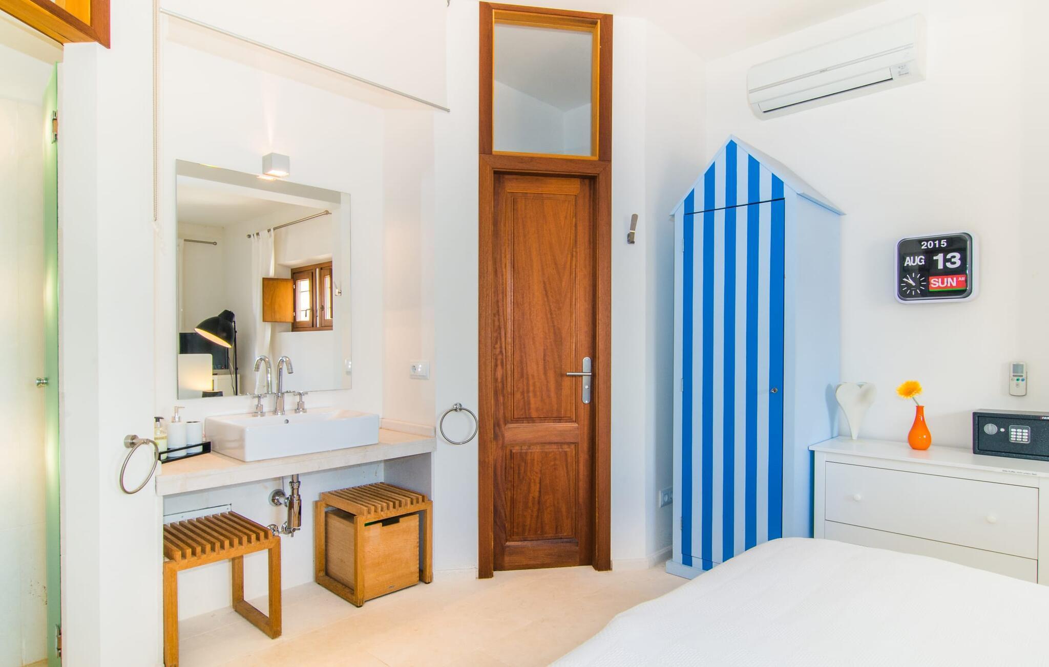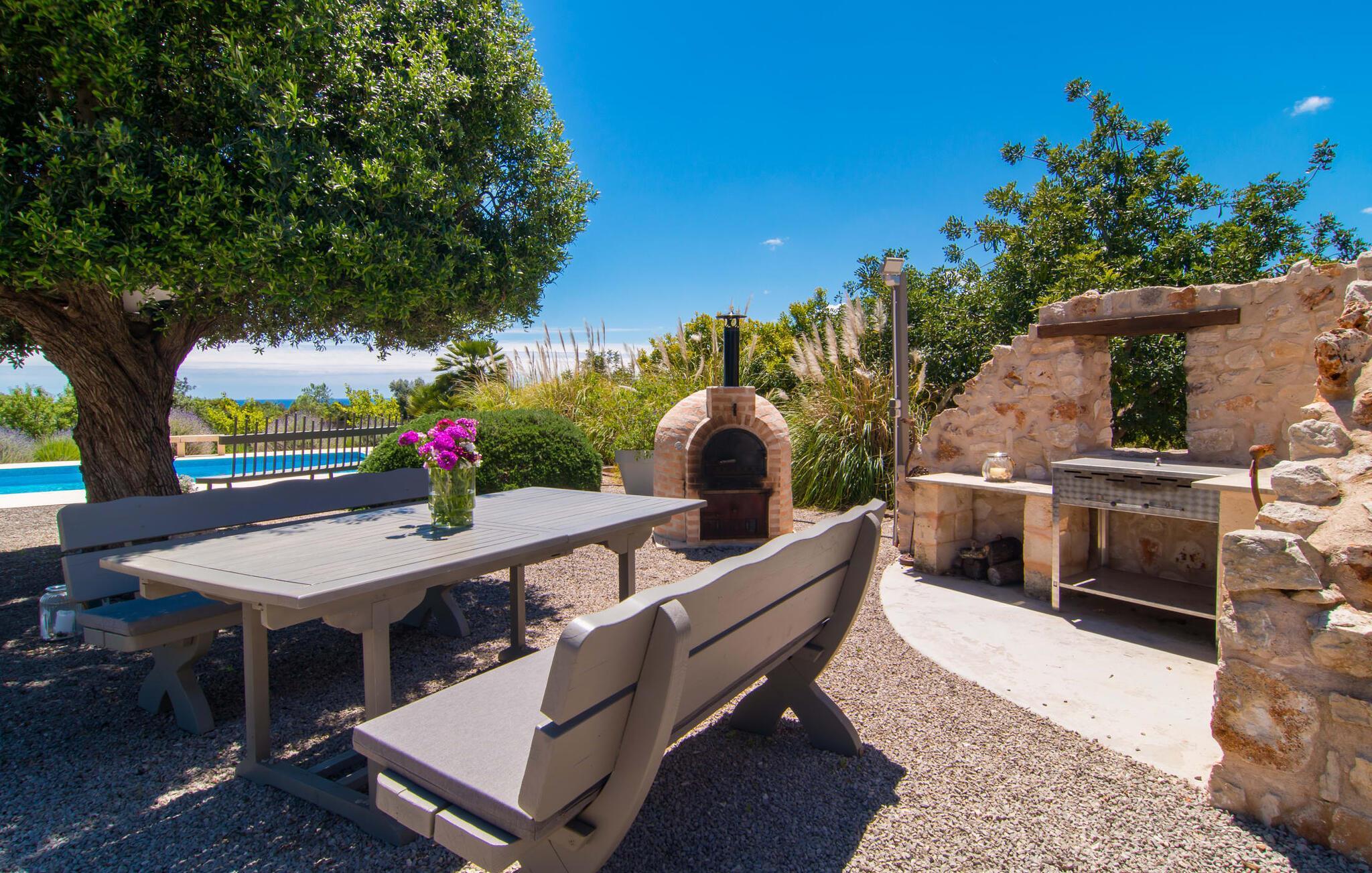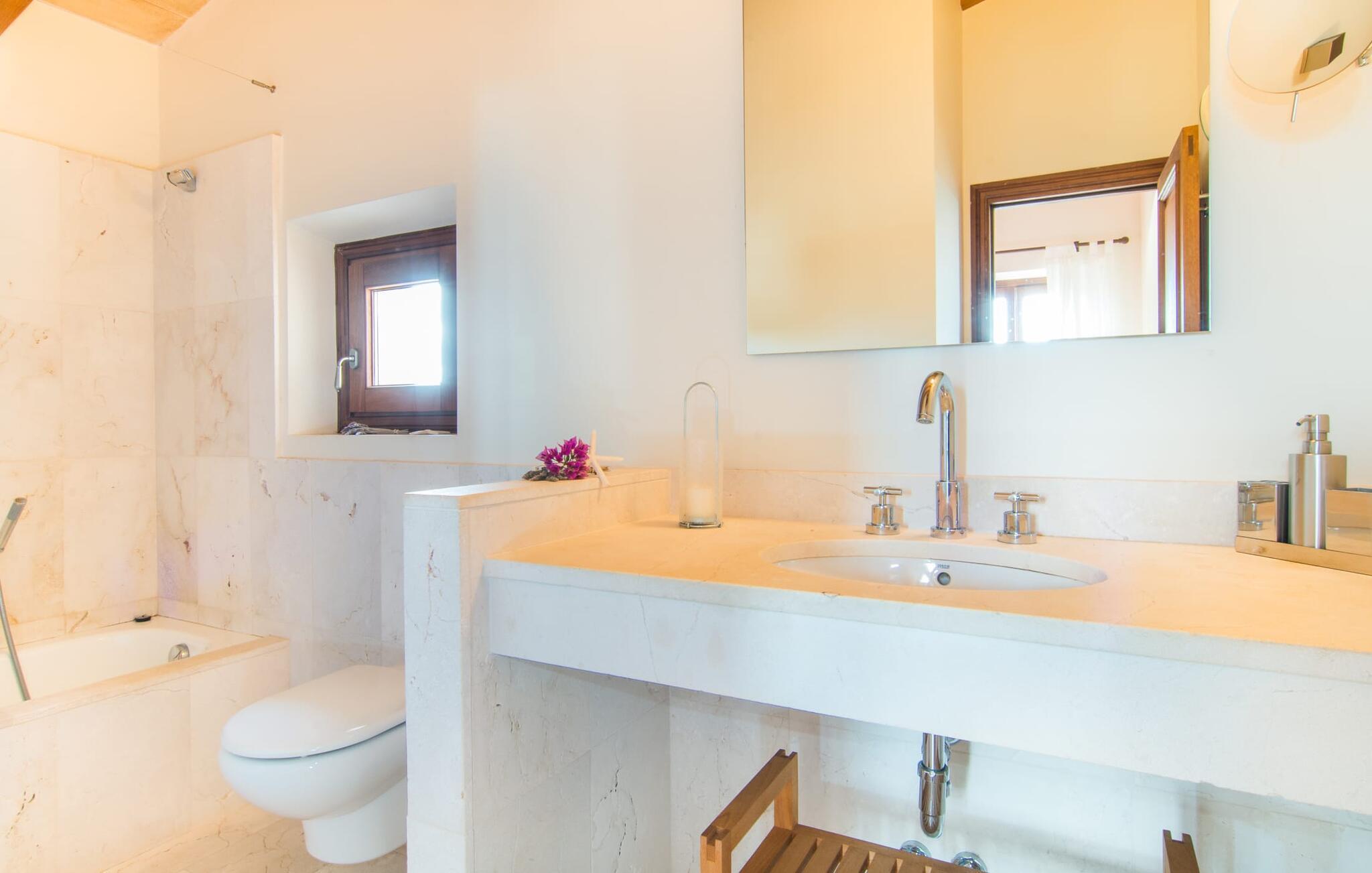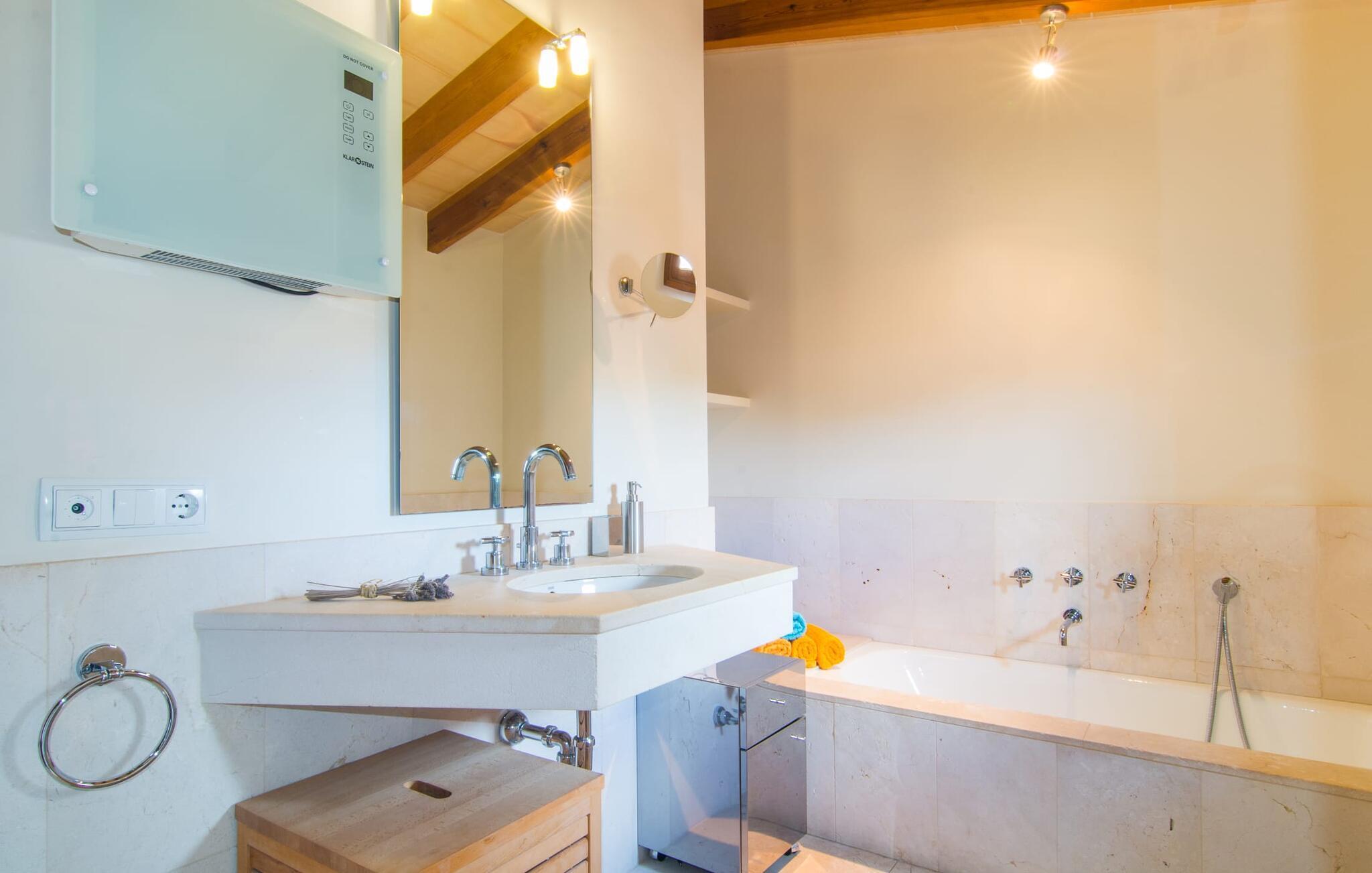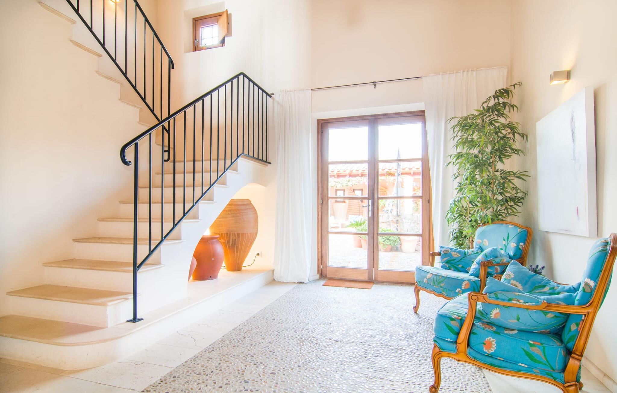 Du tager gerne imod den lidt ujævne tur over en grusvej, når sådan en juvel venter på dig – bliver de smukkeste skatte ikke nogle gange bevogtet af en drage? I “Can Joaquin” vil du føle, som om du har vundet hovedgevinsten i Fincallorca-lotteriet - du er sikret en plads på livets solside, hvad enten det er i det overdådige hovedhus, i det hyggelige gæstehjem eller i haven! Den rummelige ejendom, i typisk mallorcansk stil med to vindmøller, ligner et privat fritidsområde med korte gåture, swimmingpool, badmintonbane (hvor du endda kan spille volleyball), udendørs skakbræt, overdækket bordtennisbord og udstyret træningssti og en runde. pavillon med hængekøje til din konstante brugsaktivitet. Vi garanterer, at du ikke behøver at bekymre dig et øjeblik om, hvordan du eller dine børn vil beskæftige sig under din ferie; Denne villa sikrer en chill faktor for unge og gamle og med en kærligt designet legeplads med sand, legeredskaber og et legehus, kommer børn med garanti ikke til at kede sig. Læg hertil det luksuriøse udekøkken i den enorme gårdhave og den store murstensgrill ved siden af poolterrassen, og du har alt hvad du behøver for at fejre udelivet og naturligt forlænge dine dage ind i de lune sommernætter. Det ville dog være en skam ikke at kunne nyde ejendommens skønhed og privatliv og dens udsigt i fred; Der er et fantastisk udvalg af siddepladser, liggestole, bænke, stole, borde og terrasser bag halvkugleformede hække eller under træer og bougainvillea, enten med udsigt eller gemt væk. Brug først fitnessstien, og bliv derefter siestaens herre... Plantager som appelsiner, citroner, kiwier, æbler, vin, granatæbler, bananer, ferskner og avocadoer, som konstant tilføjes af ejerne, supplerer den frodige vegetation, gamle figentræer, som bærer den bedste frugt. Du er selvfølgelig også velkommen til at prøve alt på det rigtige tidspunkt af året. Men lad os ikke glemme indersiden af villaen! En lur i huset kan være direkte fristende, når soveværelserne har aircondition og udgang til altanterrasse (det store soveværelse har to altaner med vidunderlig udsigt!) og er så luksuriøst indrettet med tv og chill-out område, at man kun kan tænk på dig selv alt for glad for at trække dig tilbage i dit eget rum for et stykke tid. Metalseng, træseng, kurveseng – hvad foretrækker du? Hvis du kan lide cool interiør, der minder om nordlige breddegrader, vil du kunne lide den blå "dormitorio" med et integreret strandhus-stil badeværelse og skab. Med andre ord: Mallorca møder Afrika! Varme, lyse farver, luftigt fletværk, højkvalitetssten og smagfuldt tilbehør forvandler to solbeskinnede folkeslags kulturer til en indretning, der stadig giver plads til moderne elementer. Designerpejsen og fladskærms-tv'et sidder næsten side om side som tvillinger i lodgens luksuriøse stue, og i det halvcirkelformede, fuldt udstyrede køkken i træ og rustfrit stål er det lige så nemt at tilberede en brændende tanzanisk fiskeret som en spansk paella. Tilbered en kreativ crossover-ret, og alle dine ledsagere vil hurtigt strømme til dit bord fra alle hjørner af ejendommen. Selv køkkenet i “Canito Joaquin”, som er indrettet i samme stil som hovedhuset, forbliver koldt. Der er plads til alle på livets solside! Cales de Mallorca-regionen er oversået med huler (Cova des Pirata, Cova des Pont eller Coves dels Hams, for at nævne nogle få), og mange af de klippe- og sandede bugter, der er så rost i hver guidebog, er også hjemsted for bevogtede drager - hvis du ønsker at få adgang, skal du bevise din udholdenhed, men du vil også blive rigt belønnet af havets guder. Men hvis du foretrækker at blive i siesta-tilstand, inviterer den rolige havneby Portocolom med sine smalle gader, caféer, fiskerestauranter og en bred allé af platantræer dig til formålsløst stress og jag, mens udsigten fra det nærliggende kloster San Salvador venter på dig Den venlige by Felanitx i det indre af øen vil forbløffe dig. I "Vall D'Dor" golfklubben kan du ikke bare svinge en kølle; Du kan også besøge en rigtig god restaurant, tage naturskønne gåture og spille kamptennis. Det sidste er også muligt på Rafael Nadals enorme tennisakademi, som kun ligger omkring 12 minutters kørsel væk i Manacor. Den sydlige del af Mallorca har så meget i vente for dig... I en landlig beliggenhed, mellem Porto Colom og Porto Cristo, med panoramaudsigt over havet og bjergene, på en dyrket grund på næsten to hektar, strækker Can Joaquin sig ud i sol, med udsigt over havet i det fjerne, prydet med en bjergkæde i baggrunden. Portocolom, en af de mest charmerende byer på sydøstkysten, ligger kun få minutters kørsel væk. Nærheden til vandet og den såkaldte kystvej, som fører til S'Alqueria Blanca, gør det nemt at opdage nye bugter eller promenader uden for den slagne vej som i Cala d'Or. Golfentusiaster vil også få noget for pengene. Den storslåede "Vall D'Dor" golfklub, kun få minutter væk, vil overgå dine forventninger. Dette er et Fincallorca feriehus.