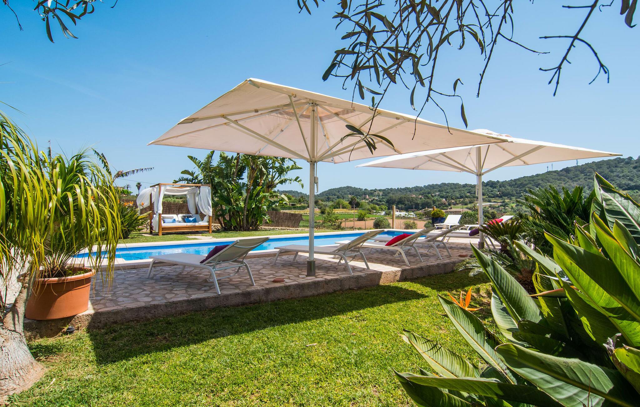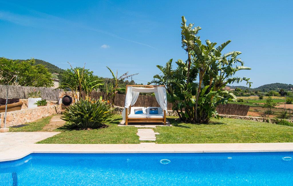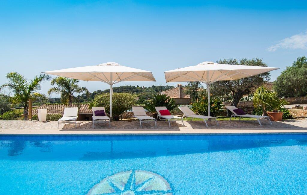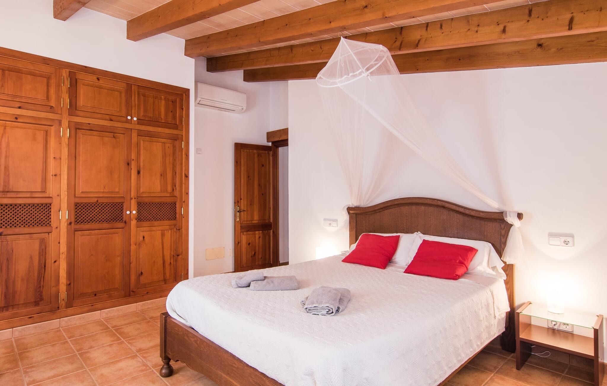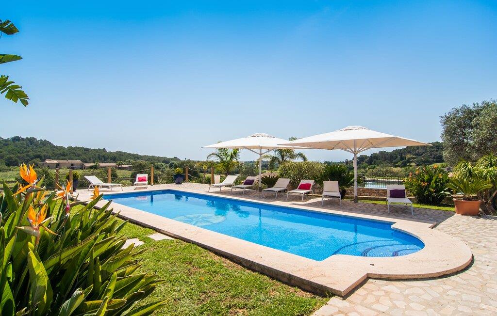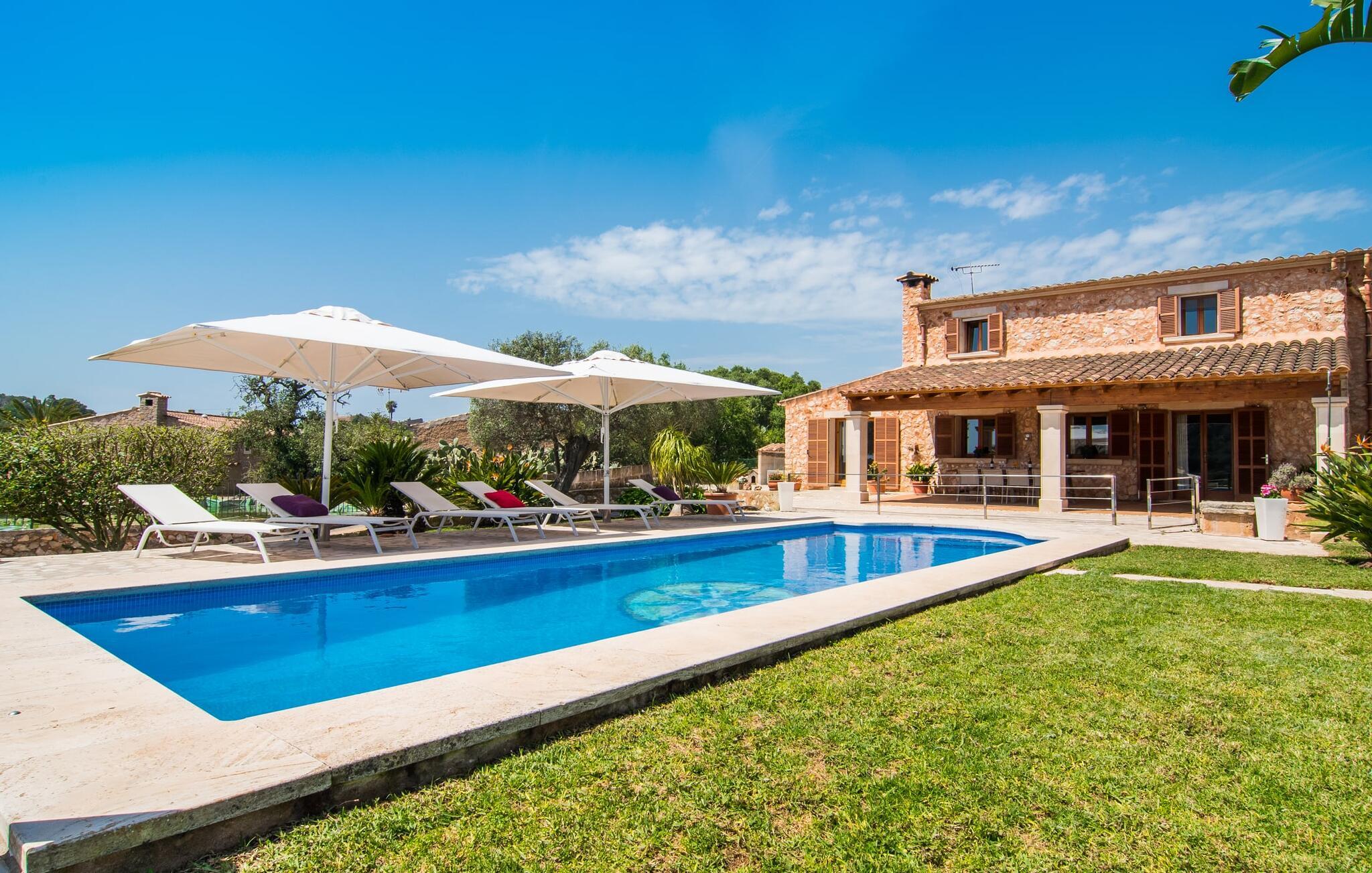 Can Lliganya er et nybygget mallorcansk landsted i klassisk stil med en naturstensfacade suppleret med trævinduesrammer, hvide trim og skodder. Villaen ligger på en vidtstrakt ejendom med vidtstrakte græsplæner og frodige middelhavshaver, fremhævet af slående strelicia, også kendt som paradisfugle. Ejendommen har en rummelig pool med indgangstrin i romersk stil, en udendørs bruser og komfortable liggestole under en stor parasol til afslapning. Huset rummer komfortabelt gæster i fire soveværelser med dobbeltsenge, hver udstyret med queen-size senge eller to 90 cm sengerammer. Der er to badeværelser, hver med natursten og fliser, som tilbyder muligheder for badekar eller bruseniche. Den overordnede æstetik kombinerer rustik charme med et strejf af retroromantik, hvilket skaber en venlig og indbydende atmosfære i hele Can Lligaya. Can Lliganya ligger syd for Felanitx nær S'Horta og Calonge på vej til den smukke sydlige kystregion. I kan nemt gå ind i landsbyen for at shoppe eller tage en tur til de omkringliggende byer og besøge det ugentlige marked. Smukke strande som Cala Torta og Cala d'Or er kun en kort køretur væk. Brug af aircondition i denne ejendom er inkluderet mellem kl. 21.00 og 05.00. Gebyret afregnes herefter kontant på stedet.