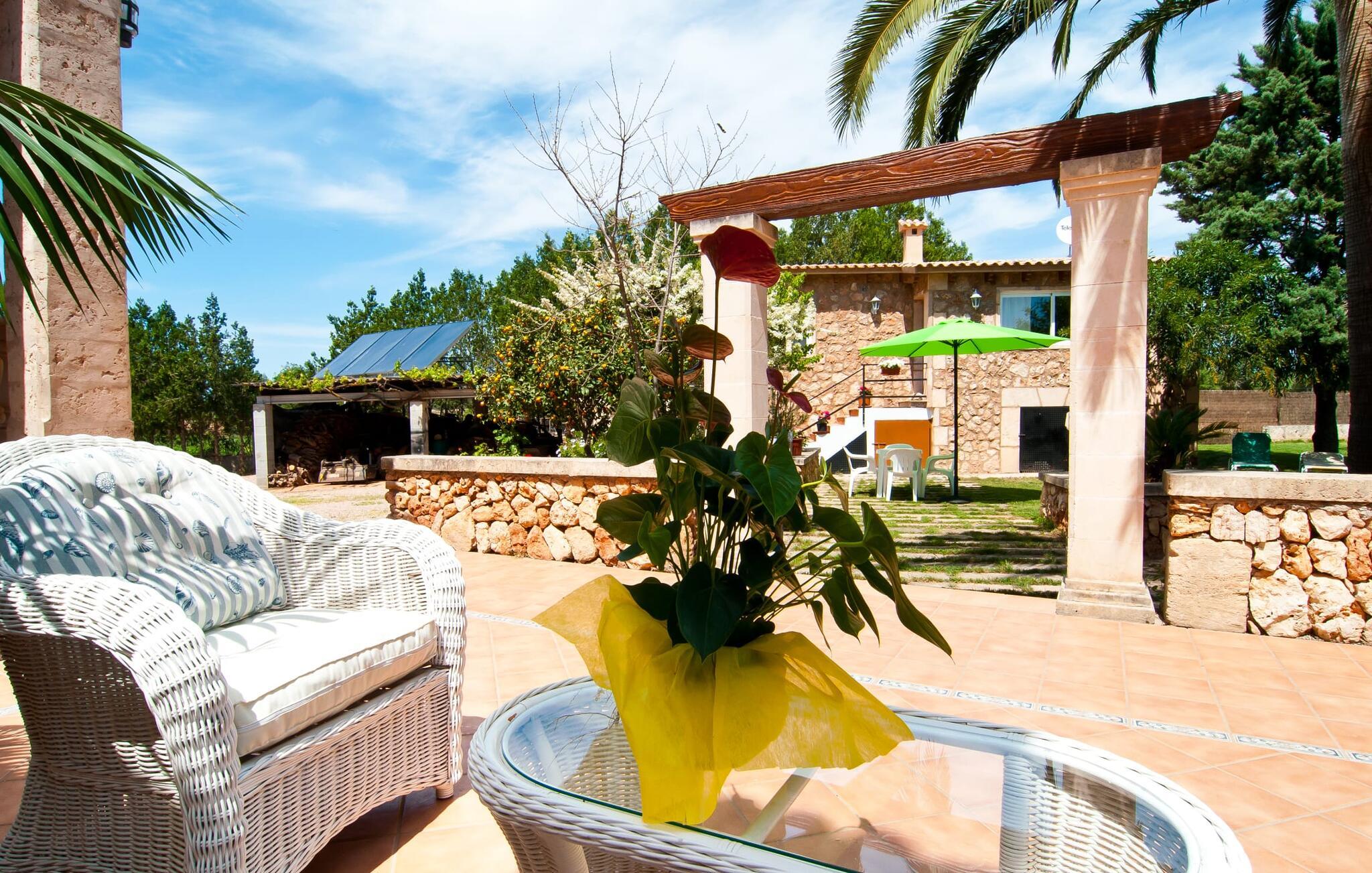 En frodig indkørsel beklædt med en naturstensmur og høje palmer fører os til huset og giver en første smagsprøve på denne ejendoms eksklusivitet. Det står hurtigt klart, at der i udearealet i denne villa er lagt vægt på at præsentere de enkelte elementer i et varieret og større format. Særligt imponerende er det ekstremt store antal træer på ejendommen. I poolområdet får I indtryk af at være midt i en palmehave. En række dekorative elementer og andre unikke stykker og installationer inviterer jer til at opdage og forundre ejendommen og give den en meget individuel flair. På de store terrassearealer kan I hver dag lede efter et nyt, eksklusivt yndlingssted og finde både solrige og luftige naturlige skyggeområder at slappe af. Frugttræer, grøntsager, høns og fugle er også en del af livet på landet her. Poolen, som ligger i læ foran huset, danner havens centrum. Der er adgang til poolen via en stige og har en smuk delfinmosaik på gulvet. Med en længde på 10 m er den en respektabel størrelse. Liggestole og parasoller harmonerer med poolens blå farve og fremtryller et malerisk billede. I kan ligge under middelhavshimlen af hjertens lyst og nyde den mest vidunderlige tid på året. Det kan I lige så smagfuldt gøre i forskellige siddepladser spredt rundt i huset, som udover komfortable kurvestole også byder på spiseborde, stole og en bænk. Ejendommen tilbyder i alt 20 udendørs siddepladser. Et overdækket område er også en del af det rummelige udeareal. I nærheden af poolterrassen ligger grillpladsen, hvor I kan sidde dejligt på lune aftener og forkæle jer selv med friske, regionale delikatesser. Fincaen "Can Lopez Vara" består af et hovedhus og en lejlighed, som stod færdigt i foråret 2014. Når man træder ind i hovedhuset genkender man straks den karakteristiske overdådighed og kan derfor tilbringe tid indenfor i skønne omgivelser. Fritlagte bjælkelofter, mønstrede terracotta-fliser og lyse vægge indrammer dette interiør smukt. I stuen/alrummet, kun adskilt af en bred buet gang, kan I slappe af i sofahjørnet på den ene side og måske nyde en god bog eller en underholdende film, da fjernsynet er bekvemt placeret her. På køligere aftener kan pejsen fremtrylle hyggelig varme. Der er også en lille bar indrettet i hjørnet af lokalet. I kan spise sammen på en kultiveret måde i spisestuen og gøre alle forberedelser på forhånd i køkkenet lige ved siden af. Køkkenet er rummeligt og byder på alt hvad I behøver til daglig brug samt masser af opbevaringsplads. Hvidevarerne omfatter et komfur, en ovn, en køle/frysekombination, en brødrister og en opvaskemaskine samt en kedel og en filterkaffemaskine. Der er endda plads til endnu et lille spisebord, hvor I kan nyde en lille snack med en lille gruppe. I de fem kærligt og meget individuelt designede soveværelser vil alle med garanti finde deres ideelle sted for en afslappende søvn. Badeværelserne fremstår friske og lyse og er udstyret med møbler af høj kvalitet. Den smukke lejlighed har en dobbeltseng og en sovesofa til en ekstra person. Stuen er meget åben. To af soveværelserne har aircondition, de andre har loftsventilator. Derudover har annekset og spisestuen også aircondition. Det smukke havneområde i den tidligere fiskerby Colonia de Sant Jordi (16 km) er ideelt til en kort tur. Elskere af badeferie er kommet til det rigtige sted med villaen "Can Lopez Vara". De indbydende strande på sydøstkysten, især den familievenlige Es Trenc strand, kan hurtigt nås med lejebil. Hvis I ønsker det, kan I udforske en anden af de mange bugter hver dag. Om aftenen på en fantastisk feriedag, kan I vende tilbage til jeres ferievilla og skabe jeres egen personlige afslutning på dagen. Villaen "Can Lopez Vara" er beliggende i en afsondret landlig beliggenhed, mindre end 5 minutter i bil nord for byen Campos i den sydlige del af øen. Campos har barer og restauranter samt butikker til daglige behov. Køreturen til Mallorcas sydlige strande er ikke langt fra dette feriehus.