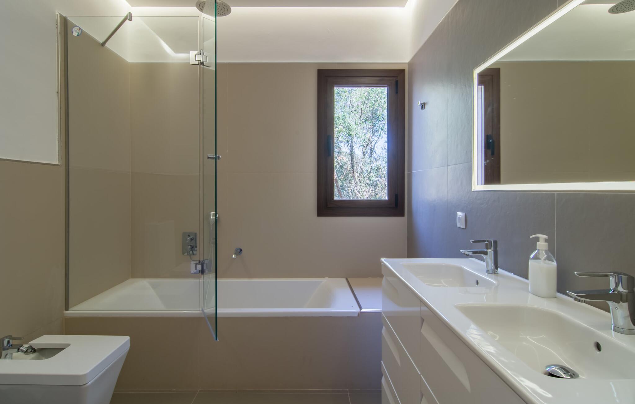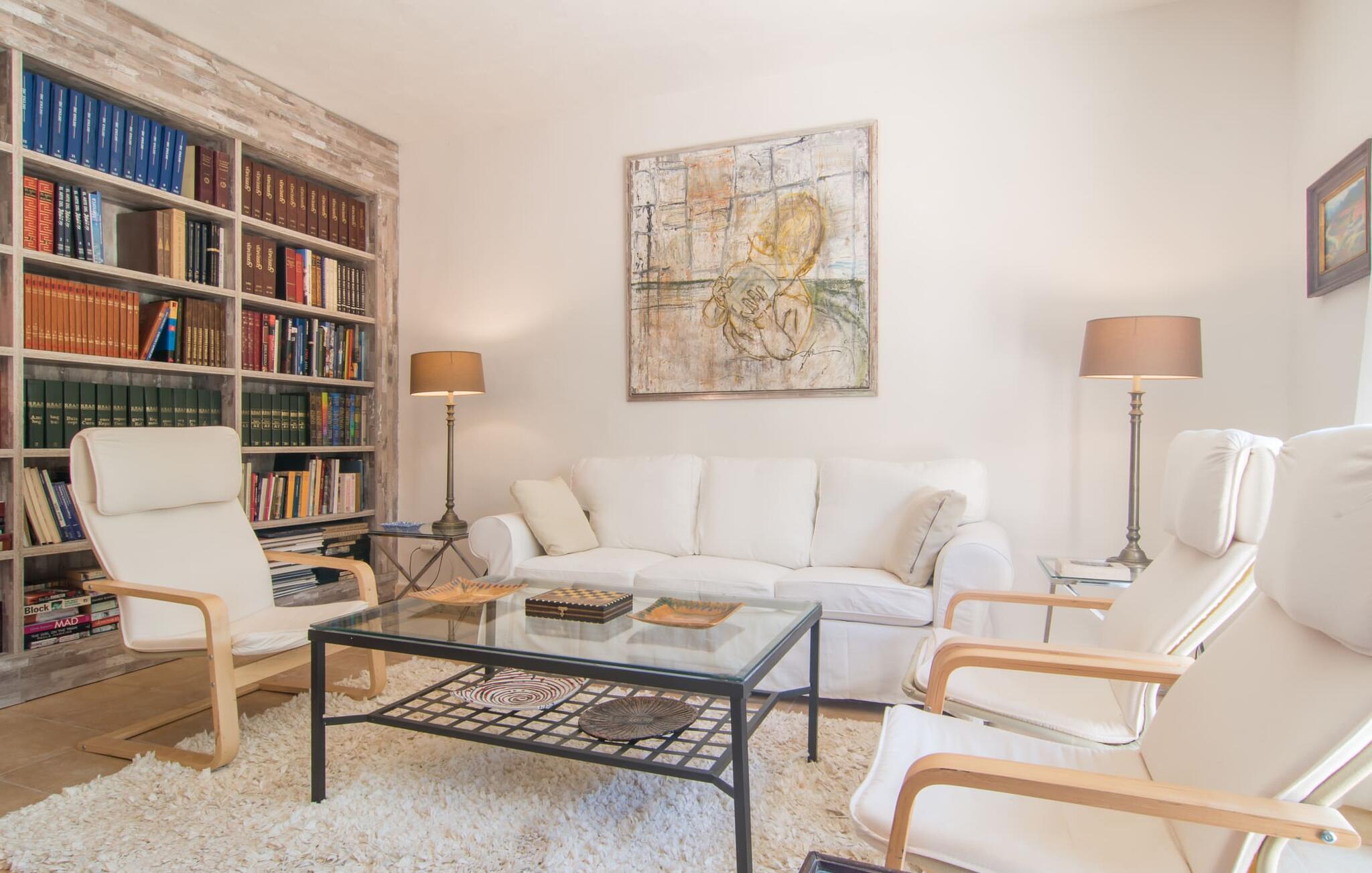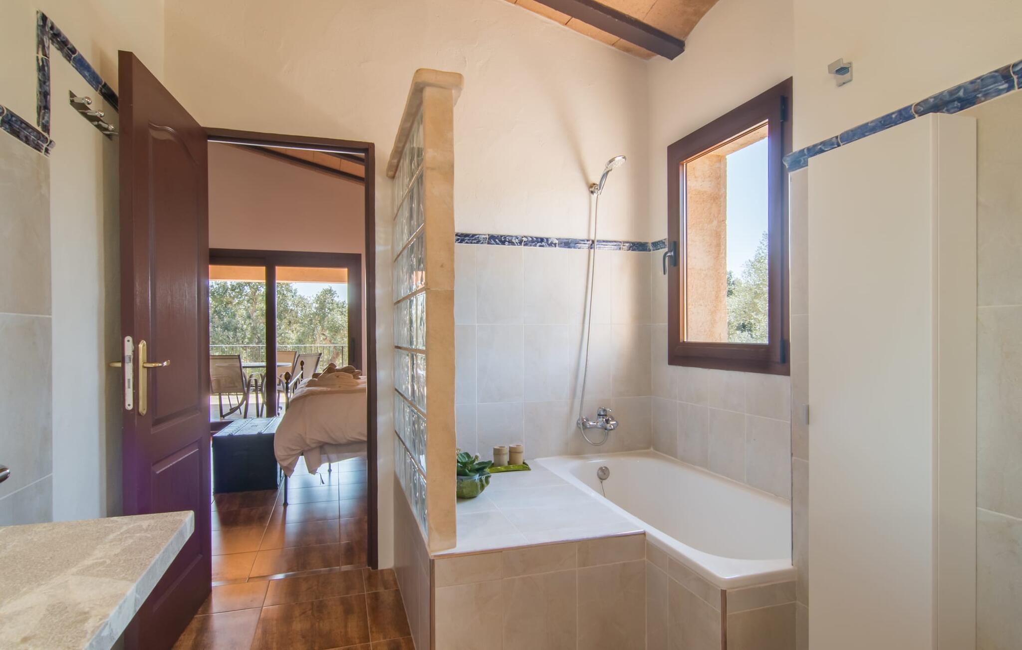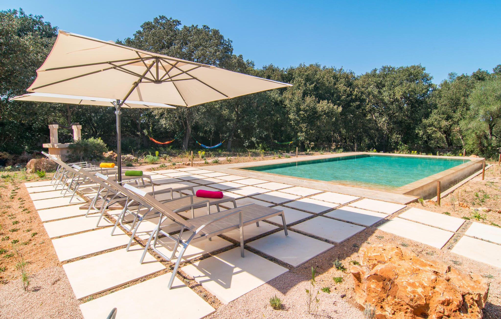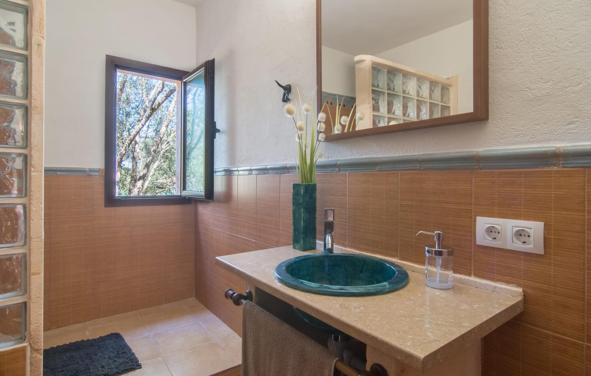Farverne på "Can Madis" fanger straks øjet - de udtrykker livlighed, frihed, nærhed til naturen og på samme tid en følelse af ædel skønhed og luksus. Noget vi sjældent forkæler os selv med, måske alt for sjældent. Derfor bør I forkæle jeres familie og venner med et besøg på "Can Madis", en smuk ejendom i hjertet af vores ø. Figen- og oliventræer, cypresser og udsigt over Tramuntana-bjergene karakteriserer middelhavsejendommen. Den nybyggede sandstensbygning, der skinner gyldent i solen, afspejler tradition og modernitet. Det er afrundet af den enorme pool med komfortabel indgang. Efter lange dage med udflugter eller vandreture kan I slappe af i spabadet. Bagefter kan I tage en siesta på en af de komfortable liggestole under den dobbelte parasol eller blot slappe af i en af hængekøjerne i haven. Den indbyggede hjørnegrill fungerer også som bålplads efter et lækkert festmåltid - I kan sidde på de indbydende kurvemøbler ved et langt træbord under markiserne. I kan også finde mere komfortable møbler på den overdækkede del af terrassen med spiseplads, en afslappet lounge og farverige liggestole. Afslapning er hovedaktiviteten på programmet, så det usædvanligt smarte interiør og udvendige design vil altid passe til jeres behov. Midtpunktet er det kombinerede opholdsrum. Denne lyse stue med gulv til loft vinduer er opdelt i en hyggelig stue med sofagruppe og tv-hjørne, en stilfuld spiseplads foran en hyggelig pejs og et rustikt bibliotek, ligeledes med smart-tv. Så mange yndlingssteder at vælge imellem! Terracotta, trægulve, buede lofter og "hopper" understreger den naturlige atmosfære i interiøret. I vil også opdage denne kvalitet i det fuldt udstyrede køkken med træmøbler af høj kvalitet. Samtidig minder det om et gammelt stuehus med det andet ildsted: I tidligere tider var dette socialcenter, da det ofte var det eneste opvarmede lokale. Efter lange, frie dage vil I til sidst føle jer træt - I kan derefter trække jer tilbage til et af de fire airconditionerede soveværelser, hvoraf de fleste er placeret på øverste etage (et soveværelse med badeværelse er i stueetagen). På første sal har hvert af de smarte soveværelser med fantastisk udsigt også et badeværelse med brusekabine eller badekar. Den rummelige balkon med tag, hvorfra I kan overskue haven og poolen, er et ideelt sted at trække sig tilbage for at læse en god bog. Lad os være ærlige – kan I komme i tanke om noget, I skal gå på kompromis med? Vi er helt vilde med "Can Madis". Det gælder også den smukke beliggenhed af denne premium villa, selvom øens centrum ofte får mindre opmærksomhed. Det er også tilfældet med Costitx, den dejlige lille by, der hurtigt kan nås. Det tilbyder alt, hvad I behøver til hverdagen, såvel som de typiske ø-faciliteter: et landsbytorv i centrum og et ugentligt marked om lørdagen. Caféer, restauranter, en bank, et apotek, et supermarked – hvad mere kan jeres hjerte ønske sig? Og i denne lille by er der af alle steder et planetarium – men måske er udsigten til stjernerne midt på øen simpelthen den smukkeste. I bør bestemt også besøge Santuari Ferrer de Son Ferrer-attraktionen, som I endda kan kombinere med en kort gåtur. Simpelthen spredt ud - takket være den centrale beliggenhed kan I hurtigt nå alle regioner. God fornøjelse med at udforske hele Mallorca! Den moderne naturstensvilla "Can Madis" byder på et unikt smukt feriehus med en stor pool og et omfattende havelandskab. Ejendommen har en utrolig rolig beliggenhed i centrum af øen mellem Sencelles og Costitx, hvor I også kan shoppe eller besøge det ugentlige marked. Fra den centrale del af øen kan I tage på fantastiske ture til alle kystregioner og deres lokale strande - fra Cuidad Jardin i syd til Alcúdia-bugten i nord.