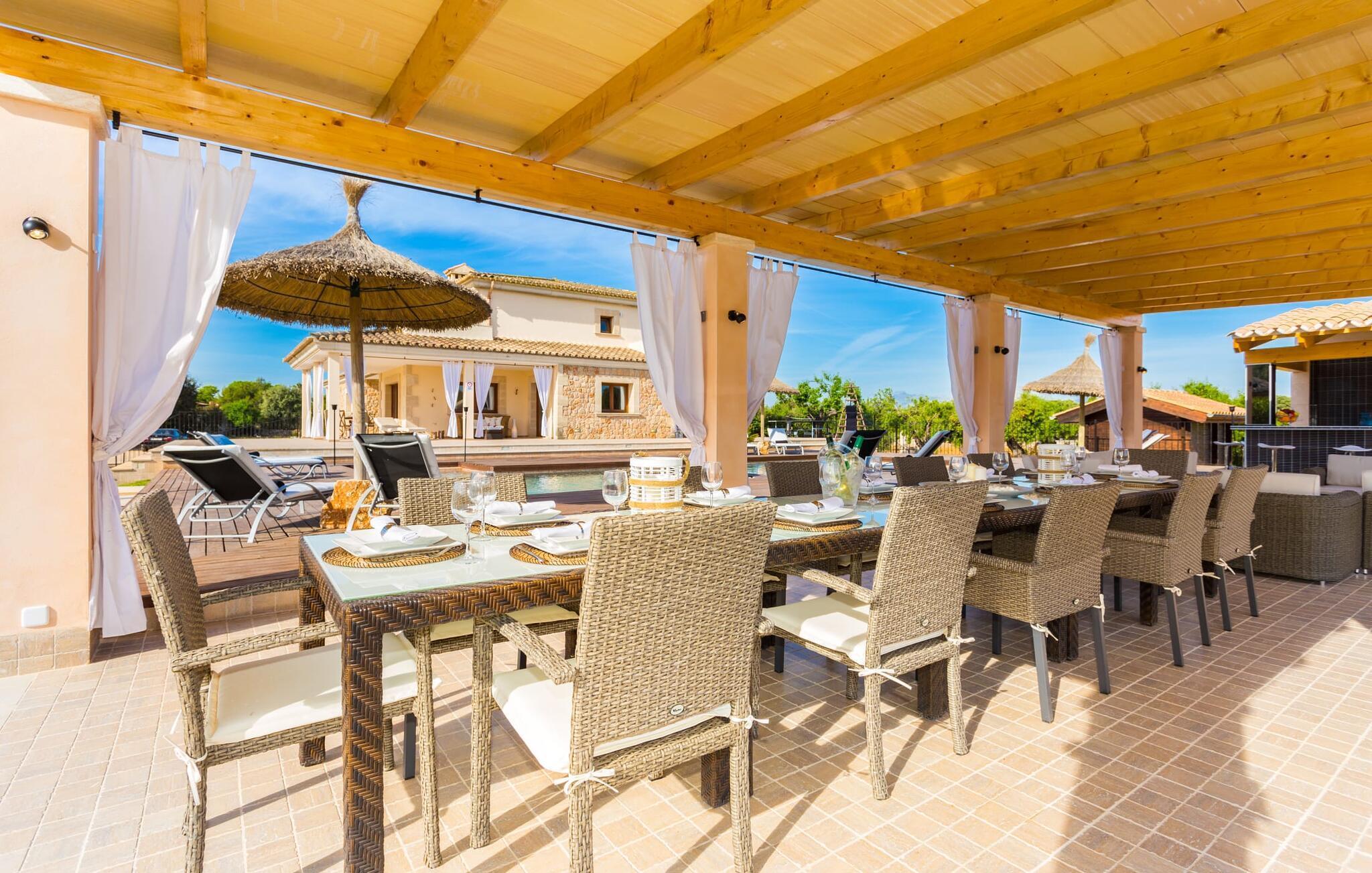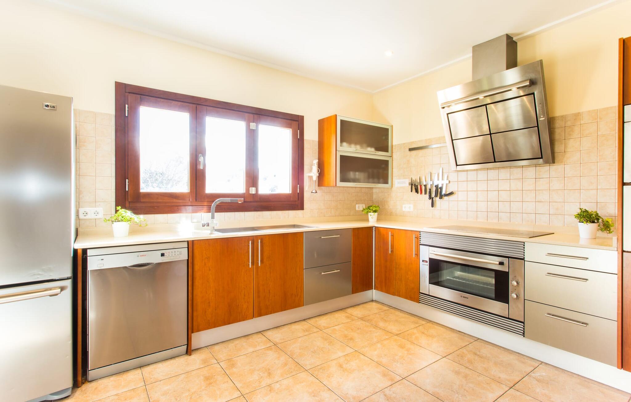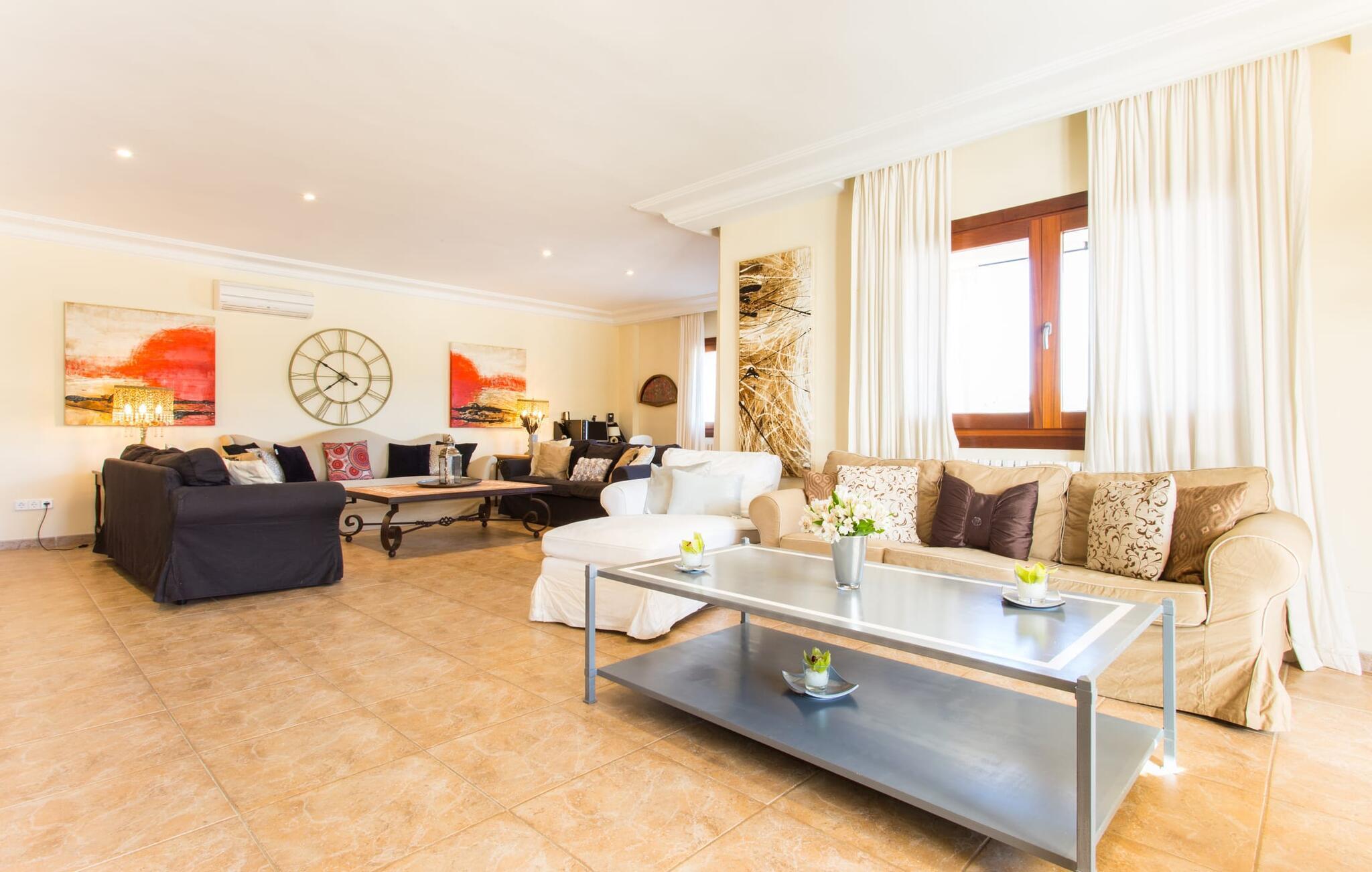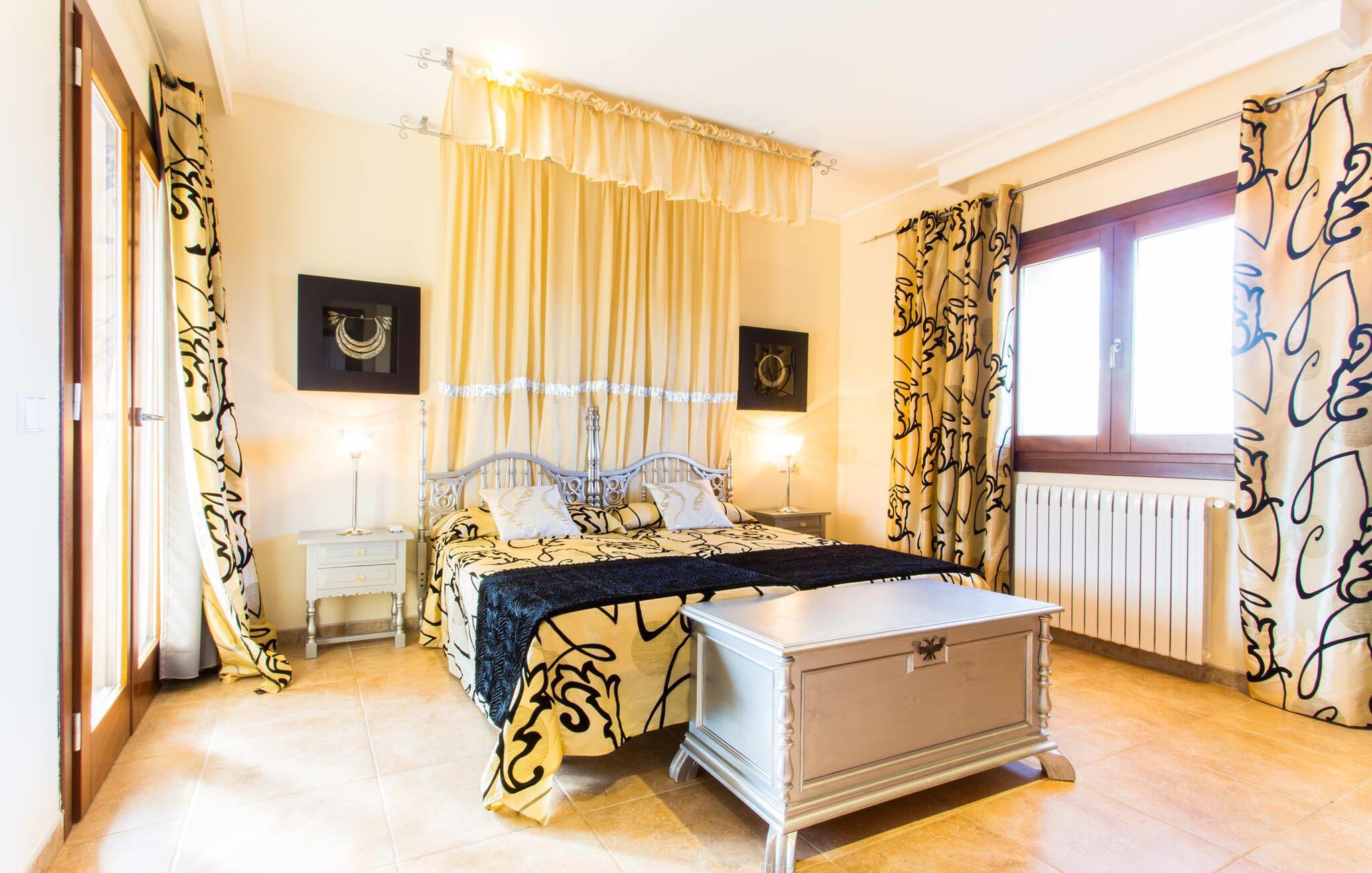 "Can Magnus" er en fantastisk villa, hvor skønheden i ejendommen taler for sig selv. Det ekspansive udendørsområde er en sand oase med en luksuriøs pool omgivet af en stilfuld træsolterrasse. Dette er et feriehus i Fincallorca. En bred trappe fører til den store mosaikbelagte pool, perfekt til at slappe af under middelhavssolen på de komfortable liggestole. Parasoller giver skygge, mens et tilstødende udendørs badeværelse giver komfort. Børn vil elske legehuset, mens voksne kan slappe af i den renoverede bar med ølhane. Det overdækkede loungeområde tilbyder et perfekt sted at trække sig tilbage, mens det rummelige spisebord inviterer dig til at nyde afslappede måltider udenfor. Villaen har også en balkon til privat solbadning og vidunderlig udsigt, samt en udendørs sauna til ultimativ afslapning. Indvendigt har villaen et moderne, smagfuldt design med lyse rum og en beroligende farvepalet. Den store stue med fire sofaer og en lænestol inviterer dig til at slappe af, uanset om du ser tv eller læser. Spiseområdet har komfortabel plads til ti personer, og det fuldt udstyrede køkken giver mulighed for nem tilberedning af måltider. De elegante værelser tilbyder stille komfort og en afslappende atmosfære, hvilket gør "Can Magnus" til det perfekte tilflugtssted for en afslappende ferie. Den afsondrede finca "Can Magnus" ligger ved porten til Alcúdia, i øst og meget tæt på stranden. Alcúdia ligger tre minutters kørsel derfra. Et livligt marked finder sted her hver tirsdag og søndag. De smukke sandstrande på den nordøstlige kyst, såsom Playa de Muro, er nemme at nå med bil. Palma de Mallorca Lufthavn kan nås i bil på omkring 45 minutter. Den berømte guldbane "Alcanada Golf" ligger kun 6 km væk.