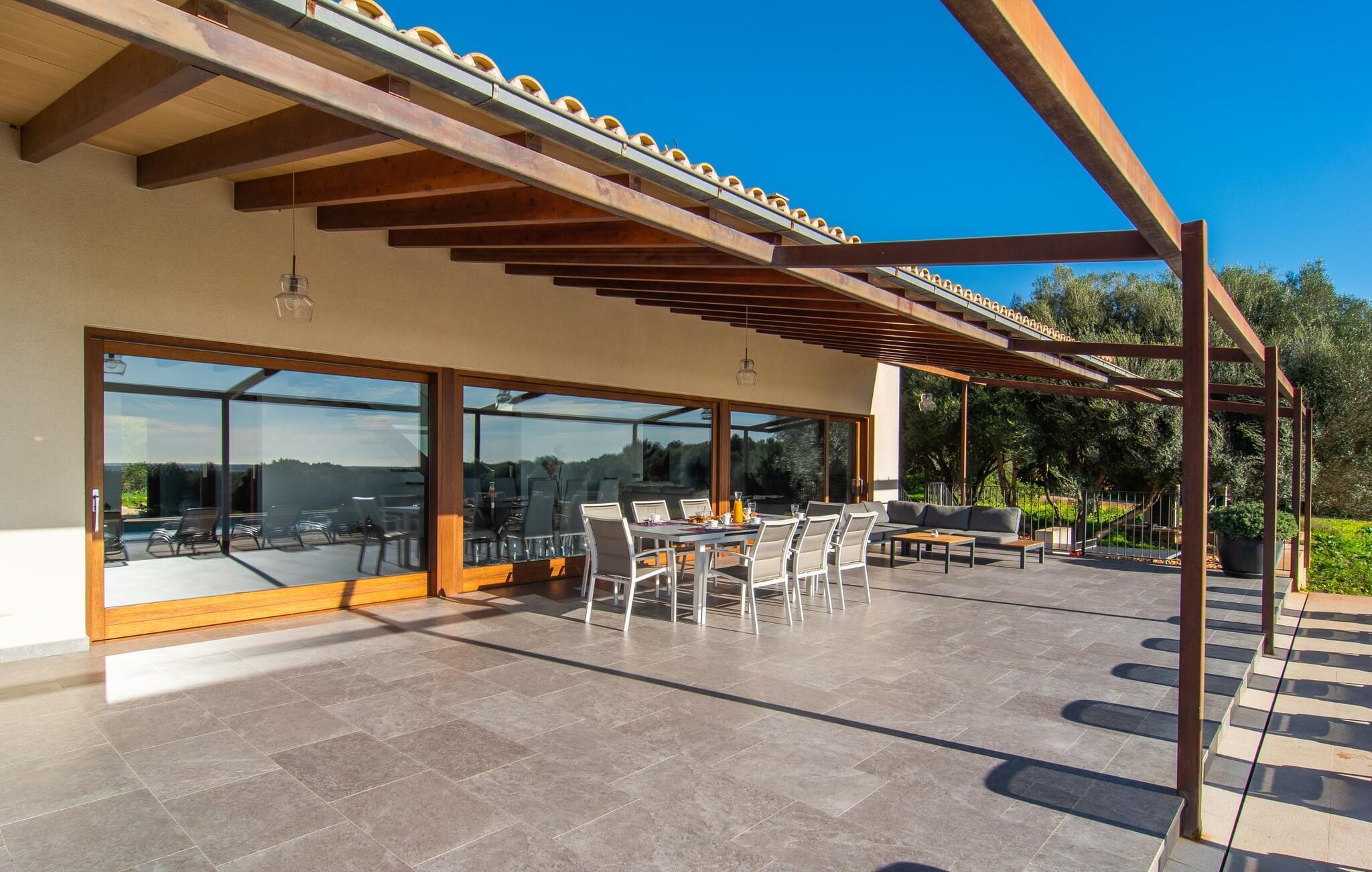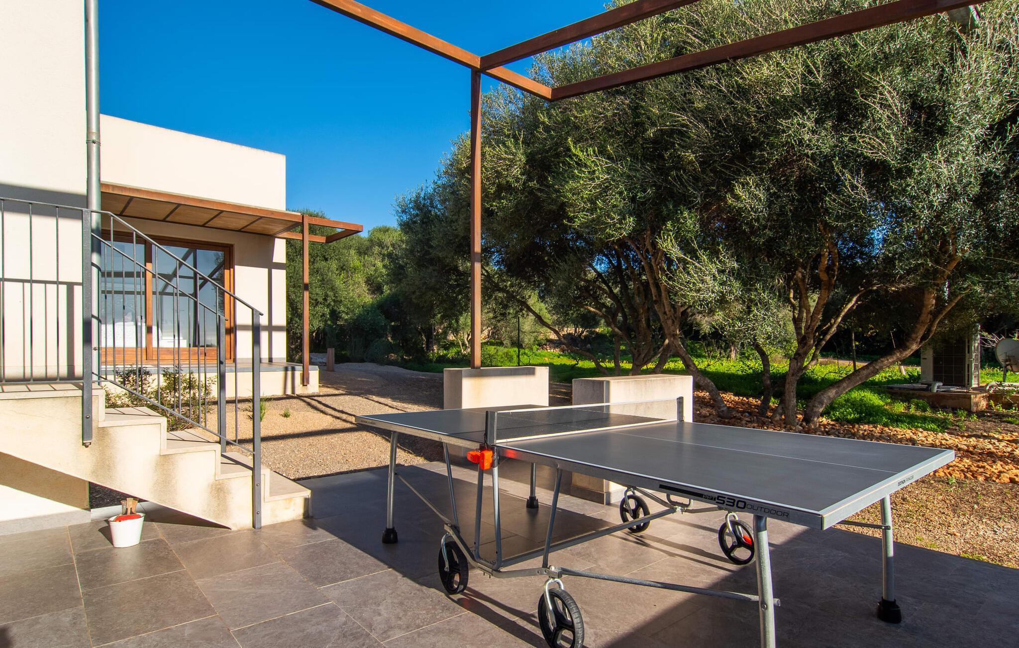 Beliggende i den sydlige del af Mallorca er "Can Maimo Nou" det perfekte valg for enhver, der drømmer om en moderne finca på Mallorca, der tilbyder både komfort og ro. Denne stilfulde bolig ligger på en stor, grøn grund uden direkte naboer, hvilket sikrer et fredeligt tilflugtssted. Fincaen har plads til op til otte gæster. Den rummelige, delvist overdækkede terrasse inviterer til solbadning eller skygge. Poolen, der er synlig fra de komfortable liggestole, er særdeles velegnet til familier med børn. Bordtennisbordet byder på timevis af sjov for gæster i alle aldre. Der er også masser af parkeringspladser til din lejebil. Dette er et feriehus i Fincallorca. Fincaen er i åbent plan, hvor de fleste værelser flyder ind i hinanden, men kan adskilles fra hinanden med skydedøre. Store vinduer tillader middelhavslyset at oversvømme rummet, hvilket skaber en varm og indbydende atmosfære. Boligen er fordelt på to etager, forbundet med en åben trappe. I stueetagen er der opholds- og spisestue, køkken af høj kvalitet, tre soveværelser og to badeværelser, hvoraf det ene har eget bad. På øverste etage, adskilt af et glasgalleri, er der en ekstra soveplads, et skrivebord til feriearbejde og udgang til en lille solrig tagterrasse. Den moderne finca "Can Maimo Nou" er beliggende i en vidunderlig rolig beliggenhed midt i det typiske middelhavslandskab på den sydlige del af øen. For at shoppe, spise ude og slentre gennem smukke smalle gader med talrige kunstgallerier og små butikker er det kun omkring 4,4 km til Santanyí, mens den romantiske bugt Cala Llombards kun er omkring 8,9 km.