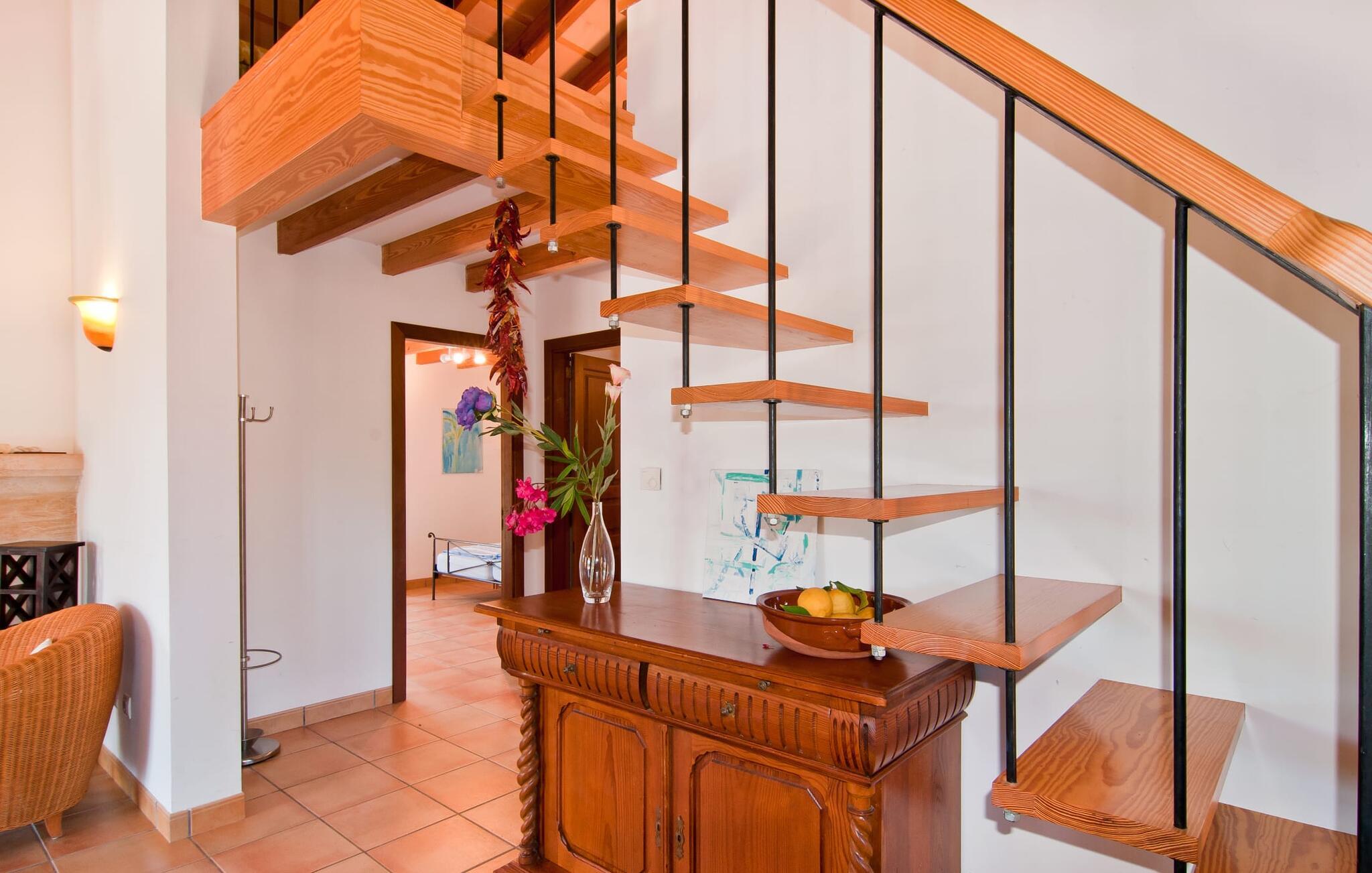 Velkommen til den hyggelige “Can Mandai”, en nybygget villa i smukke landlige omgivelser nær Sant Llorenç, lige ved siden af et skovområde. Huset ligger på en jævn, plan grund, omgivet af en græsplæne og med typiske middelhavstræer. Den relativt flade grund byder på smuk udsigt over de bølgende bakker, der omgiver ejendommen, et af de mest fremtrædende træk i denne region. En stille vej fra motorvejen fører til villaen, hvor der er plads nok til at parkere lejebilen. Huset, bygget i traditionel stil af natursten, har den klassiske atmosfære som en typisk mallorcansk villa. Dette inkluderer selvfølgelig en pool med udendørs bruser og en solterrasse med fire liggestole, et rundt bord med to stole og en parasol for at beskytte jer mod overdreven sollys. Der er også et lille stykke træ lige bag poolområdet på siden af huset. Foran huset er der en ret stor overdækket veranda med naturstensgulv. Den har et spisebord med en bænk og to træstole (og behagelige hvide hynder, hvis I vil bruge dem), så intet står i vejen for en hyggelig grillaften. Tre franske døre med mørkegrønne skodder fører ind til den rummelige indvendige opholds- og spisestue. Køkkenet er også integreret i dette meget moderne, åbne rum, hvilket resulterer i en behagelig og rummelig atmosfære. Loungeområdet er komfortabelt indrettet med hyggelige møbler, herunder en orange sofa, to smarte kurvestole og en lænestol med tilhørende fodstøtte. Møblerne er arrangeret omkring en stenpejs og er også ideelle til en aften sammen foran tv'et. Spisepladsen er placeret mellem stue og køkken og har et mørkt træbord og stole. Det åbne køkken består af et indbygget køkken med skabe i mørkt spaltetræ. Og det ser ikke kun godt ud, det er også meget praktisk. En villaferie handler om selvforsyning og komfort, og dette køkken har alt hvad I behøver: brødrister, kaffemaskine, elkedel, keramisk kogeplade, opvaskemaskine og meget mere. Der er også to soveværelser i stueetagen. Disse to dobbeltværelser er udstyret med myggenet og aircondition. Det store soveværelse har en stor, komfortabel dobbeltseng. Det andet soveværelse har to enkeltsenge. Med indbyggede skabe, synlige bjælker og terracotta flisegulve (også brugt i hele stuen/spisestuen), er disse værelser det perfekte billede af en klassisk mallorcansk villa med varm, rustik charme og lyst oplyst interiør. Ved siden af de to soveværelser ligger det blå og hvide badeværelse med en næsten gulvhøj bruseniche med elegante blå mosaikflisegulve og en bruseniche lavet af ægte glas. Der er også en elegant trætrappe, der fører fra køkkenafdelingen til et galleri med lavt til loftet og to ekstra senge. Til dagligvarer og andre daglige behov ligger den lille by Sant Llorenç kun 3 km væk. Landevejen løber 75 m fra villaen og kan formentlig høres fra huset. Følger I den længere mod nord, fører den via Artà og Capdepera til Cala Ratjada – perfekt hvis I vil ud af huset og se, hvad denne smukke region har at byde på. Der er mange seværdigheder at se her, og alle er nemme at komme til. Der er nogle fremragende restauranter i Artà, og den ret livlige Cala Ratjada har en lang strandpromenade, som er fantastisk til en spadseretur i løbet af dagen eller til at udforske klubscenen om aftenen. Flere strande langs øens sydøstkyst er også nemme at nå fra jeres hyggelige villa "Can Mandai". Det er nogle af Mallorcas smukkeste strande og bugter – prøv at opdage nogle af de mindre kendte perler. De fantastiske huleformationer i Coves d'Artà og den smukke kystby Portocristo er blot nogle af de højdepunkter, I skal se under jeres ophold i denne nybyggede villa. Og glem ikke, at denne villa også er ideel til to personer takket være en stor rabat. Villaen "Can Mandai" er komfortabelt beliggende i den østlige del af øen, kun 3 km fra Sant Llorenç. Villaens afsondrede beliggenhed byder på en smuk udsigt over de bølgende bakker i det omkringliggende landskab, og I kan hurtigt gå ind til byen efter dagligvarer og andre daglige ting. Den centrale beliggenhed giver nem adgang til større byer som Manacor og Artà. Sandstrandene på østkysten, herunder Sa Marjal og Cala Bona, ligger også kun 10 km væk.