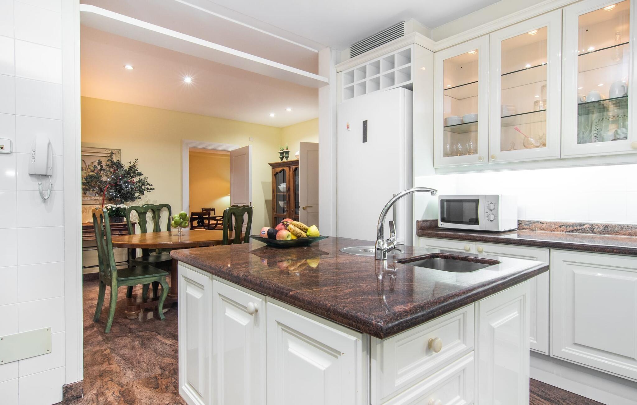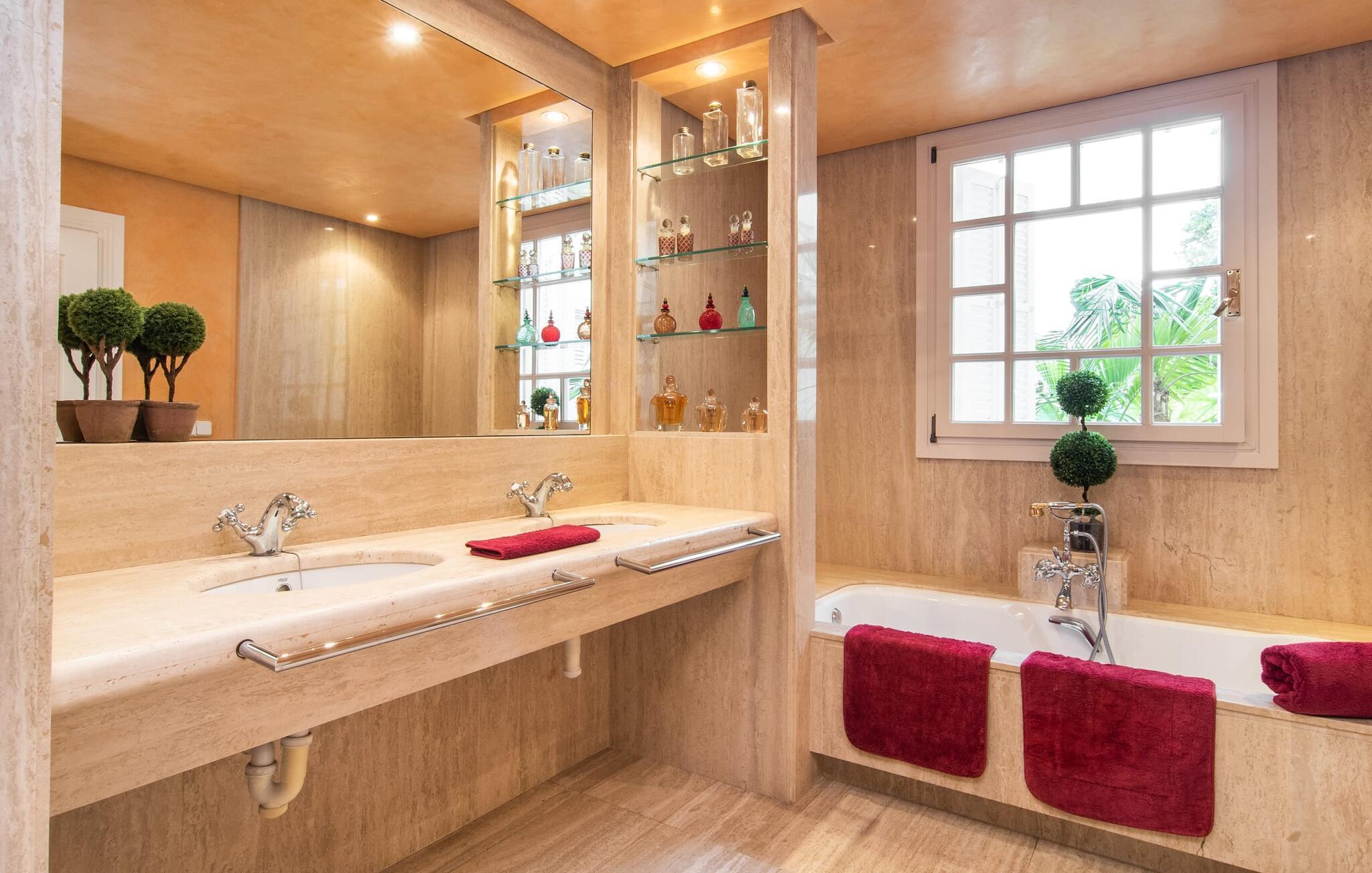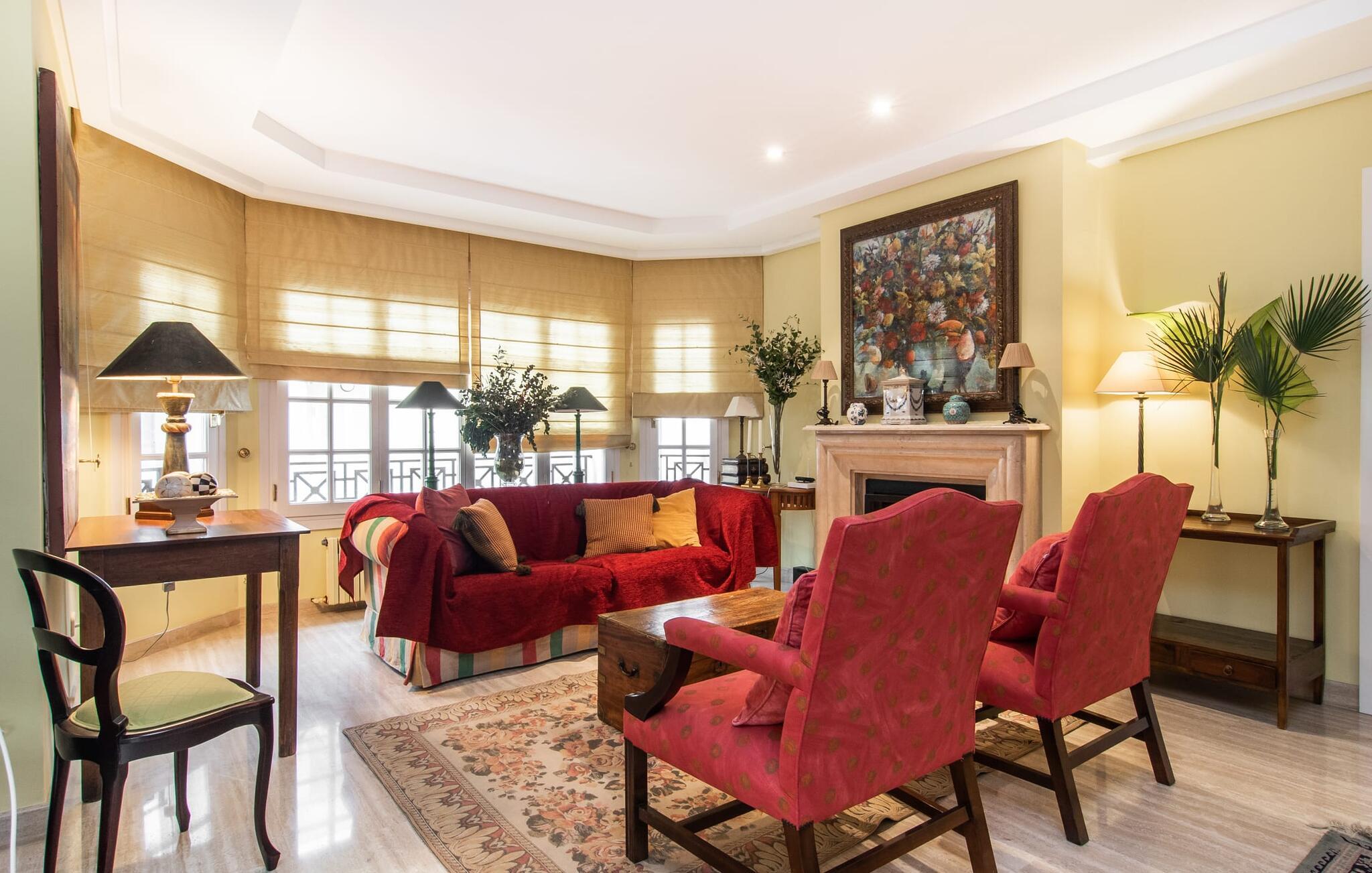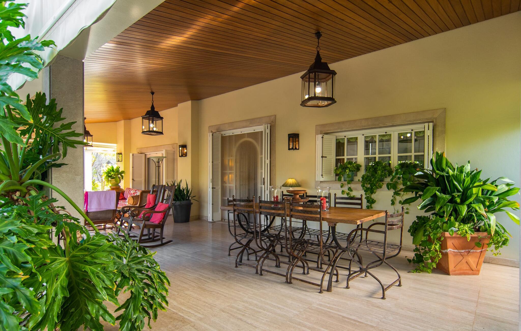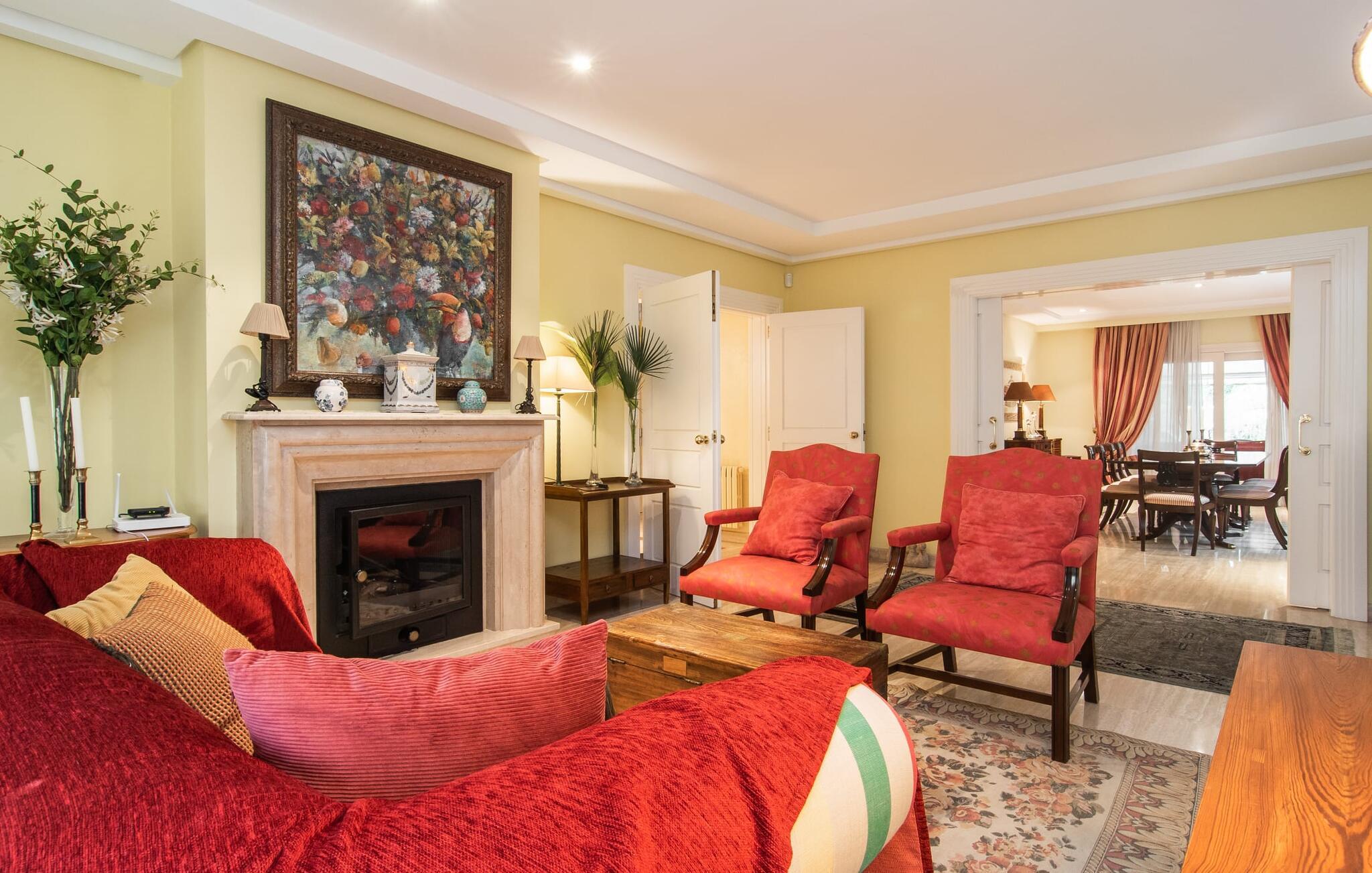 Rækkehuset "Can Mandol" er et elegant, meget rummeligt feriehus på Mallorca. Denne ejendom omdefinerer konceptet for et rækkehus, der tilbyder et byparadis på en stor grund med en række indbydende udendørs muligheder. Den frodige, parklignende vegetation skaber en fantastisk baggrund for udendørs afslapning. I vil finde velplejede græsplæner og forskellige overdækkede terrasseområder, perfekt til at nyde tid med venner eller slappe af i fred. Poolen er let tilgængelig via romerske trin og inviterer jer til at tage en forfriskende svømmetur. En enestående funktion er det fremragende udstyrede sommerkøkken, som inklusiv en grill byder på en vidunderlig beskyttet atmosfære til kulinariske eventyr. Indenfor fortsætter den luksuriøse indretning med at imponere. De rummelige værelser udstråler klassisk elegance og kan komfortabelt rumme op til otte gæster. Rigelig naturligt lys beriger opholdsrummene, hvoraf nogle er indrettet med lyse farver og gennemtænkt tilbehør. I stueetagen er der opholds- og spisestue og to soveværelser med hvert sit badeværelse og et påklædningsværelse. På øverste etage er der yderligere to soveværelser, også med private badeværelser og et med påklædningsværelse. Alle værelser er udstyret med aircondition, hvilket sikrer afslappende nætter selv i de varmere måneder. Rækkehuset "Can Mandol" præsenterer sig som et elegant, meget rummeligt feriehus på Mallorca. På grund af den urbane beliggenhed og fremragende infrastruktur kan I endda gøre jeres dagligvarer til fods, for eksempel på det ugentlige marked om torsdagen. De smukke strande, for eksempel i den lange bugt Alcúdia, ligger omkring 24 km væk.