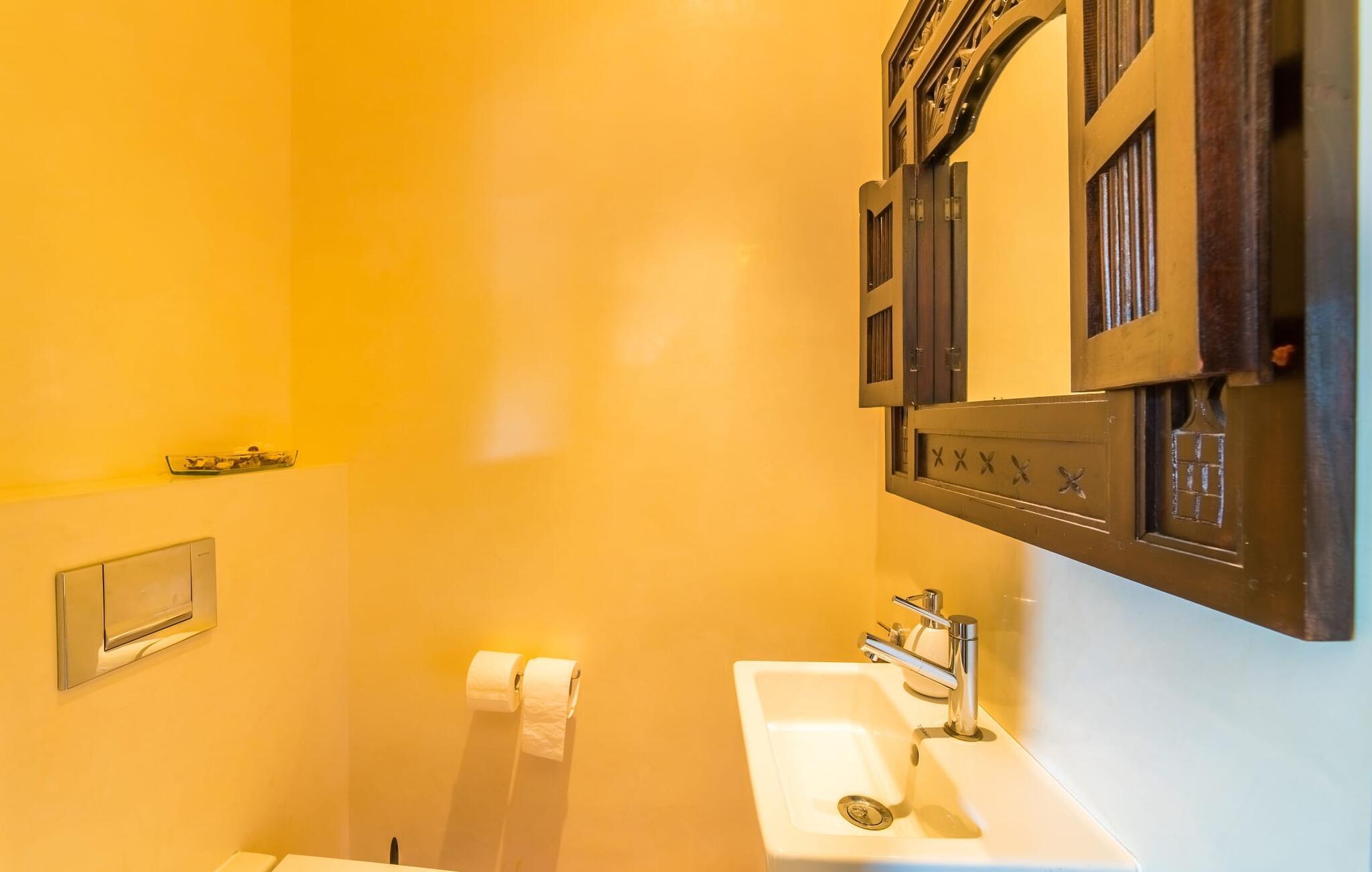 Kun 5 minutter fra Ma-15 (Palma – Manacor), er dette en anden verden, I træder ind i. Det ville være bedst, hvis I ikke ejer en sænket sportsvogn, der ikke er vant til landkørsel. Naturstensvillaen "Can Marcos" imponerer med sit storslåede kubiske tårn. Det har en unik beliggenhed på en bjergskråning, en 360° udsigt over den store slette fra Es Plà til Tramuntana, et 100% privat område indrammet af palmer og mandeltræer, og plantede grusområder, hvor op til 4 biler kan parkere. I kan nyde alt dette på den 500 m² store terrasse direkte ved huset eller et niveau lavere, med solen i ansigtet eller i skyggen, i komfortable loungemøbler eller ved den 12 m lange pool. Derudover gør et stilfuldt poolhus, et smukt udendørs badeværelse og et overdækket udendørs køkken, der konkurrerer med sin indendørs søster, udendørslivet ekstremt behageligt. Hvis det ønskes, kan et stort (til 5 personer) opvarmet udendørs spabad bookes mod merpris. For at sikre at stemningen og rejsegrupperne på dette sted harmonerer 100%, udlejes denne villa kun til (ikke-rygere). par eller familier. Seks dobbeltdøre bringer middelhavslivsstilen til husets stueetage: i den rummelige og luftige stue/spisestue/entré samt i de to lyse gæsteværelser, som er helt ligeværdige i forhold til deres indretning. Suite badeværelse og direkte udgang til terrassen. Et niveau højere finder vi master bedroom, som sætter yderligere standarder med en stor metalseng, en balkon og et udsøgt granitbadeværelse (bruser, badekar og dobbelt håndvask). Dette er for eksempel ideel til et par på bryllupsrejse. Hvidpudsede og velisolerede vægge, massive træbjælker importeret fra Barcelona, håndlavede terracotta fliser og gulvvarme skaber en fantastisk behagelig stemning i en stue. Og glem ikke det integrerede tekøkken af høj kvalitet, som er et ægte blikfang med sine røde træaccenter. Her kan I nyde et glas øl, mens antipasti simrer på komfuret. Dette er virkelig et sted for feinschmeckere, fra A til Z en visuel nydelse som en delikatesse! Allerede fra Santuari de Monti-Sion, 7 km fra "Can Marcos", er udsigten over de store sletter, der er berømt for deres abrikoser, fascinerende. De søde, chokoladedyppede frugter kommer fra Porreres og den populære restaurant L'Escrivania byder på mange fristende, typisk mallorcanske retter på menuen. I Llucmajor, glem ikke at få en espresso på den historiske Café Colón på Plaza España. Mandelcroissanter fra Campos ender i jeres picnickurv. Sydkysten fra Sa Ràpita til Cala Santanyí vil sætte alle sine paradisiske strande på bordet. Bare rolig: Sukker kan nemt omdannes til ren energi, når I bestiger det 542 m høje Puig de Randa kloster. Enhver, der finder lykken på hesteryg, kan gøre det på ferie i ridestalden "Caballo Blanco", kun 1 km fra villaen. Bo i luksus, kun 20 minutter fra Palma: Den nybyggede villa "Can Marcos" med moderne møbler af høj kvalitet og en stor pool er beliggende i en idyllisk og absolut rolig beliggenhed i bakkerne mellem Porreres og Montuïri. I kan gøre små indkøb her (og også på det ugentlige bondemarked), men for større valg og fornøjelse skal I tage til Llucmajor og Manacor; Eller, bevæbnet med en fyldt picnickurv i Campos, fortsætter vi til Mallorcas drømmestrande i syd som Ex Trenc og Sa Ràpita, som ligger omkring 30 km væk.
