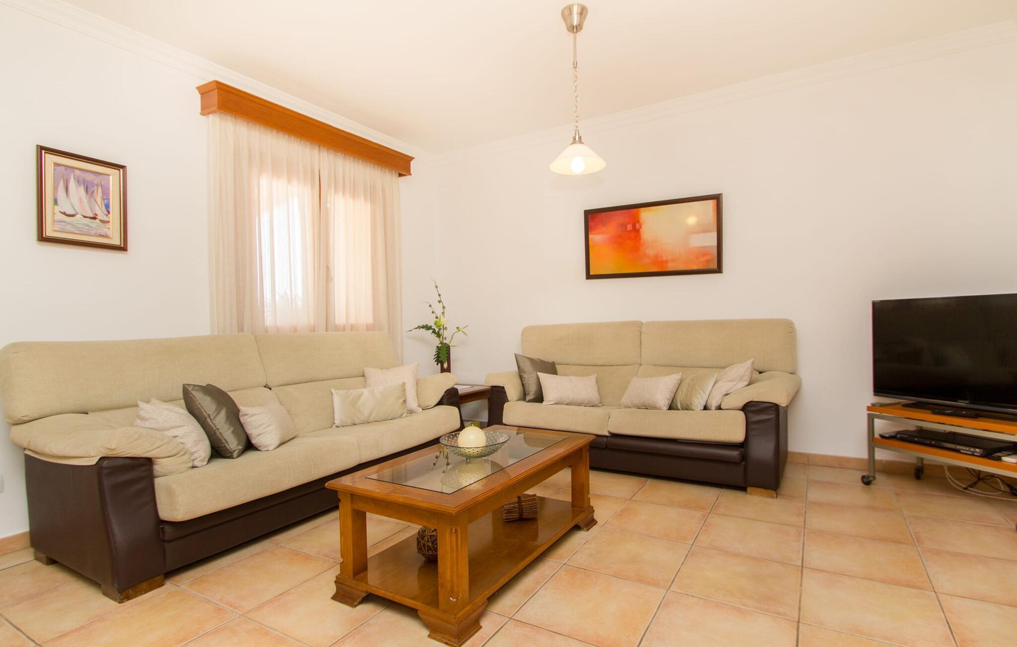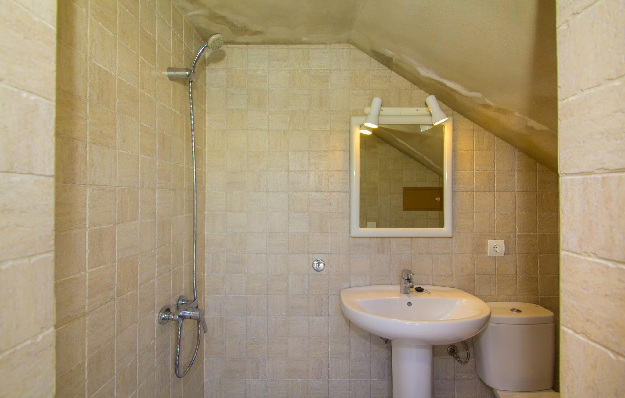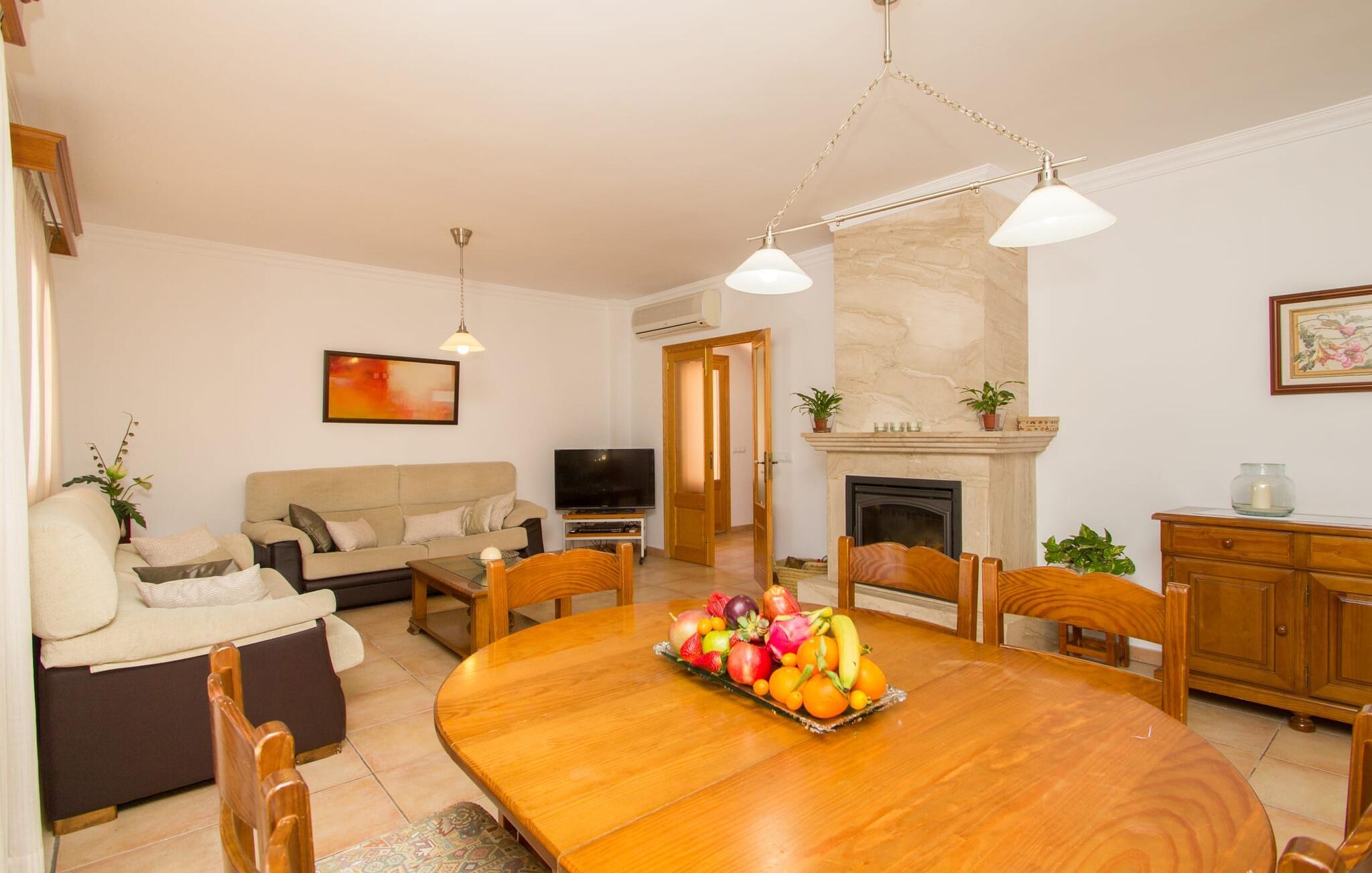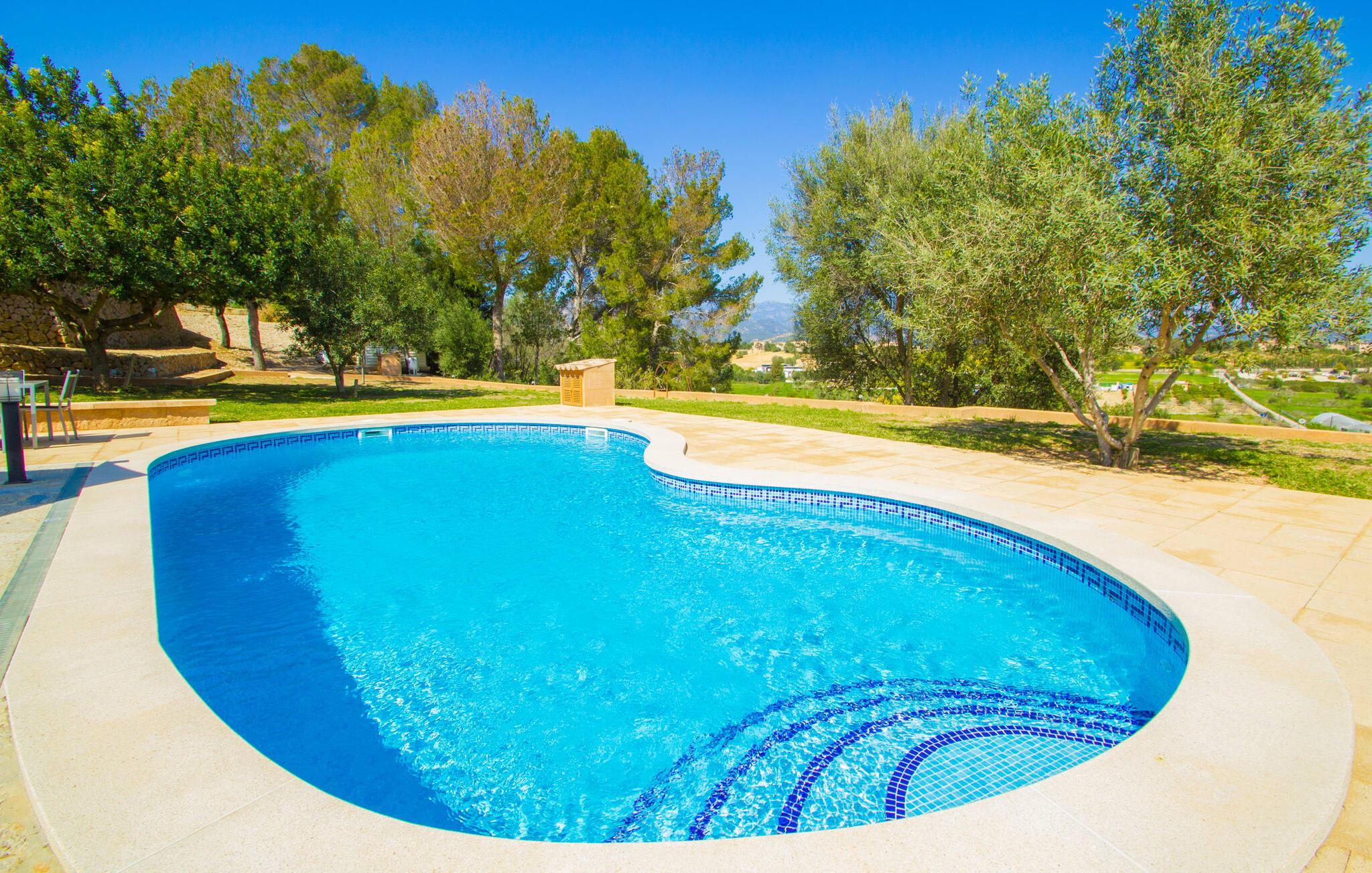 Rejsearrangører annoncerer ofte med billedet af en funklende blå pool omgivet af liggestole. Normalt skal I dele dette idylliske feriested med andre rejsende på udkig efter afslapning, hvilket i værste fald kan være forbundet med meget larm. I Villa "Can Mirlo" vil jeres dage være anderledes. I vil være omgivet af førsteklasses stil, og hvis I ønsker det, kan I nyde den flotte udsigt over det indre af Mallorca til bjergene mod nord. Poolterrassen ligger lige under huset. Et par stentrappe fører jer til vandet og den direkte tilstødende have. En bred vifte af træarter viser vejen her: Lad bare solen skinne og ellers nyd den rene tilværelse. Der er en overdækket veranda i direkte tilknytning til huset, hvor I kan afslutte dagen om aftenen med en flaske vin. Takket være et udendørs badeværelse kan I fuldt ud nyde den milde ø-luft fra morgen til aften. Husets indretning undgår trendy hype. Ejerne har valgt en rustik, klar linje uden at ofre komforten. Om aftenen kan I se tv fra sofaen eller blot kigge ind i den knitrende pejs. Dette værelse kombinerer ophold, madlavning og spisning. Derfor er det det rigtige sted for et afslappet samvær i en venlig atmosfære. Med sin arbejdsflade, der rager ud i rummet, byder køkkenet på plads nok til at tilberede selv komplicerede retter sammen. I stueetagen er der et dobbeltværelse med en dobbeltseng. Rummets naturstensvæg med en indlejret halvmåne sikrer et særligt niveau af komfort. De to andre soveværelser, det ene også med en dobbeltseng og det andet med to enkeltsenge, er på øverste etage. På denne etage kan I også være vært for socialt samvær i en åben lounge lige ved siden af trappeopgangen. Beboerne på øverste etage har også adgang til et badekar på badeværelset - et perfekt sted at afslutte dagen i en afslappet atmosfære og derefter nyde en afslappende søvn. Den statelige stenbrudsvilla "Can Mirlo" er beliggende i en vidunderlig, rustik, afsondret beliggenhed 2,5 km vest for den maleriske by Santa Maria. I bor i det indre af øen omgivet af natur. Dette giver jer adskillige udflugtsmuligheder: enten gå på shopping i det glitrende Palma, omkring 20 km væk, eller nyd de idylliske strande på sydkysten, herunder Passeig de Molinar (17 km) eller Cuidad Jardin (18 km). Bemærk venligst, at denne ejendom ikke accepterer ungdomsgrupper eller polterabender. En ungdomsgruppe på denne ejendom består af personer på 27 år eller derunder. Book ikke denne ejendom, hvis I er en ungdomsgruppe eller polterabend, da jeres reservation vil blive afvist, når den er booket, hvilket også kan være tilfældet ved ankomst til ejendommen eller under jeres ophold, og I vil ikke modtage en refusion