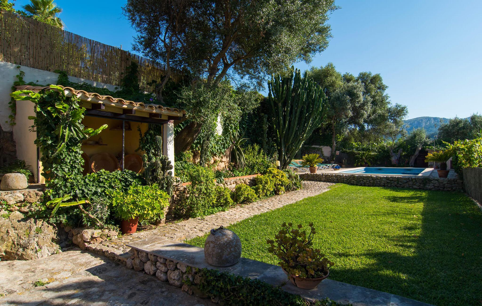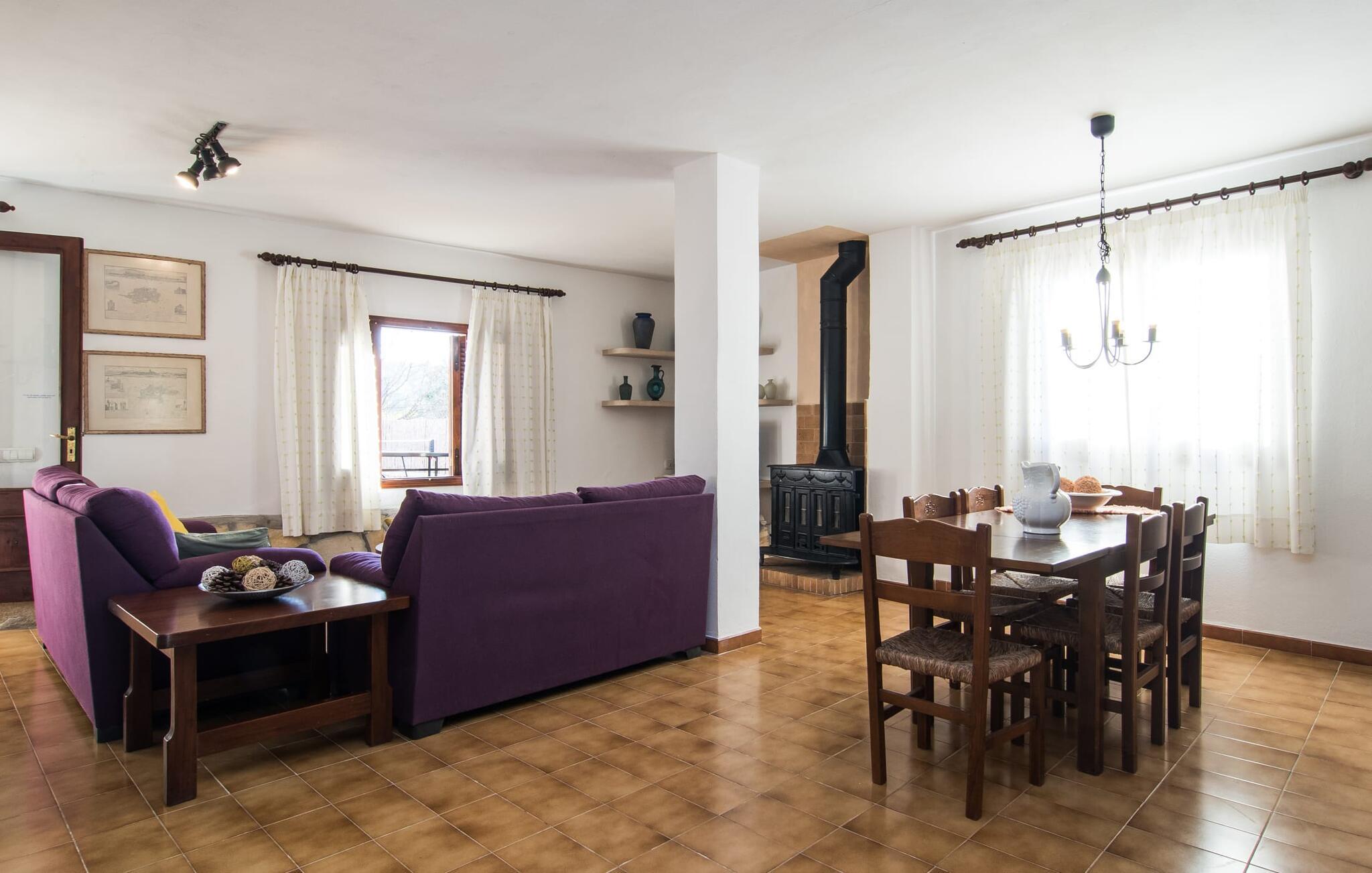 Omgivet af frodig middelhavsflora skinner villaen "Can Moragues" på en yderst charmerende måde med sine kontrasterende naturtoner og byder den nytilkomne velkommen. Udendørsområdet byder på smukke små stier, områder, trapper og stengærder langs frodige græsplæner og blomsterbede. En romantisk pergola, foret til venstre og højre med søjler og en lav mur, fører til hovedindgangen til huset. Udeområdets hjerte er den 32 m², let forhøjede swimmingpool, som er flisebelagt med dekorative blå mosaiksten og er meget let tilgængelig via en bred trappe. Du kan slappe af af hjertens lyst på i alt fem komfortable liggestole under den dybblå middelhavshimmel og bare slappe af. En overdækket terrasse, tilgængelig via få trin, giver mulighed for at blive hængende i den luftige skygge, mens du nyder den vidunderlige udsigt over Pollença fra et lidt lavere niveau. Afhængigt af tidspunktet på dagen finder du også skøn naturlig skygge ved poolen. Tættere på huset når man den alsidige terrasse, som er halvt åben og halvt overdækket. I den sidste del er der i det væsentlige en udendørs stue, hvori der er en hyggelig siddegruppe med polyrattan møbler på den ene side og lige ved siden af et solidt spisebord til fællesspisning. Den nærliggende murede grill og udendørs vandforsyning giver dig mulighed for at tilberede og tilberede måltider udendørs, hvis du ønsker det. Husvæggen i natursten skaber i kombination med de smukke fliser og træbjælkeloftet en særlig behagelig stemning i dette område. Den udendørs terrasse tilbyder et sted at solbade, og der er endda et bordtennisbord. Dette giver sportsinteresserede mulighed for at blive aktive. Dette er et Fincallorca feriehus. Inde i villaen præsenteres den besøgende for en stor åben stue/spisestue med et tilstødende køkken, løst adskilt af en disk. Et hyggeligt sofahjørne inviterer dig til at slappe af og slappe af. Her kan du roligt læse en god bog eller blive underholdt af en film, da fjernsynet også er bekvemt placeret her. Spisebordet lige ved siden af er ideelt til sofistikeret indendørs spisning. Der er ingen lange rejser, fordi køkkenet ligger lige ved siden af. Her finder du alle de moderne faciliteter du har brug for til hverdagsbrug, herunder en kedel og en filterkaffemaskine. Det giver endda plads til et ekstra lille spisebord. Et andet ret rummeligt fællesrum med siddepladser giver mulighed for at trække sig tilbage og finde et privat sted, selv når man rejser med en større gruppe. Medfølgende børn vil helt sikkert nyde at lege her. Fire komfortabelt møblerede værelser med aircondition tilbyder en vidunderlig ramme for en afslappende søvn. Badeværelserne er venlige og funktionelt indrettede. Et strygejern og en hårtørrer er også tilgængelige i huset, så du behøver ikke at tage dem med. Den attraktive beliggenhed af denne villa kan være landlig, men havet er kun et par minutters kørsel væk. Sandstrandene omkring Port Pollença er fremragende og har en lavvandet indgang til vandet. Port de Pollença byder på en smuk promenade langs stranden og havnen med butikker, barer og restauranter. Kunne du tænke dig at tilbringe aftenen et andet sted end den smukke villa, finder du her et absolut seværdigt alternativ. Villaen "Can Moragues" er beliggende i en smuk bjergskråning i udkanten af Pollença. Det ligger på en frodig, grøn ejendom og er indrettet med stor sans for detaljer. Port de Pollença ligger 9 km derfra. Denne lille kystby imponerer med sin smukke promenade, som indbyder til at slentre og besøge de talrige caféer. Sandstrandene kan nås fra feriehuset på ingen tid. Bemærk venligst, at denne ejendom ikke accepterer ungdomsgrupper eller polterabender. En ungdomsgruppe på denne ejendom består af personer på 25 år eller derunder. Book ikke denne ejendom, hvis du er en ungdomsgruppe eller polterabend, da din reservation vil blive afvist, når den er booket, hvilket også kan være tilfældet ved ankomst til ejendommen eller under dit ophold, og du vil ikke modtage en refusion