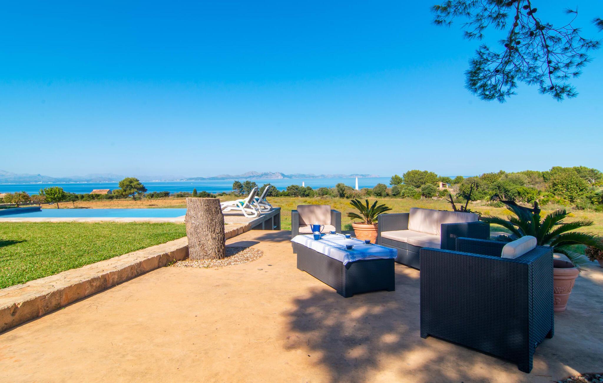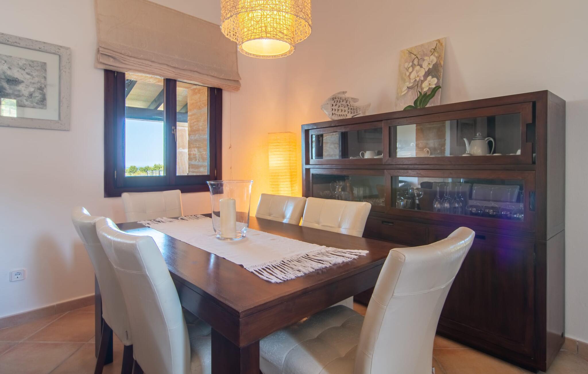 En finca til seks personer med uforglemmelig havudsigt: Dette er "Can Peix", et smukt feriehus på den østlige del af Mallorca. Beliggenheden er simpelthen himmelsk - naturstensfincaen i stueetagen blev ikke kun bygget ved foden af et bjerg, der tårner sig majestætisk op i den blå himmel, men også med udsigt over det nærliggende Middelhav. Ejendommen med sine store, velholdte græsplæner er rummelig og byder børn på masser af plads at lege. Et rigtigt højdepunkt er overløbspoolen lige ved siden af huset: den byder ikke kun på en kølig forfriskning på varme feriedage, men også en uforglemmelig udsigt over havet. På liggestolene, gerne med en lækker cocktail i hånden, kan du lade blikket vandre ud over det typiske middelhavslandskab og slappe dejligt af. Du kan parkere din lejebil i skyggen under carporten. Dette er et Fincallorca feriehus. Moderne, men fuld af varme og kærligt indrettet: Sådan byder jeres sommerhus velkommen indefra. Stueetagens konstruktion er særlig praktisk, især for familier med små børn - der er ingen trin, og alle værelser er i stueetagen. Hvide vægge, naturstensdetaljer, cremefarvede klinkegulve og mørkt træ skaber en indbydende, autentisk og meget velholdt fincastemning. Sammenhængende boligtilbehør er nøje udvalgt, og takket være de mange vinduer er dit sommerhus behageligt lyst Indretningen er praktisk: Stuen og spisestuen med den hyggelige brændeovn åbner ind i hinanden. Lige ved siden af ligger det veludstyrede køkken med plads nok til en lille morgenmad. Tre behageligt reserverede soveværelser og to moderne badeværelser, et med eget bad og et med badekar, runder bokomforten af "Can Peix". Placeringen af fincaen "Can Peix" er virkelig smuk: ved foden af et imponerende bjerg og med en vidunderlig havudsigt. Feriehuset, bygget i ét plan, er indlejret i et typisk middelhavslandskab på en stor grund med infinity-pool. Den lille by Colònia de Sant Pere, kun ca. 2 km væk, med stranden af samme navn kan hurtigt nås med lejebil via den akustisk mærkbare vej. Men det er mindst lige så sjovt at udforske det omkringliggende område til fods. Bemærk venligst, at denne ejendom ikke accepterer ungdomsgrupper eller polterabender. En ungdomsgruppe på denne ejendom består af personer på 25 år eller derunder. Book ikke denne ejendom, hvis du er en ungdomsgruppe eller polterabend, da din reservation vil blive afvist, når den er booket, hvilket også kan være tilfældet ved ankomst til ejendommen eller under dit ophold, og du vil ikke modtage en refusion