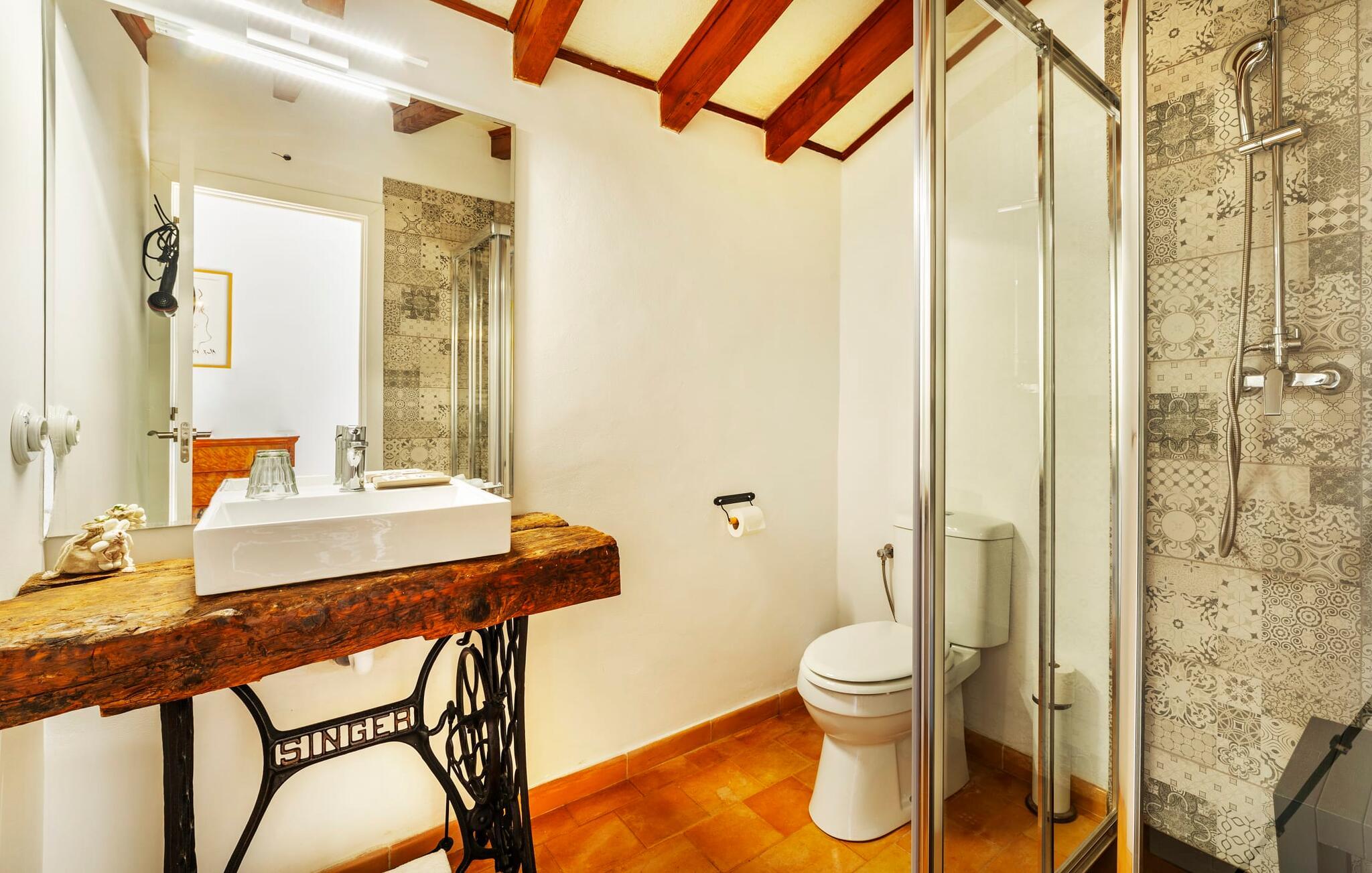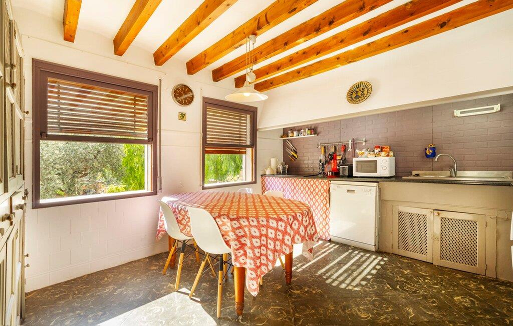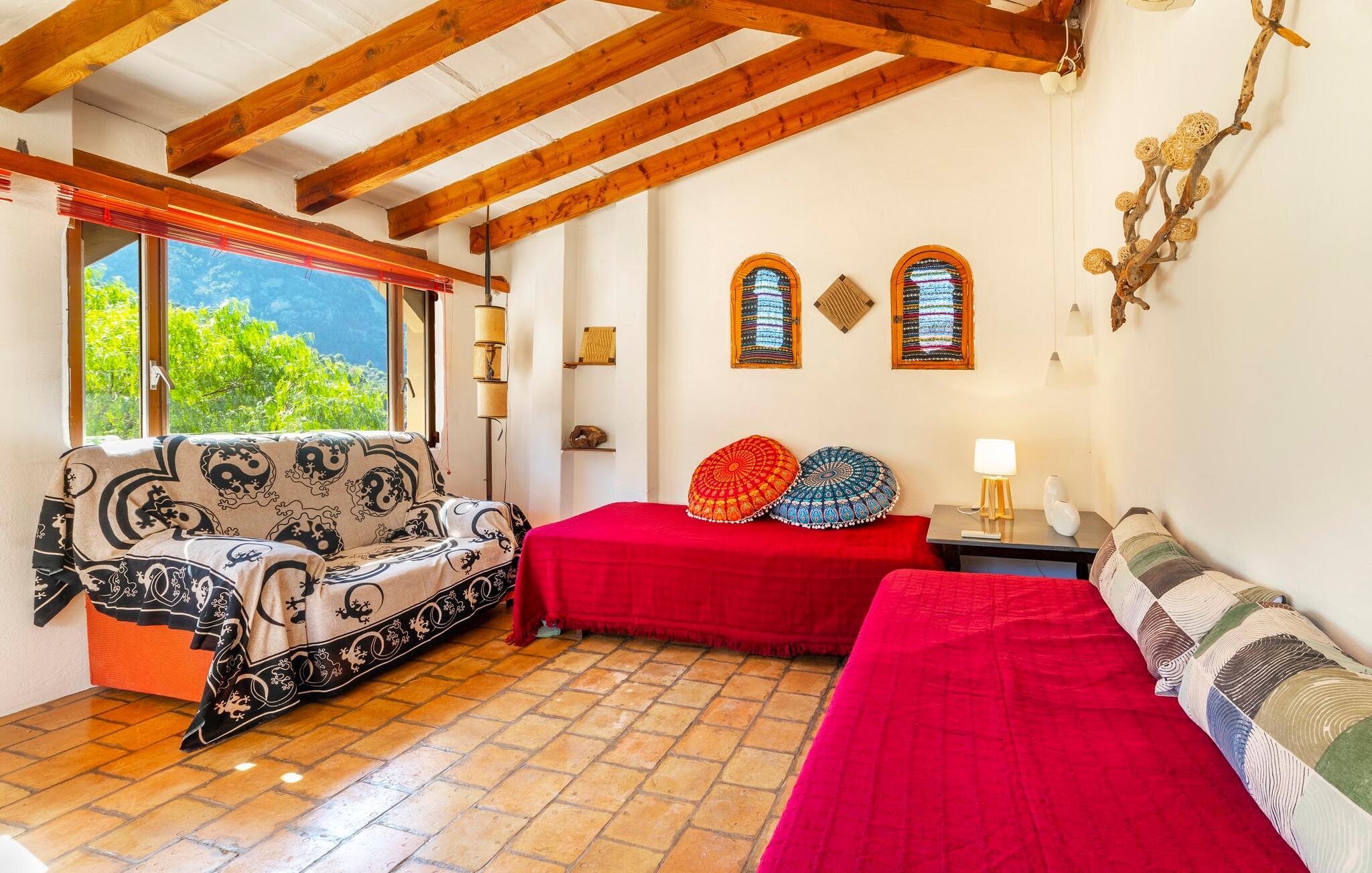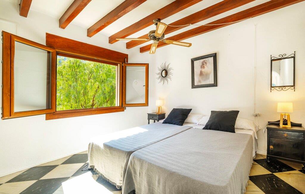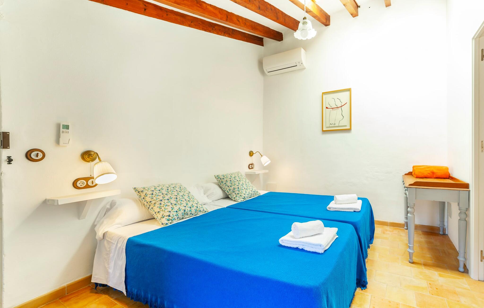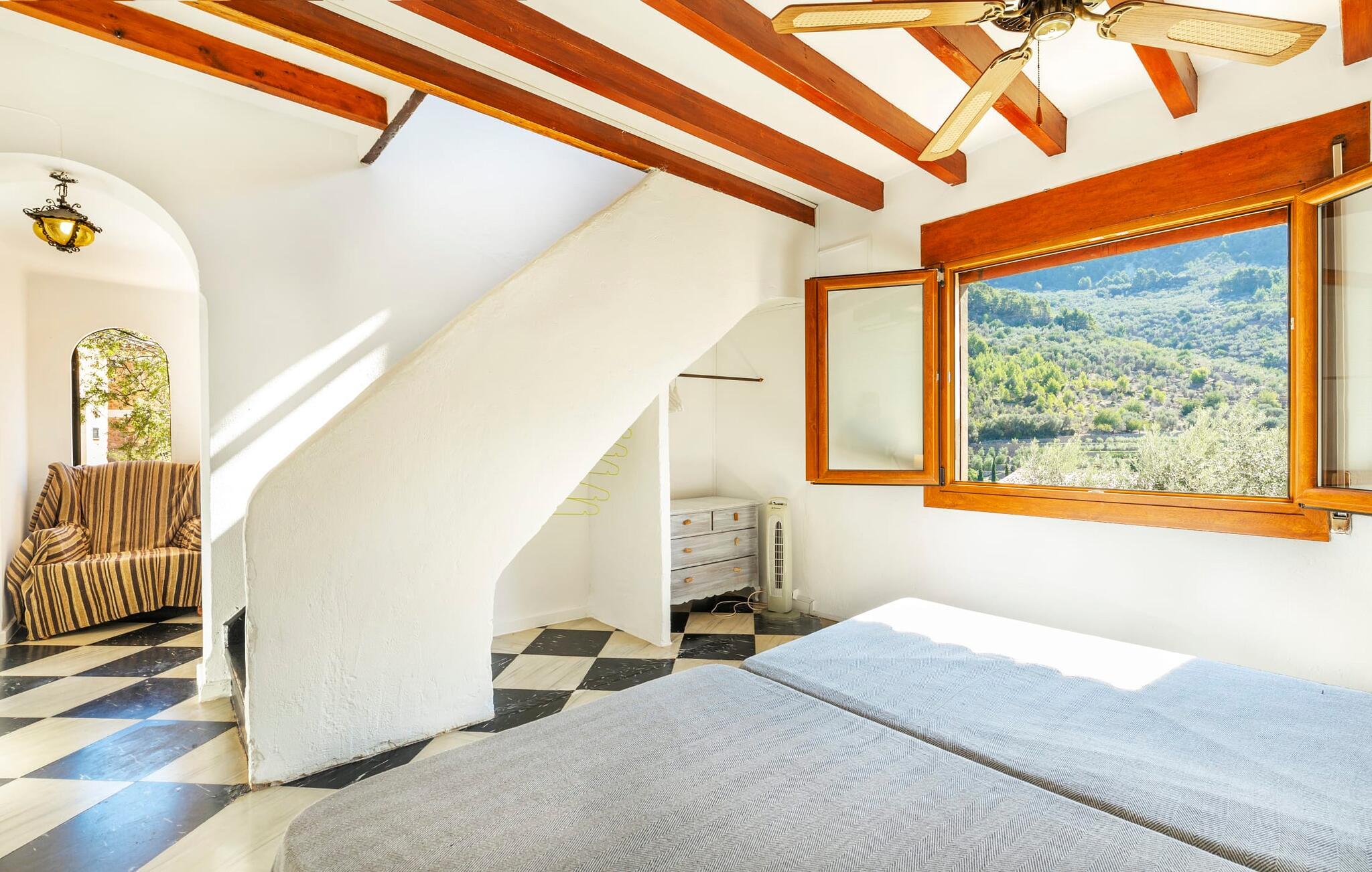 Elsker I at lære landet og dets folk at kende, mens I er på ferie og fordyber jer i deres kultur? Elsker I at være tæt på naturen, nyde stilfuldt liv og værdsætte komfort? Så er rækkehuset “Can Pera de Fornalutx”, fordelt på fire etager, nok den helt rigtige bolig for jer. Det smukke naturstenshus med grønne skodder er bygget på en vidunderlig sydvendt skråning i den maleriske, romantiske landsby Fornalutx. Selvom det ligger midt i en af byens typiske villagader med få direkte naboer, inviterer en velholdt lille have med brolagt terrasse, græsplæne, gamle knudrede træer og en privat pool til at slappe af og nyde privatlivets fred. Mens I sidder fortabt i tankerne i solen på en af de indbydende havestole og nyder en lækker drink, kan I nyde en fantastisk udsigt over de imponerende grønne bjerge, der omgiver jer. Rustikke stengulve, hvælvede lofter, mørkebrune bjælker, talrige gamle træmøbler og smukt dekorerede fliser overalt, der perfekt understreger husets landlige karakter: "Can Pera de Fornalutx" er et autentisk mallorcansk, smagfuldt, rustikt opholdsrum. Værelserne er fordelt på kælder, stueetage og to øverste etager. I stueetagen, på have- og terrasseniveau, finder I det hyggelige køkken med bord til morgenmad eller små snacks samt opholds- og spiseafdeling. På køligere aftener kan I sætte fødderne op i den stilfulde sofa og nyde den varmende ild, mens kun to trin adskiller jer fra en behageligt oplyst hvælving med et loft lavet af groft udhuggede natursten. Murstensbænke med behagelige hynder og flere rustikke træborde lavet af gamle tønder inviterer jer til at mødes, spise sammen, spille brætspil eller have en privat vinsmagning. I stueetagen er der et soveværelse med dobbeltseng med eget badeværelse, mens de yderligere soveværelser, som også har originale og moderne en-suite badeværelser, der matcher husets stil, er placeret på de to øverste etager. Fornalutx betragtes som en af de bedst bevarede traditionelle landsbyer i hele Spanien - og det med rette! Gå en tur gennem de smalle gader i den 600 indbyggere landsby, gå langs de gamle brostensbelagte gader og beundre de smukke, velbevarede facader på husene. Kig forbi en af de mange caféer, prøv de regionale delikatesser i en af de lokale restauranter eller i det veletablerede landsbybageri. Byens særlige flair vil hurtigt fange jer. Derudover er Fornalutx også et ideelt udgangspunkt for vandre- og cykelture gennem Tramuntana-bjergene. jeres sommerhus ligger lige ved foden af den populære Puig Major cykelrute. I krydser Puig Major i 818 meters højde. Ruten er 13,7 km lang og er særdeles velegnet til erfarne og erfarne cyklister. Vil I tilbringe en dag ved havet, bør I køre ad den 9 km lange vej, som er hørbar fra ejendommen, til Playa de Port Soller. Den bevogtede strand ligger i en idyllisk bugt og har en rigtig god infrastruktur, lige fra parasoludlejning, brusere og toiletter til en livlig strandpromenade med barer og restauranter. Et rækkehus tæt på naturen: "Can Pera de Fornalutx", bygget på en sydvendt bjergskråning i landsbyen Fornalutx, tilbyder netop denne vidunderlige feriekombination. Her er I højt oppe i Tramuntana-bjergene – og Fornalutx, ofte omtalt som "den smukkeste landsby i Spanien", byder på en storslået udsigt over Sollér-dalen. Butikker og restauranter er inden for nem gåafstand fra jeres hjem. I haven kan I tage en dukkert i poolen og slappe af under de gamle træer. Stranden Playa de Port de Sollé ligger kun 9 km derfra.