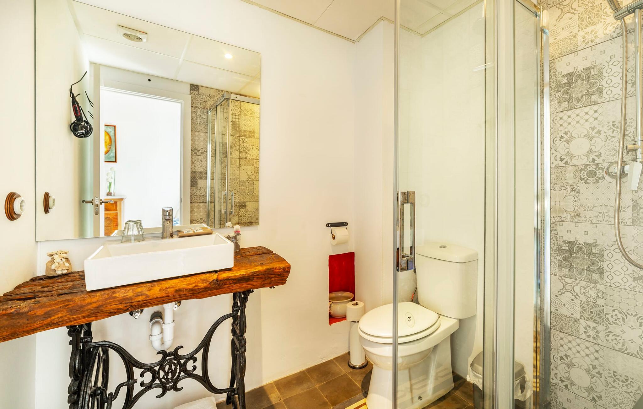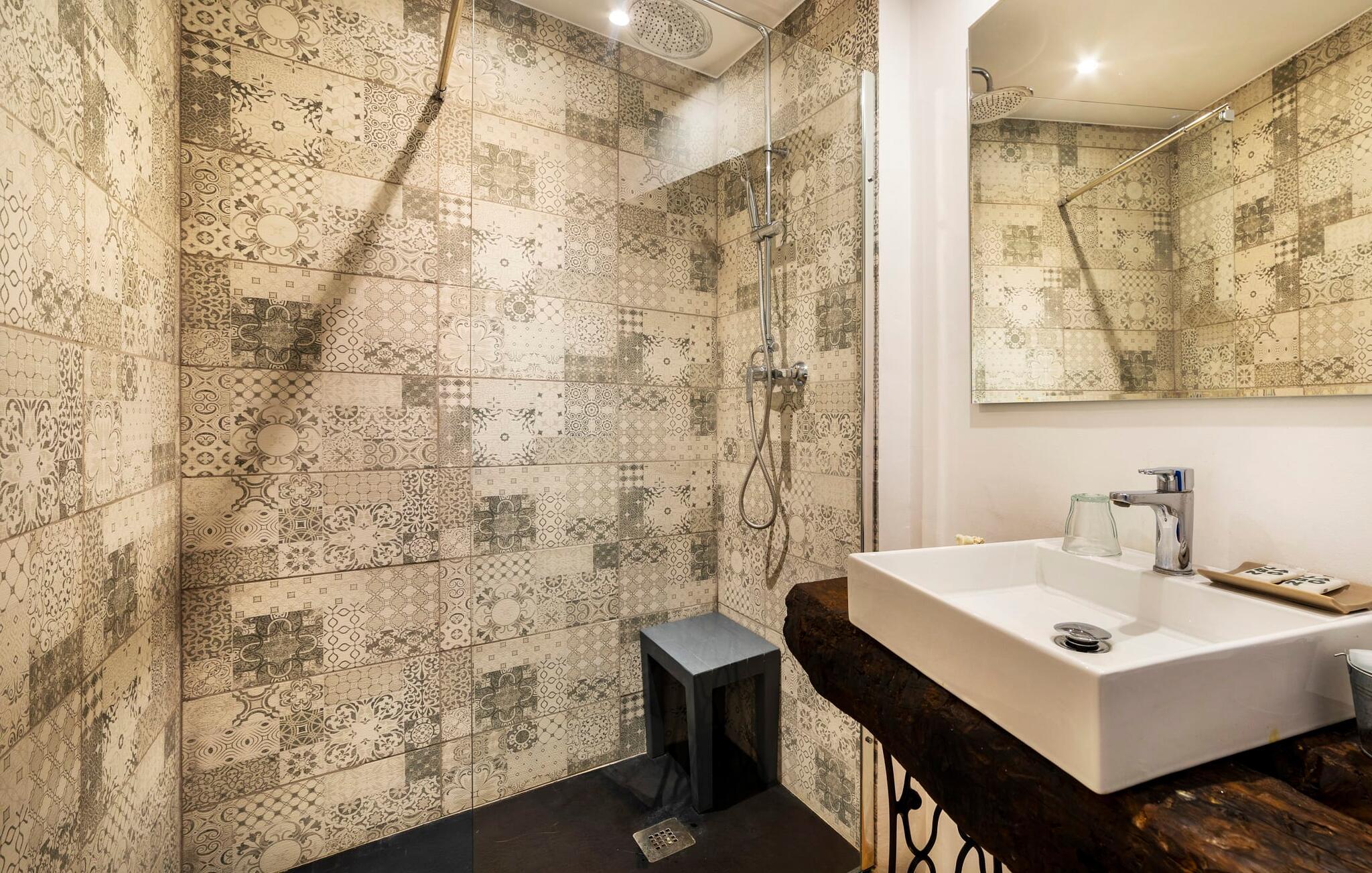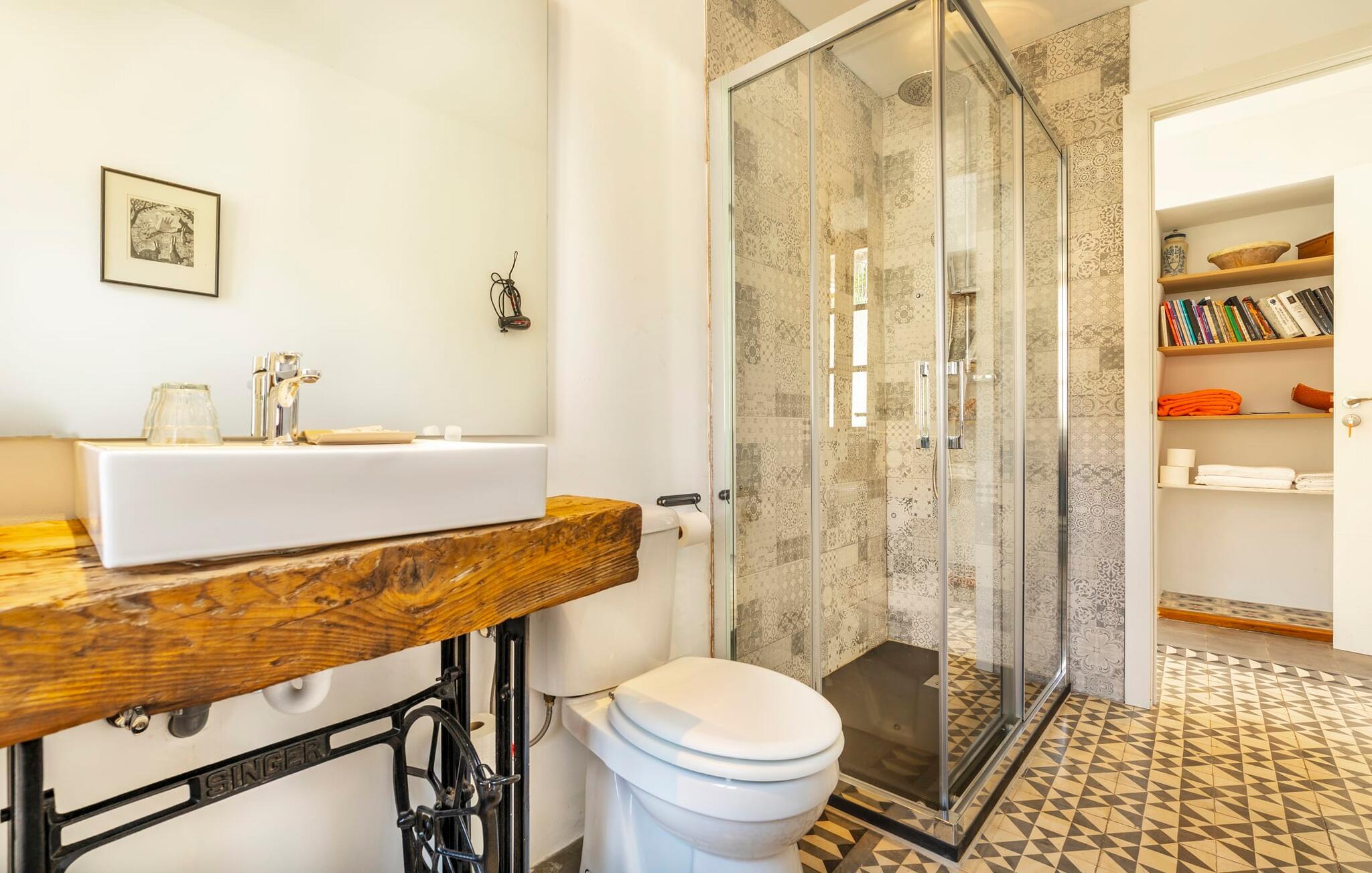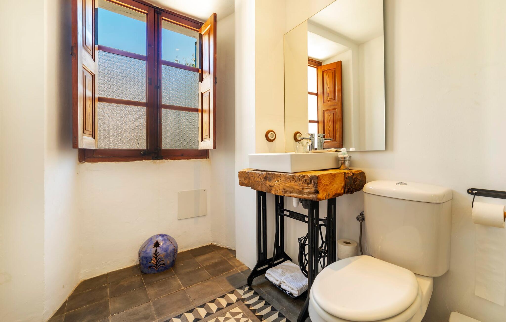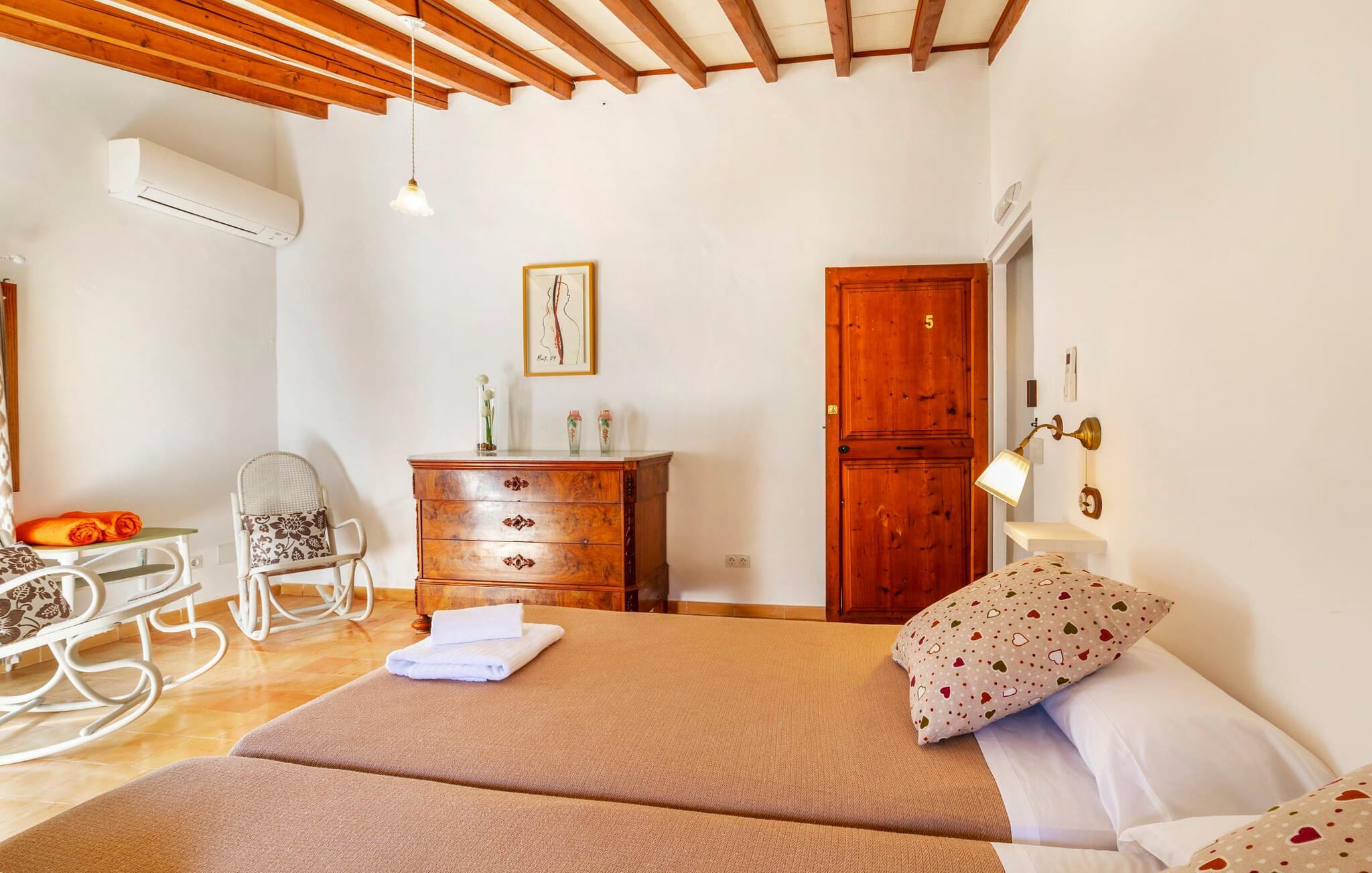 Elsker I at lære landet og dets folk at kende, mens I er på ferie og fordyber jer i deres kultur? Elsker I at være tæt på naturen, nyde stilfuldt liv og værdsætte komfort? Så er rækkehuset “Can Pera de Fornalutx”, fordelt på fire etager, nok den helt rigtige bolig for jer. Det smukke naturstenshus med grønne skodder er bygget på en vidunderlig sydvendt skråning i den maleriske, romantiske landsby Fornalutx. Selvom det ligger midt i en af byens typiske villagader med få direkte naboer, inviterer en velholdt lille have med brolagt terrasse, græsplæne, gamle knudrede træer og en privat pool til at slappe af og nyde privatlivets fred. Mens I sidder fortabt i tankerne i solen på en af de indbydende havestole og nyder en lækker drink, kan I nyde en fantastisk udsigt over de imponerende grønne bjerge, der omgiver jer. Rustikke stengulve, hvælvede lofter, mørkebrune bjælker, talrige gamle træmøbler og smukt dekorerede fliser overalt, der perfekt understreger husets landlige karakter: "Can Pera de Fornalutx" er et autentisk mallorcansk, smagfuldt, rustikt opholdsrum. Værelserne er fordelt på kælder, stueetage og to øverste etager. I stueetagen, på have- og terrasseniveau, finder I det hyggelige køkken med bord til morgenmad eller små snacks samt opholds- og spiseafdeling. På køligere aftener kan I sætte fødderne op i den stilfulde sofa og nyde den varmende ild, mens kun to trin adskiller jer fra en behageligt oplyst hvælving med et loft lavet af groft udhuggede natursten. Murstensbænke med behagelige hynder og flere rustikke træborde lavet af gamle tønder inviterer jer til at mødes, spise sammen, spille brætspil eller have en privat vinsmagning. I stueetagen er der et soveværelse med dobbeltseng med eget badeværelse, mens de yderligere soveværelser, som også har originale og moderne en-suite badeværelser, der matcher husets stil, er placeret på de to øverste etager. Fornalutx betragtes som en af de bedst bevarede traditionelle landsbyer i hele Spanien - og det med rette! Gå en tur gennem de smalle gader i den 600 indbyggere landsby, gå langs de gamle brostensbelagte gader og beundre de smukke, velbevarede facader på husene. Kig forbi en af de mange caféer, prøv de regionale delikatesser i en af de lokale restauranter eller i det veletablerede landsbybageri. Byens særlige flair vil hurtigt fange jer. Derudover er Fornalutx også et ideelt udgangspunkt for vandre- og cykelture gennem Tramuntana-bjergene. jeres sommerhus ligger lige ved foden af den populære Puig Major cykelrute. I krydser Puig Major i 818 meters højde. Ruten er 13,7 km lang og er særdeles velegnet til erfarne og erfarne cyklister. Vil I tilbringe en dag ved havet, bør I køre ad den 9 km lange vej, som er hørbar fra ejendommen, til Playa de Port Soller. Den bevogtede strand ligger i en idyllisk bugt og har en rigtig god infrastruktur, lige fra parasoludlejning, brusere og toiletter til en livlig strandpromenade med barer og restauranter. Et rækkehus tæt på naturen: "Can Pera de Fornalutx", bygget på en sydvendt bjergskråning i landsbyen Fornalutx, tilbyder netop denne vidunderlige feriekombination. Her er I højt oppe i Tramuntana-bjergene – og Fornalutx, ofte omtalt som "den smukkeste landsby i Spanien", byder på en storslået udsigt over Sollér-dalen. Butikker og restauranter er inden for nem gåafstand fra jeres hjem. I haven kan I tage en dukkert i poolen og slappe af under de gamle træer. Stranden Playa de Port de Sollé ligger kun 9 km derfra.