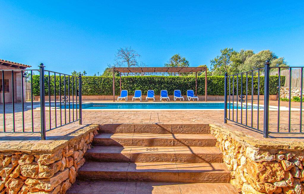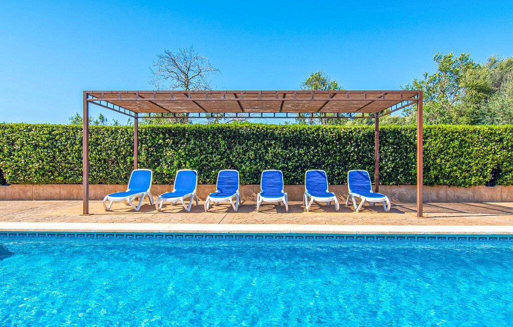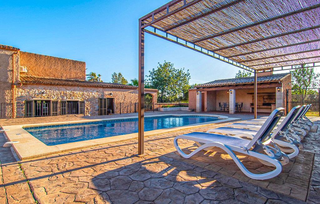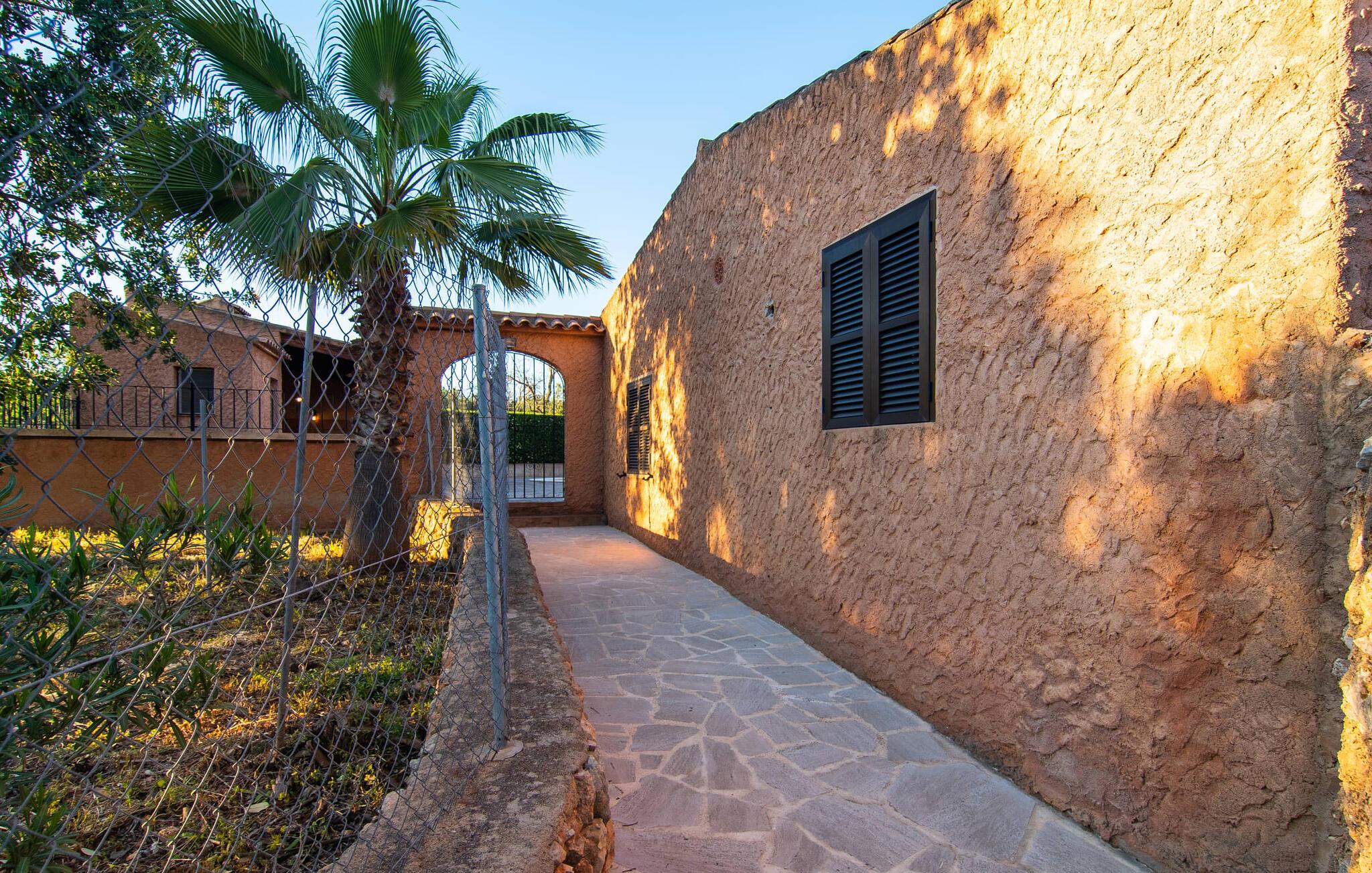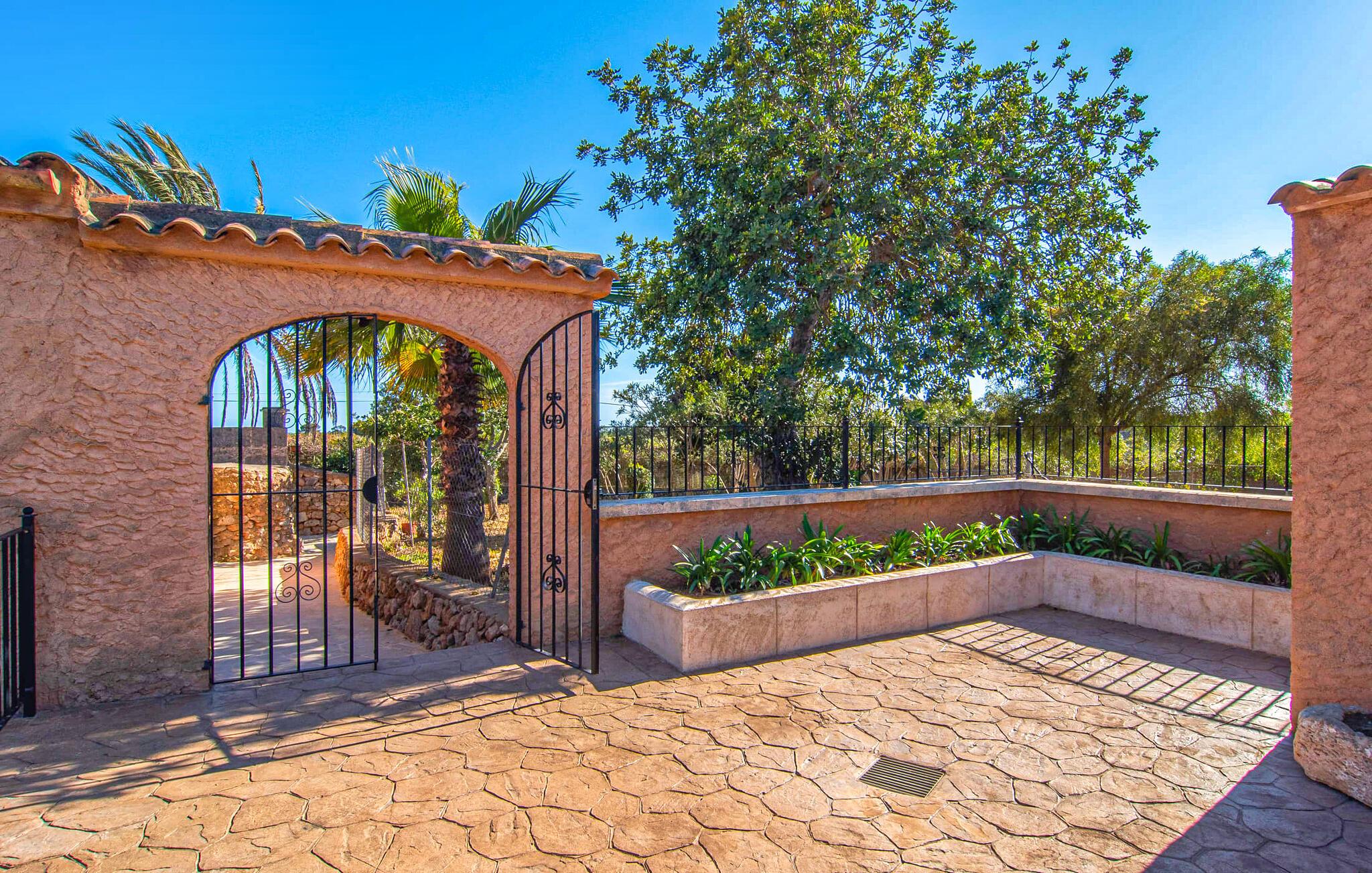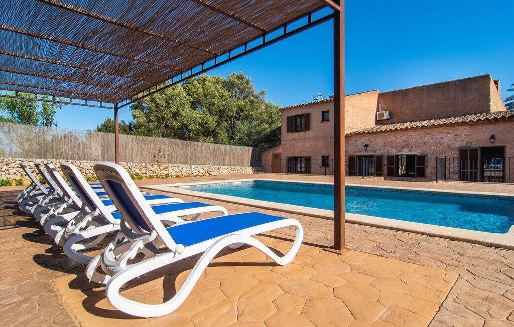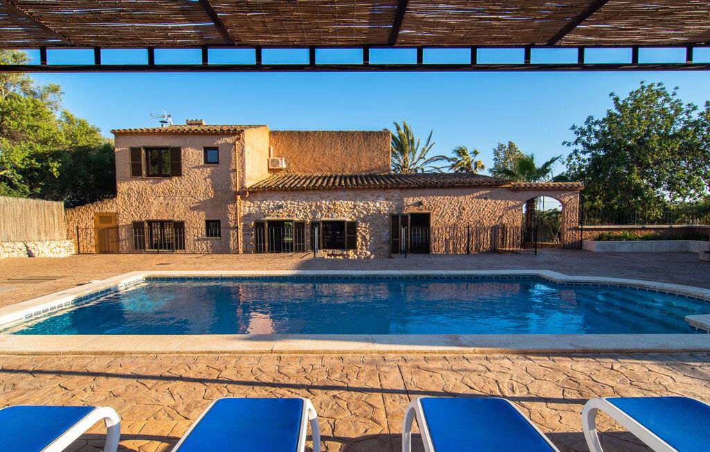 Vidunderligt beskyttet mod udsigt og omgivet af hække, mure og masser af træer, er denne finca på det sydlige Mallorca en sand juvel. Hovedattraktionen ved den typiske middelhavsejendom er det rummelige poolområde, hvor der i midten er en 10 meter lang pool med smukke blå mosaikfliser, som nemt kan nås via en romersk trappe. På den omkringliggende solterrasse finder I indbydende steder under åben himmel eller under et lætag - så snup jeres badelagen, en bog og en lækker kold drink og god fornøjelse! Når I falder i søvn på en af de komfortable liggestole, har I måske allerede en idé eller to til aftensmaden. Og så ender I uundgåeligt ved det smukke udekøkken, som er installeret under tag foran poolen og udover grillen byder på en fantastisk spiseplads til aftenens grillsessioner. Flairen i det rummelige interiør, der strækker sig over stueetagen og første sal, er også typisk mallorcansk. Lyse vægge, synlige bjælkelofter og store gulvfliser skaber stilfulde rammer om de solide møbler, der sikrer en behagelig bolig. Stue, spiseplads og køkken smelter sammen i en halvåben planløsning - en arkitektur, der skaber en behagelig rumfølelse. Køkkenet byder på god plads og har ligesom spisepladsen direkte udgang til terrassen. Der er også et soveværelse og et badeværelse på denne stueplan. De andre to soveværelser og to badeværelser en suite er placeret ovenpå. Fincaen "Can Pere Xina" byder ikke kun på en stor portion komfort, men også plads, der giver mulighed for maksimalt privatliv. Stuehuset "Can Pere Xina" er smukt sydvendt i trekanten med Santanyi og S'Alqueria Blanca i den sydlige del af øen. Vejen, som af og til kan høres afhængigt af vindretningen, giver jer mulighed for hurtigt at nå forskellige destinationer. Der findes supermarkeder, bagerier og restauranter i de nærliggende landsbyer, hver kun 2,5 til 6 km væk. Strandene i Santanyi, Figuera og den berømte Es Trenc ligger kun 15 til 30 minutter væk i bil. Sørg for at besøge naturreservatet Mondragó, kun 2 km væk.