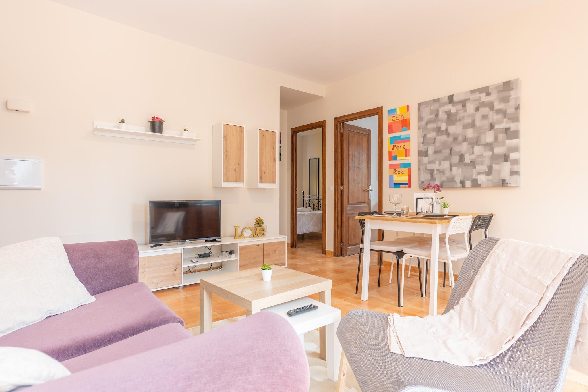 Indbydende kystflugt Begynd dine morgener på terrassen med morgenmad og solskin, planlæg dagen med dine kære. Det nærliggende gyldne sand i Ca'n Picafort er kun en kort gåtur væk, perfekt til en forfriskende dukkert eller en fredelig gåtur ved kysten. Uanset om du foretrækker at starte langsomt med en bog udendørs eller tidligt ud på eventyr, sætter hjemmets beroligende atmosfære den rigtige tone. Komfortabel moderne livsstil Renoveret i 2024, lejligheden kombinerer frisk indretning med gennemtænkt design. Den åbne planløsning og spisestue, afkølet med aircondition, er ideel til at samles efter strandudflugter. Køkkenet med gaskomfur gør det nemt at tilberede måltider, mens et vaskerum med vaskemaskine og strygefaciliteter tilføjer bekvemmelighed. To soveværelser med dobbeltsenge sikrer afslappende nætter, og familier vil sætte pris på barnesengen, højstolen og radiatoren. Badeværelset med badekar fuldender opsætningen til et afslappet ophold. Livlige landsbyomgivelser Ca'n Picafort tilbyder en indbydende blanding af lokalt liv og energi ved havet. Inden for få minutter finder du caféer, isbarer, butikker og supermarkeder til hverdagens behov. Restauranterne ved havet er kendt for friske fisk og skaldyr og middelhavssmag, som bedst nydes efter solnedgang gåture langs promenaden. Golfentusiaster kan tage til Alcanadas naturskønne bane kun 14 km væk, mens Alcúdias havn og historiske steder er en kort køretur. Med alt lige ved hånden gør dette kysttilflugtssted det nemt at udforske Mallorca.