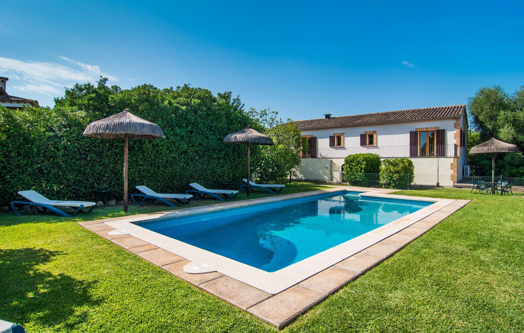 Charmerende tradition og moderne komfort - denne ejendom tilbyder en unik blanding af begge dele, hvilket sikrer en følelse af velvære kombineret med en ø-atmosfære. Drej blot til venstre ind i indkørslen lige før rundkørslen syd for Can Picafort, og du finder huset med dets indbydende og smukke receptionsområde, der vil pirre din nysgerrighed til at gå på opdagelse yderligere. Det er i et landligt, tyndt befolket område og bogstaveligt talt få minutter fra stranden. Men hvis du ønsker at blive hjemme på en varm dag, vil poolen på 9 m ved siden af huset være en skøn forfriskning. Det er flisebelagt med blå mosaikfliser, adgang til via trin og fald til en behagelig dybde på 2 m. Det er også sikkert indhegnet for dine børns sikkerhed. Det omkringliggende område er skyggefuldt af cypresser og nogle gamle figentræer, hvilket skaber en hyggelig udendørs atmosfære, mens plænen byder på masser af plads til at ligge i solen eller lade børnene lege. Huset har en overdækket og en åben terrasse. Den åbne terrasse vender ud mod poolen, den overdækkede terrasse tilbyder det perfekte sted for måltider sammen eller blot en drink på ethvert tidspunkt af dagen. Der er også en muret grill til rådighed på ejendommen; Besøger du et af de omkringliggende markeder i løbet af dagen, kan du forsyne dig med friske regionale specialiteter, som du senere kan nyde i din egen have. De venlige ejere bor ved siden af villaen på samme ejendom, men har deres egen indkørsel, så du kan nyde dit privatliv og have en kontaktperson i nærheden, hvis du har spørgsmål eller bekymringer. Et lyst interiør, præget af varme og harmoniske farver, sikrer en øjeblikkelig følelse af velvære; Du vil flytte ind med det samme og føle dig hjemme! Middelhavet klinkegulve og synlige bjælker og adobe lofter giver en original og traditionel baggrund til dette moderne, smagfulde og sofistikerede interiør. Den rummelige stue/spisestue er indrettet med komfortable lænestole og et stort spisebord til smagfuld indendørs spisning. En brændeovn giver ekstra komfort, hvis det kræves; Stereoanlæg, TV og DVD-afspiller er til rådighed, samt WLAN internetforbindelse til en bred vifte af medieunderholdning. Ved siden af opholdsstuen er det højkvalitets, fuldt udstyrede moderne køkken, hvor du finder alt hvad du behøver for en selvstændig ferie med selvforplejning, inklusive en Nespresso og filterkaffemaskine til din varme drik tidligt om morgenen på terrassen. Tre soveværelser med aircondition, indrettet i en individuel og slående stil, danner rammen om afslappende nætter. et badeværelse med bruser og et med badekar og bidet fuldender billedet. Den gamle havn i Can Picafort ligger i centrum af Alcúdia-bugten og har en imponerende 17 km lang strand og ligger kun to minutters kørsel fra villaen. Her finder du barer og restauranter samt et pulserende natteliv i de lokale natklubber. Villaen er bekvemt placeret tæt på landevejen, der fører direkte ind til byen, hvilket gør transportforbindelser særligt bekvemme og maleriske steder længere inde i landet på øen nemme at nå. At rejse i forskellige retninger vil hurtigt tage dig til andre strande såsom Playa de Muro eller Son Baulo. Velkommen til villaen "Can Polito", bygget i den typiske ø-stil, på kanten af Can Picafort i den nordlige del af øen. Det, der er særligt positivt ved dette feriehus, er den unikke beliggenhed - nærheden til nogle attraktive strande og de varierede fritidsaktiviteter i selve byen Du vil elske både freden og roen udenfor byen og fordelen ved et varieret tilbud ikke langt fra din hoveddør. Dette er et Fincallorca feriehus.