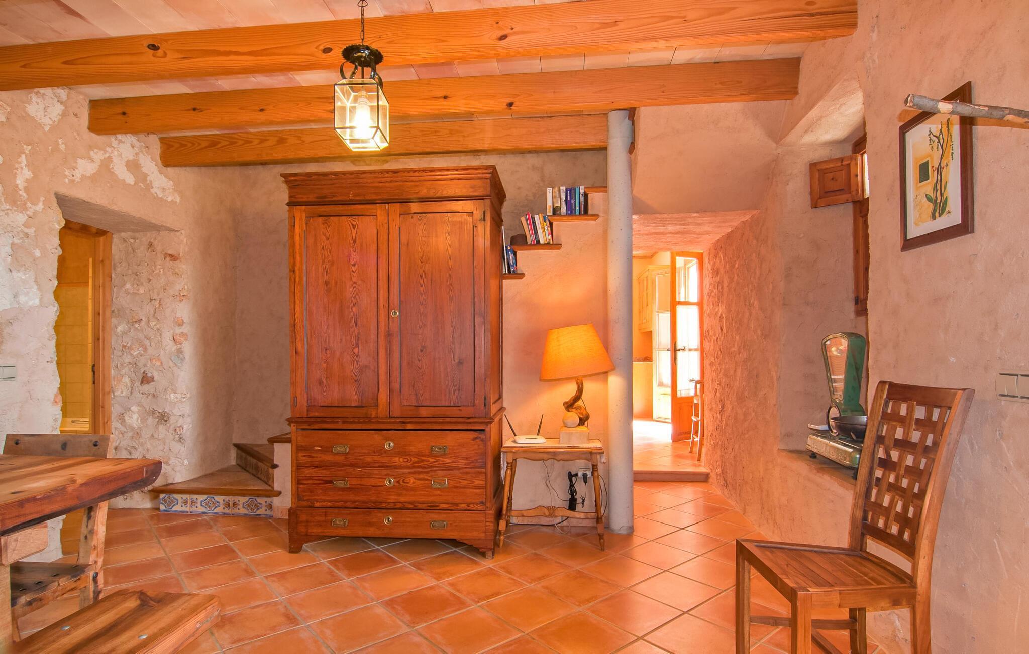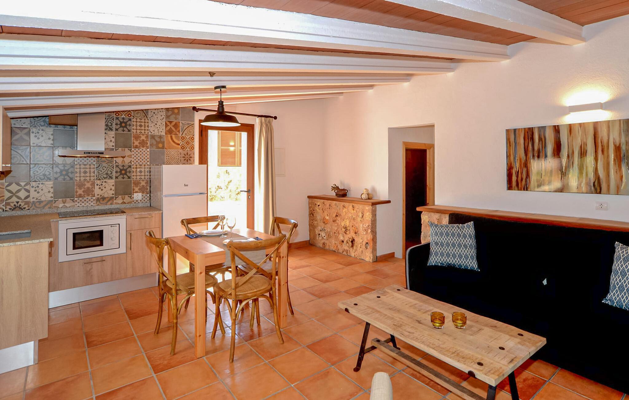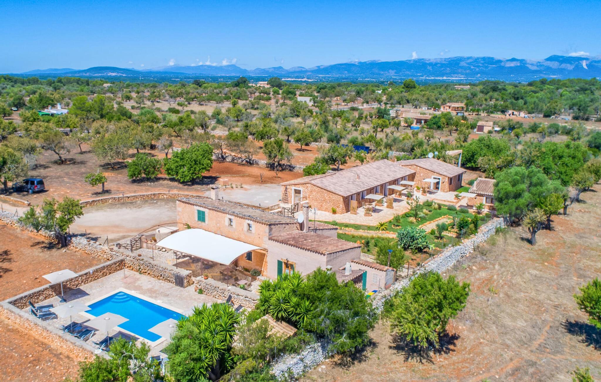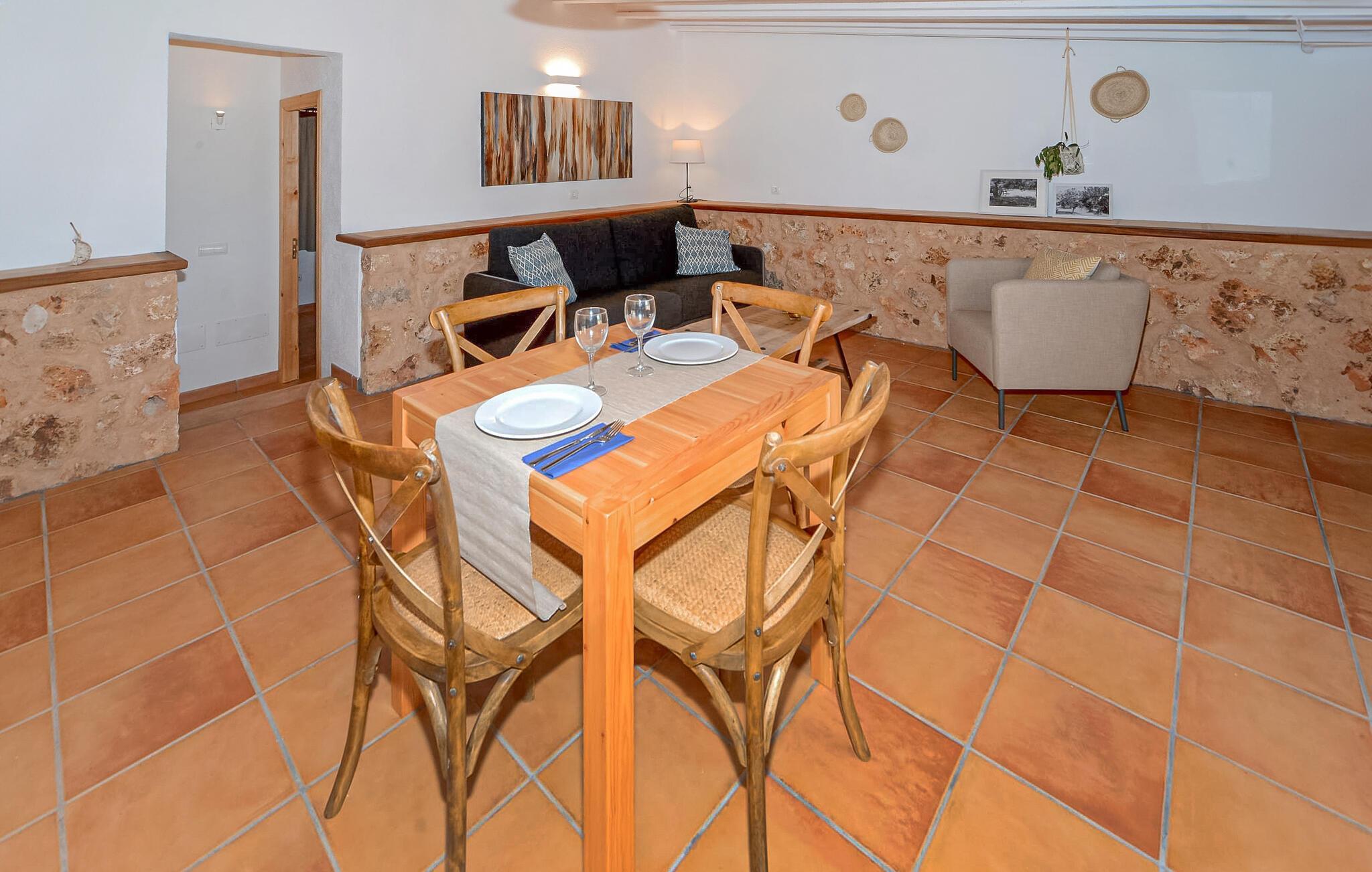 Oplev Mallorcas charme på "Can Porreti", et roligt tilflugtssted, der tilbyder feriegæster en pause fra de typiske turiststeder. Til huse i en 100 år gammel gård, nænsomt ombygget siden 2015, har denne ejendom fem moderne lejligheder, hver med sin egen terrasse og varmen fra traditionel arkitektur, omgivet af mandel- og figentræer. Dette er et feriehus i Fincallorca. "Can Porreti El Galliner" skiller sig ud for sit lyse og indbydende interiør. Denne casita har et hyggeligt badeværelse med bruser, et tekøkken med moderne apparater og en lille spiseplads, hvilket gør den til et ideelt tilflugtssted for par. Værelset er udstyret med en 1,6 m dobbeltseng samt aircondition og WiFi for at sikre et afslappende ophold. De øvrige enheder på ejendommen er Can Porreti El Colomer EMF641, Can Poretti La Figuera EMF642, Can Porreti La Soll EMF640 og Can Porreti La Conillera EMF639. Fællesfaciliteterne såsom poolen, solterrasserne og fællesrummet med brændeovn fremmer det sociale samvær blandt gæsterne. Nyd en fælles morgenmad eller aftengrill ved poolen, mens den rummelige grund sikrer masser af privatliv. Villaen "Can Porreti El Galliner" er beliggende i en landlig og rolig beliggenhed i centrum af øen mellem Lloret de Vistalegre, Costitx og Sineu og kun ca. 28 km fra flere drømmestrande. Udforsk nærliggende attraktioner såsom det berømte Sineu Farmers' Market, Observatorio Astronomico i Costitx for stjernekiggeri og smukke strande såsom Playa de Muro inden for en halv times kørsel. Der er også utallige vandre- og cykelstier for den aktive rejsende og vidunderlige restauranter i Sencelles og videre.