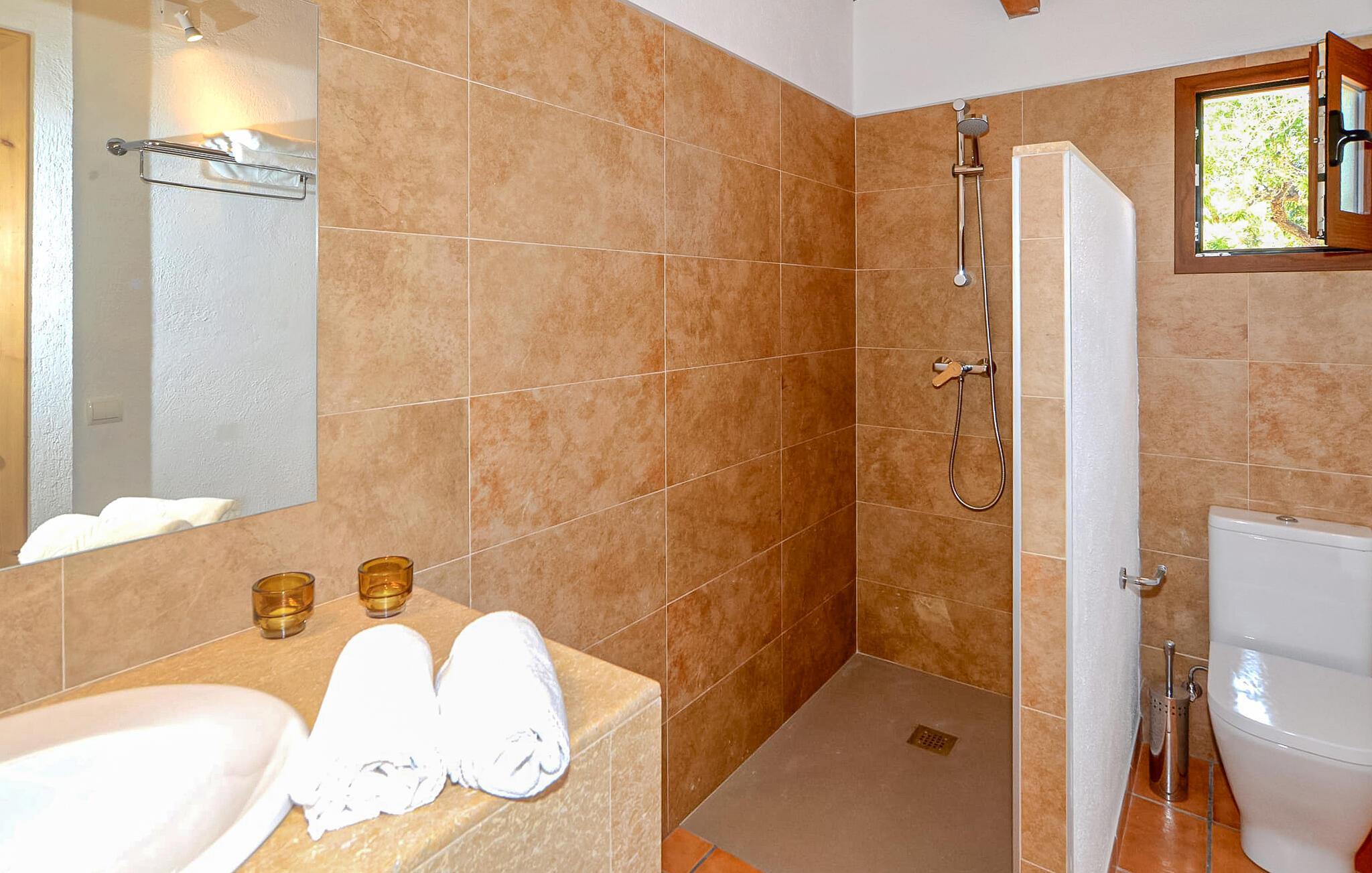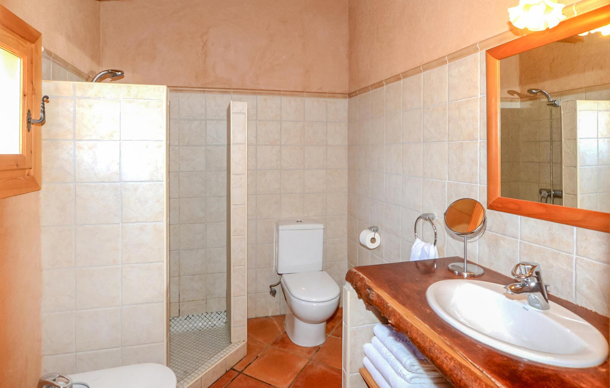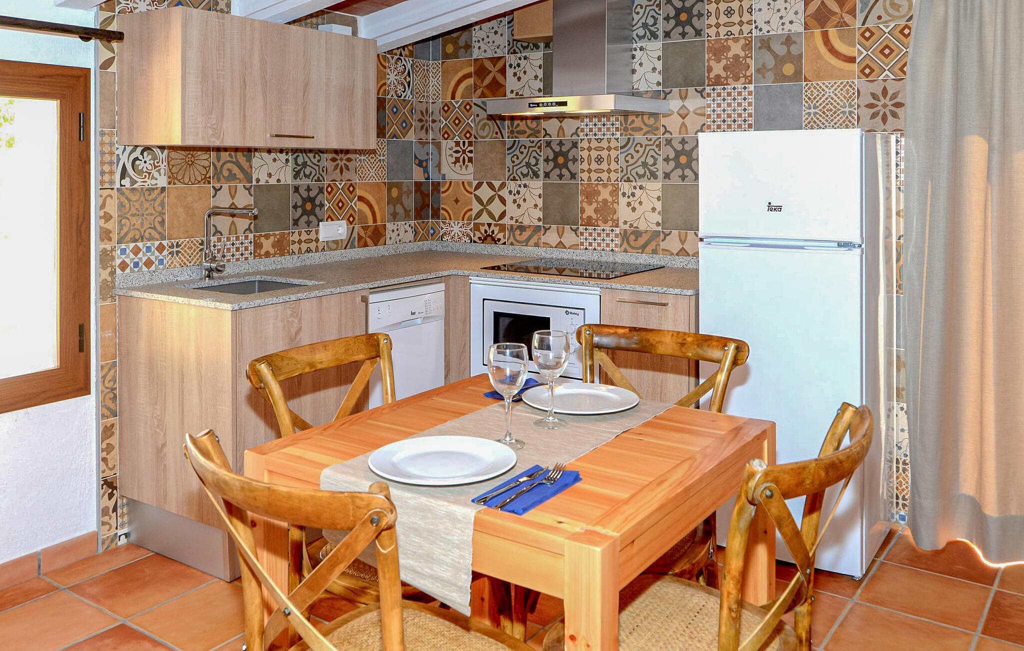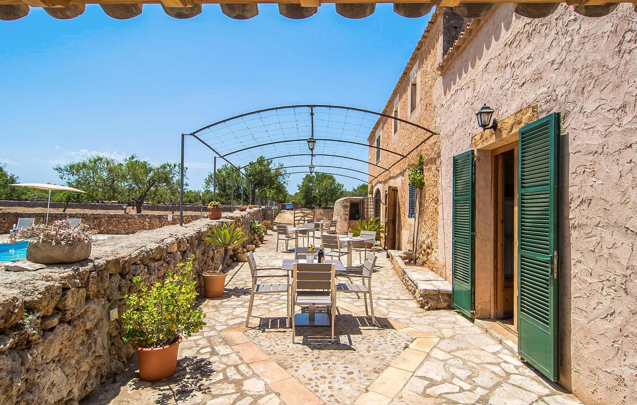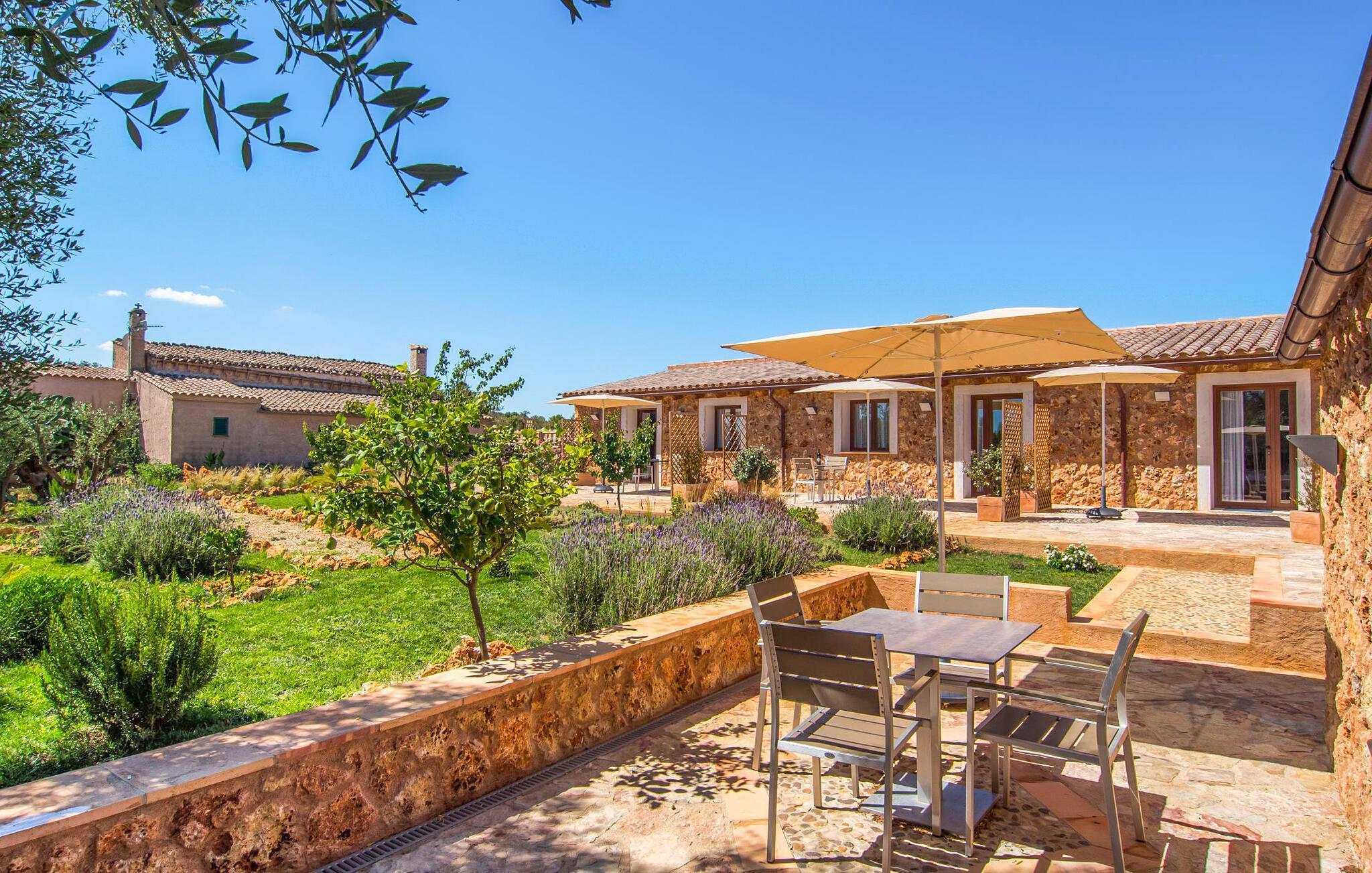 Oplev Mallorcas charme på "Can Porreti", et roligt tilflugtssted, der tilbyder feriegæster en pause fra de typiske turiststeder. Til huse i en 100 år gammel gård, nænsomt ombygget siden 2015, har denne ejendom fem moderne lejligheder, hver med sin egen terrasse og varmen fra traditionel arkitektur, omgivet af mandel- og figentræer. Dette er et feriehus i Fincallorca. "Can Porreti El Galliner" skiller sig ud for sit lyse og indbydende interiør. Denne casita har et hyggeligt badeværelse med bruser, et tekøkken med moderne apparater og en lille spiseplads, hvilket gør den til et ideelt tilflugtssted for par. Værelset er udstyret med en 1,6 m dobbeltseng samt aircondition og WiFi for at sikre et afslappende ophold. De øvrige enheder på ejendommen er Can Porreti El Colomer EMF641, Can Poretti La Figuera EMF642, Can Porreti La Soll EMF640 og Can Porreti La Conillera EMF639. Fællesfaciliteterne såsom poolen, solterrasserne og fællesrummet med brændeovn fremmer det sociale samvær blandt gæsterne. Nyd en fælles morgenmad eller aftengrill ved poolen, mens den rummelige grund sikrer masser af privatliv. Villaen "Can Porreti El Galliner" er beliggende i en landlig og rolig beliggenhed i centrum af øen mellem Lloret de Vistalegre, Costitx og Sineu og kun ca. 28 km fra flere drømmestrande. Udforsk nærliggende attraktioner såsom det berømte Sineu Farmers' Market, Observatorio Astronomico i Costitx for stjernekiggeri og smukke strande såsom Playa de Muro inden for en halv times kørsel. Der er også utallige vandre- og cykelstier for den aktive rejsende og vidunderlige restauranter i Sencelles og videre.