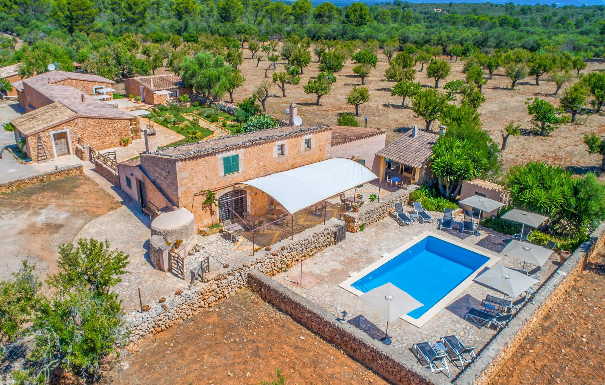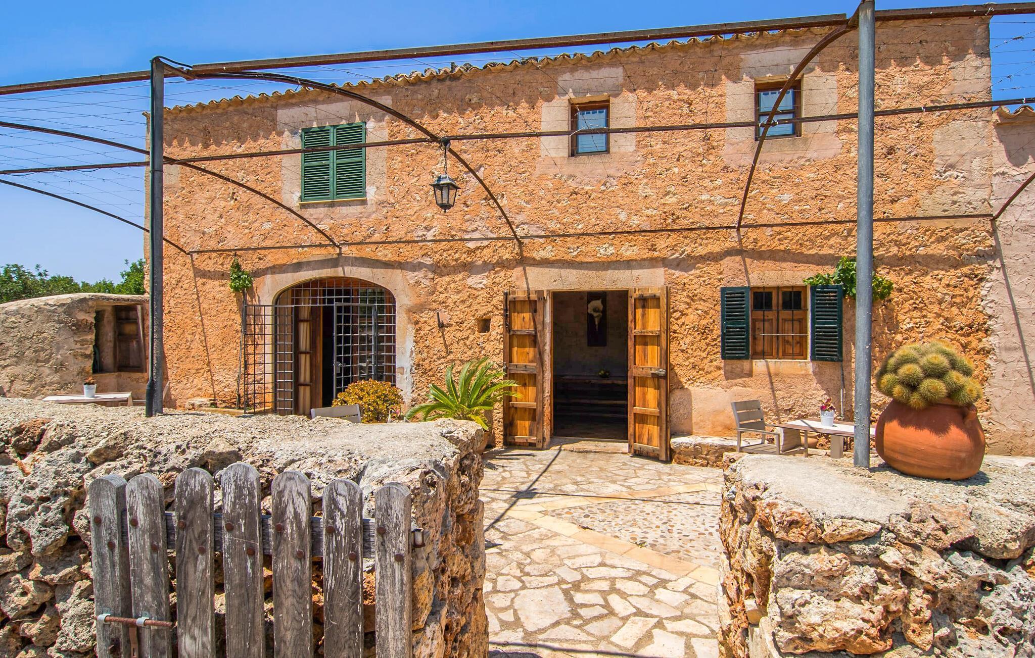 "Can Porreti" giver feriegæster mulighed for at opleve Mallorcas autentiske charme. Bag den indbydende træport ligger en nænsomt restaureret 100 år gammel gård, som nu rummer fem moderne lejligheder med hver sin terrasse, omgivet af mandel- og figentræer. Dette er et feriehus i Fincallorca. Gæsterne kan hygge sig ved poolen, grille eller gå til de nærliggende byer Sineu og Inca, hvilket gør det ideelt for familier. Lejligheden "Can Porreti El Conillera" har et lyst interiør med hvide vægge og natursten. Den har en 1,6 m bred dobbeltseng, et badeværelse med bruser, et tekøkken og et hyggeligt opholdsområde. Aircondition, Wi-Fi og et fladskærms-tv giver komfort. De øvrige enheder på ejendommen er Can Porreti El Colomer EMF641, Can Poretti La Figuera EMF642, Can Porreti La Soll EMF640 og Can Porreti El Galliner EMF643. Fællesfaciliteterne såsom poolen, solterrasserne og fællesrummet med brændeovn fremmer det sociale samvær blandt gæsterne. Nyd en fælles morgenmad eller aftengrill ved poolen, mens den rummelige grund sikrer masser af privatliv. Feriehuset "Can Porreti La Conillera" er beliggende i en landlig og rolig beliggenhed i centrum af øen mellem Lloret de Vistalegre, Costitx og Sineu, og kun ca. 28 km fra flere drømmestrande. Udforsk nærliggende attraktioner såsom det berømte Sineu Farmers' Market, Observatorio Astronomico i Costitx for stjernekiggeri og smukke strande såsom Playa de Muro inden for en halv times kørsel. Der er også utallige vandre- og cykelstier for den aktive rejsende og vidunderlige restauranter i Sencelles og videre.