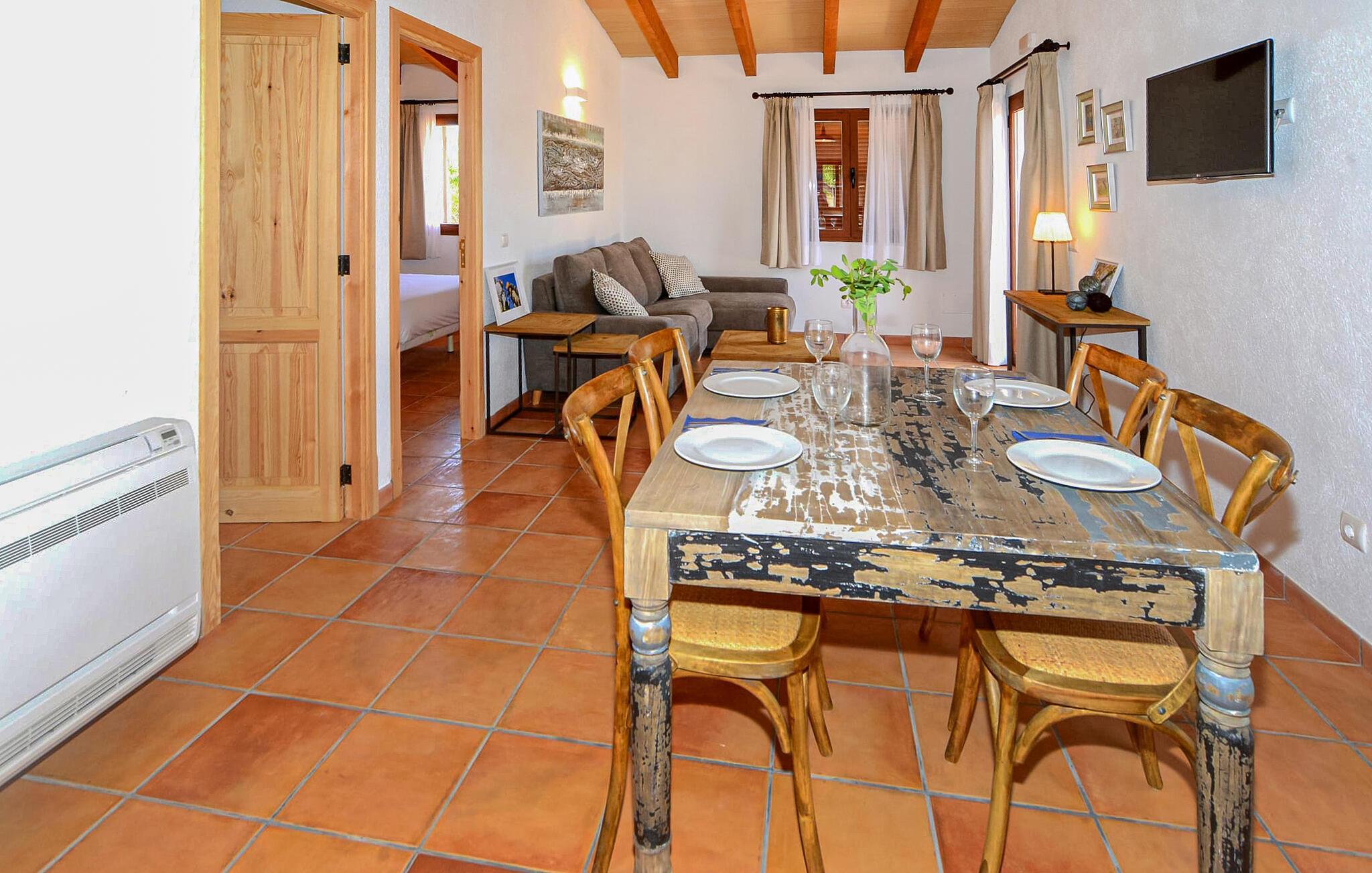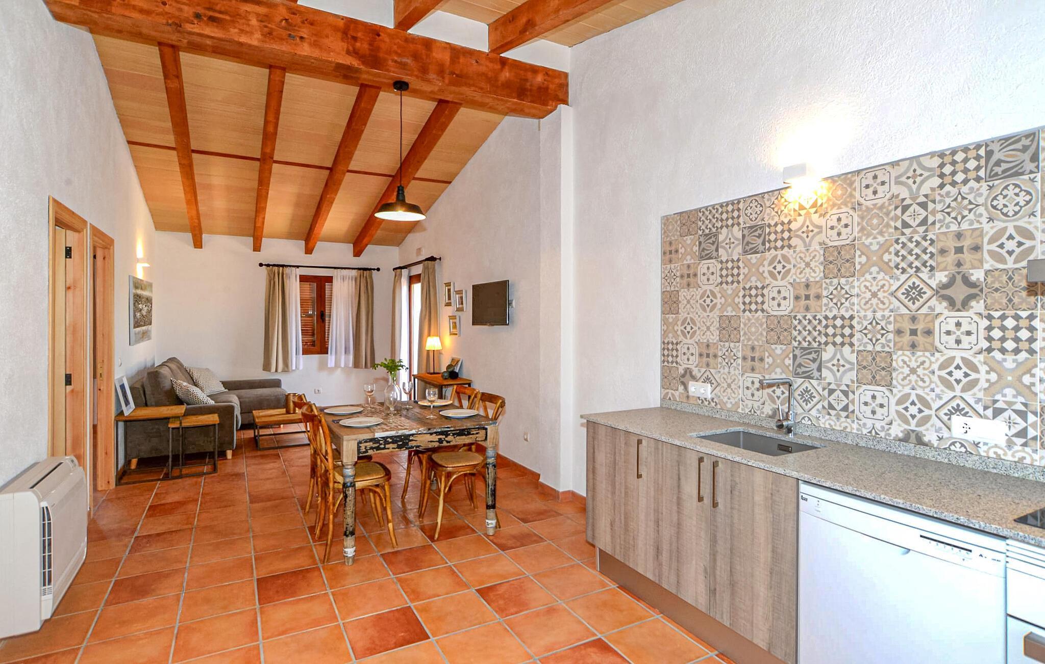 Oplev Mallorcas charme på "Can Porreti", en samling af fem moderne lejligheder på en historisk gård omgivet af mandel- og figentræer. Dette er et feriehus i Fincallorca. Ejendommen blev ombygget i 2015 og har en indbydende træport, der fører til rummelige udendørs arealer, herunder en fælles pool og solterrasser, hvor du kan slappe af og socialisere. Børn vil elske at få venner i denne indbydende atmosfære. En af de iøjnefaldende boliger, "Can Porreti La Figuera" (70 m²), har et lyst og luftigt design med hvide vægge og levende natursten. Det har to soveværelser, en komfortabel opholdsstue og et veludstyret tekøkken, ideel til en lille familie. Moderne faciliteter såsom aircondition, Wi-Fi og fladskærms-tv sikrer et behageligt ophold. Denne lejlighed er en af fem udlejningsejendomme på ejendommen. De øvrige er Can Porreti El Galliner EMF643, Can Porreti El Colomer EMF641, Can Porreti La Soll EMF640 og Can Porreti La Conillera EMF639. Feriehuset "Can Porreti La Figuera" er beliggende i en landlig og rolig beliggenhed i centrum af øen mellem Lloret de Vistalegre, Costitx og Sineu og kun ca. 28 km fra strande som Playa de Muro. Nyd landmændenes markeder, de fremragende restauranter i Sencelles og de naturskønne vandre- eller cykelstier i området. For mere omfattende shoppingture anbefales byen Inka for sine vine og lædervarer. "Can Porreti" byder på en unik mallorcansk oplevelse, der kombinerer afslapning og eventyr.