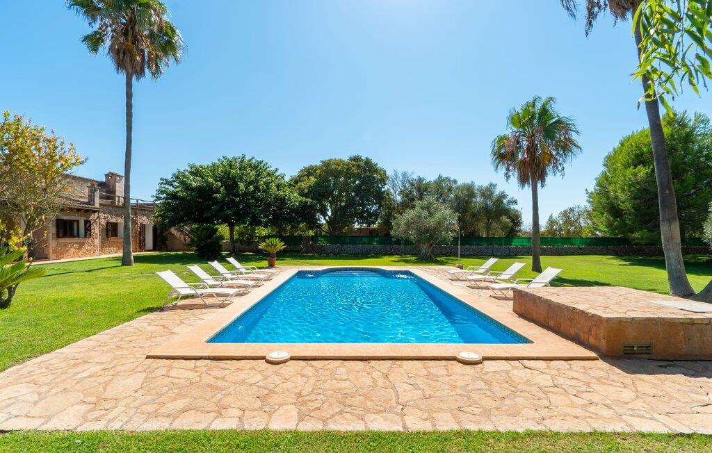 Din ferieejendom “Can Rei” har en stor have med naturplæne og indhegnet pool samt solterrasser, palmer og generelt smukke planter, fast grillplads og stor overdækket terrasse. Husets hjerte er den store og hyggelige stue-spisestue. Gennem en bred dobbeltdør kommer I ind i det rummelige køkken med pejs og endnu et spisebord. Fire soveværelser og to badeværelser kan nås via en entre. Tre af soveværelserne er udstyret med en dobbeltseng (180x200, 210x200, 135x200), et med to enkeltsenge (2 x 110x200) og et kontorhjørne. Stuehuset er komfortabelt udstyret, inklusive internet og fladskærms-tv. Det smukke bondehus "Can Rei" ligger kun ca. 6 km sydøst for Campos på den sydlige del af øen. I den lille by er der barer, restauranter og butikker til jeres daglige behov; Et særligt højdepunkt er markedet med mange lækkerier lørdag. Godt 15 minutters kørsel væk byder Santanyi på en smuk gågade og flere kunstgallerier. Den velkendte Es Trenc strand, omkring 17 km fra stuehuset, er let at nå selv med små børn takket være dens lave skråning. Bemærk venligst, at denne ejendom ikke accepterer ungdomsgrupper eller polterabender. En ungdomsgruppe på denne ejendom består af personer under 30 år. Book ikke denne ejendom, hvis I er en ungdomsgruppe eller polterabend, da jeres reservation vil blive afvist, når den er booket, hvilket også kan være tilfældet ved ankomst til ejendommen eller under jeres ophold, og I vil ikke modtage en refusion.