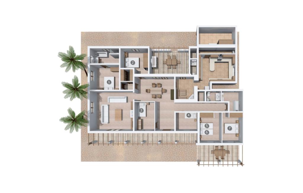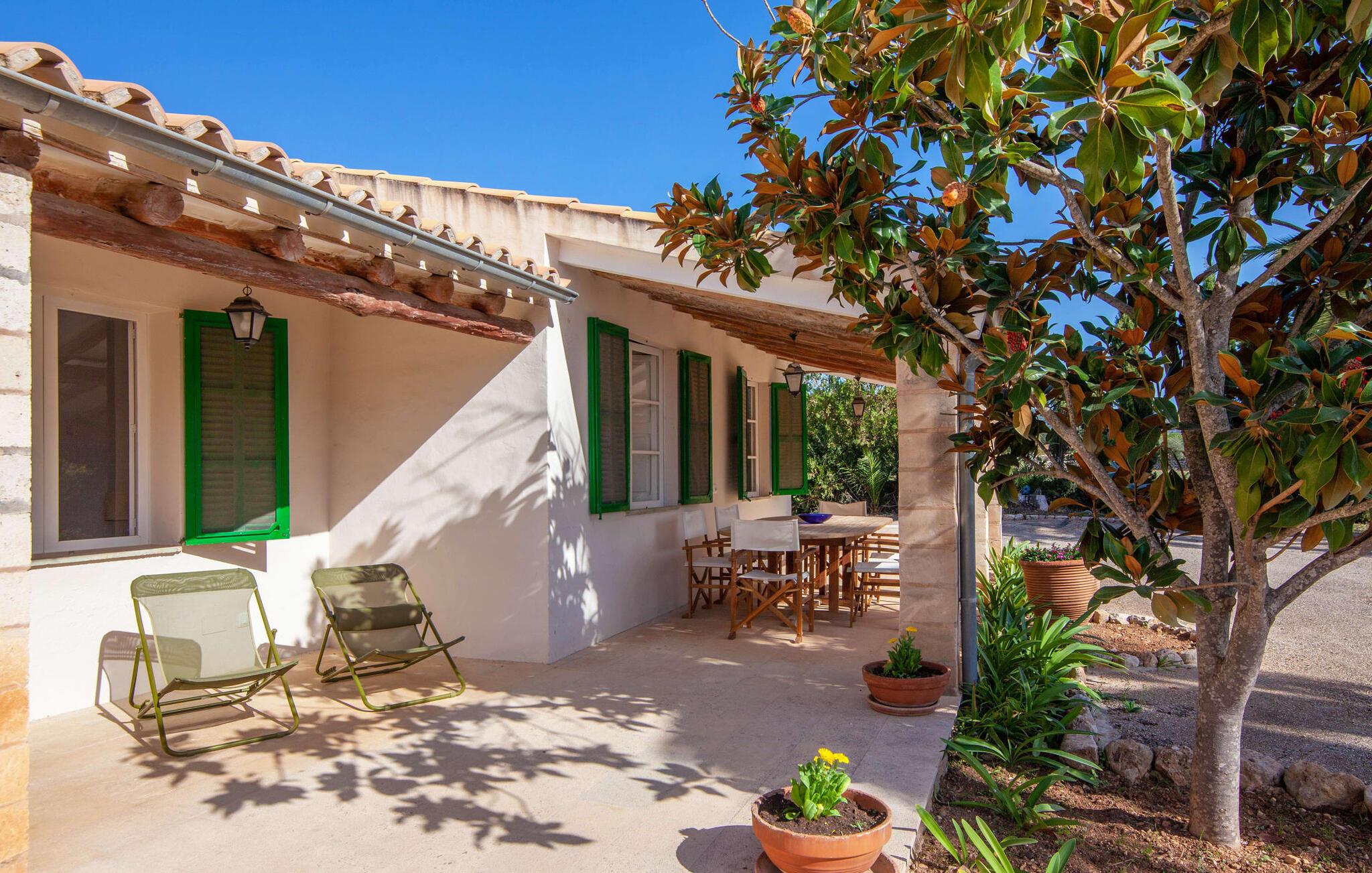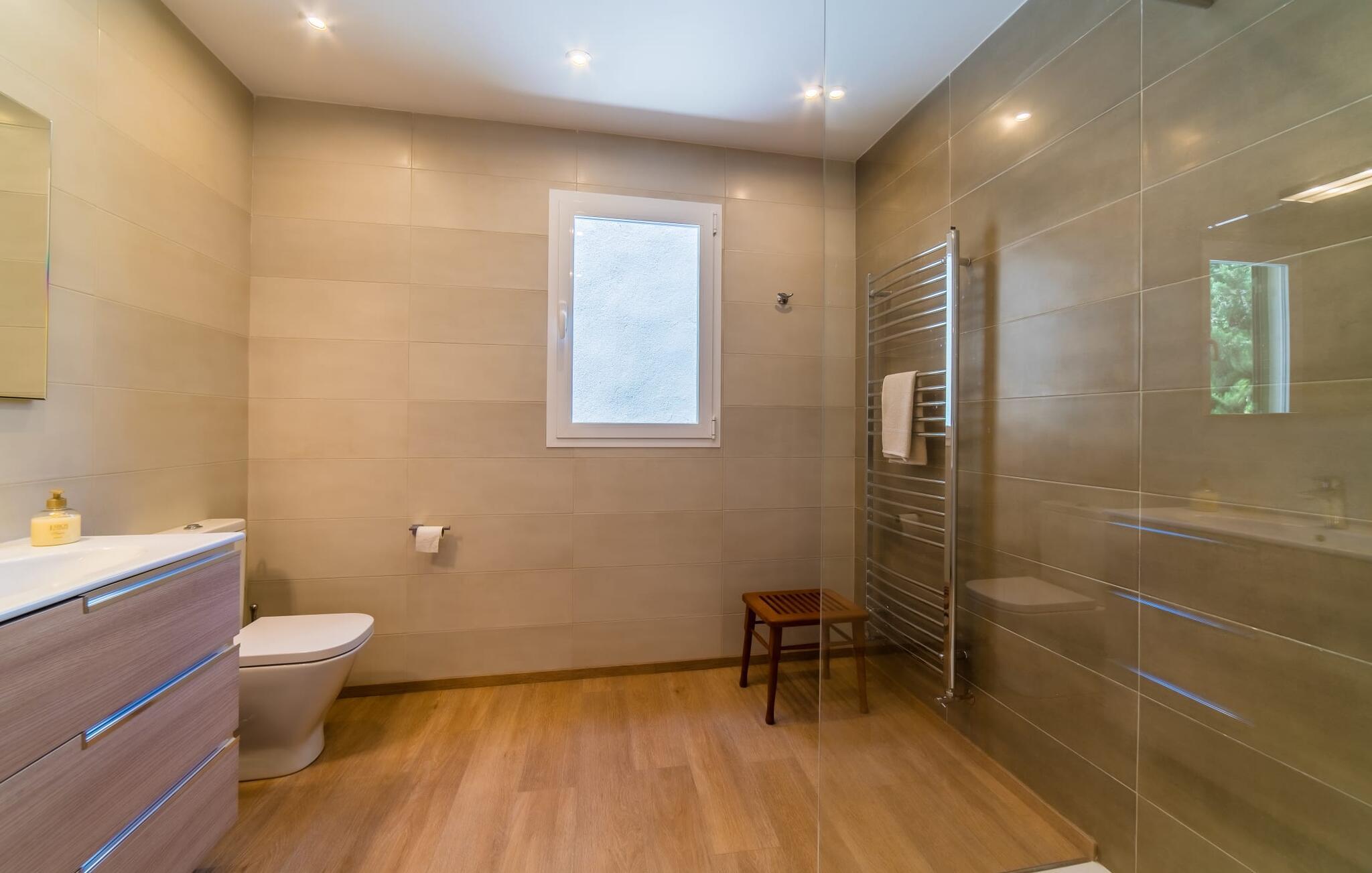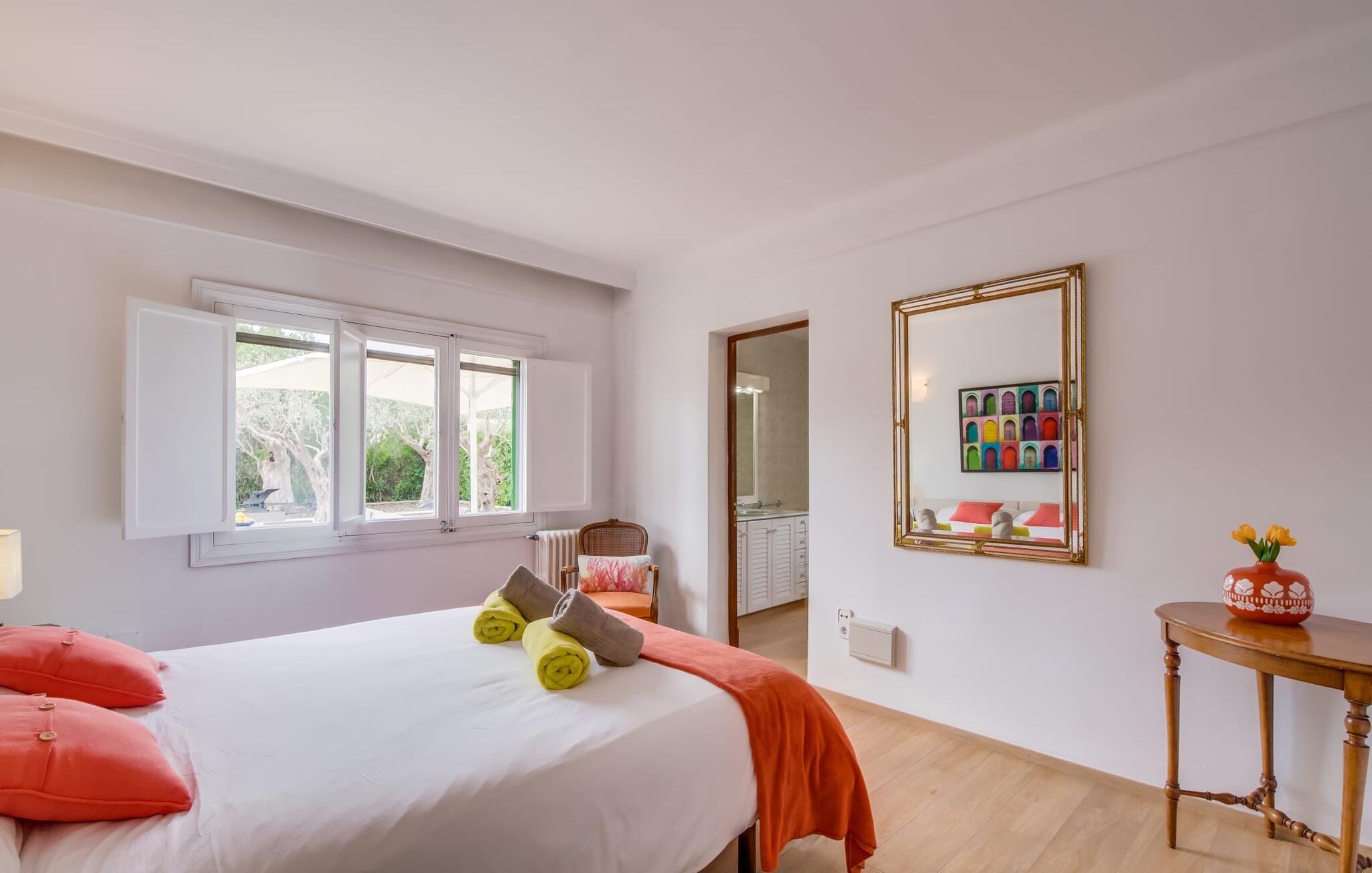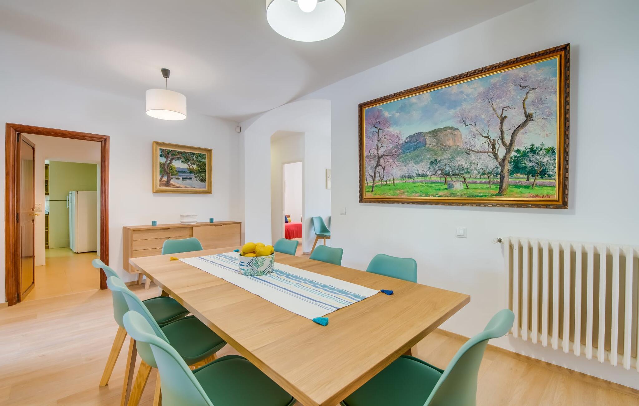 Hvis I har valgt denne familievenlige villa, viser du, at I ved, hvad I skal kigge efter i et sommerhus på denne ø: Bungalowvillaen “Can Renou” byder på meget at lave og ligger i en stille dal på sydskråningerne af Tramuntana-bjergene rejser sig som stenvagter, kun få minutters gang fra den lille brostensbelagte by Alaró. En imponerende indkørsel fører jer direkte til parkeringspladsen. Den store grund med mægtige palmer og knudrede oliventræer har alt at byde på; Der er noget for enhver aldersgruppe: en pool (med udendørs bruser og toilet), en legeplads for de mindste, en velholdt tennisbane og et bordtennisbord under et fortelt afrunder det virkelig omfattende udbud af fritidsaktiviteter . Hvis I overvejer at grille en sport, vil I (og alle andre) blive glade for at vide, at der også er en indbygget grill. Med så meget på tilbud kan ingen sige, at de blev udeladt denne gang. Når I har fået nok af sjov og leg, kan I finde en liggestol på en af de mange terrasser - udendørs og overdækkede - ved poolen og rundt om huset eller gå en tur og gå på opdagelse i ejendommen. Det bliver superhyggeligt i stuen: dybblå to-personers sofaer og fløjstole inviterer til at se tv eller læse en god bog, palmerne kigger gennem terrassedøren og den lukkede pejs har mistet sine knitrende flammer til levende lys. I det rustikke køkken med hjørnekabine, mikroovn og opvaskemaskine kan I lave mad til en hel hær eller hyre dem til at hjælpe med at lave mad - I skal bare passe på, at de ikke løber væk, efter at vinen er fjernet. Væk fra den lange gang, hvor mange gamle skatte er udstillet, er der nogle få soveværelser og badeværelser - nogle mennesker (bedstemor, bedstefar, snorkere, singler og unge voksne) vil være glade for, at der er to komfortable enkeltværelser til rådighed. For resten af gruppen er der tre dobbeltsenge (1,5 x 2 m) og to enkeltsenge til rådighed; Det en-suite badeværelse med hvide skabe og spabadet vil selvfølgelig være meget attråværdigt, men de to andre moderne badeværelser har også meget at byde på: Håndklædevarmere, regnbruser og brusekabiner til trætte vandrere og mere svedige (bord). ) tennisproffer. Og selvfølgelig for dem, der ønsker at tilbringe en aften i klubberne i Palma. En familievenlig villa med en betagende beliggenhed: "Can Renou" ligger kun få minutters gang fra den smukke skomagerlandsby Alaró og det nærmeste supermarked. Selvom I kun er omkring en halv time væk fra Palmas seværdigheder, er I næsten i bjergene. Der er kun 10 km til vandreparadiset omkring Orienten, og den traditionelle læder- og vinby Inca er ideel til længere shoppingture. I kan finde sand og hav på strandene i hovedstaden, eller prøve Alcúdia-bugten (ca. 40 km). Bemærk venligst, at denne ejendom ikke accepterer ungdomsgrupper eller polterabender. En ungdomsgruppe på denne ejendom består af personer under 30 år. Book ikke denne ejendom, hvis I er en ungdomsgruppe eller polterabend, da jeres reservation vil blive afvist, når den er booket, hvilket også kan være tilfældet ved ankomst til ejendommen eller under jeres ophold, og I vil ikke modtage en refusion